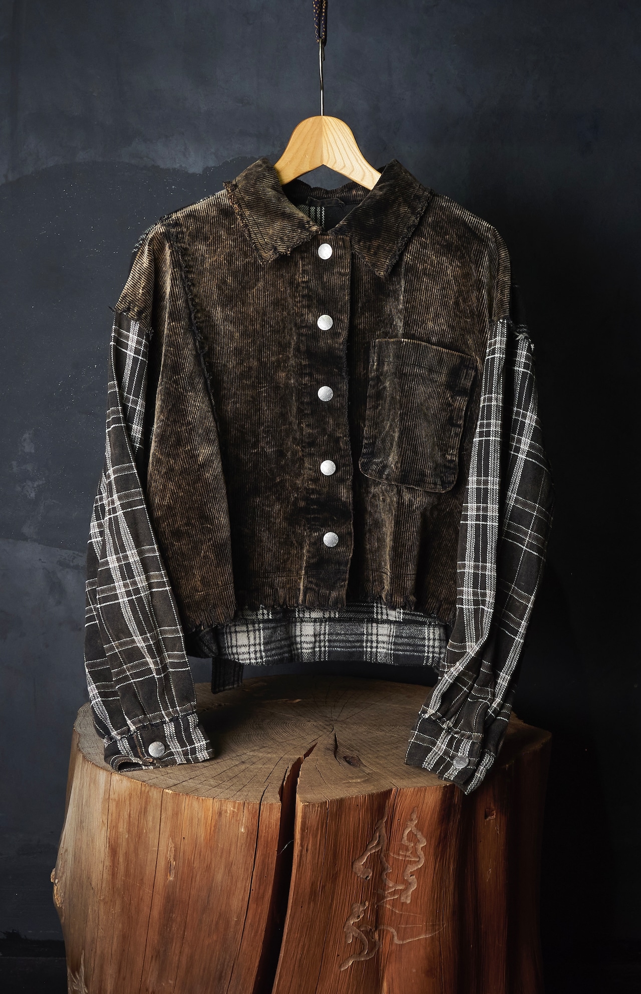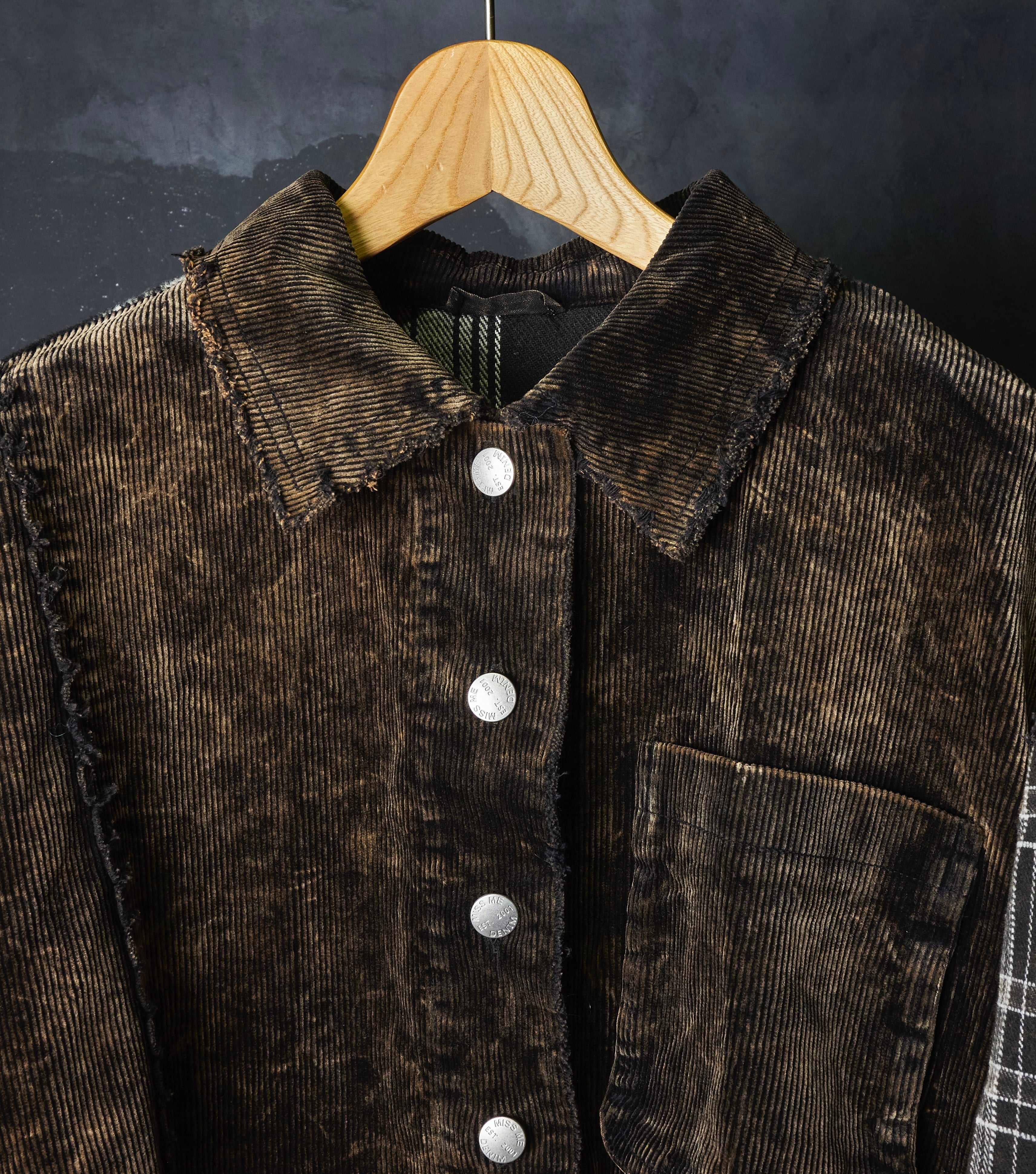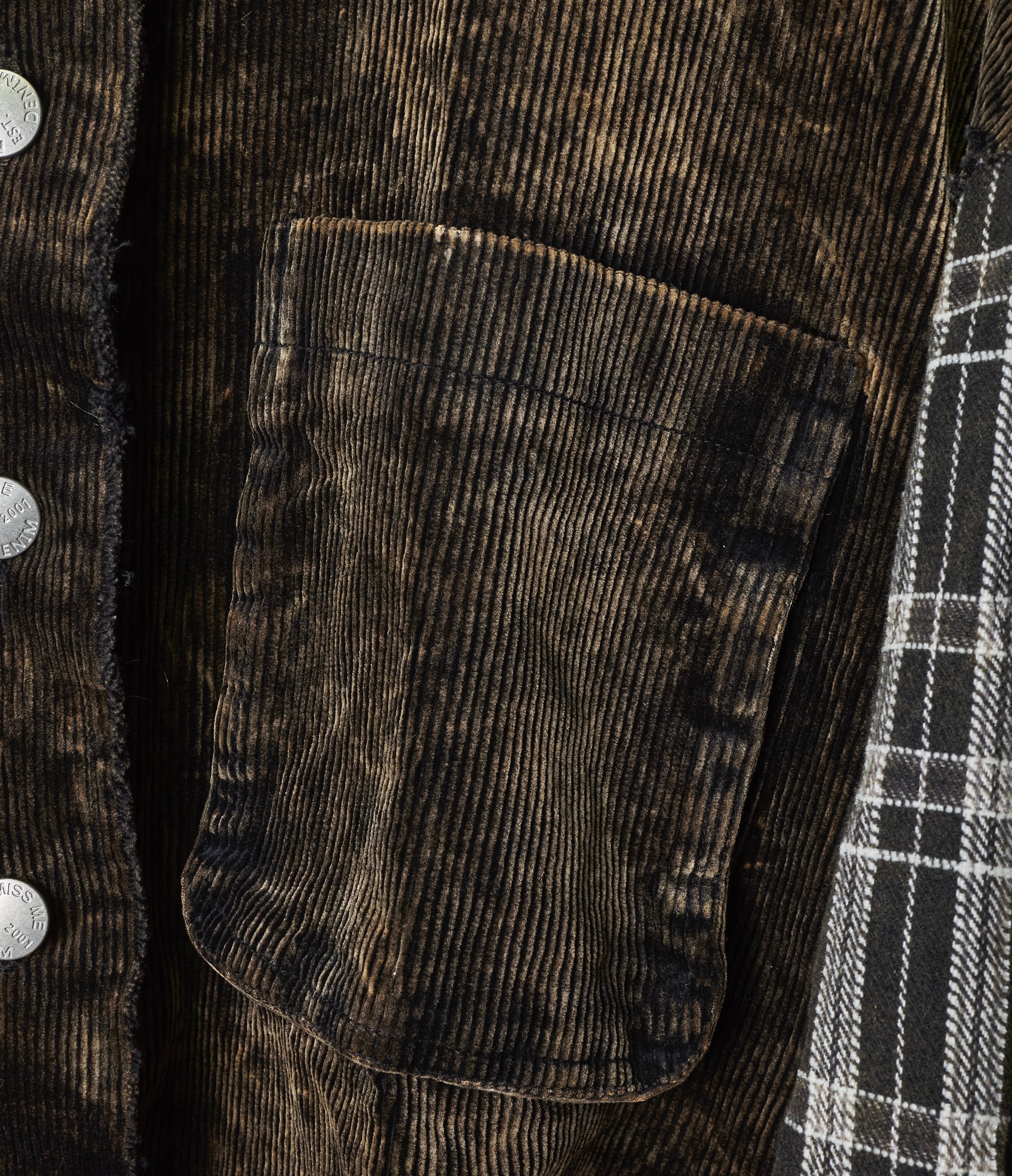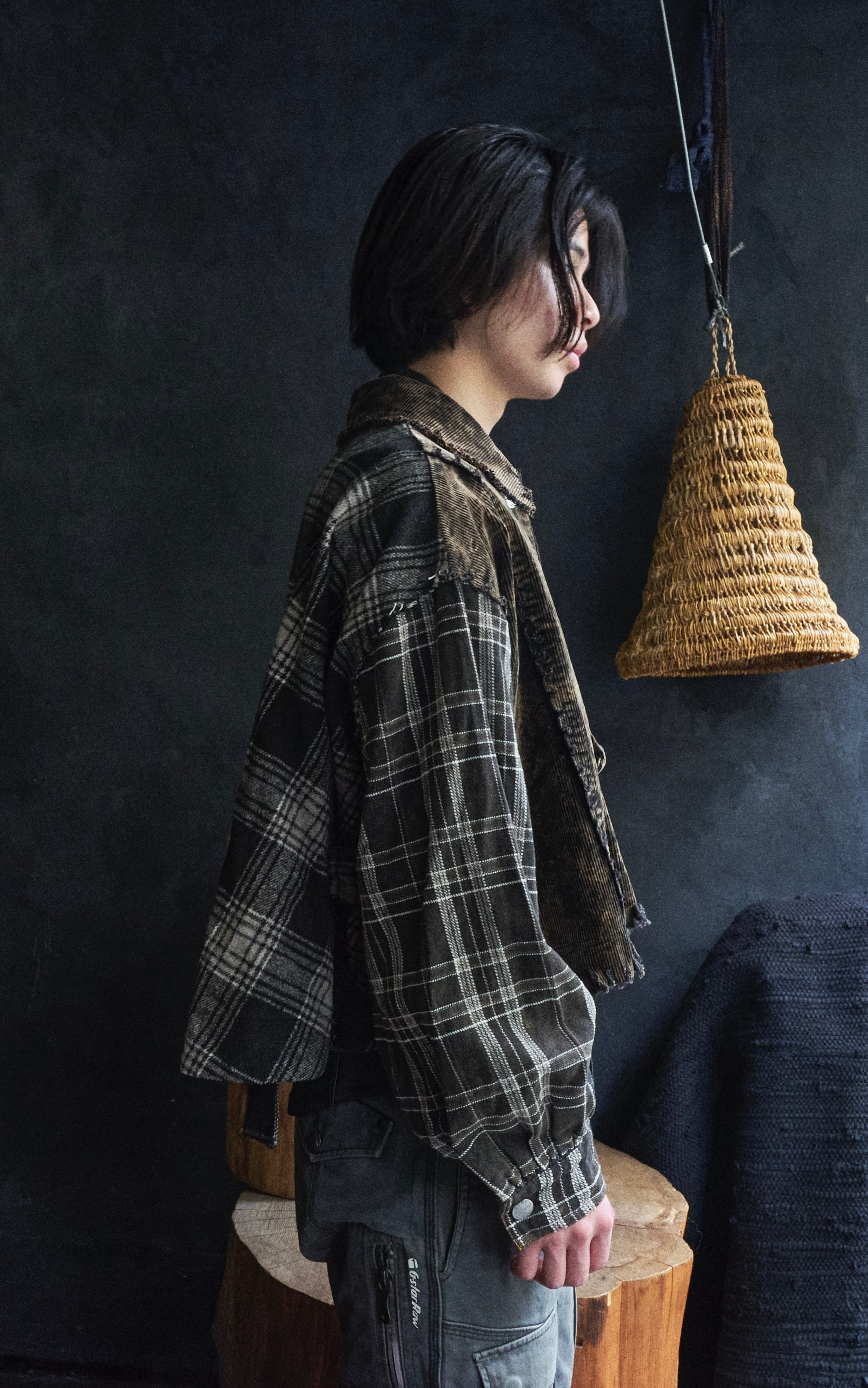 US Overdyed corduroy check flannel pattern short length shirt jacket