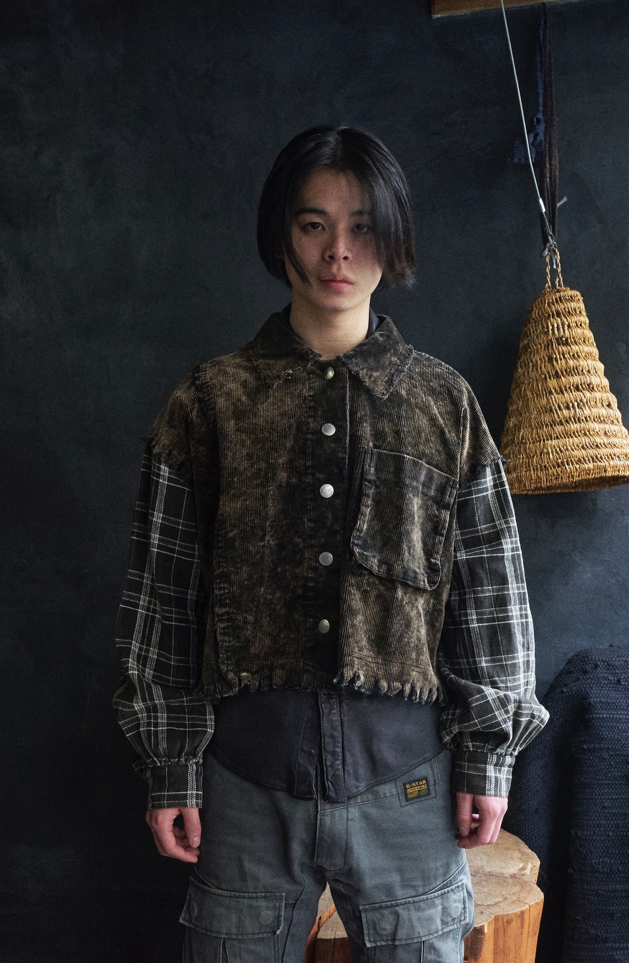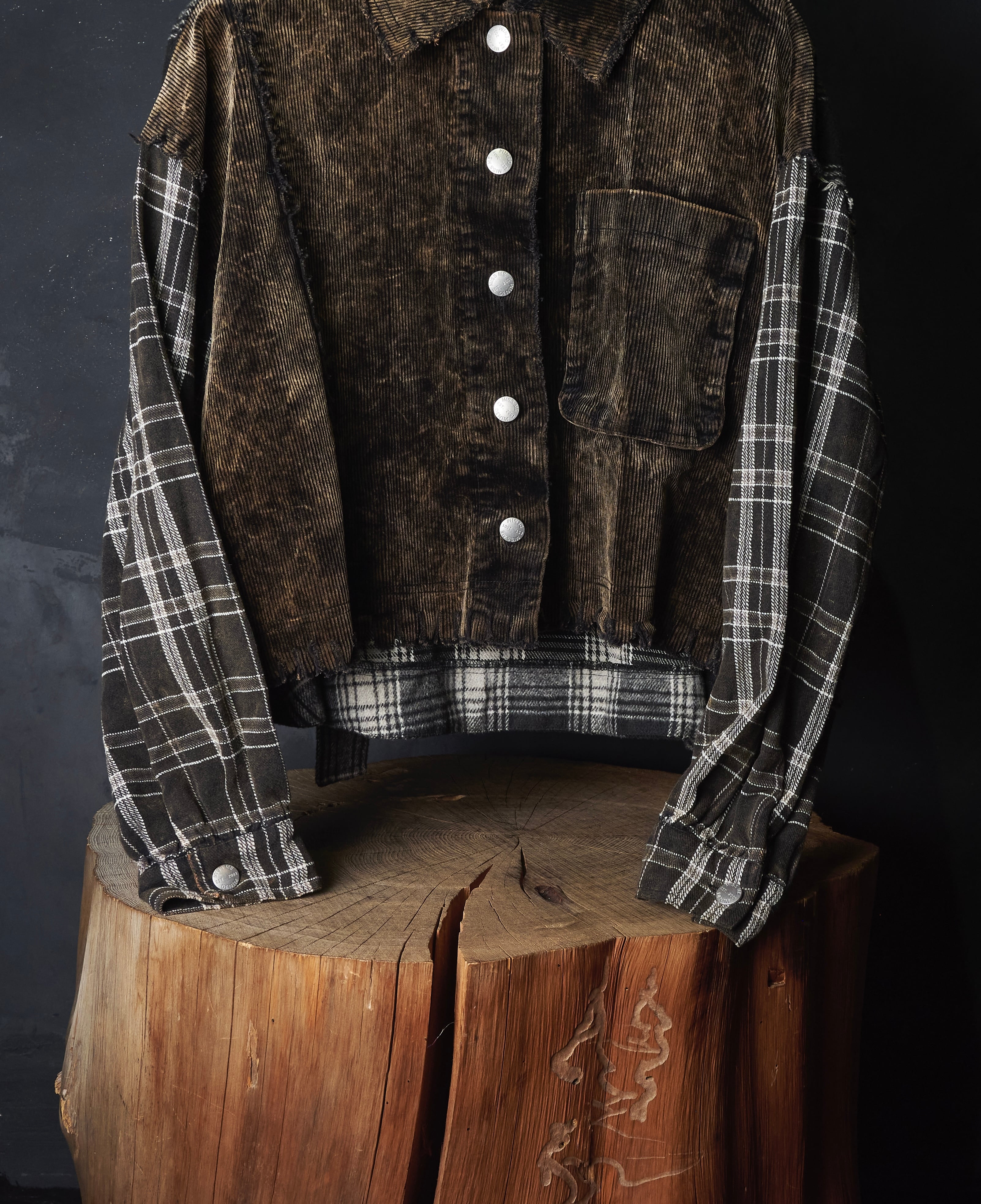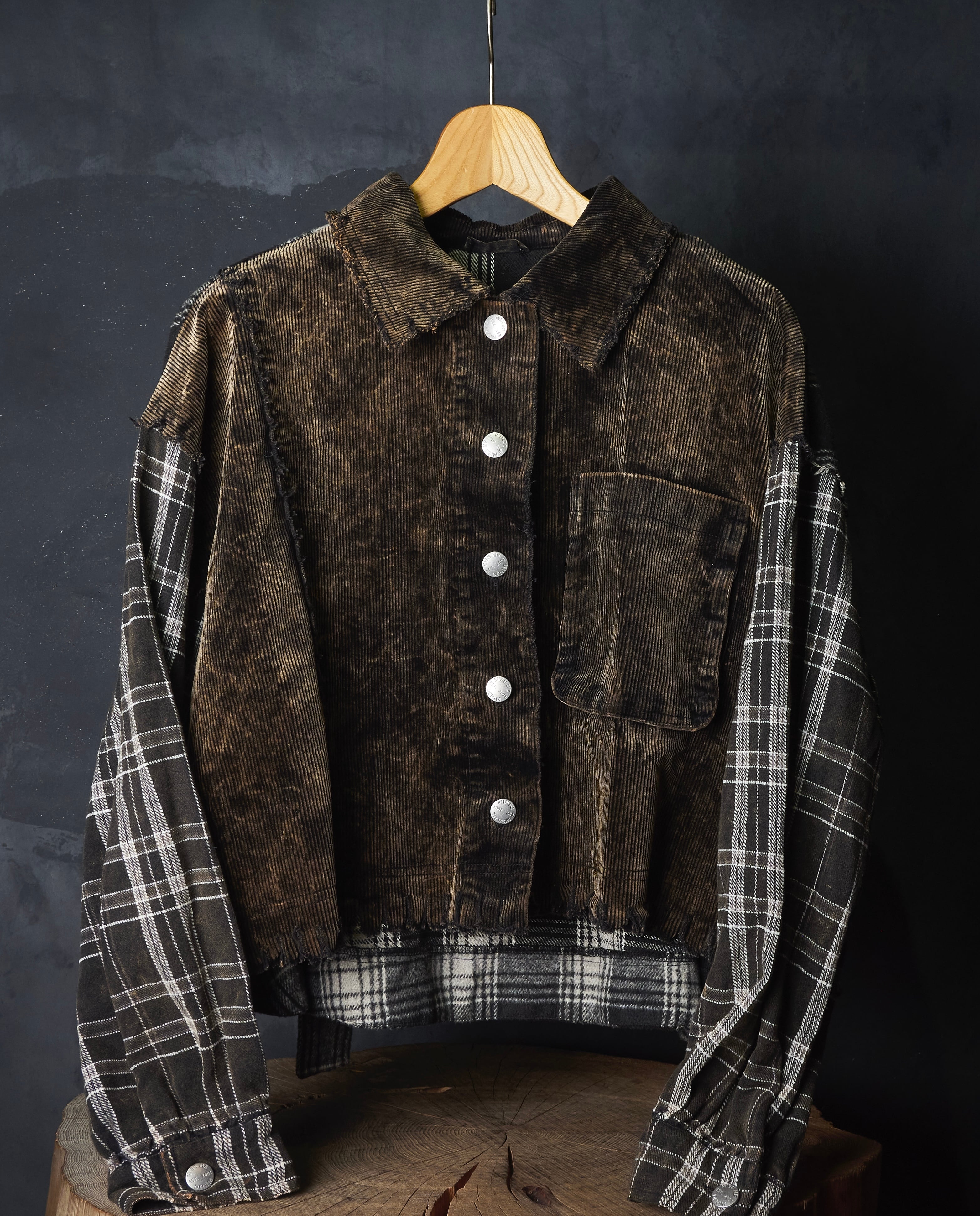 US Overdyed corduroy check flannel pattern short length shirt jacket