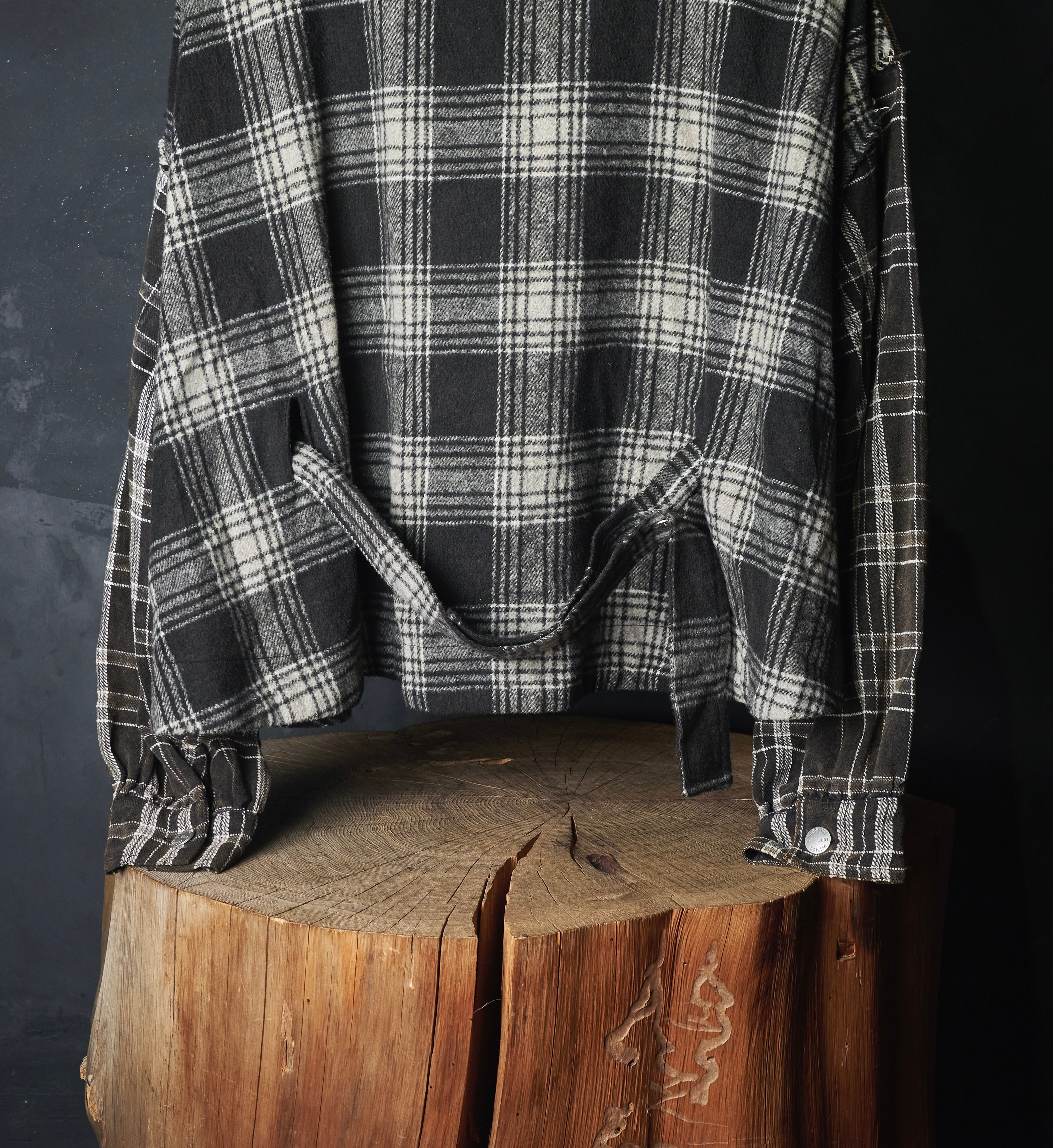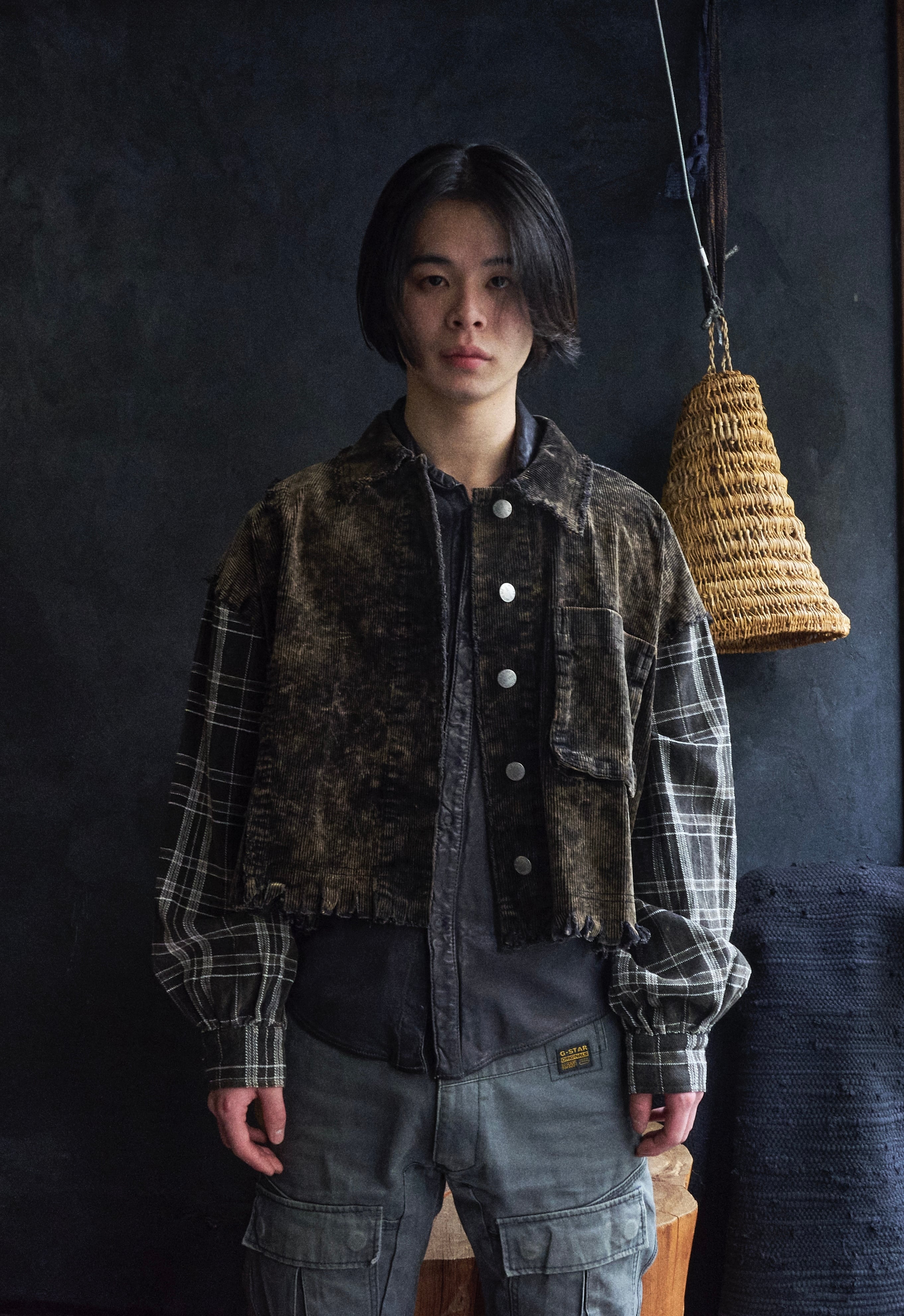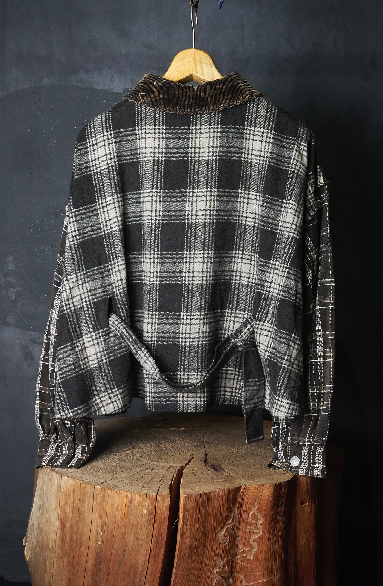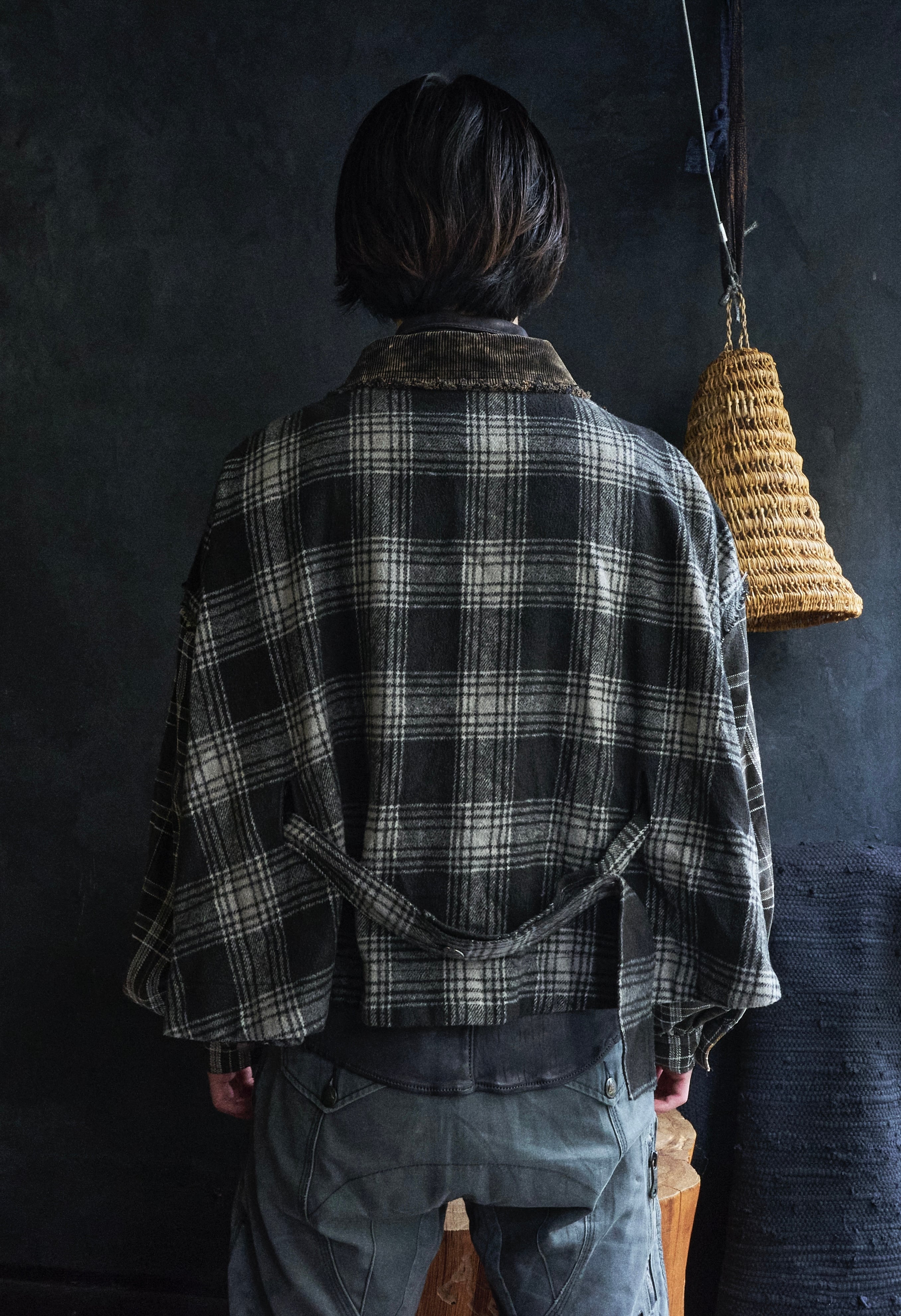 US Overdyed corduroy check flannel pattern short length shirt jacket