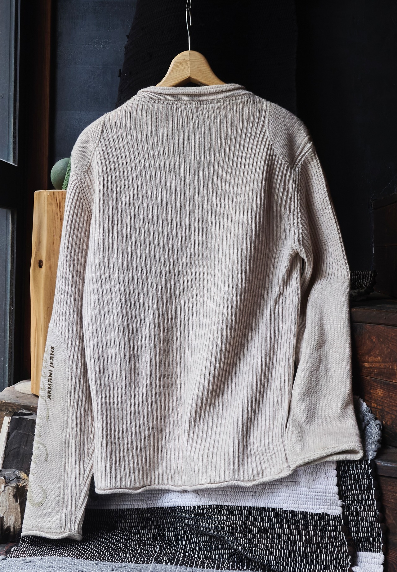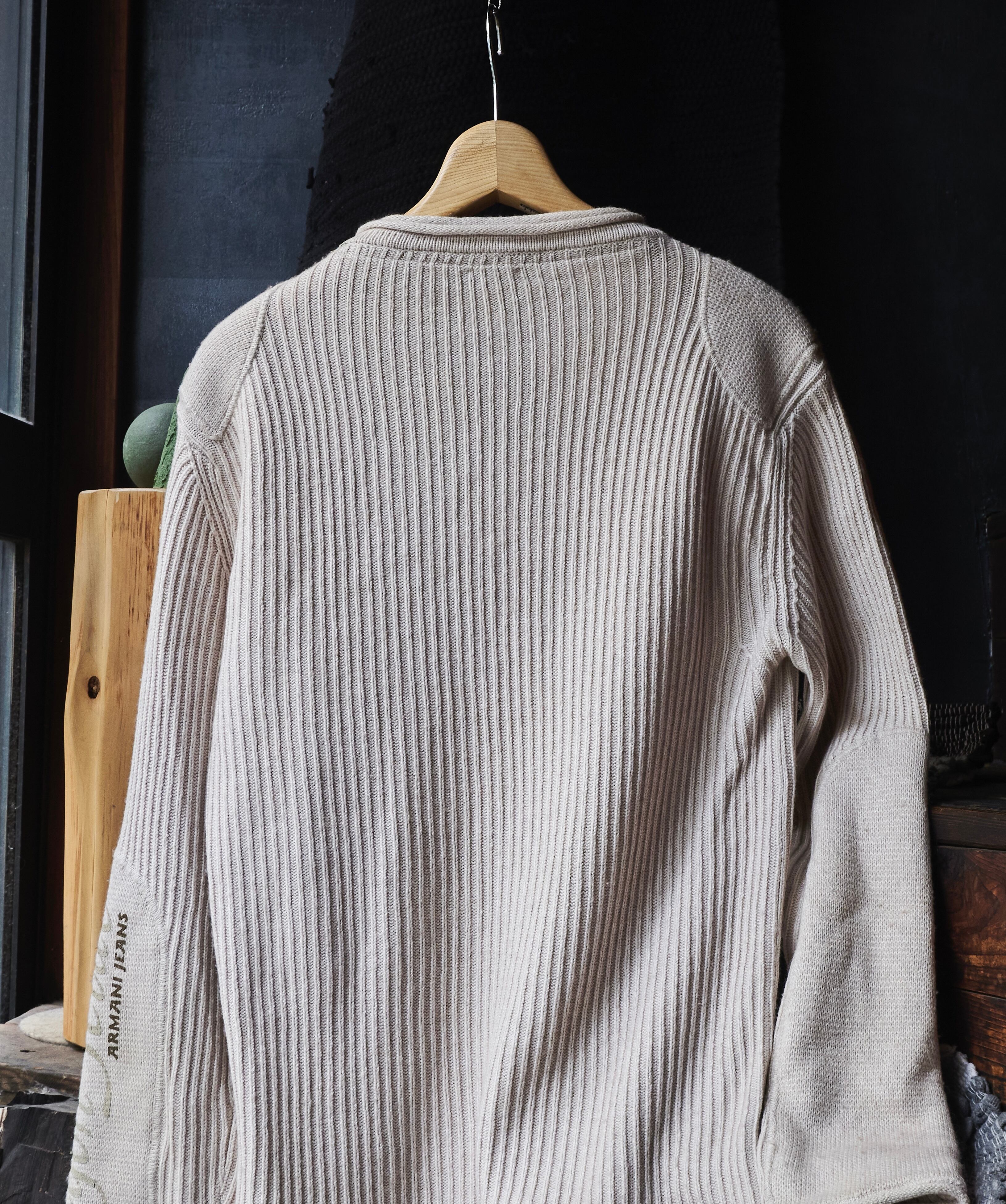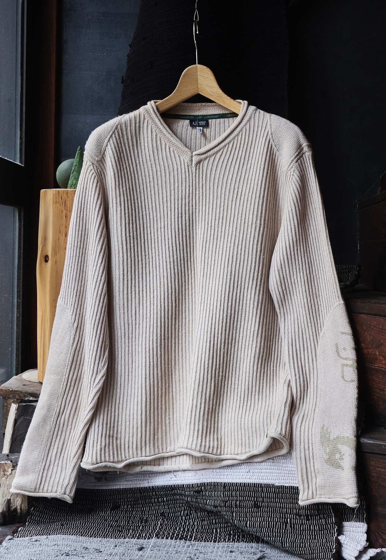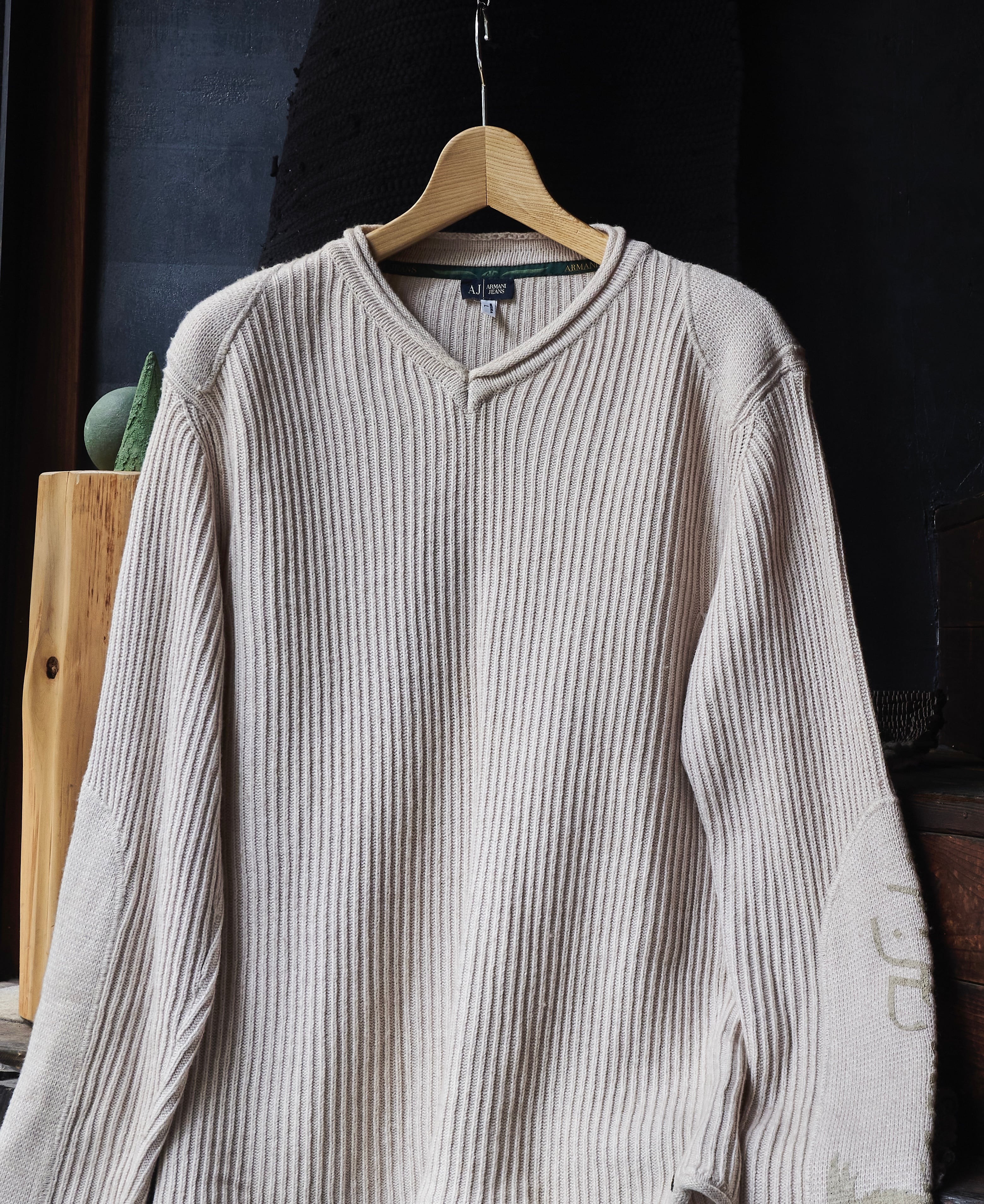 ARMANI jeans Acrylic × wool × cotton loose V-neck commando pattern rib knit