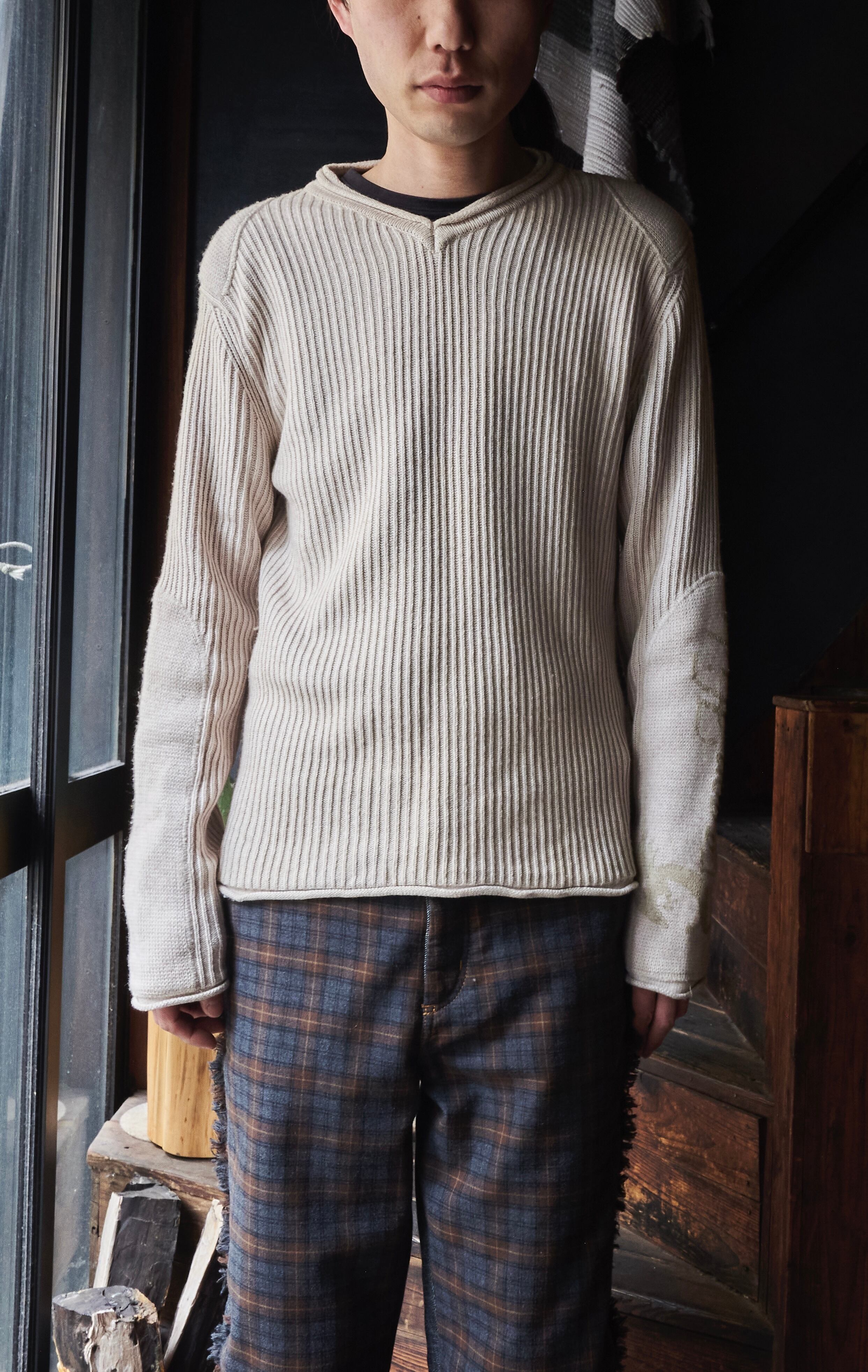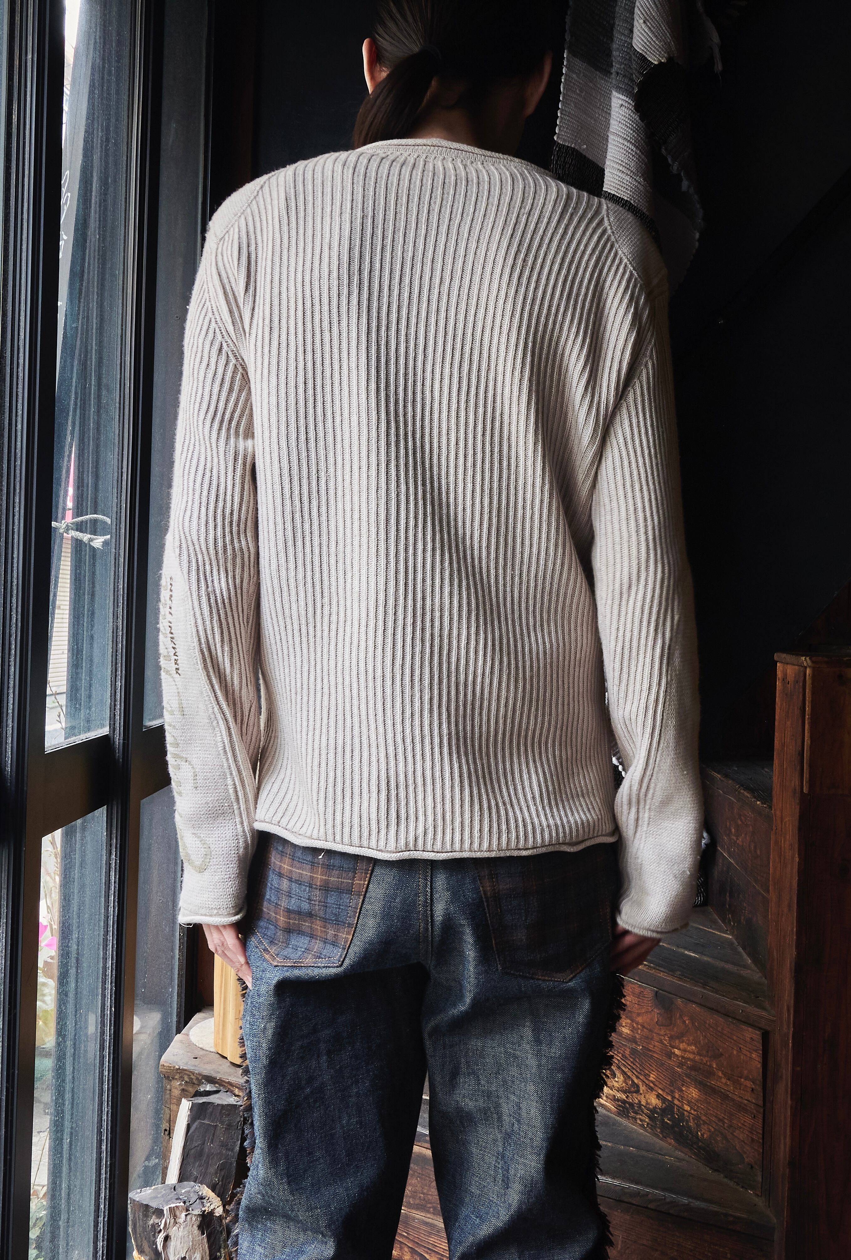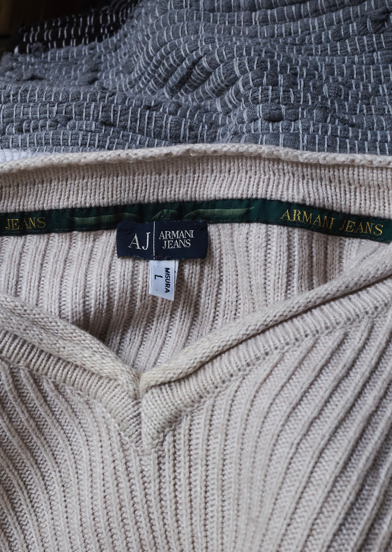 ARMANI jeans Acrylic × wool × cotton loose V-neck commando pattern rib knit