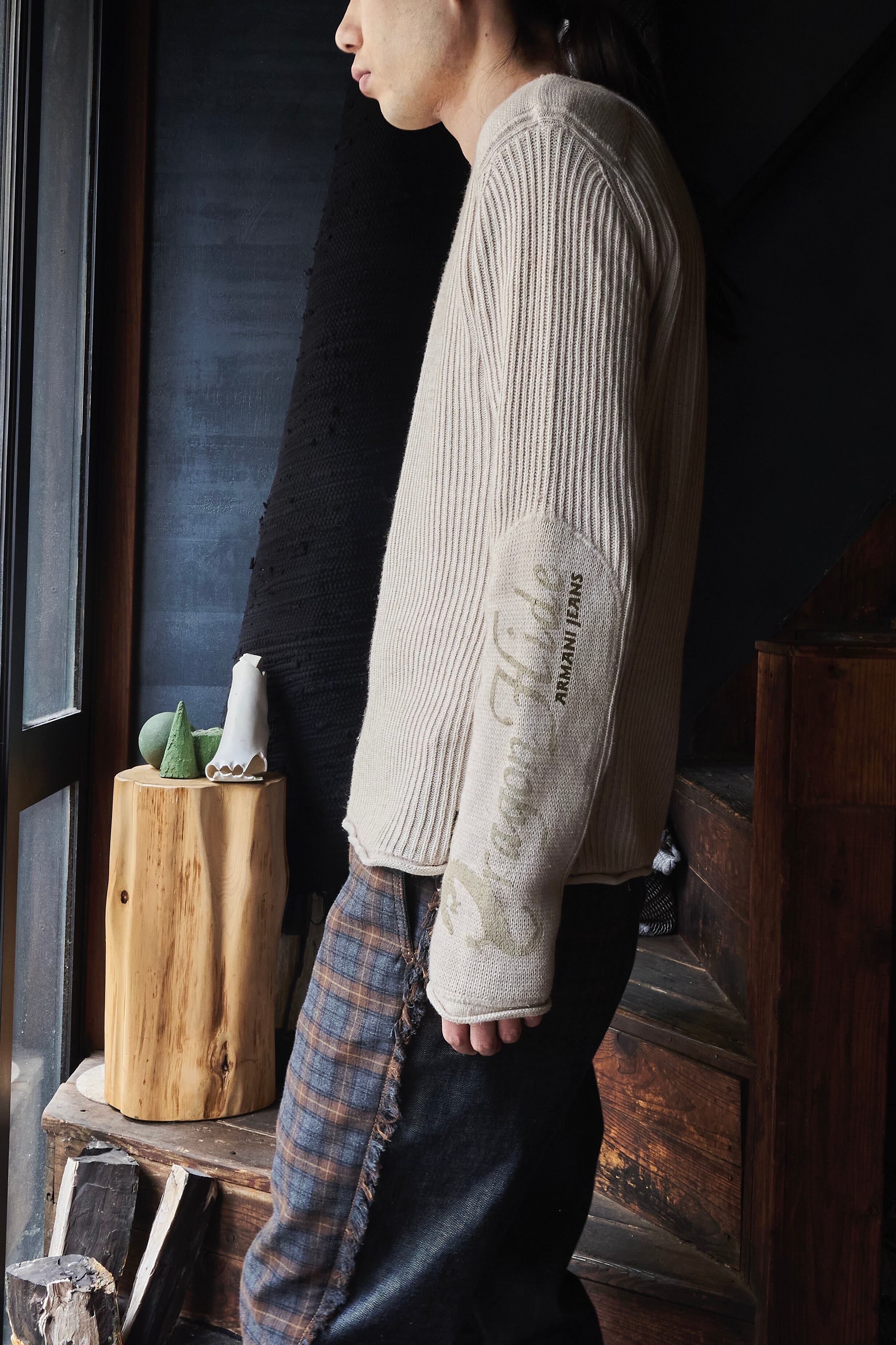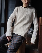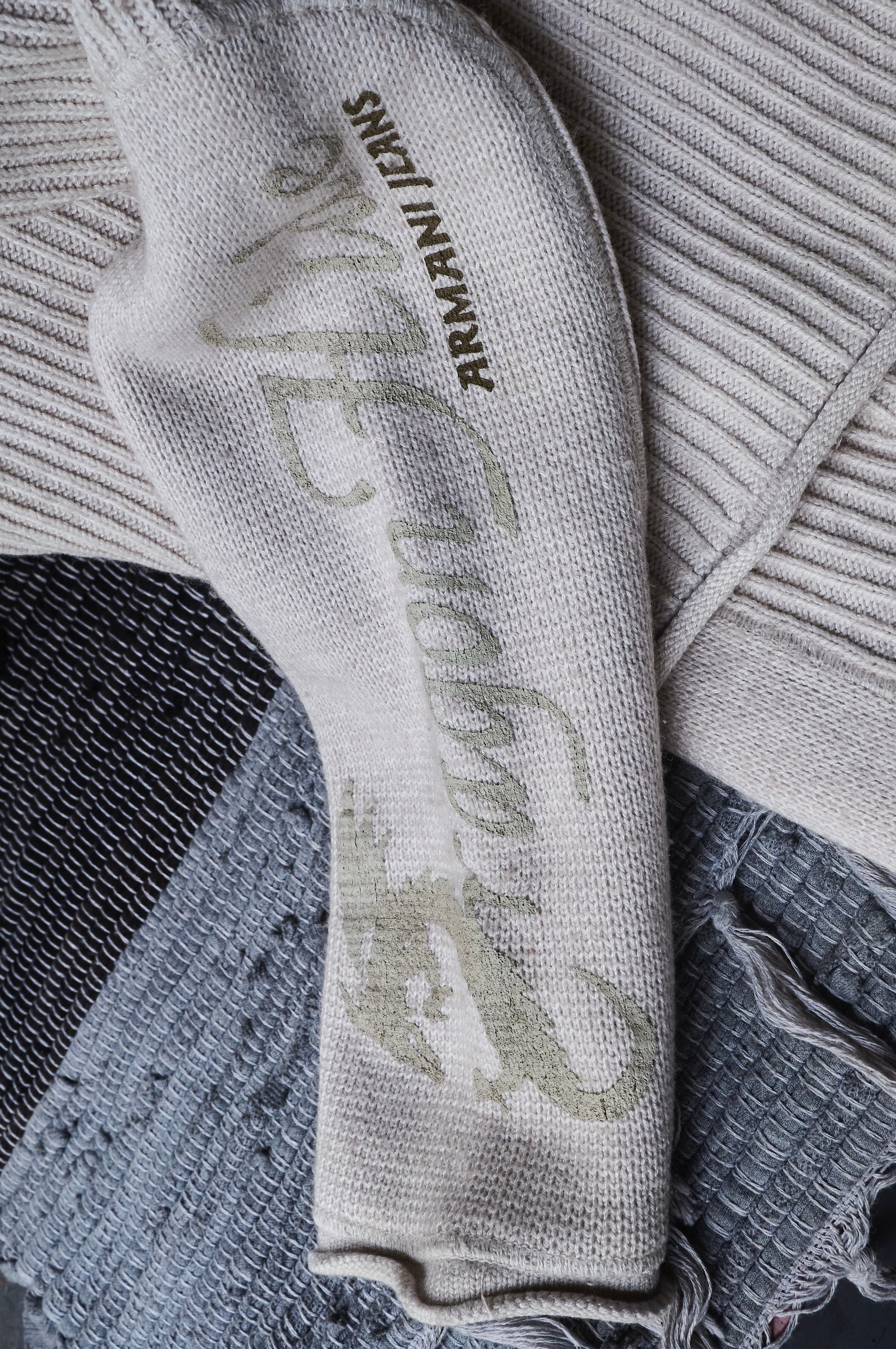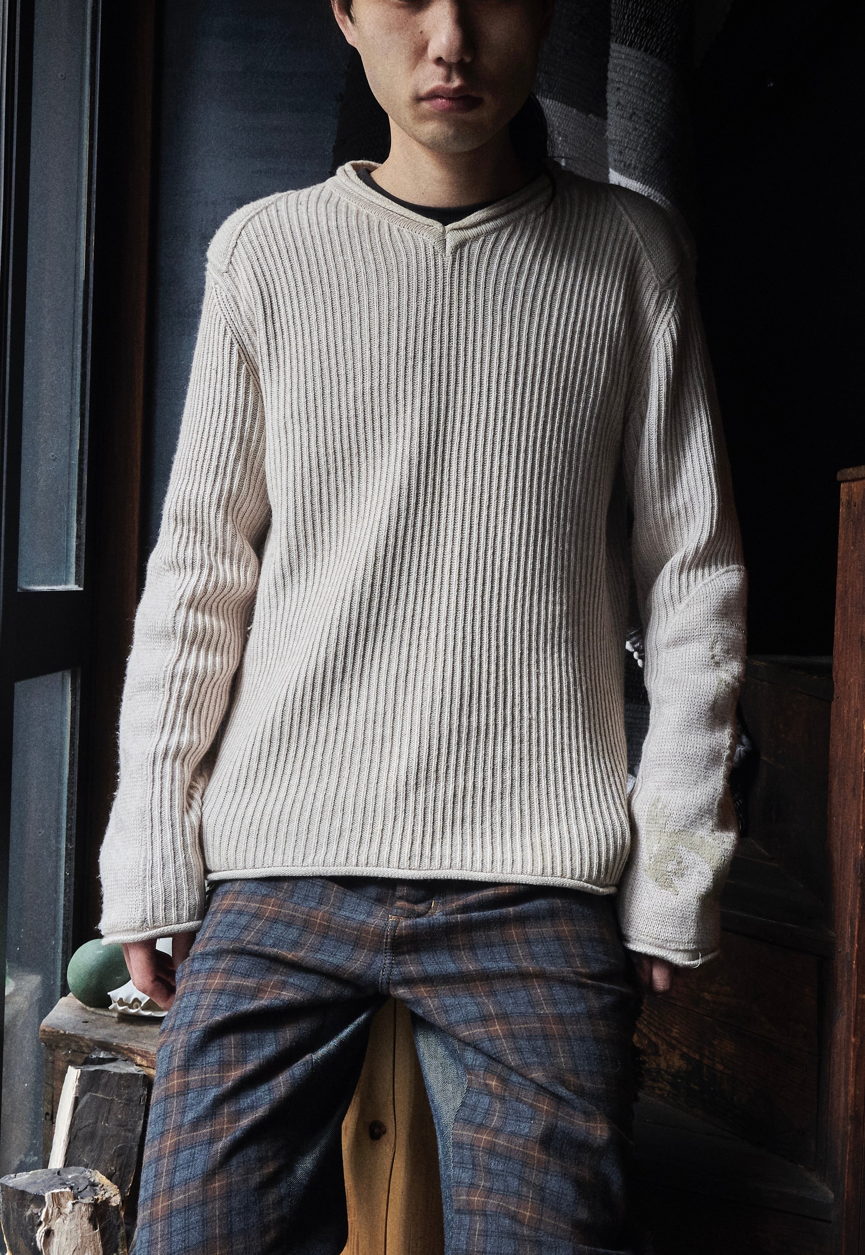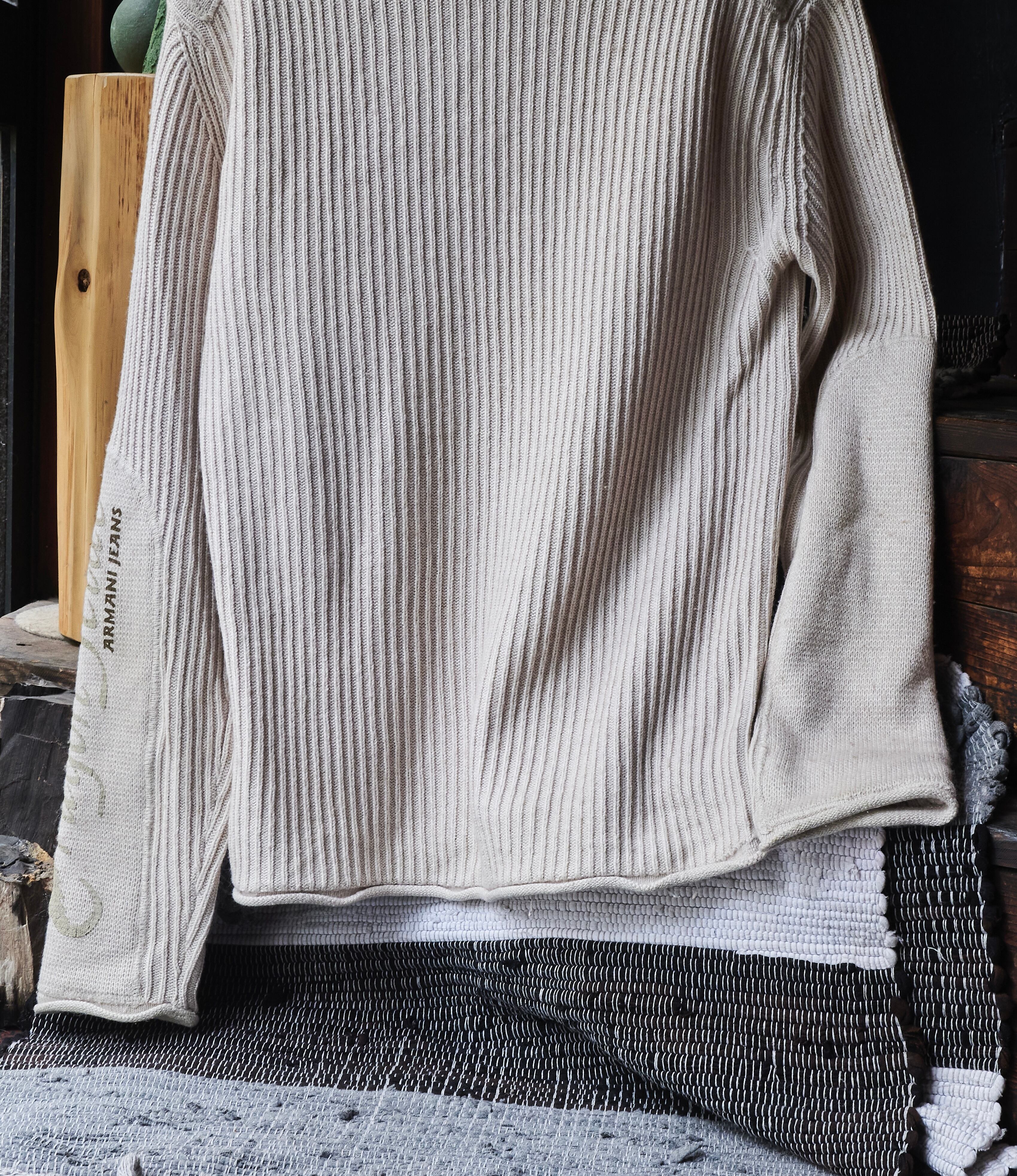 ARMANI jeans Acrylic × wool × cotton loose V-neck commando pattern rib knit