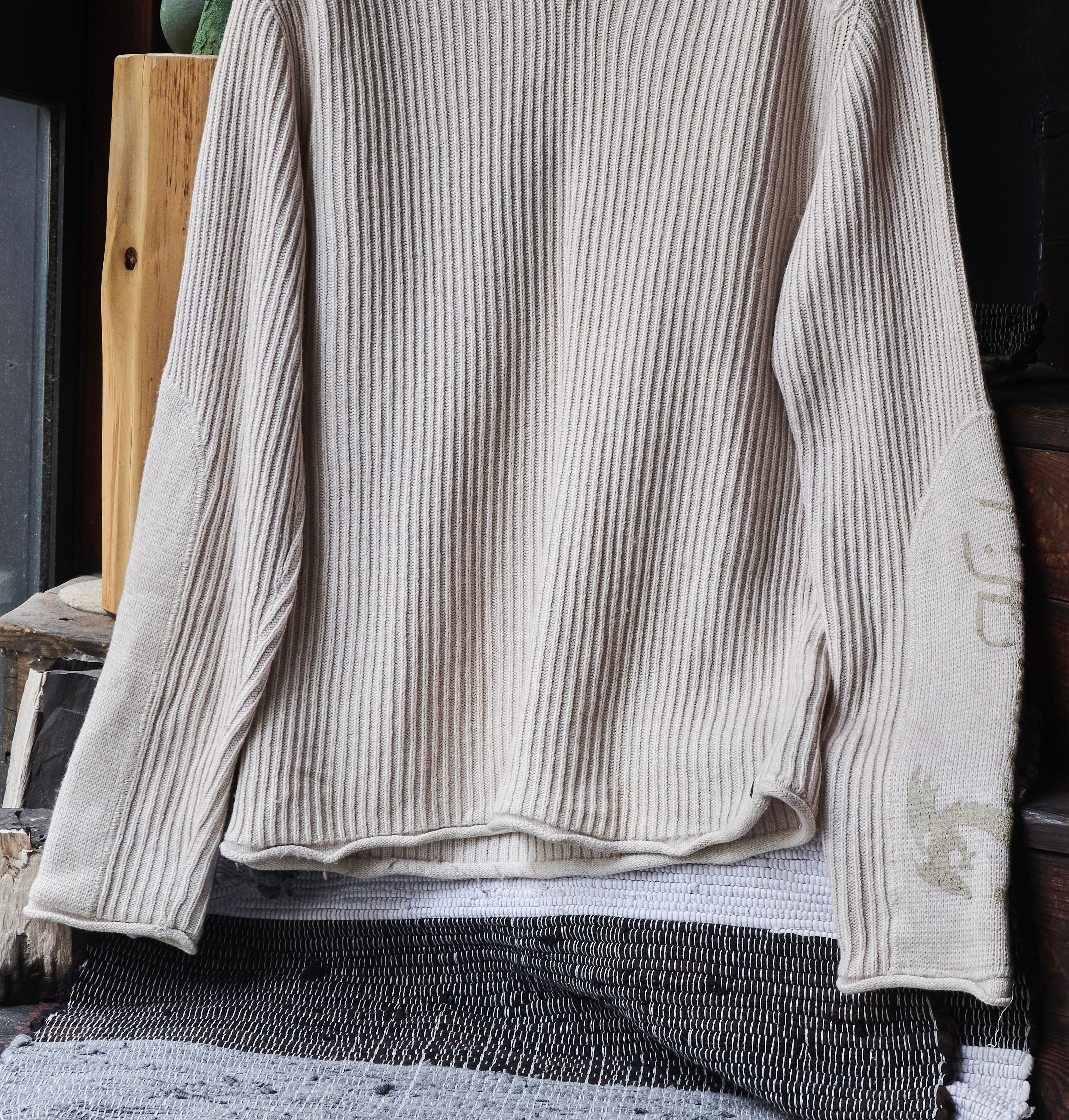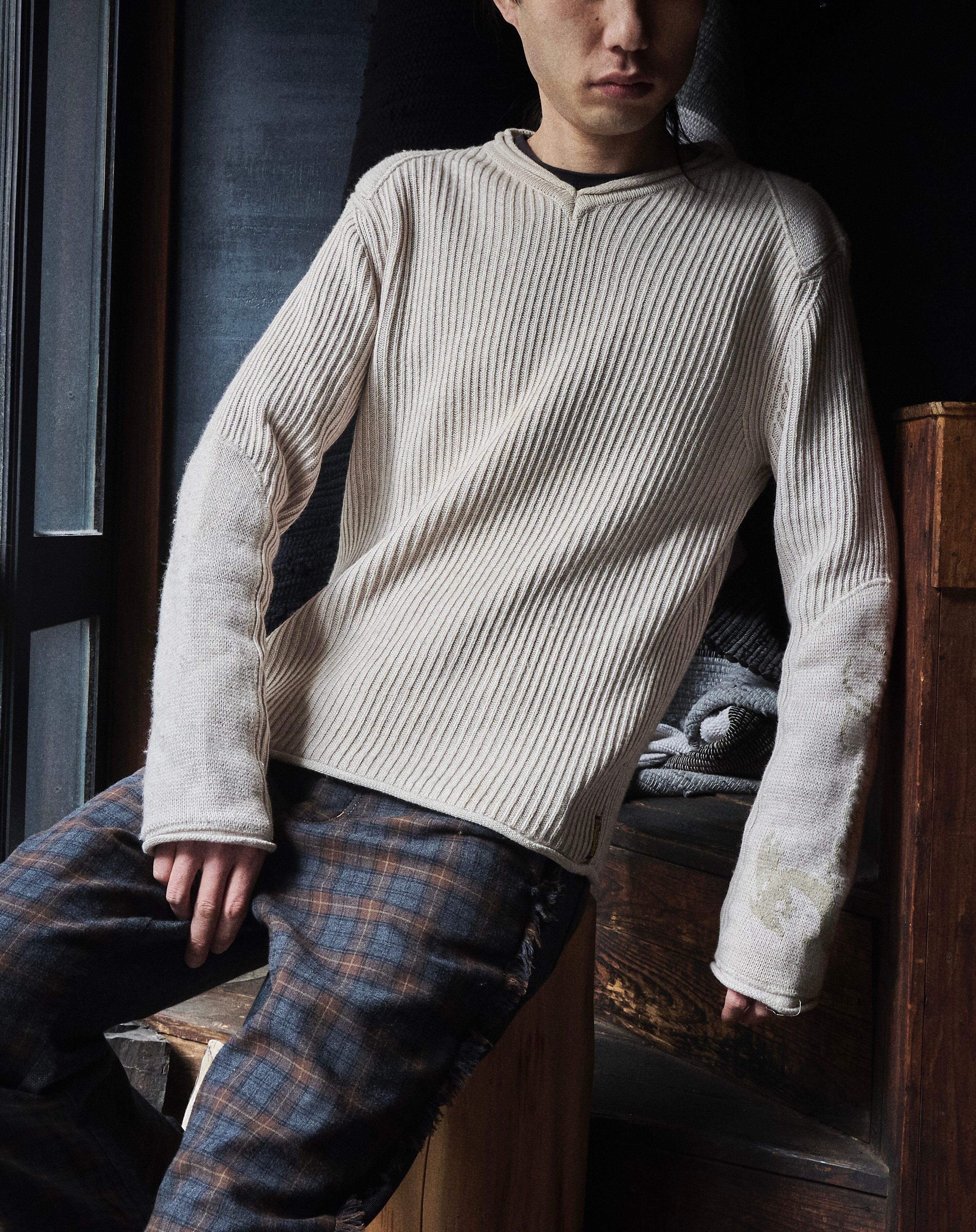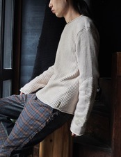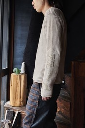 編み地はアクリル×ウール×コットンの混紡生地で作られており、触った事ありそうで触ったことないような、程よい重厚感。