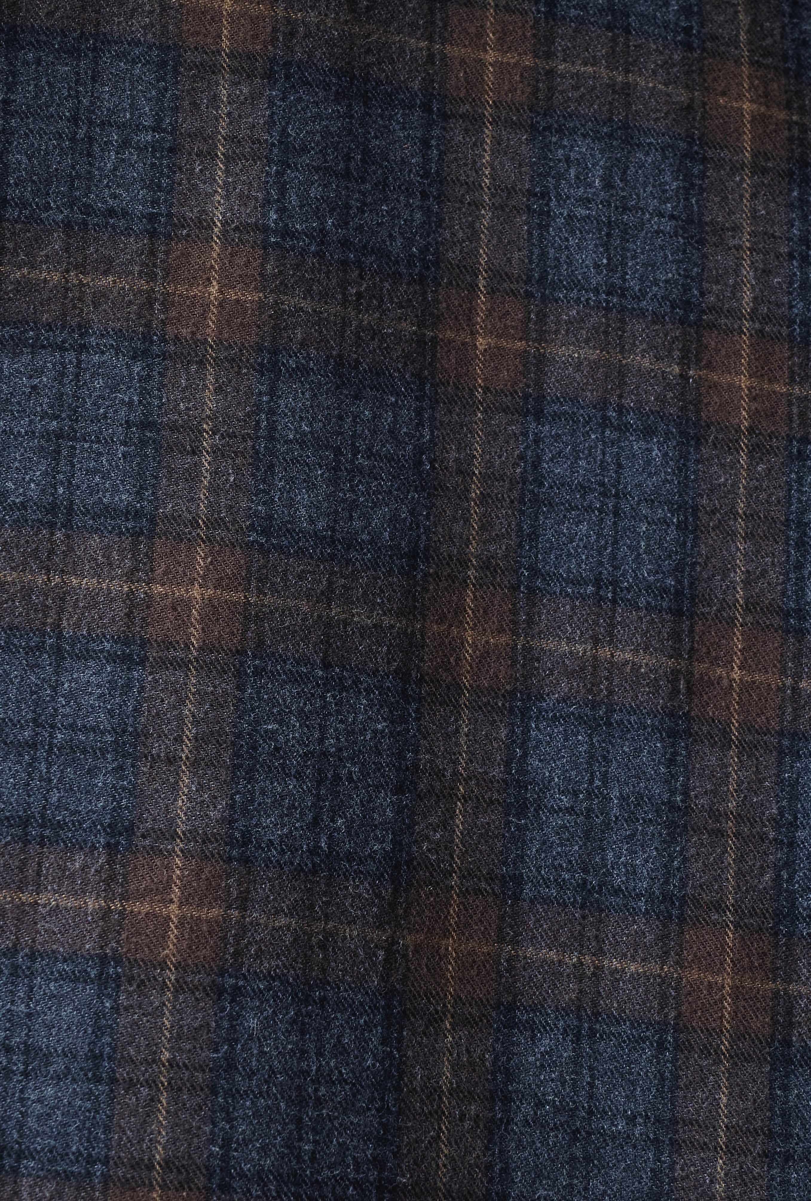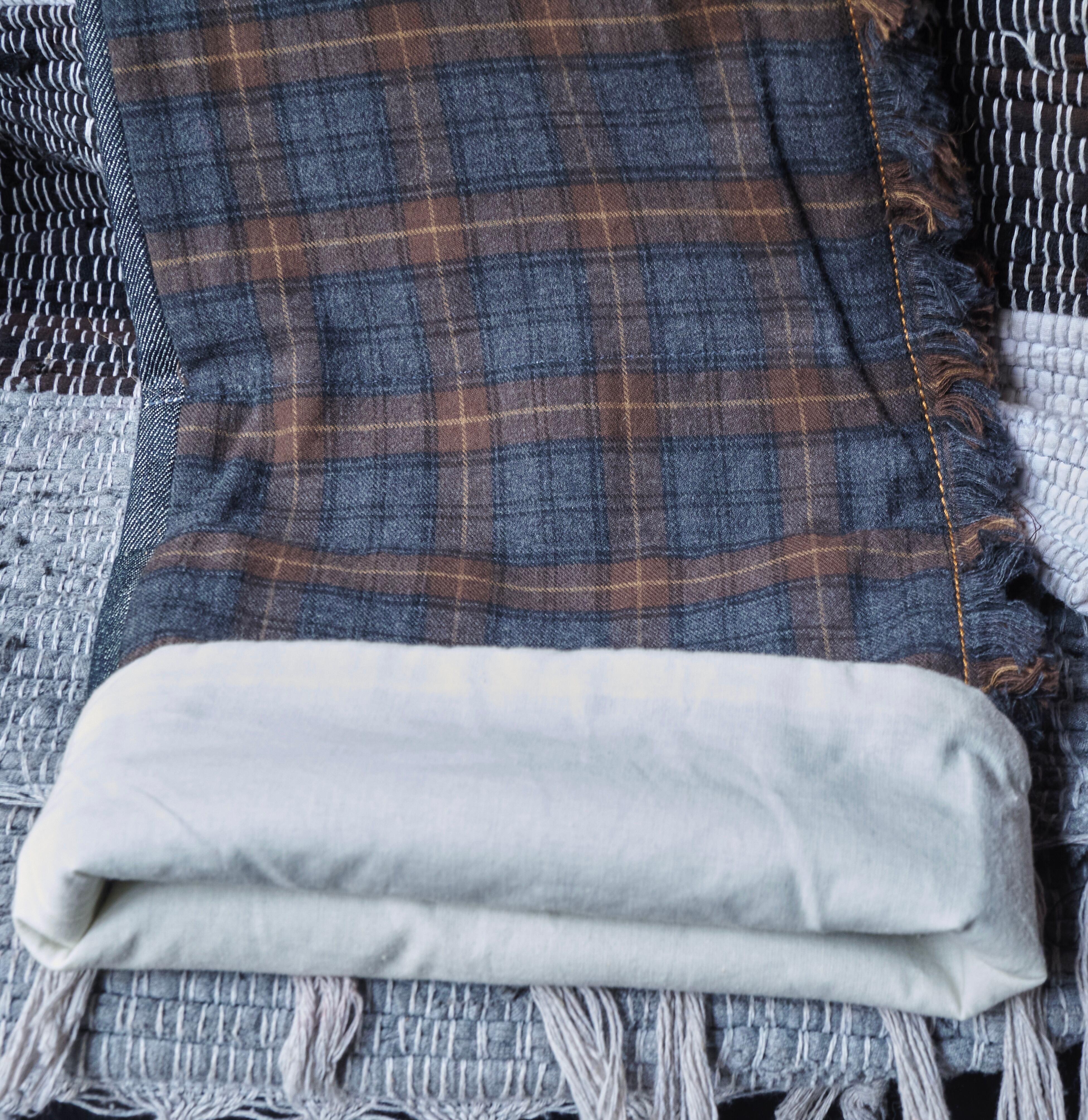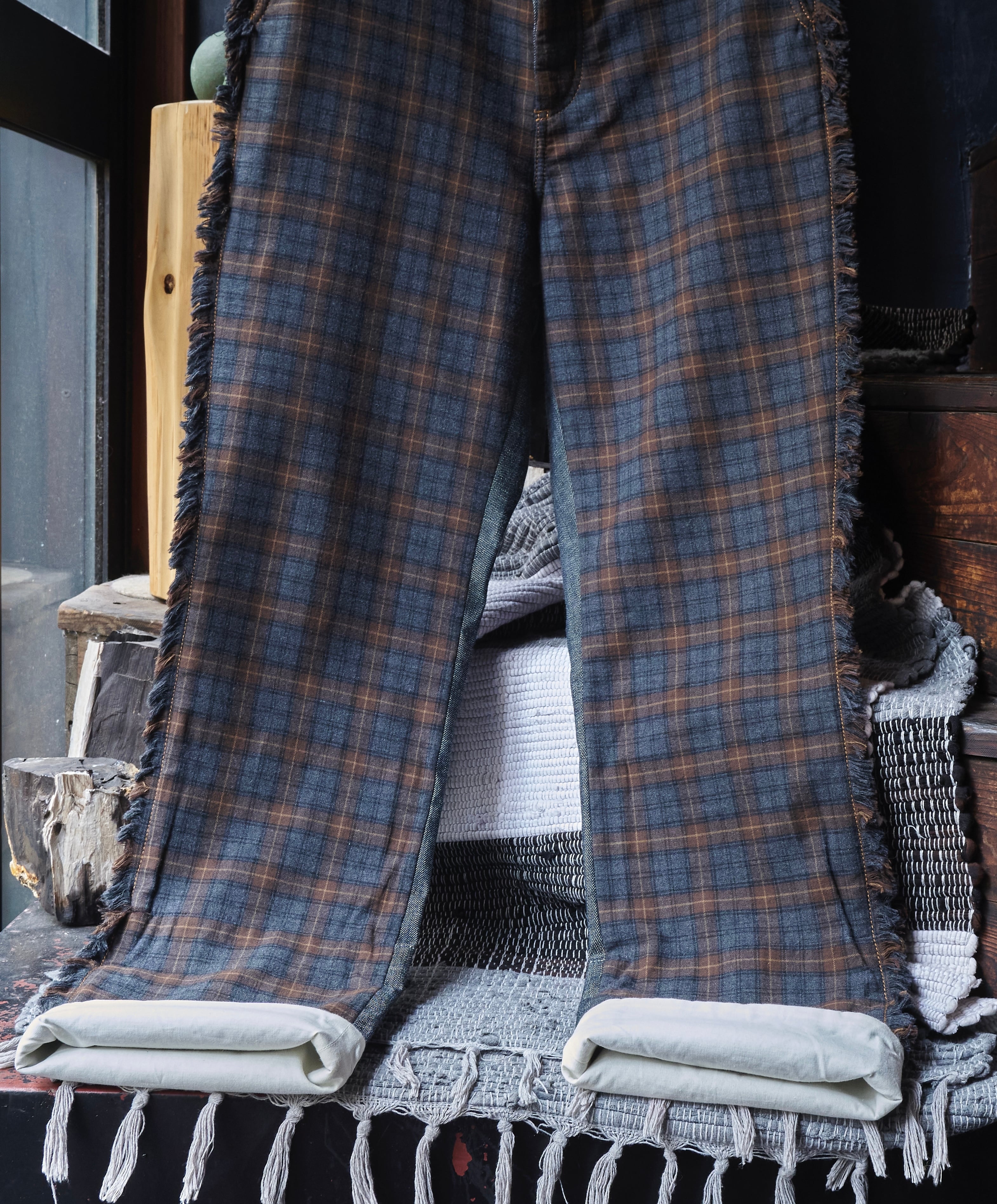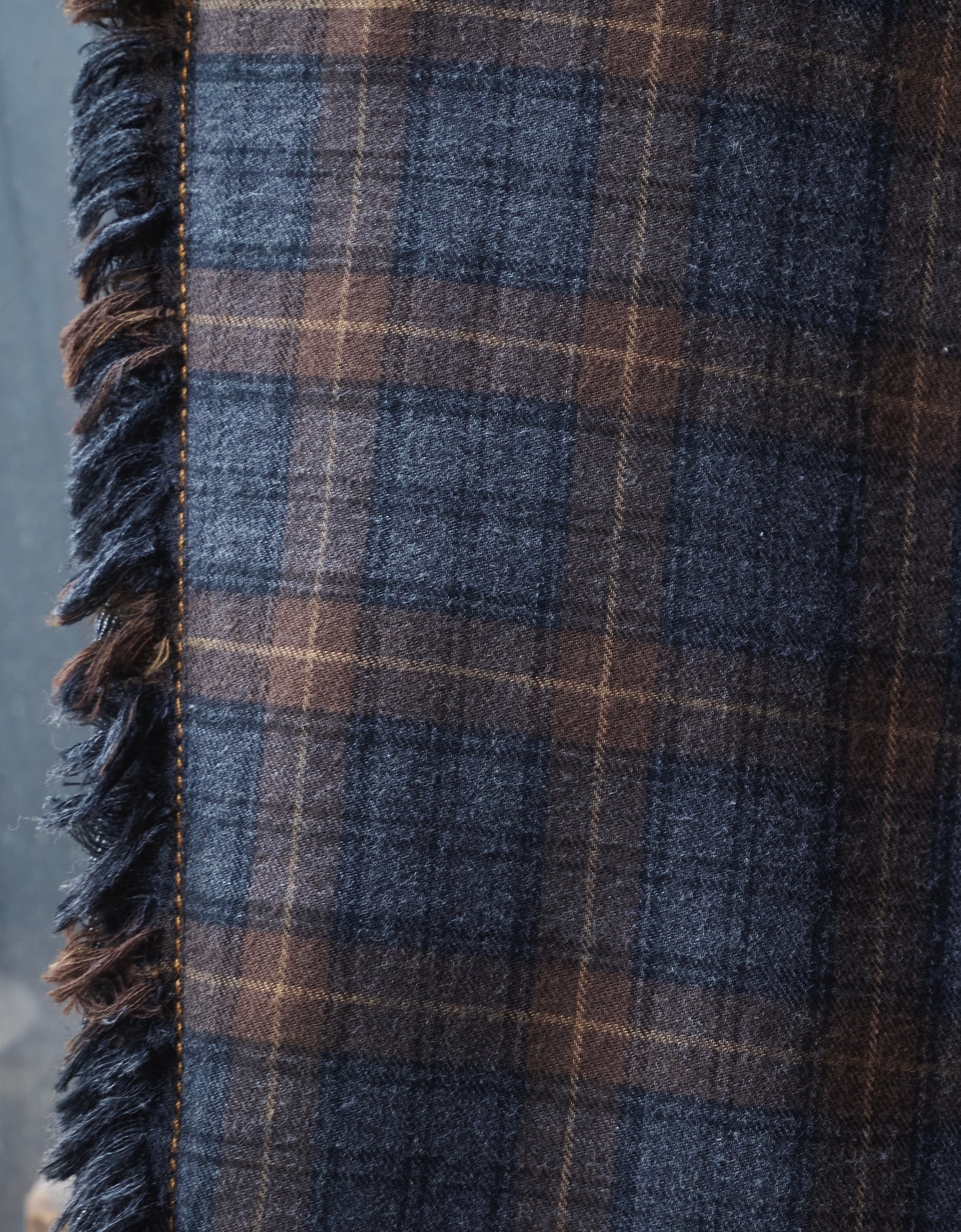 前面にはフランネル生地を使用、フリンジにも同生地を。