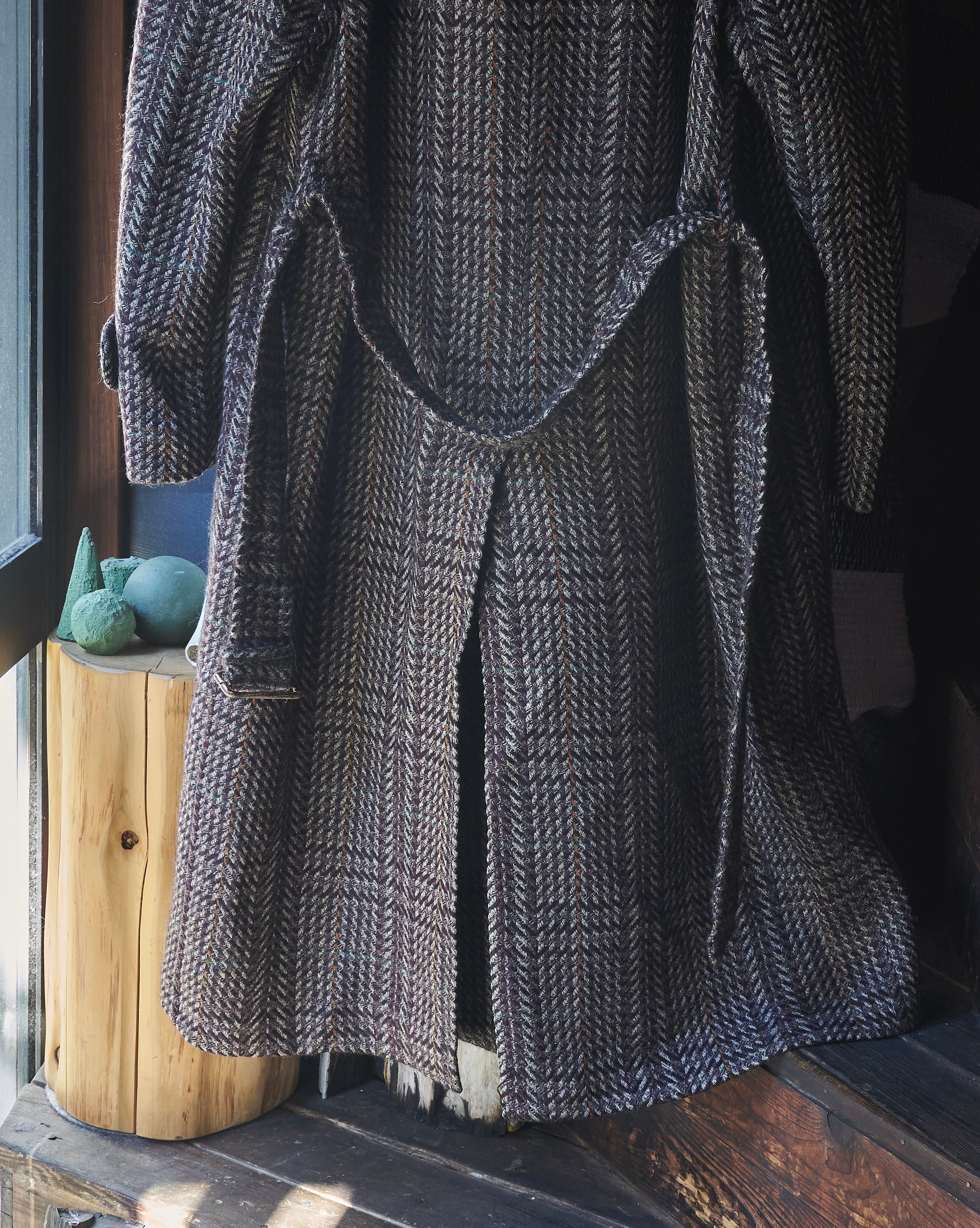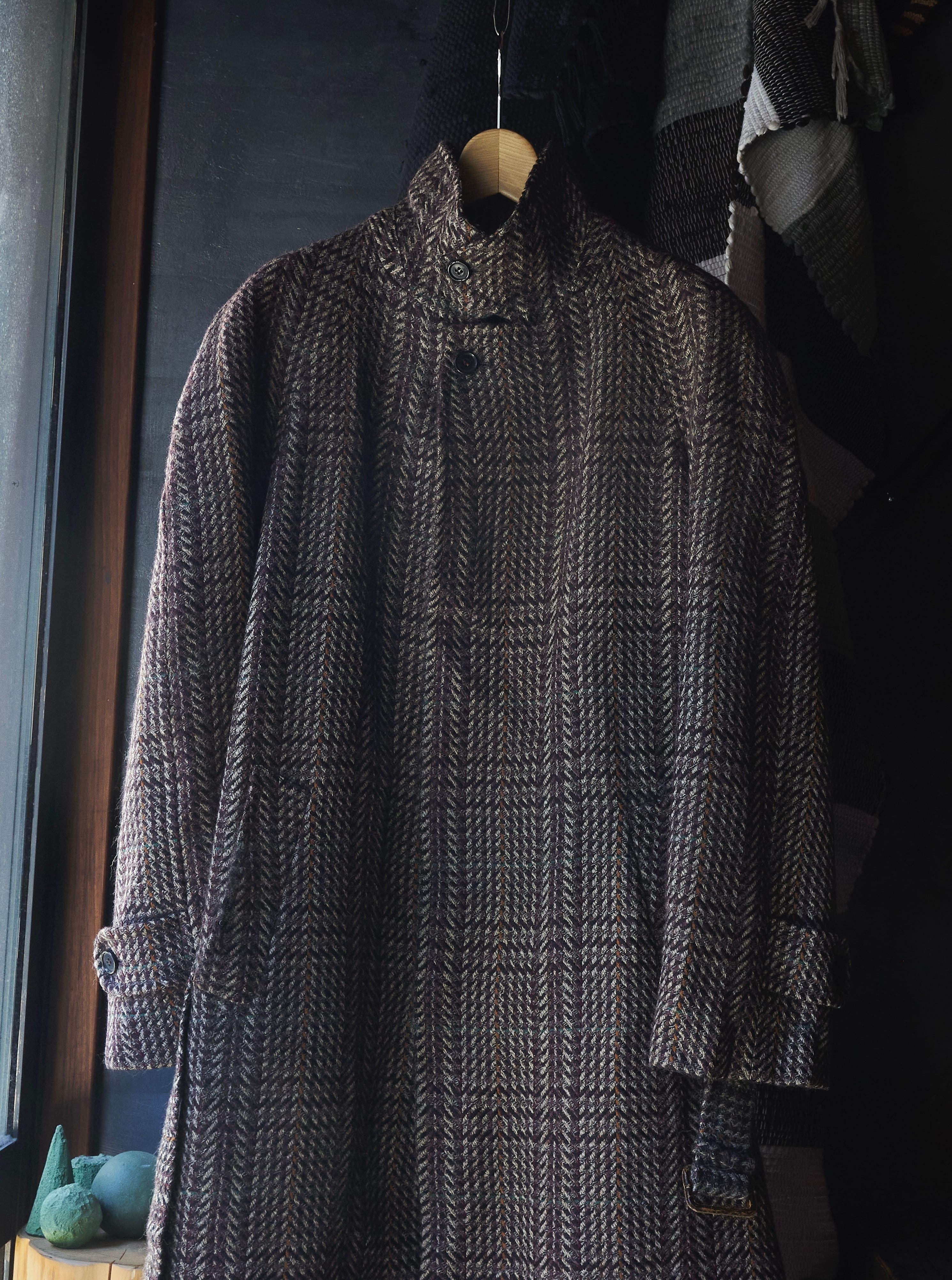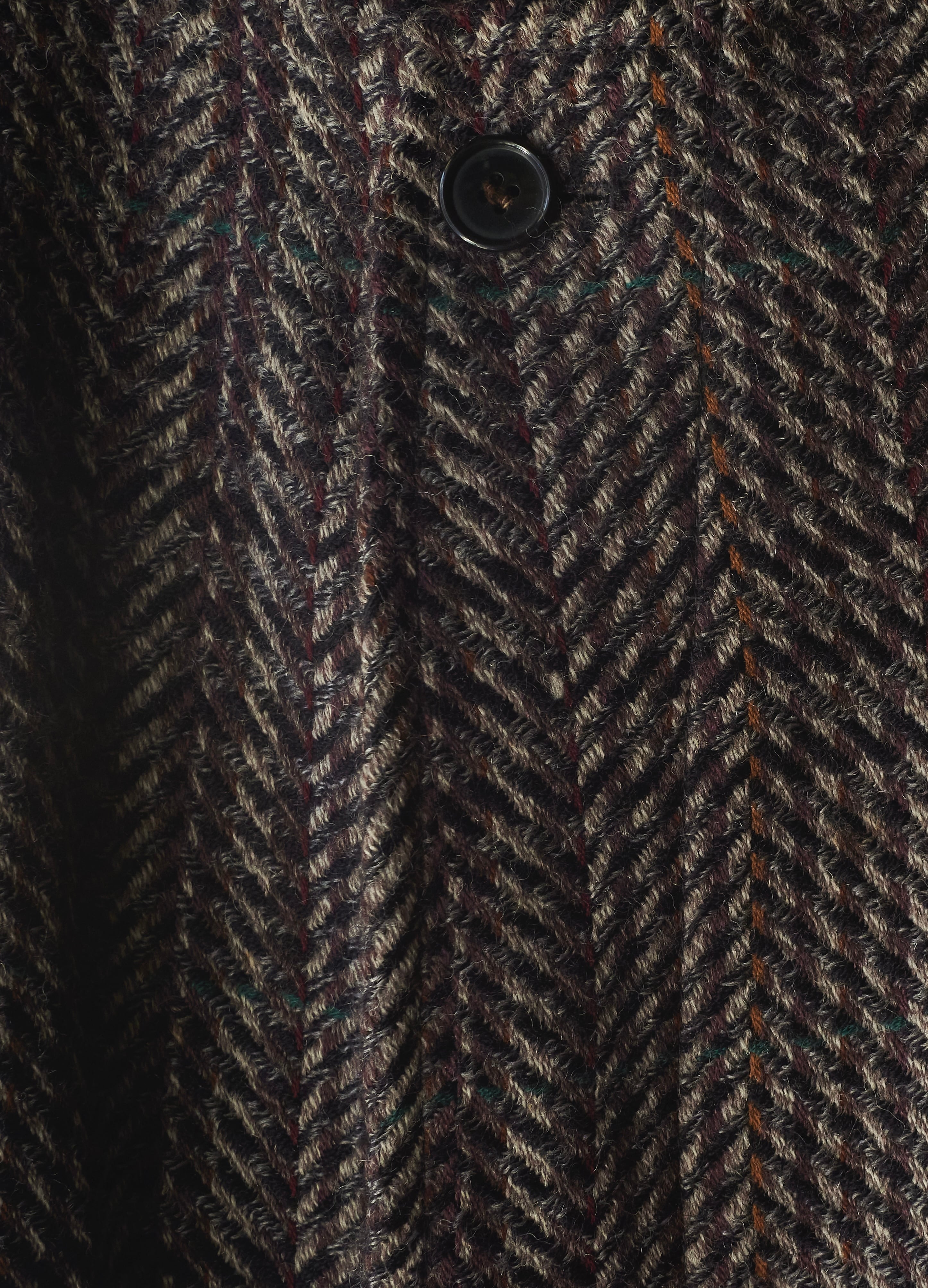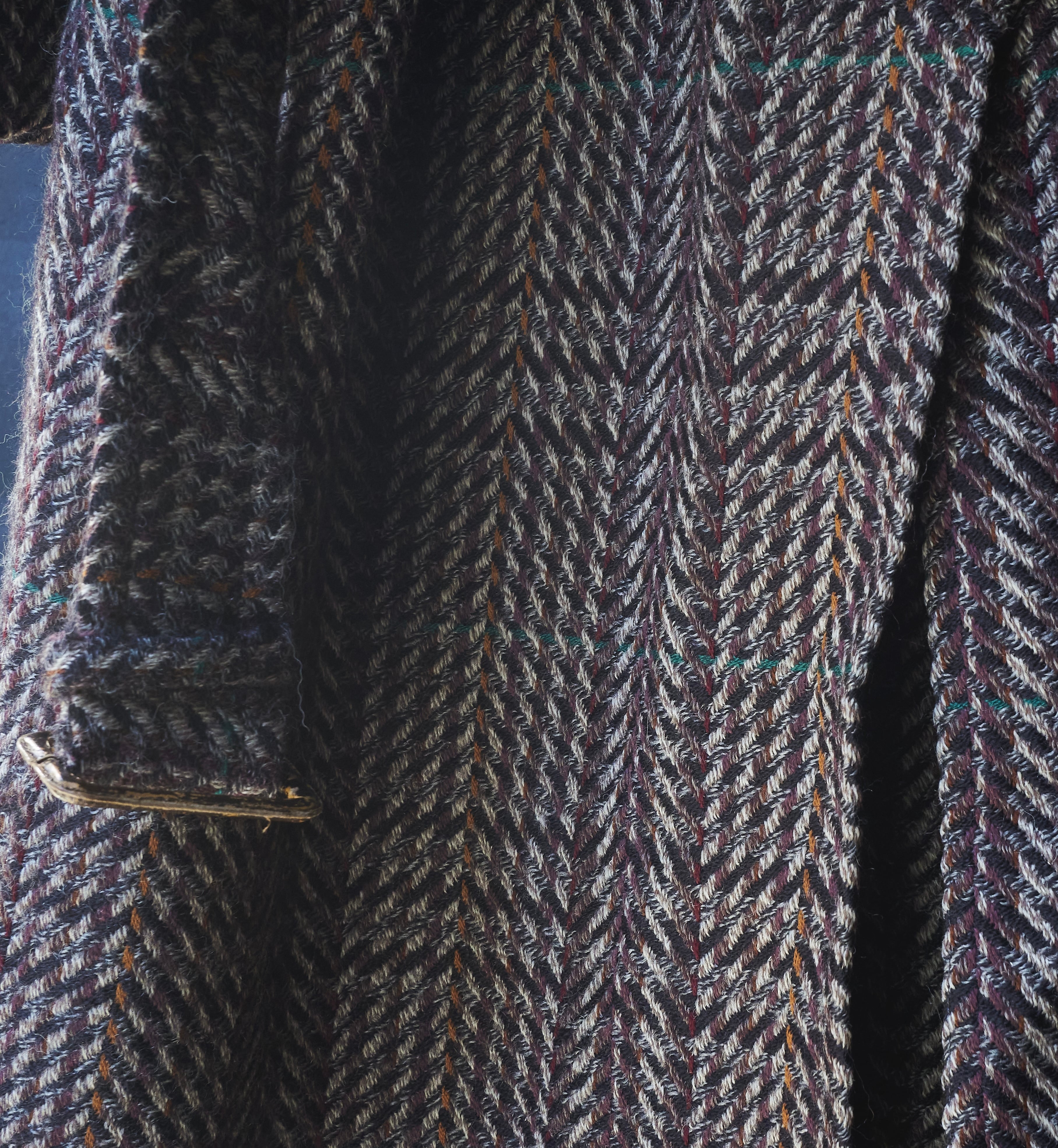 ツイードのウールに鮮やかな色合いが浮き立つ。