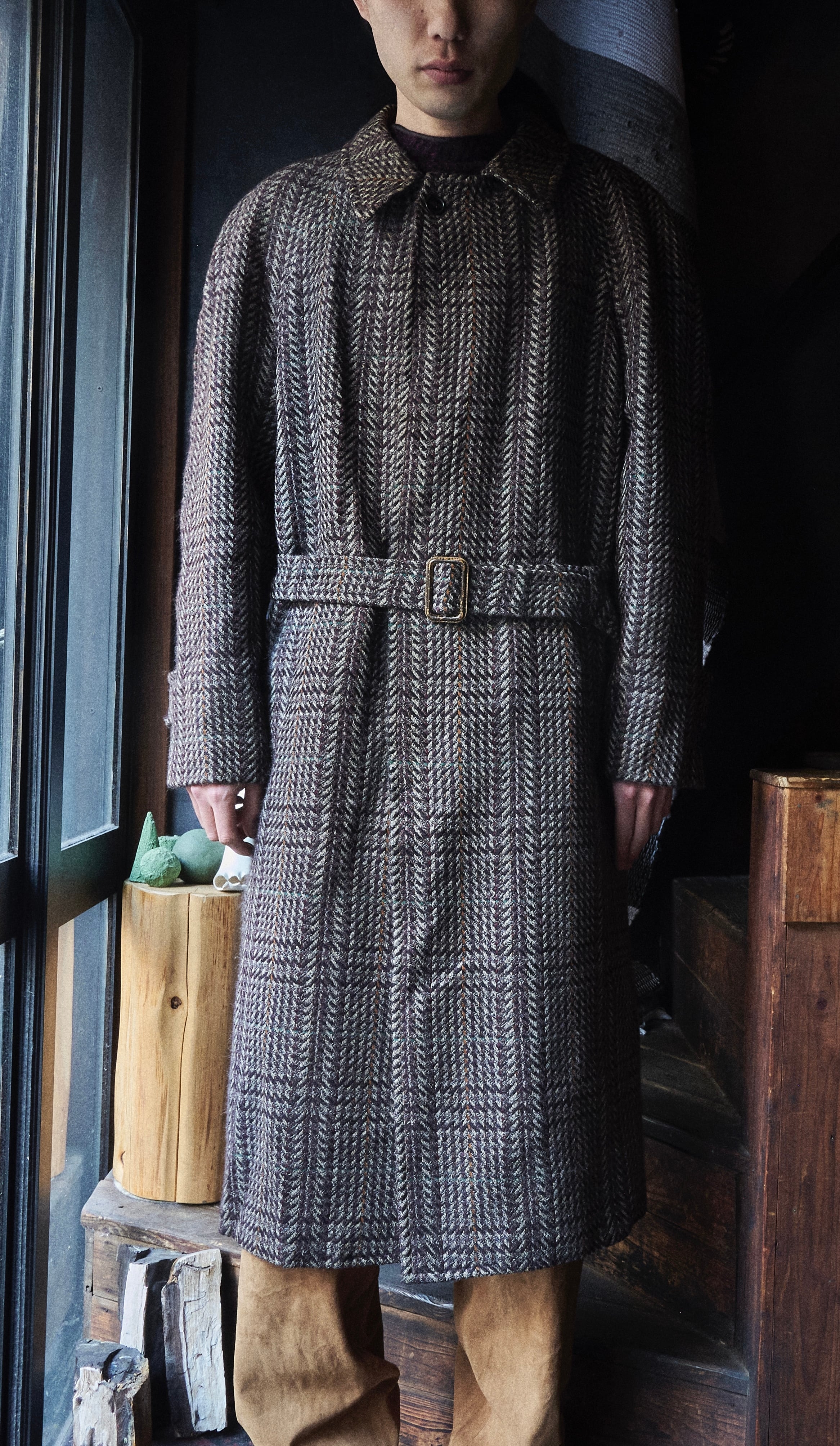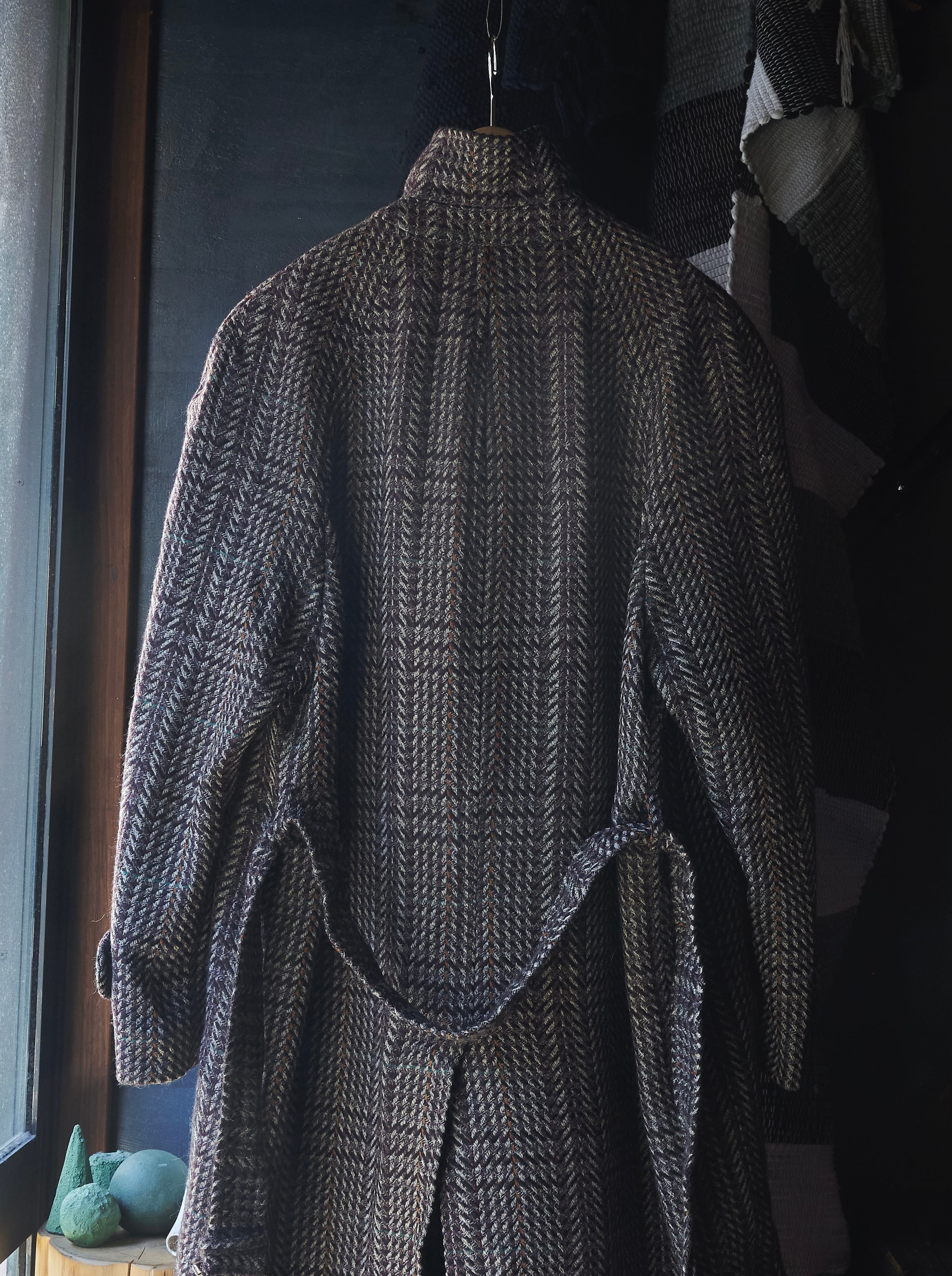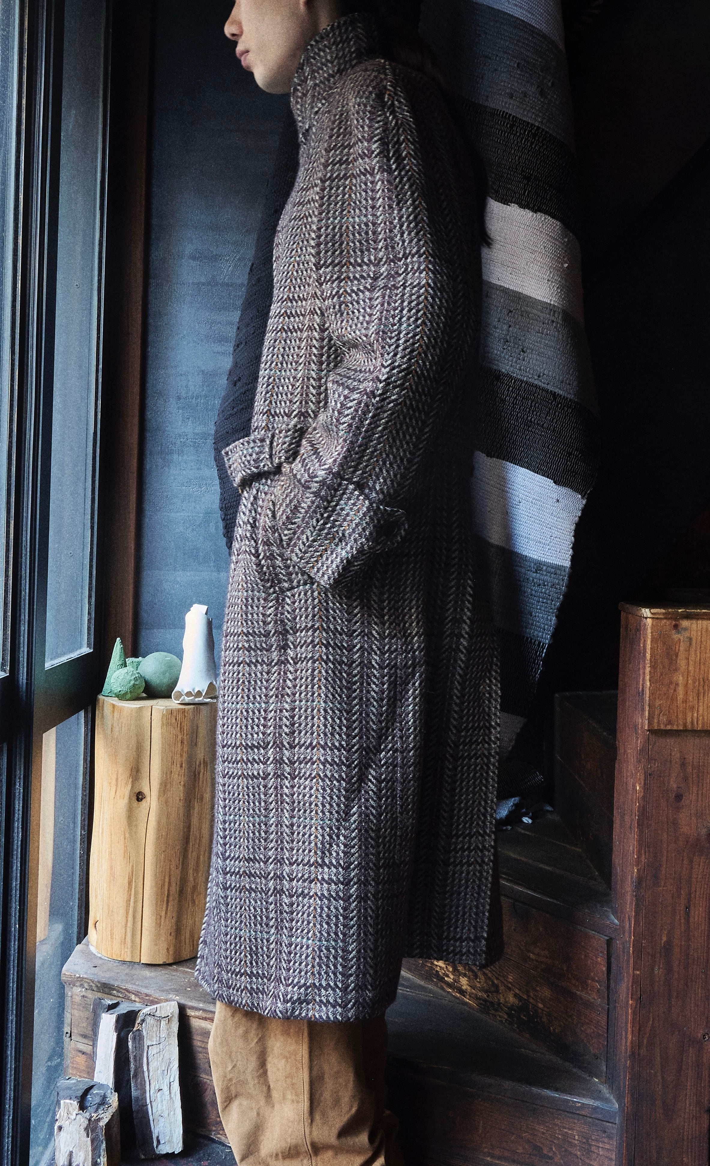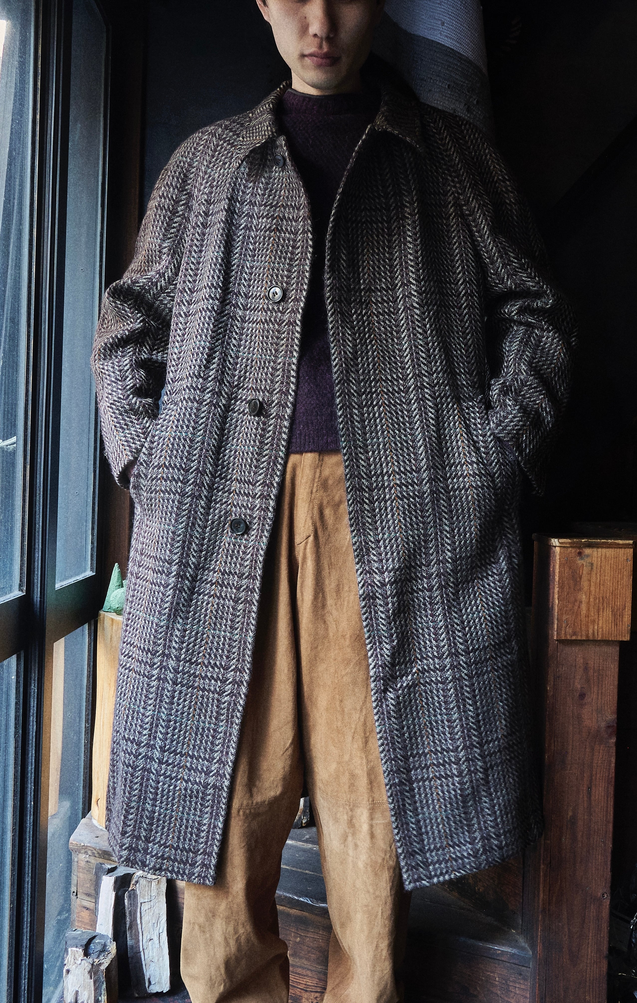 ツイードのウールに鮮やかな色合いが浮き立つ。
