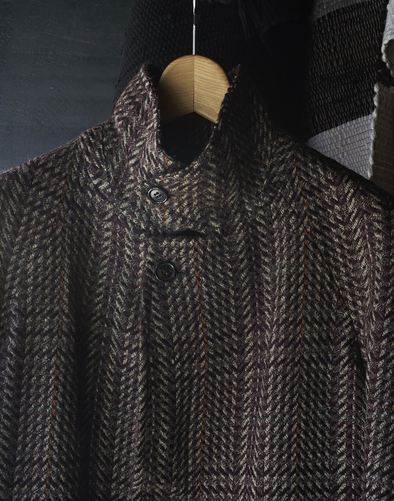 80s euro Tweed Nep fabric Chin Strap Pattern Coat