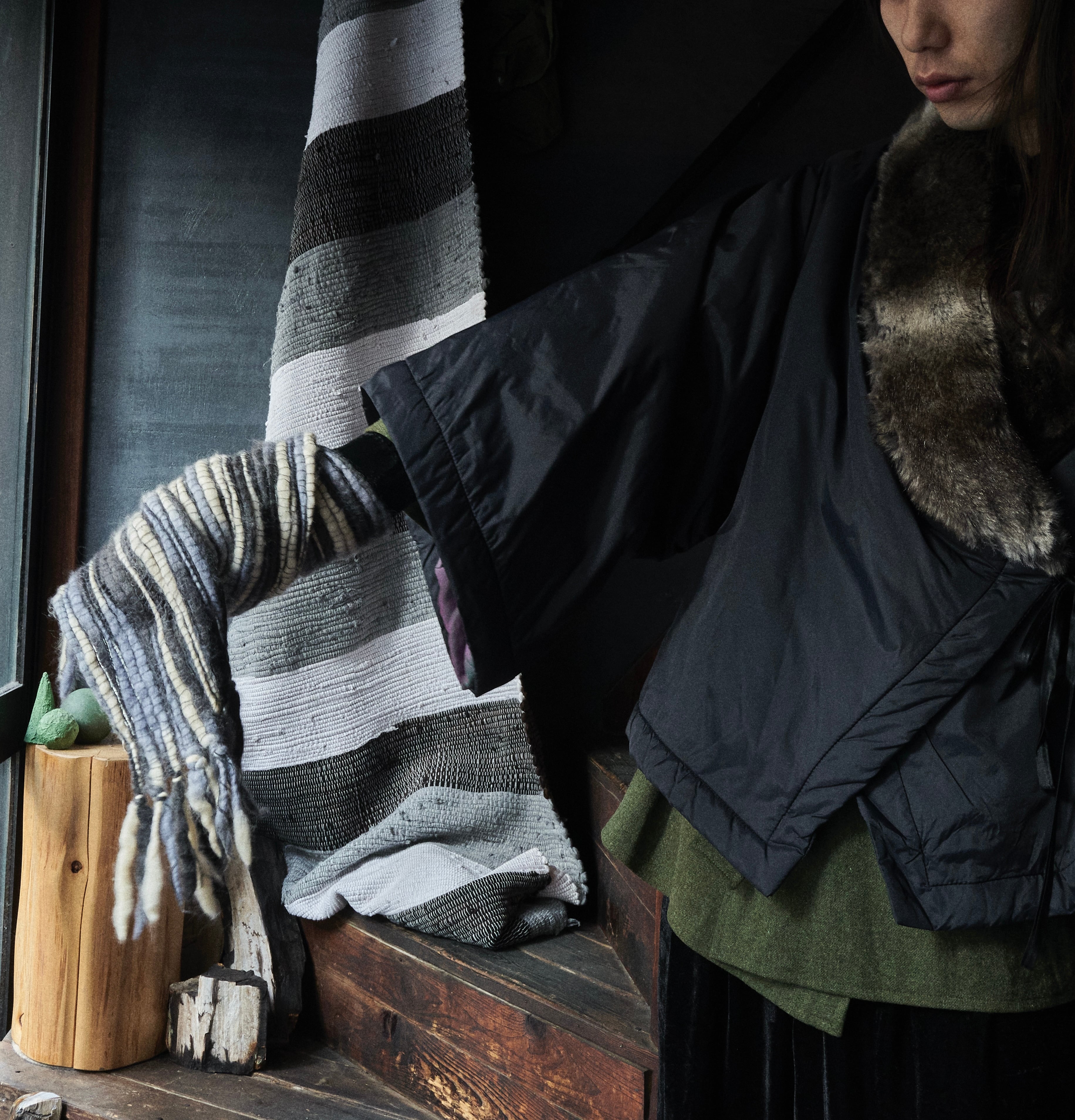 ウールの毛糸を繋ぎ合わせるように作られた。