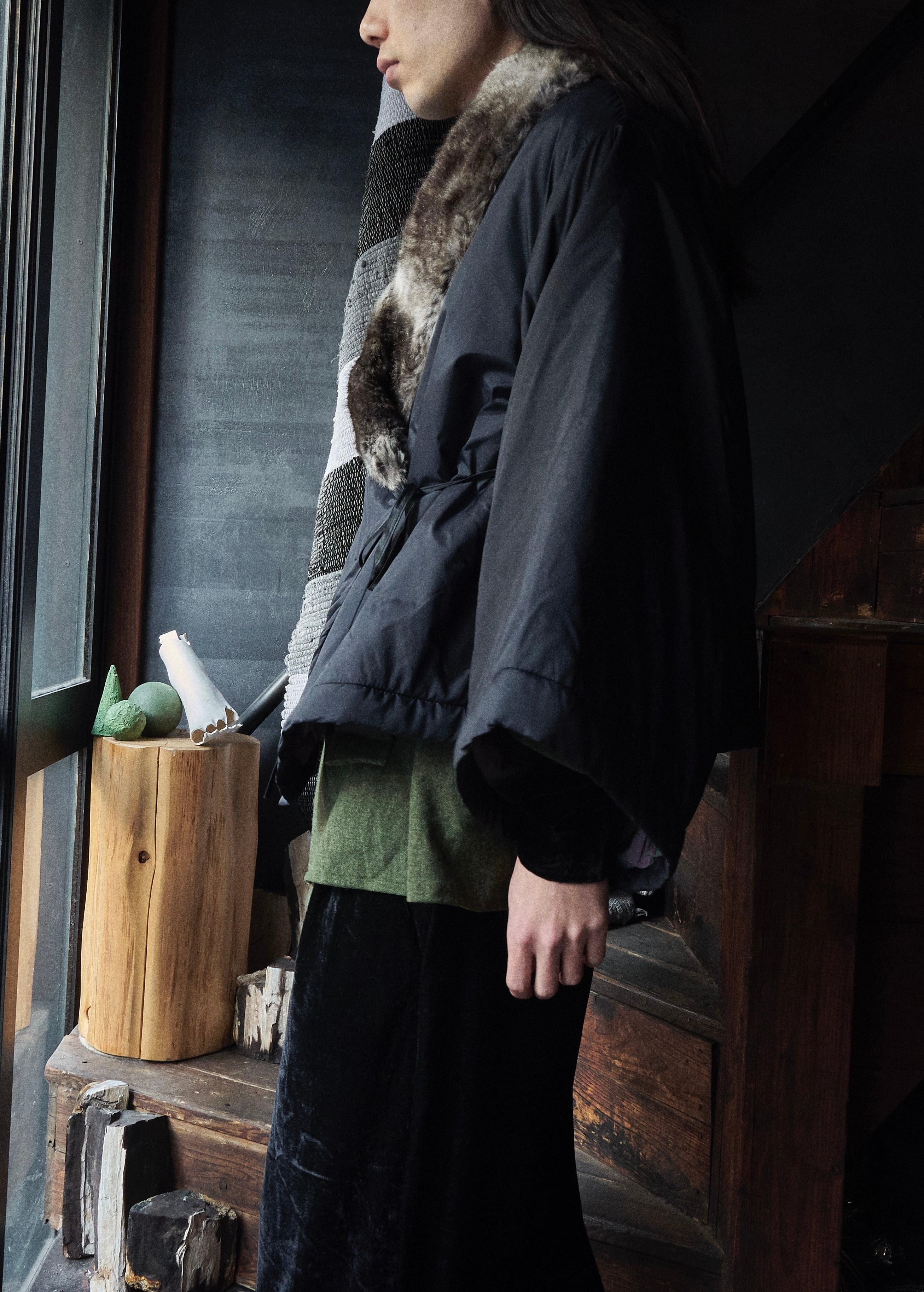 そんな着物スリーブのパターンを使用したパデットジャケット。