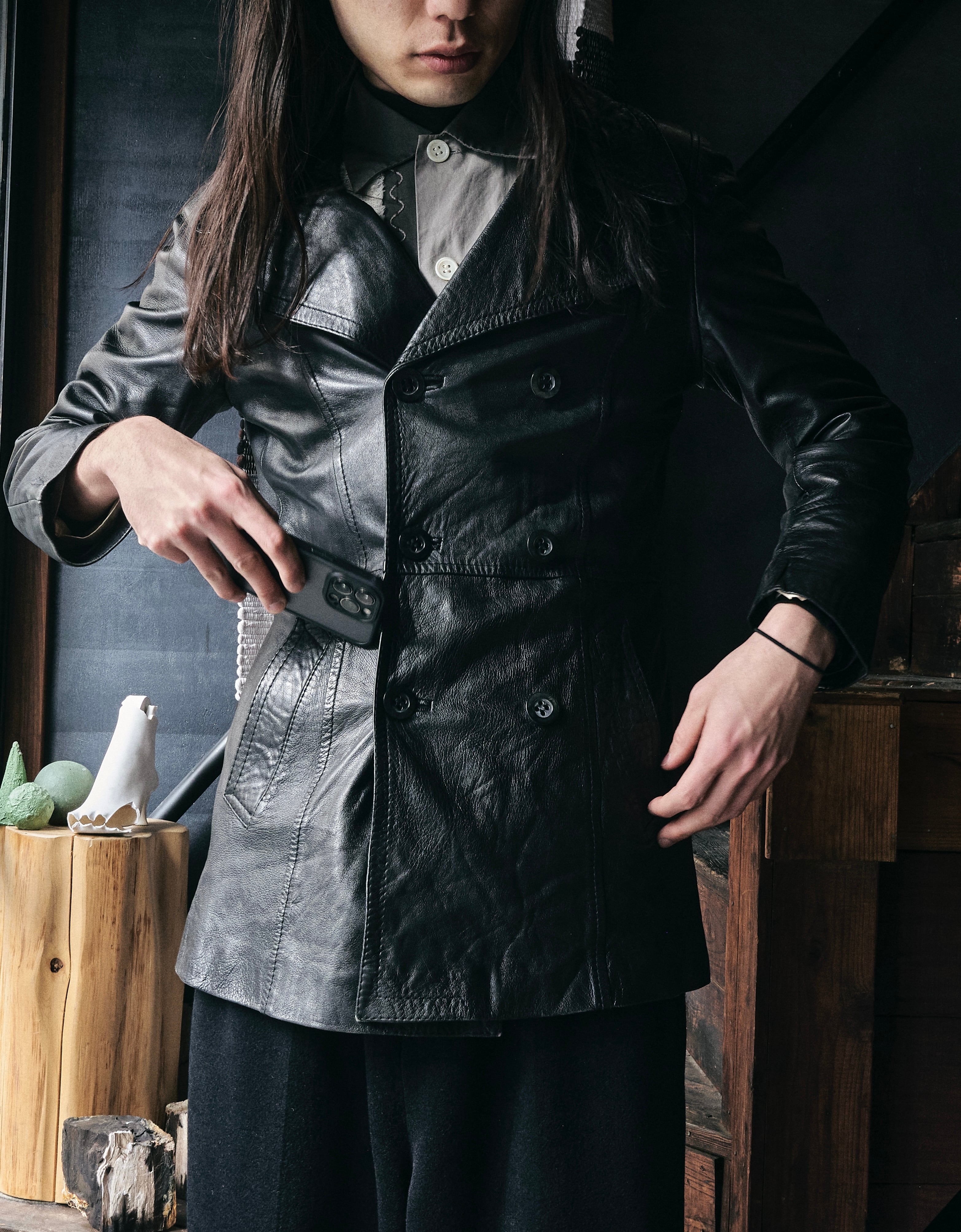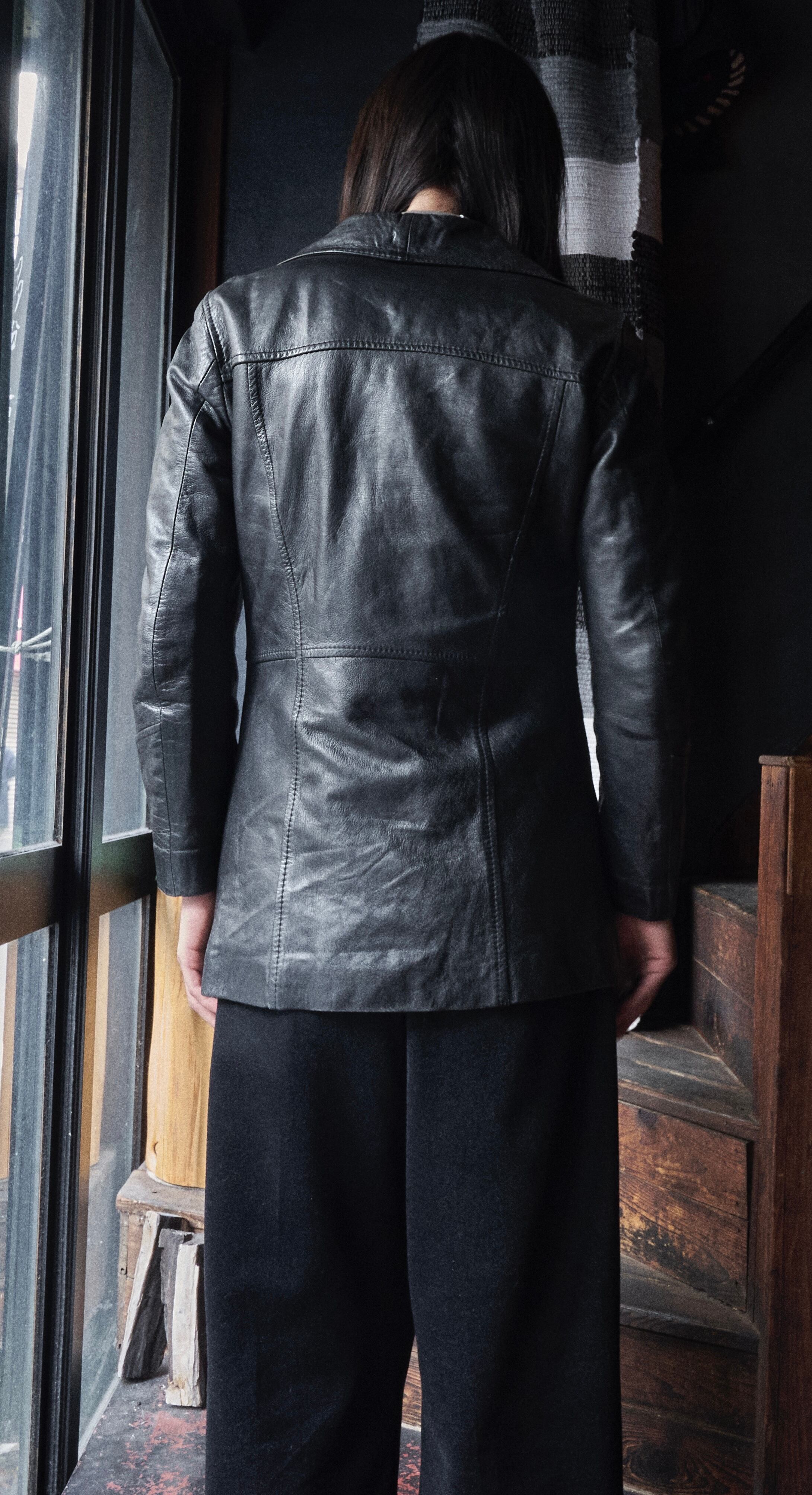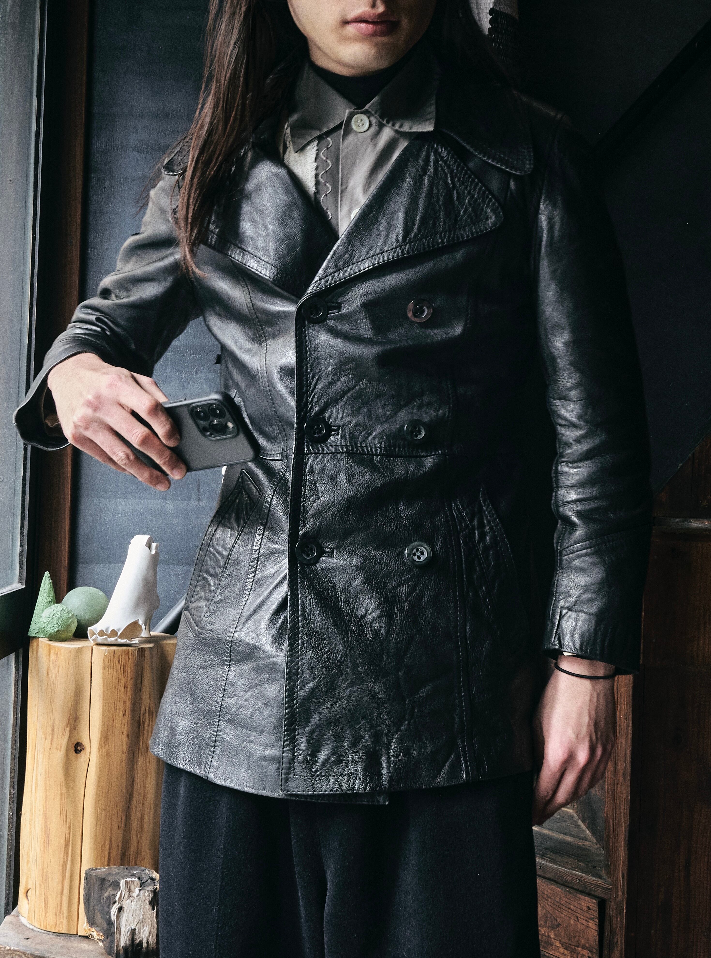 ダブルブレステーラードのレザーバージョン。