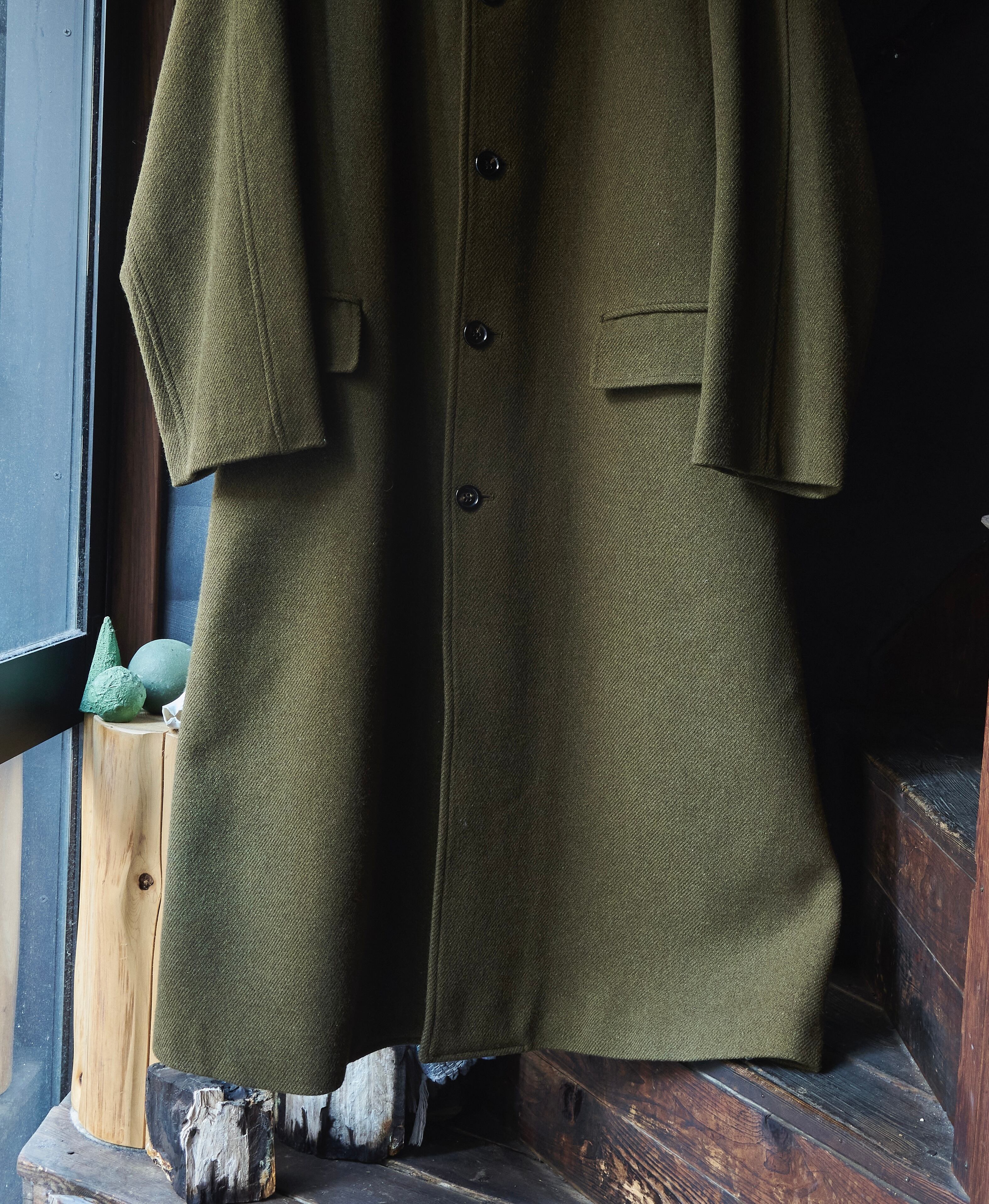 全く逆ベクトルのシンプルさが非常に服好きの心を刺激するコートかと。
