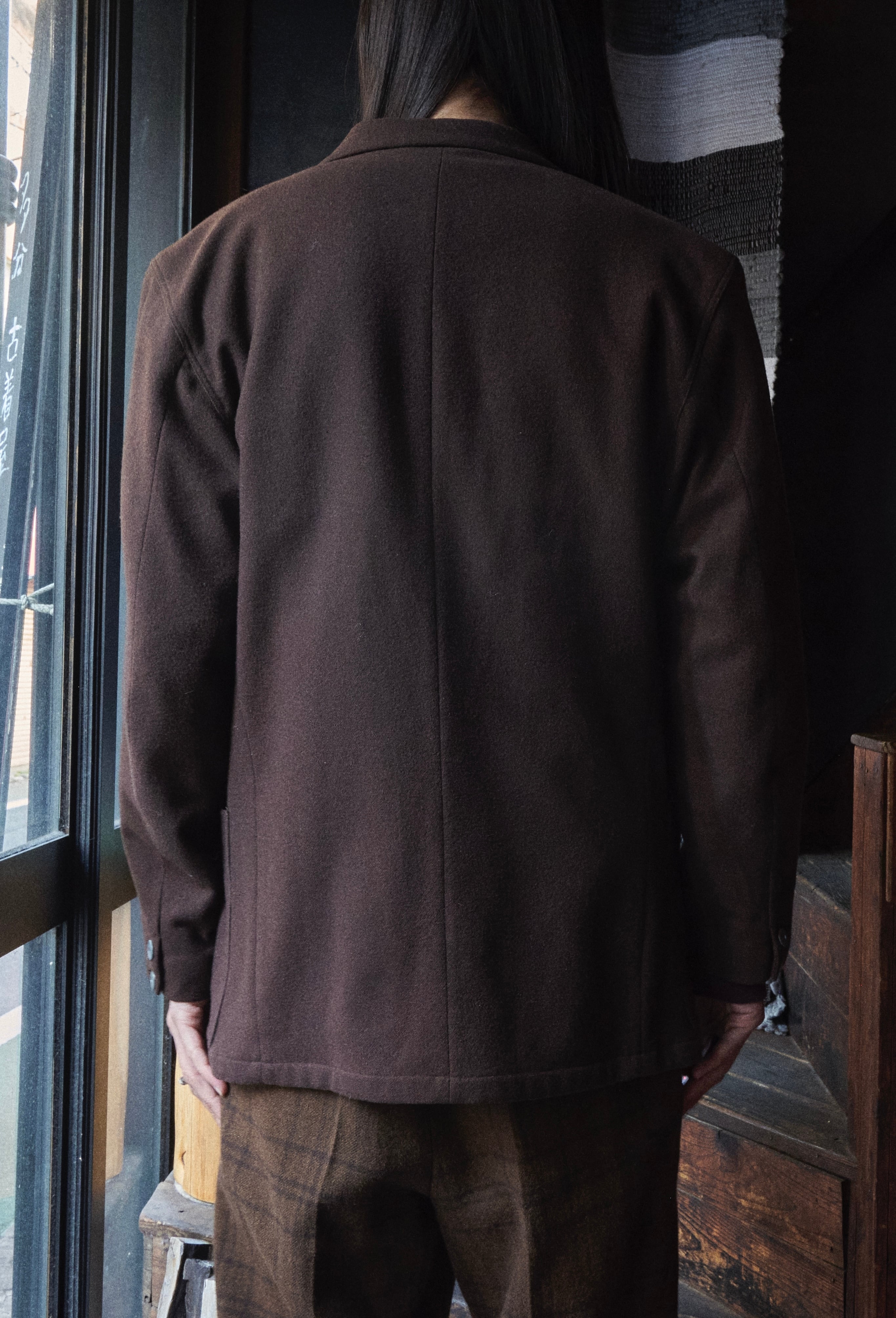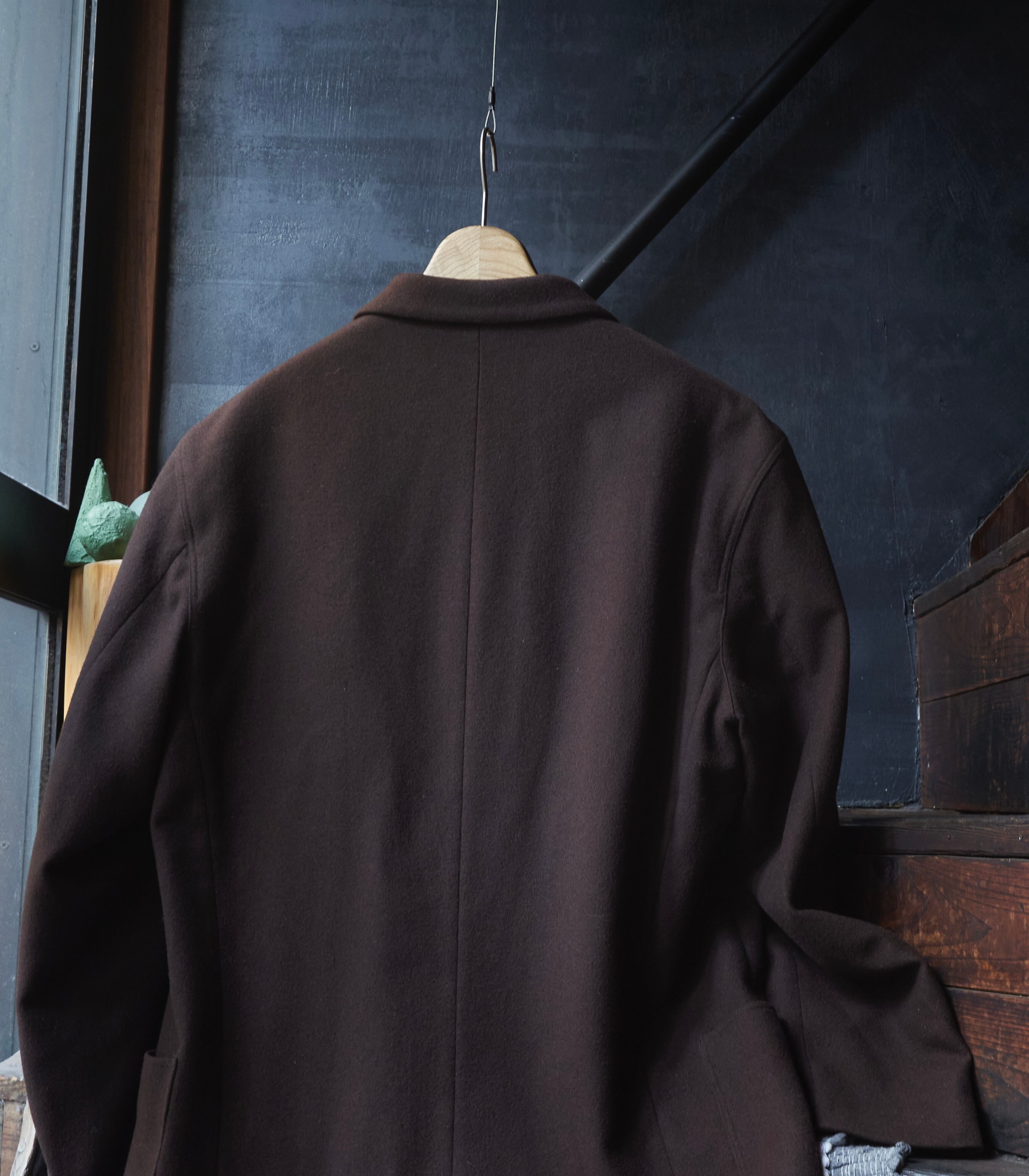 このジャケットはシンプルでどこかガウンを纏うかのようなディテールと質感が最高かと思っております。