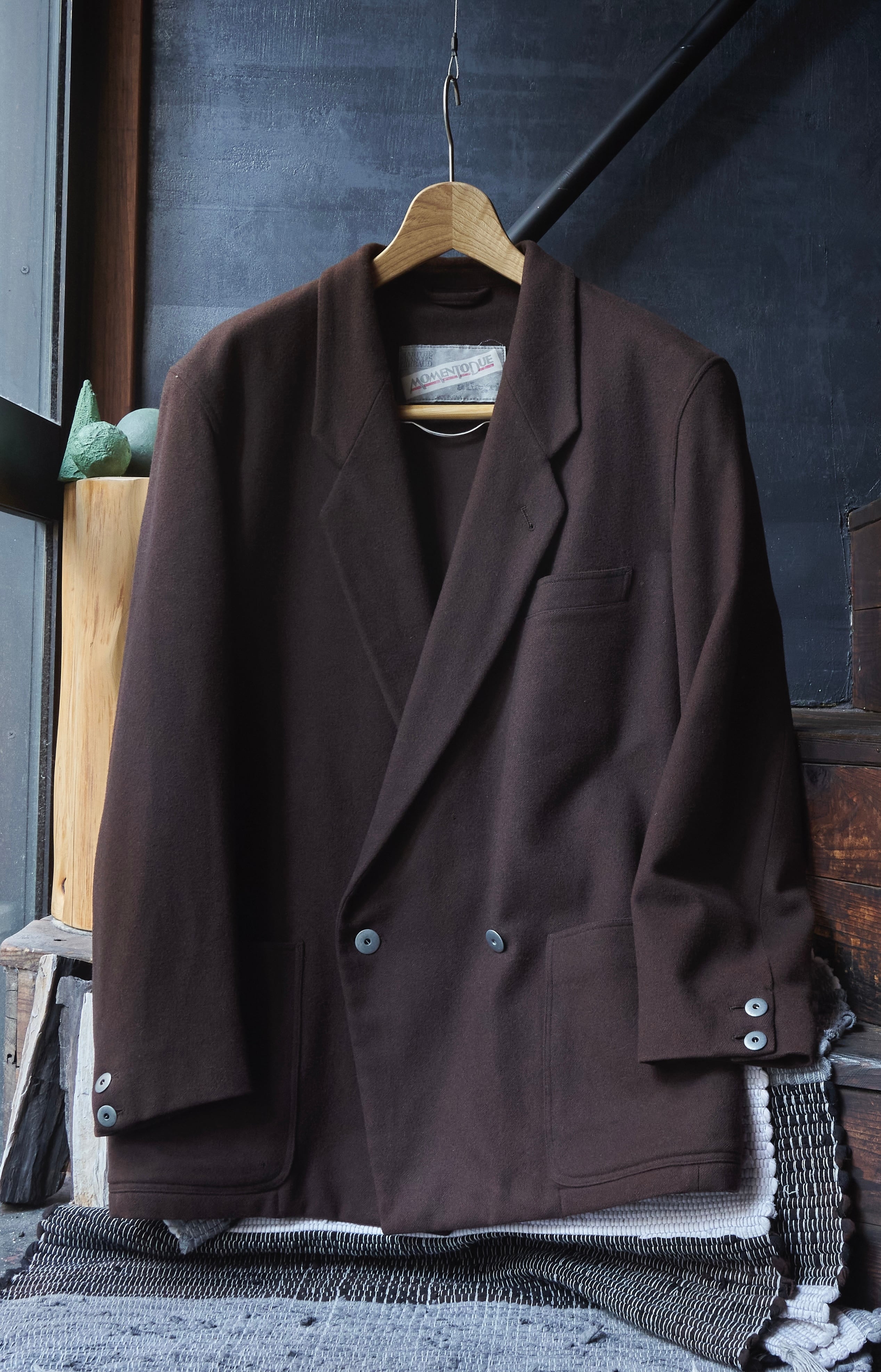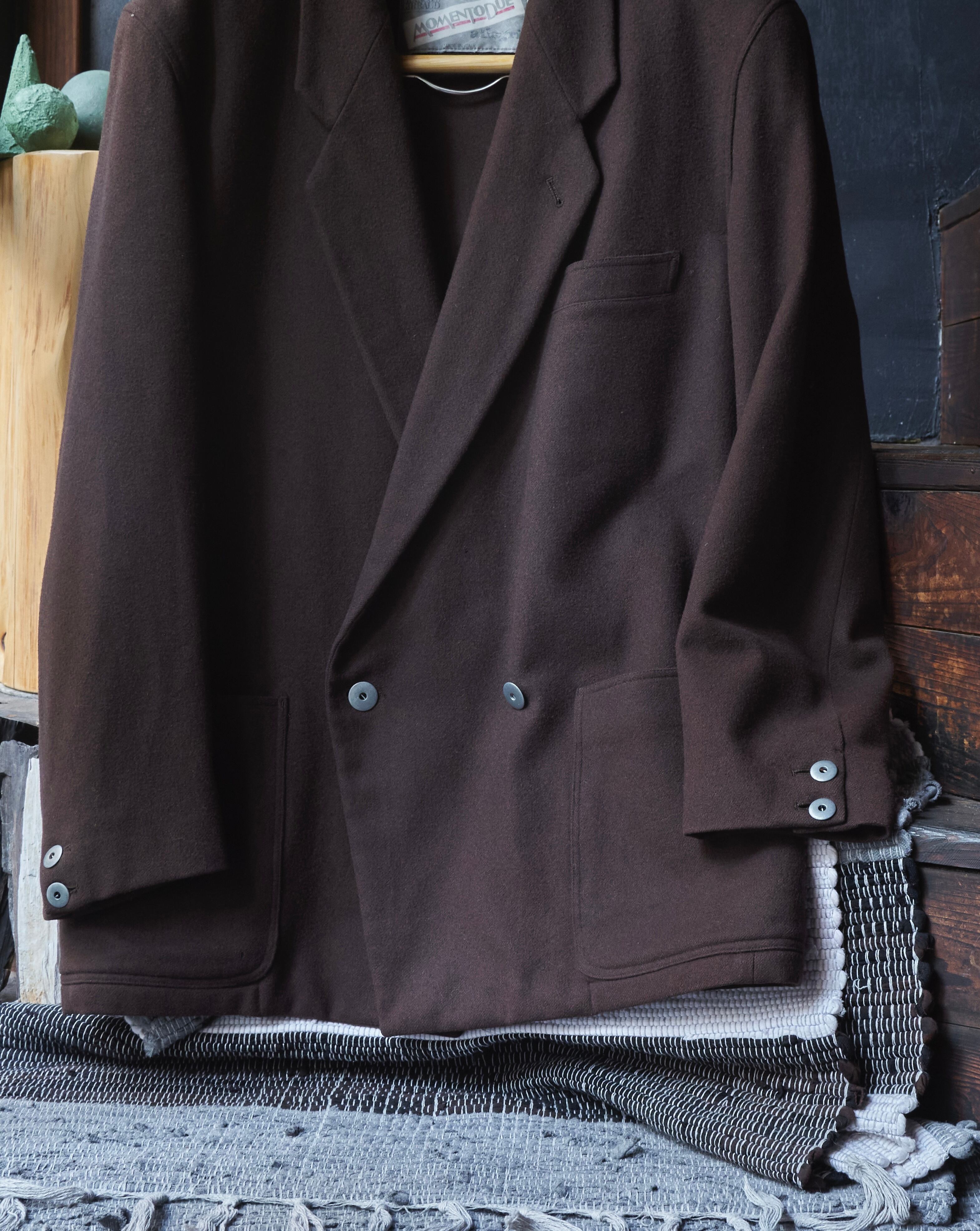 そんなMOMETODUEの上質なコートなどに使われそうなウールナイロン生地を使用したダブルのテーラードジャケット。