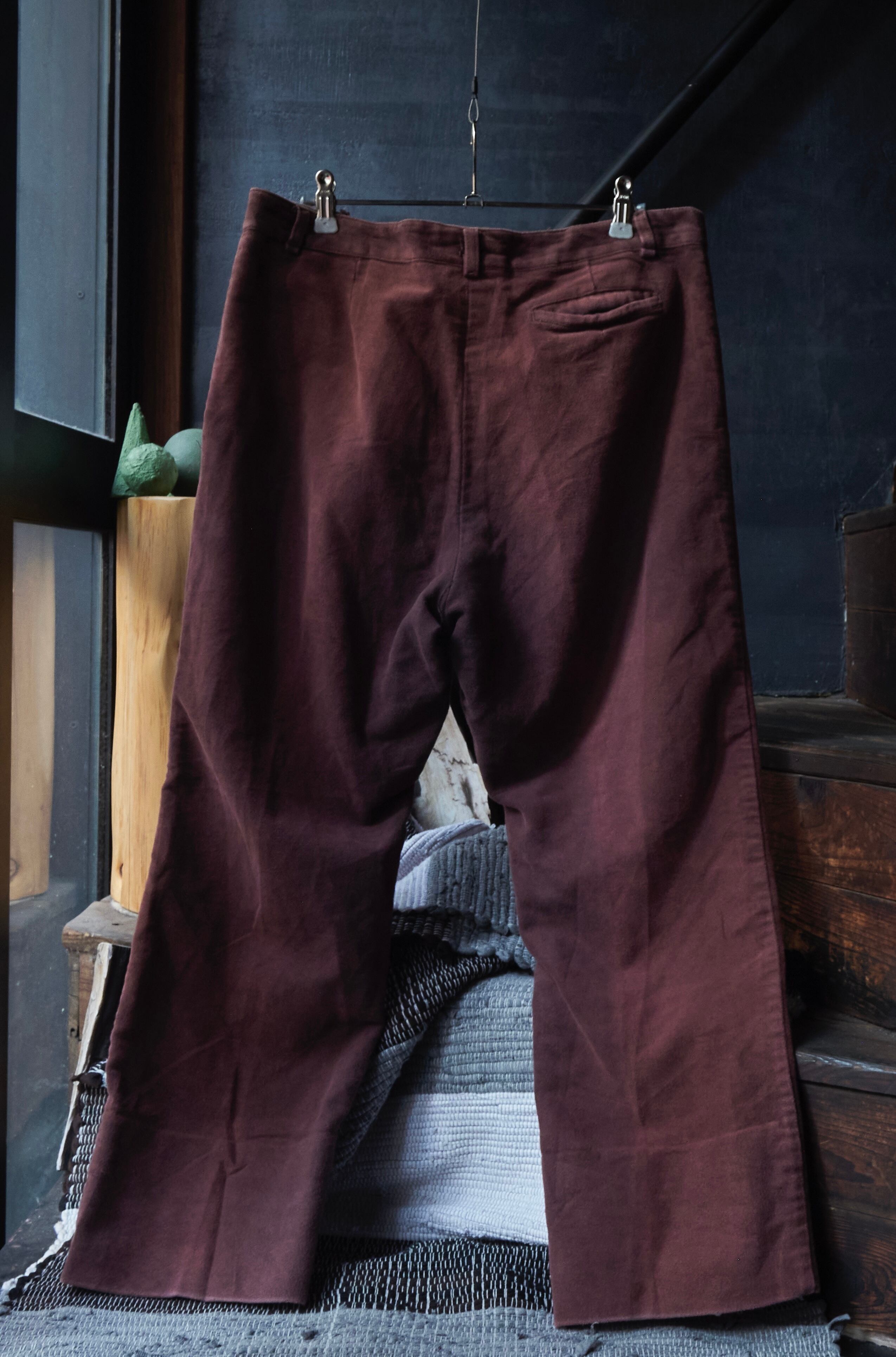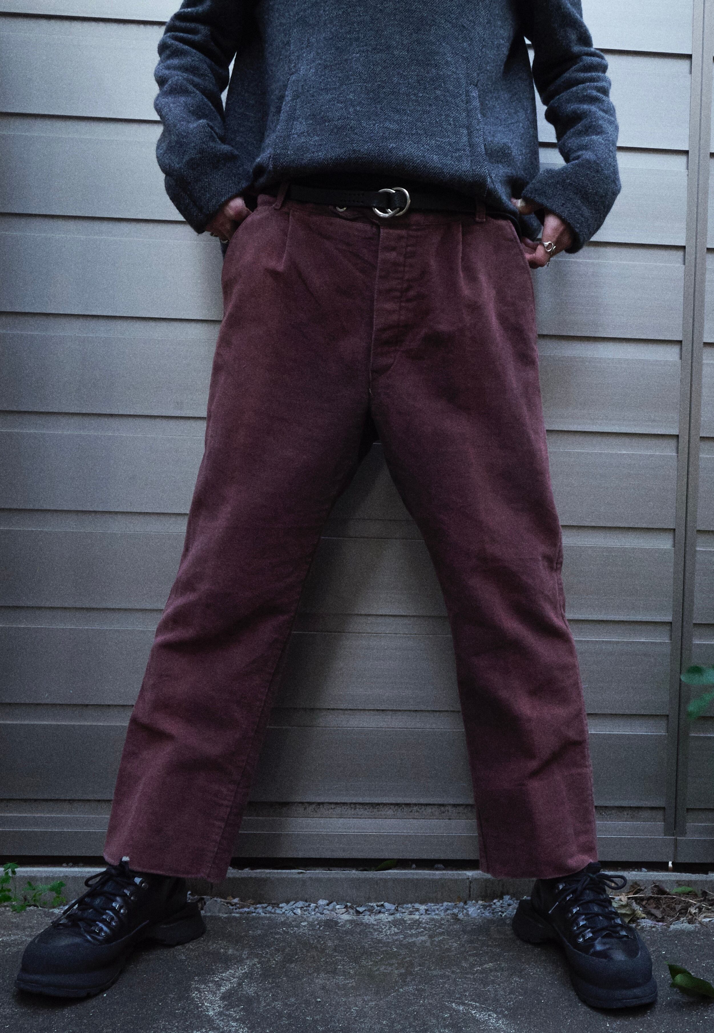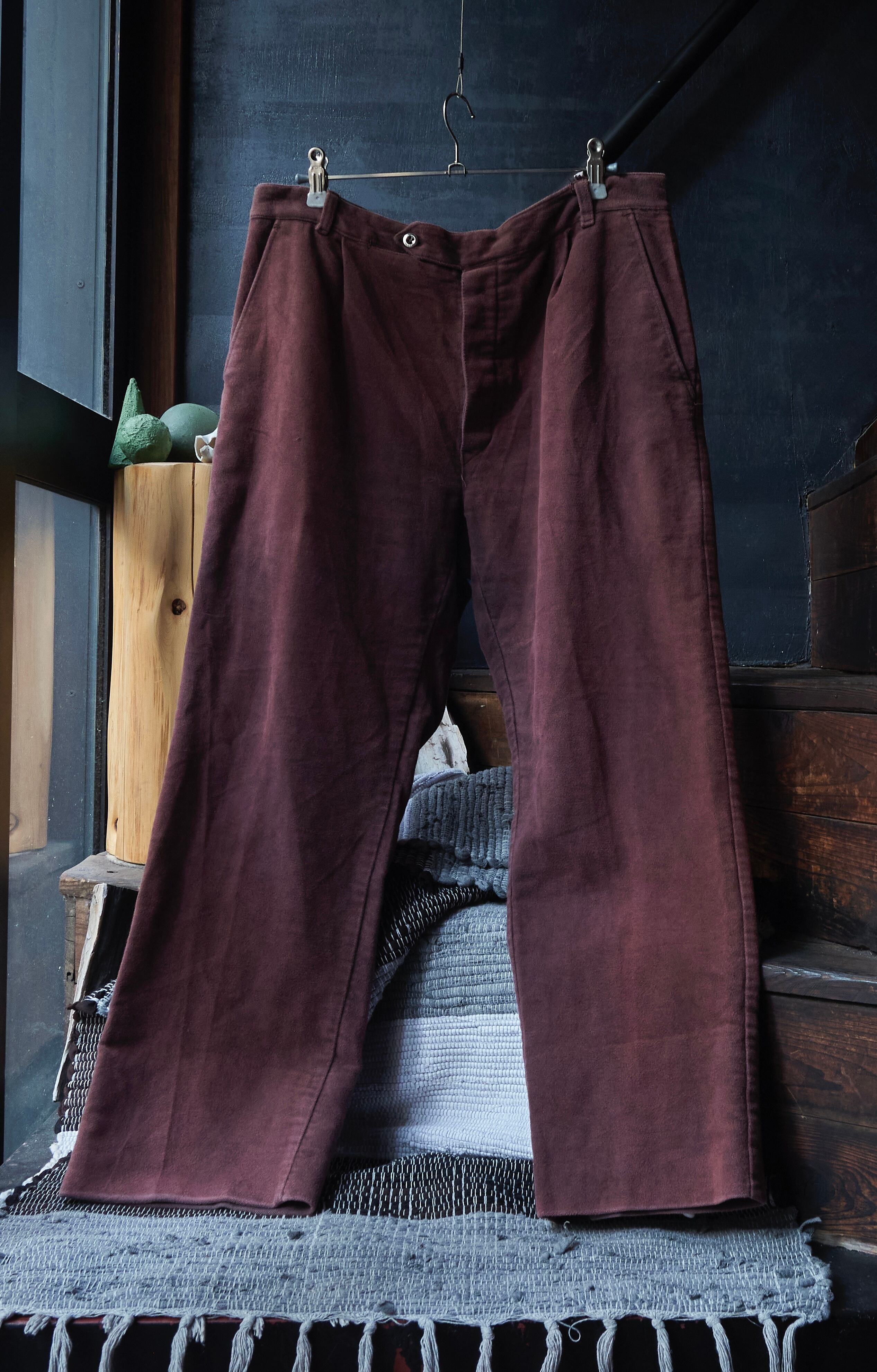 ムラ感色に味わいあり、肌触り良いモールスキンを使用したパンツ。