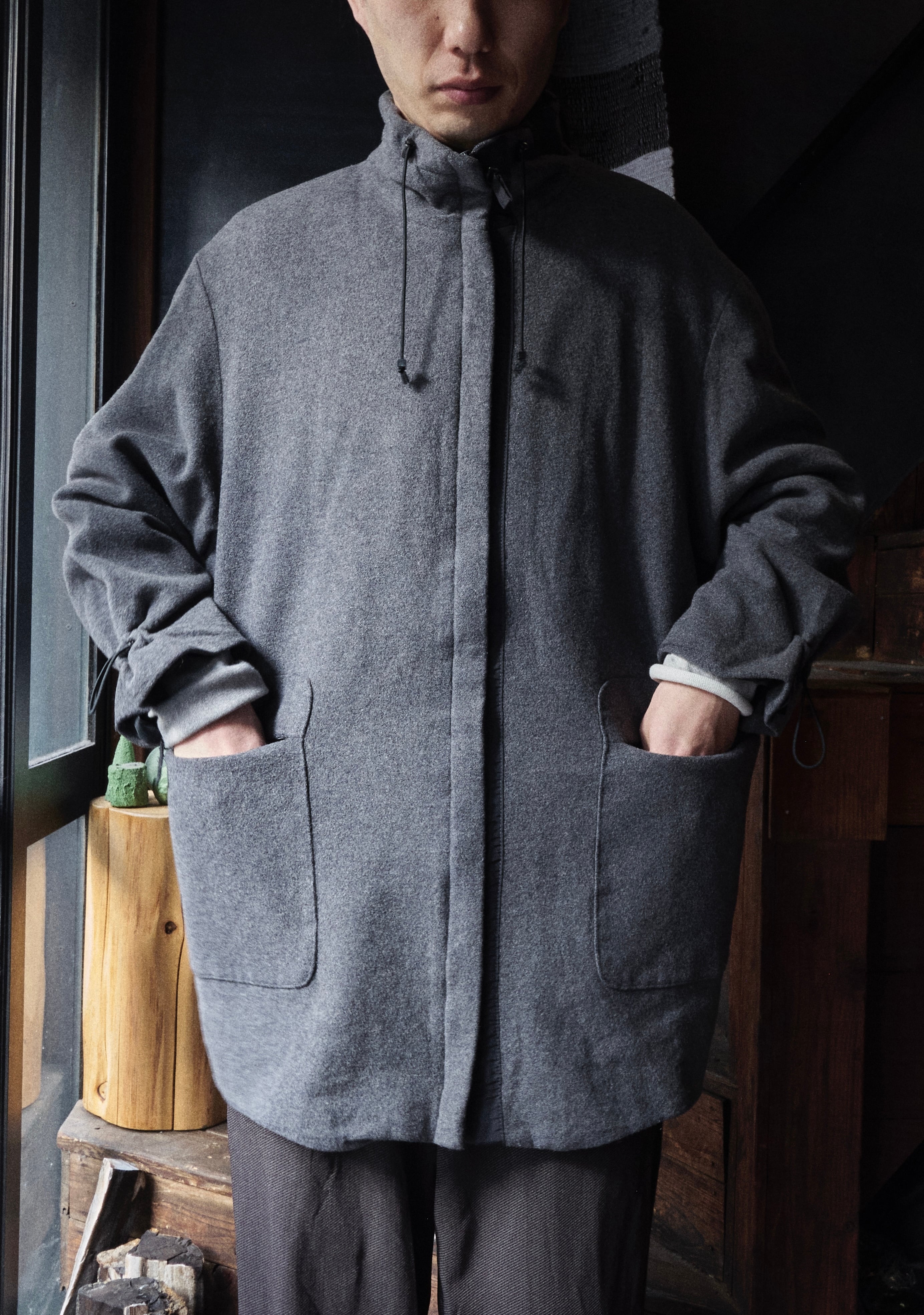 ビックなポケット。ハイネックデザイン。