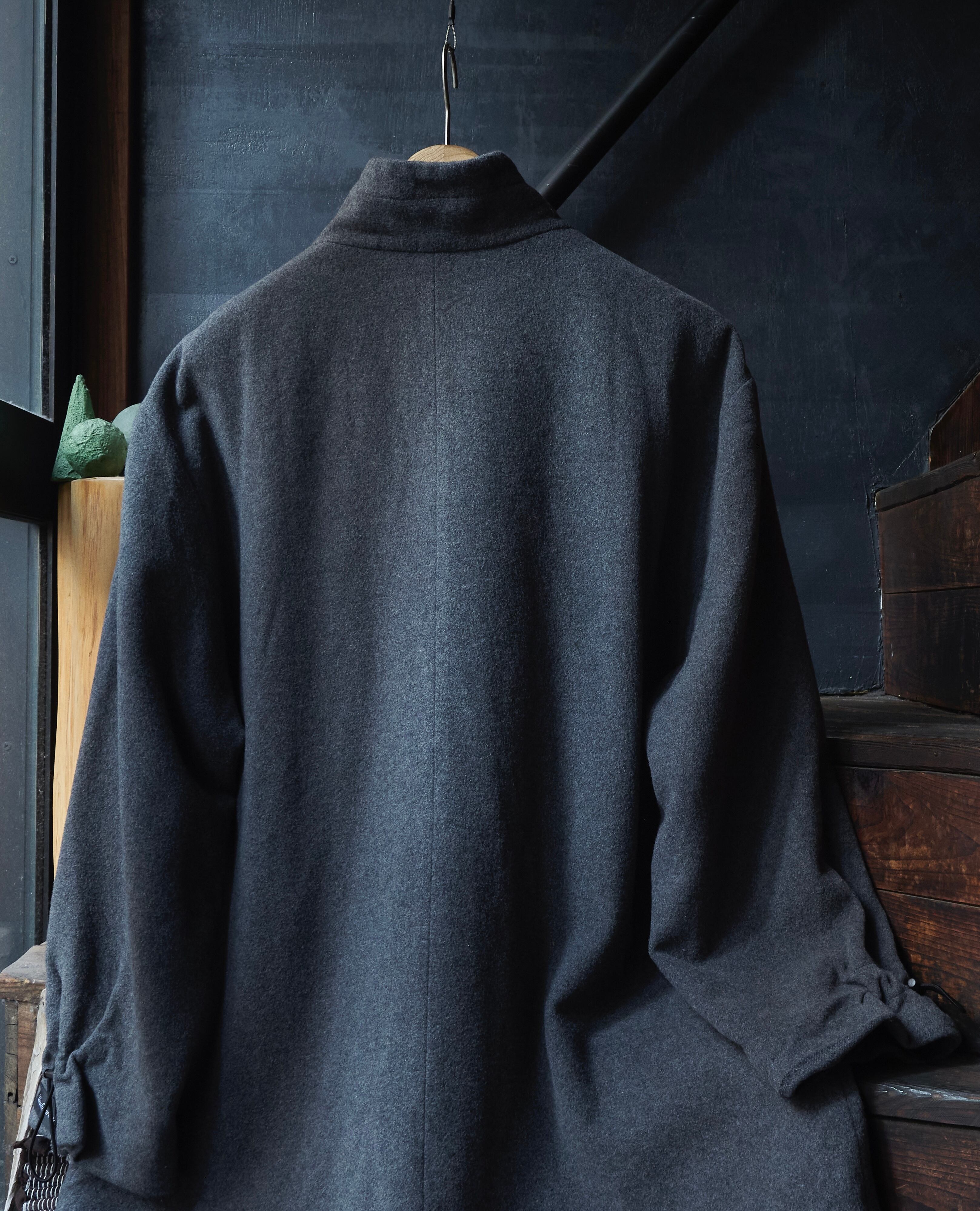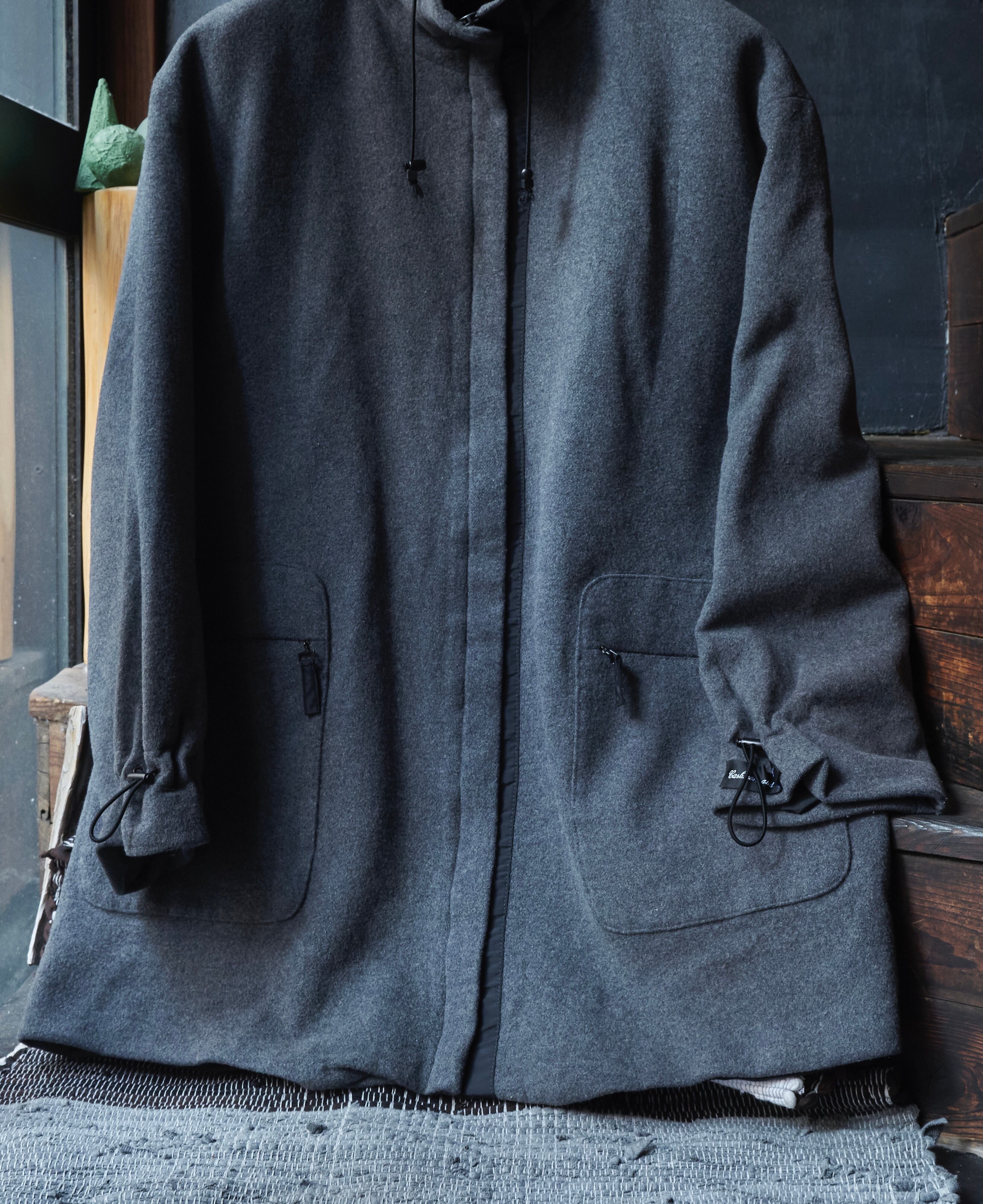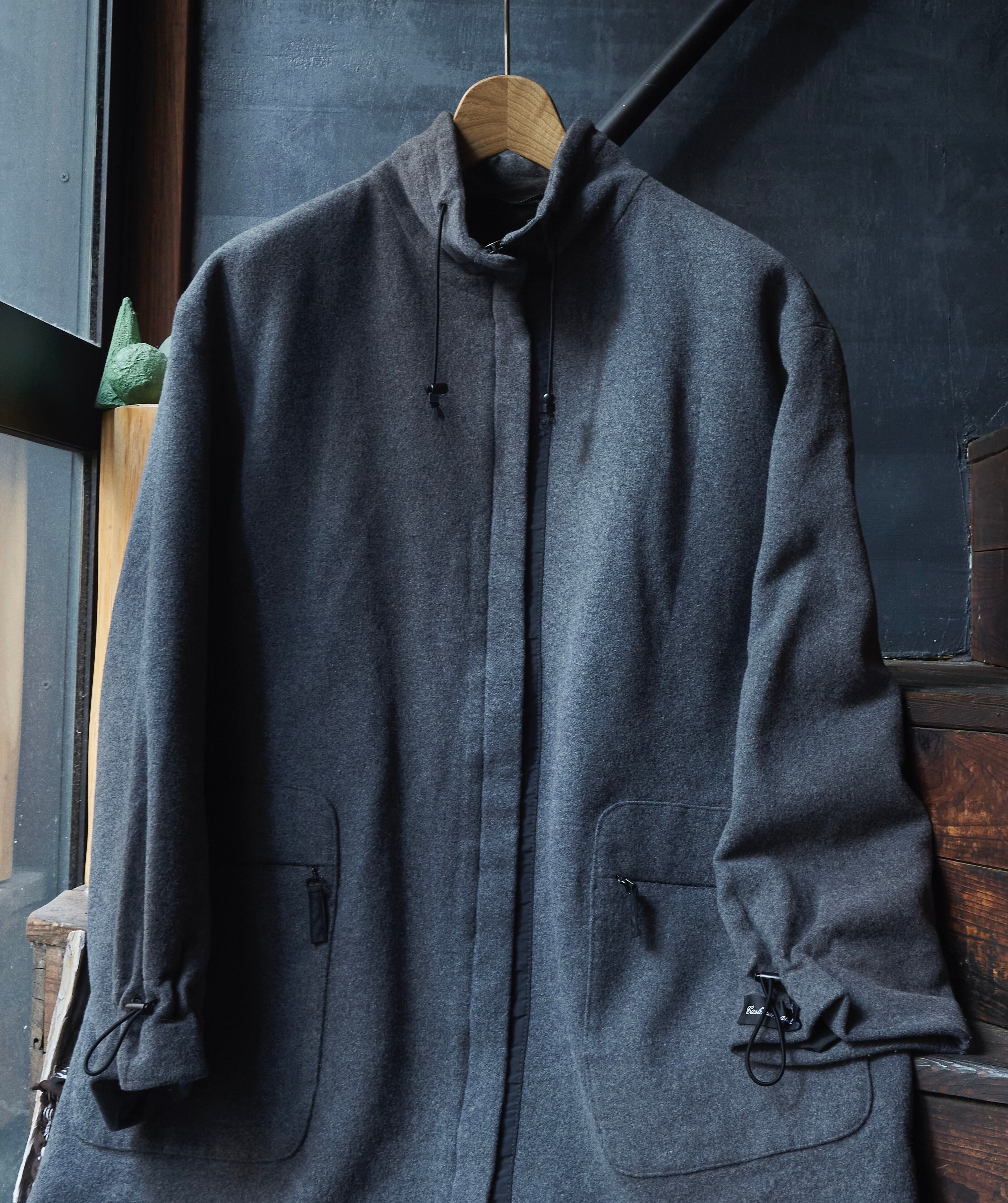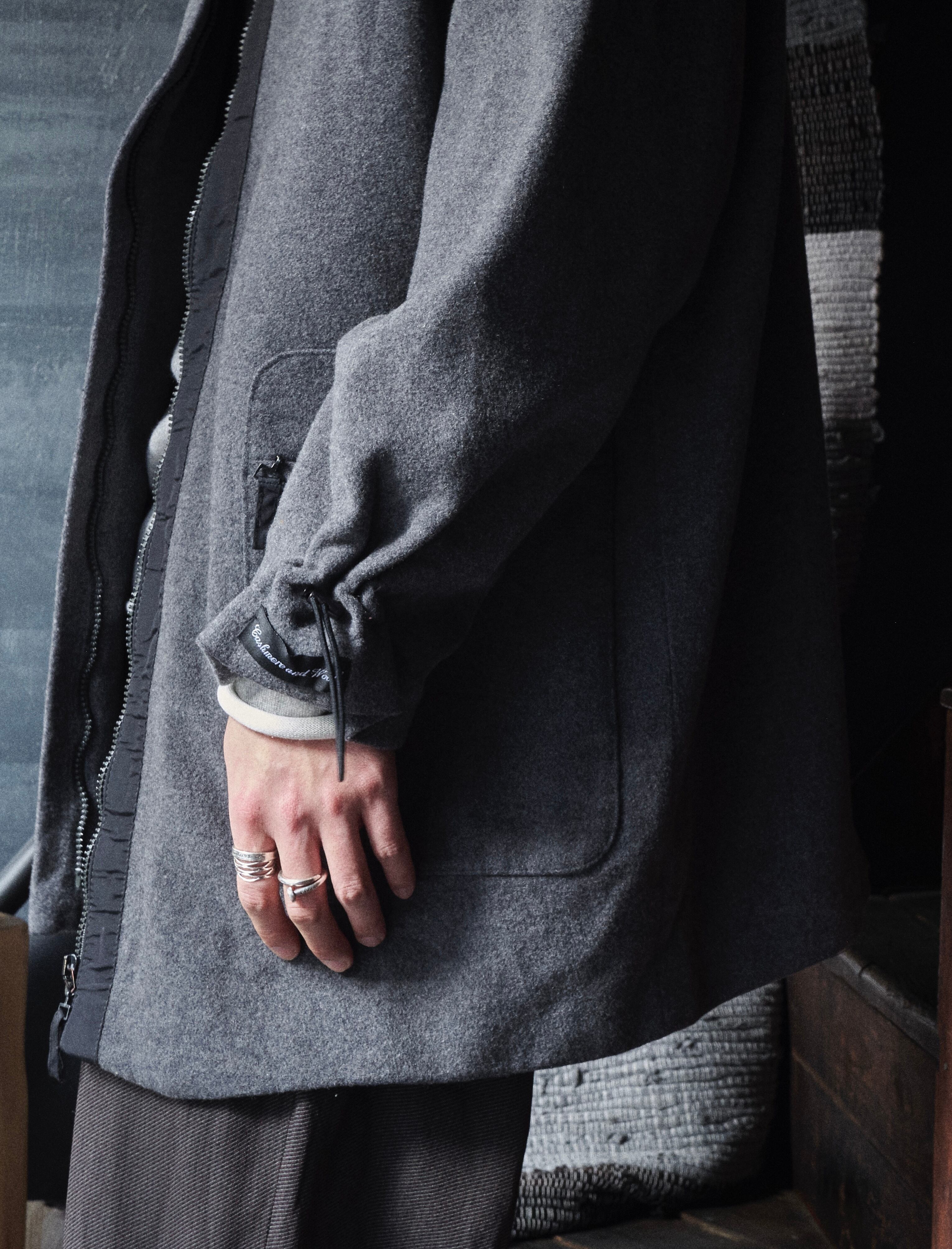ウールナイロンカシミヤ混紡生地を使用した面白いデザインのジャケット。