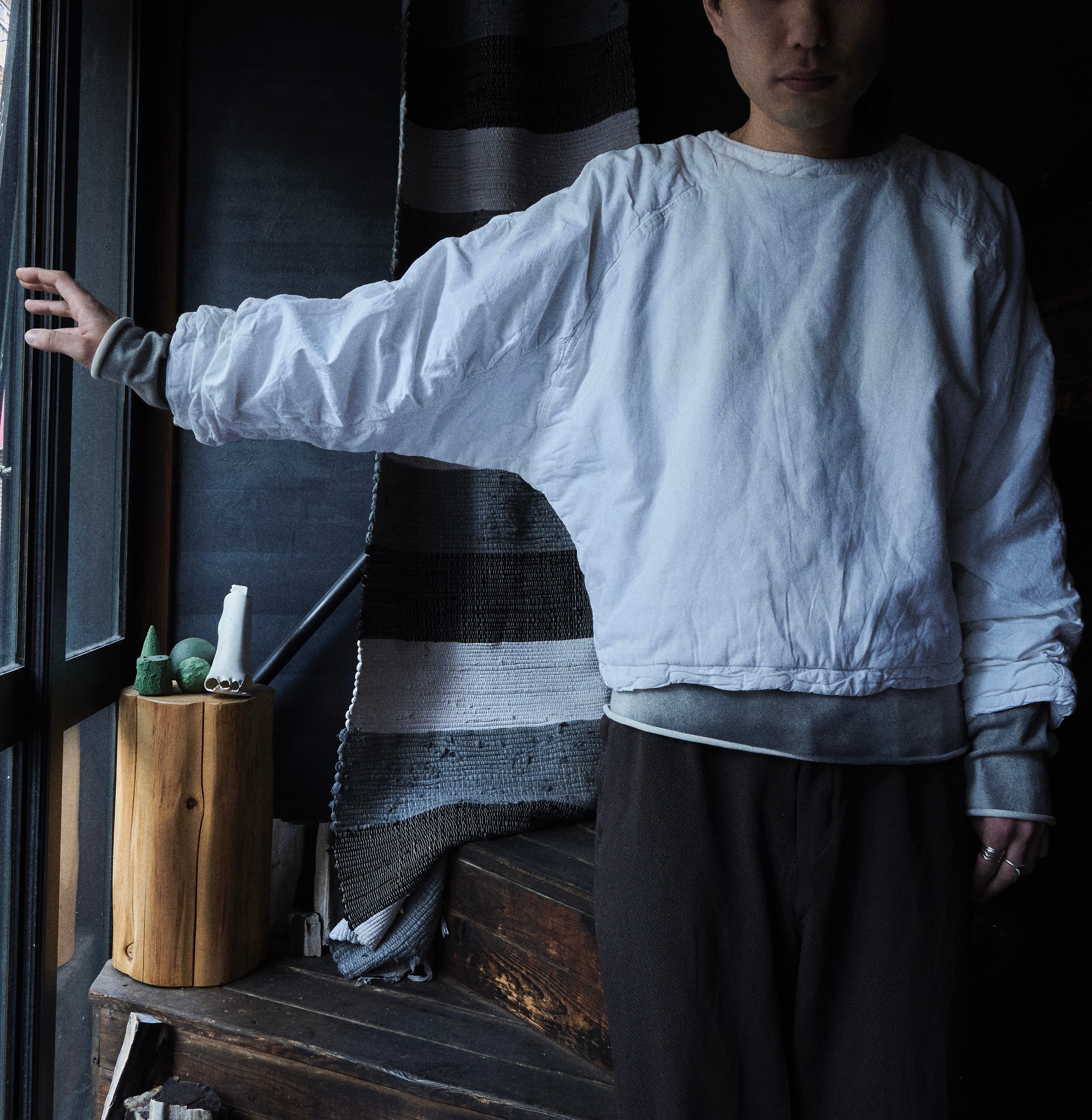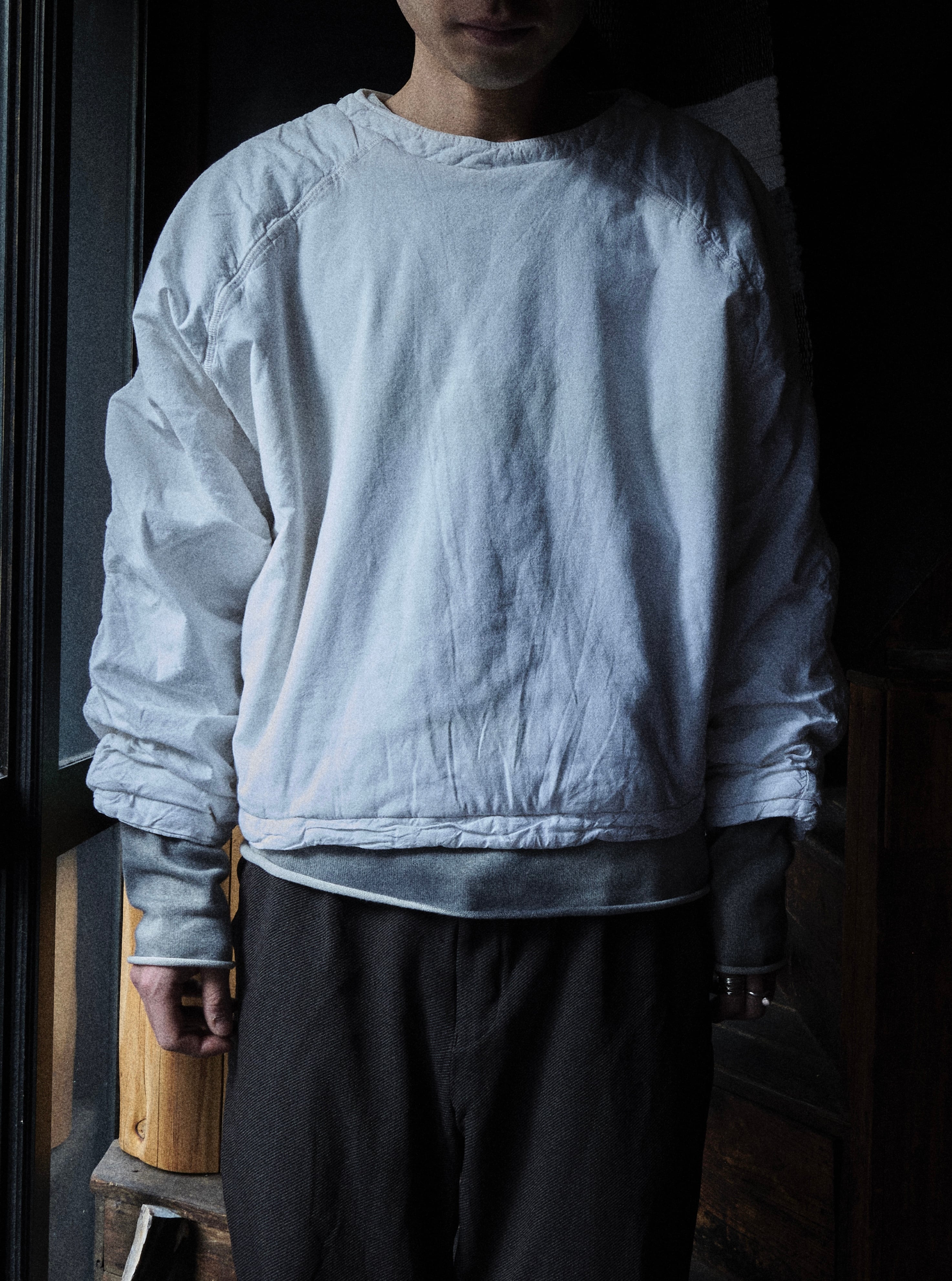 昔の中綿布団みたいなプルオーバースウェットです。