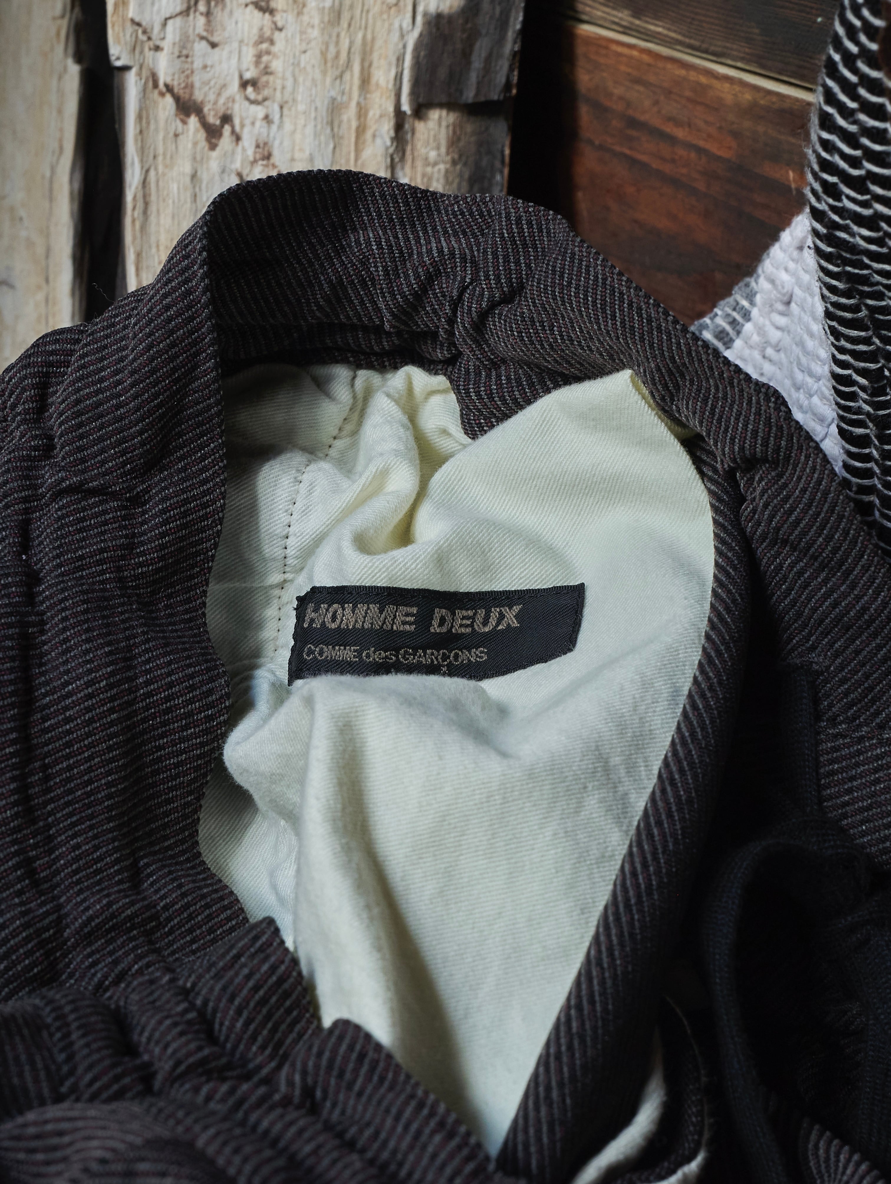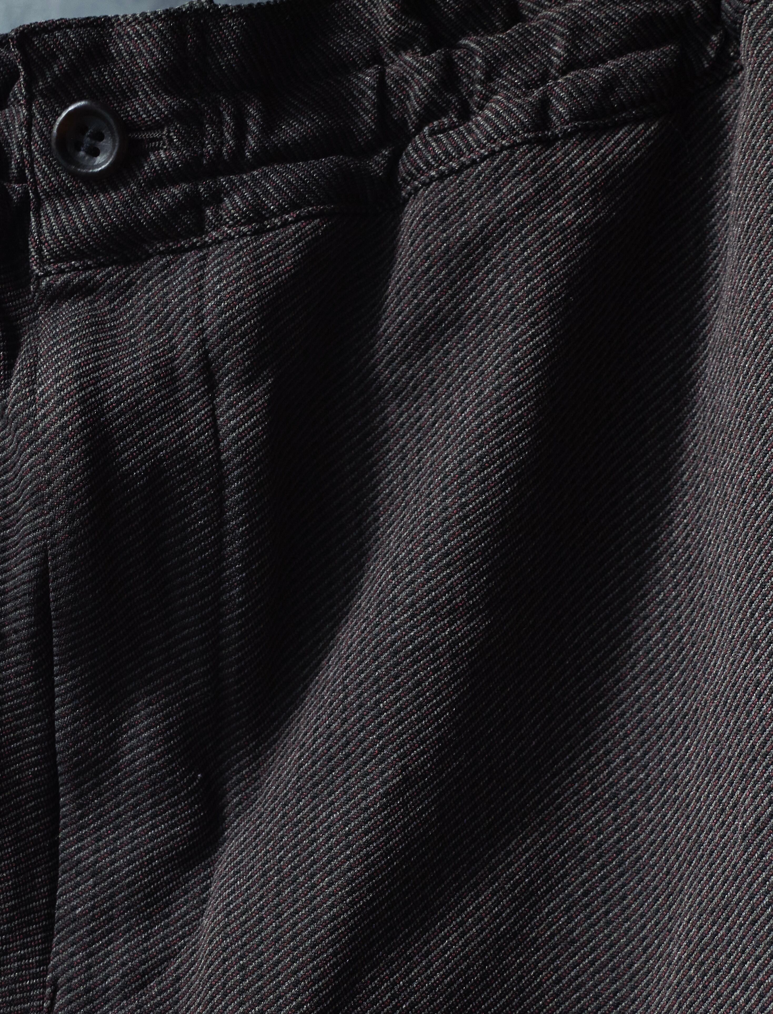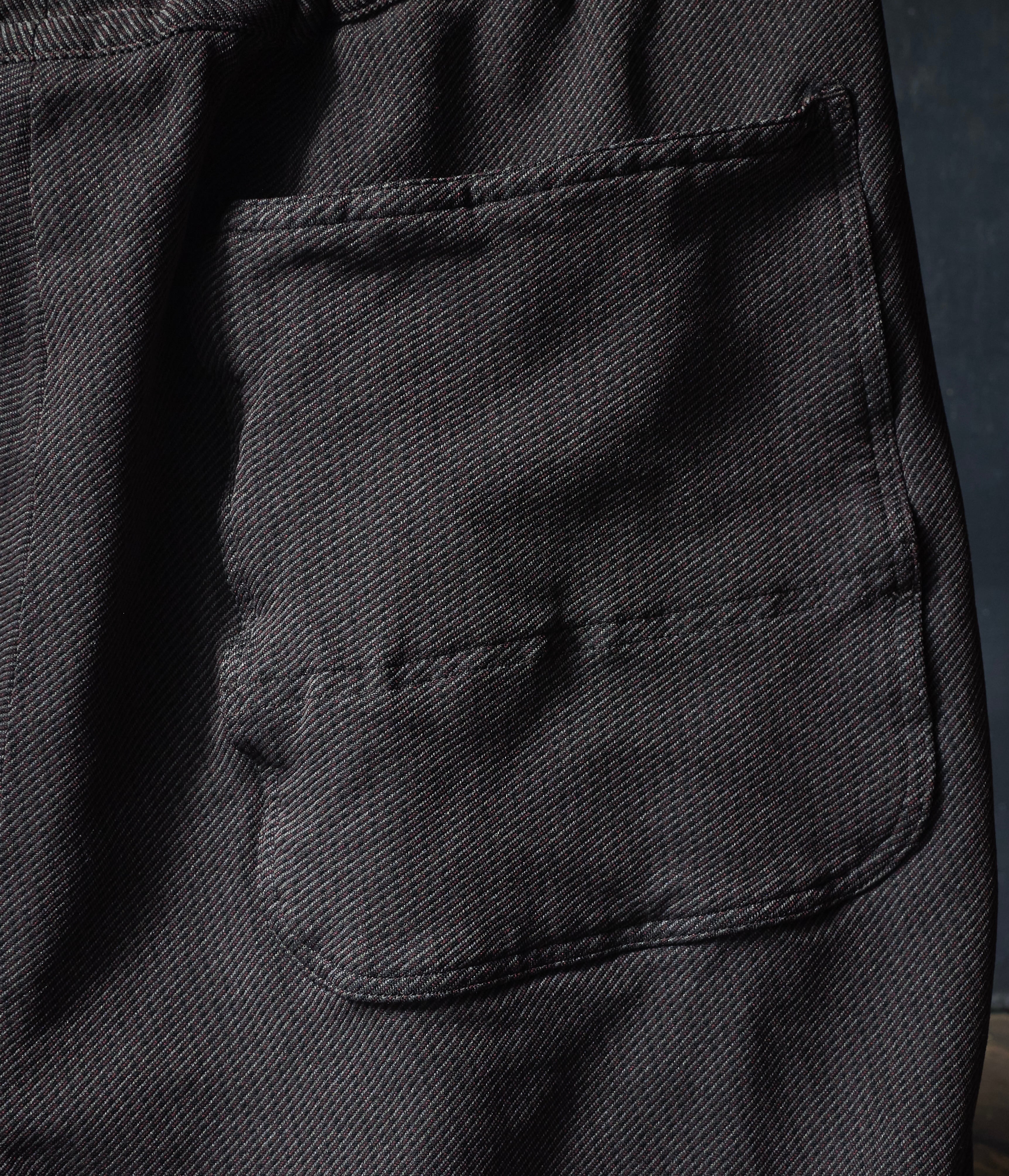 綾織りの折り目が続く面白いポリエステルに縮絨加工が施された。