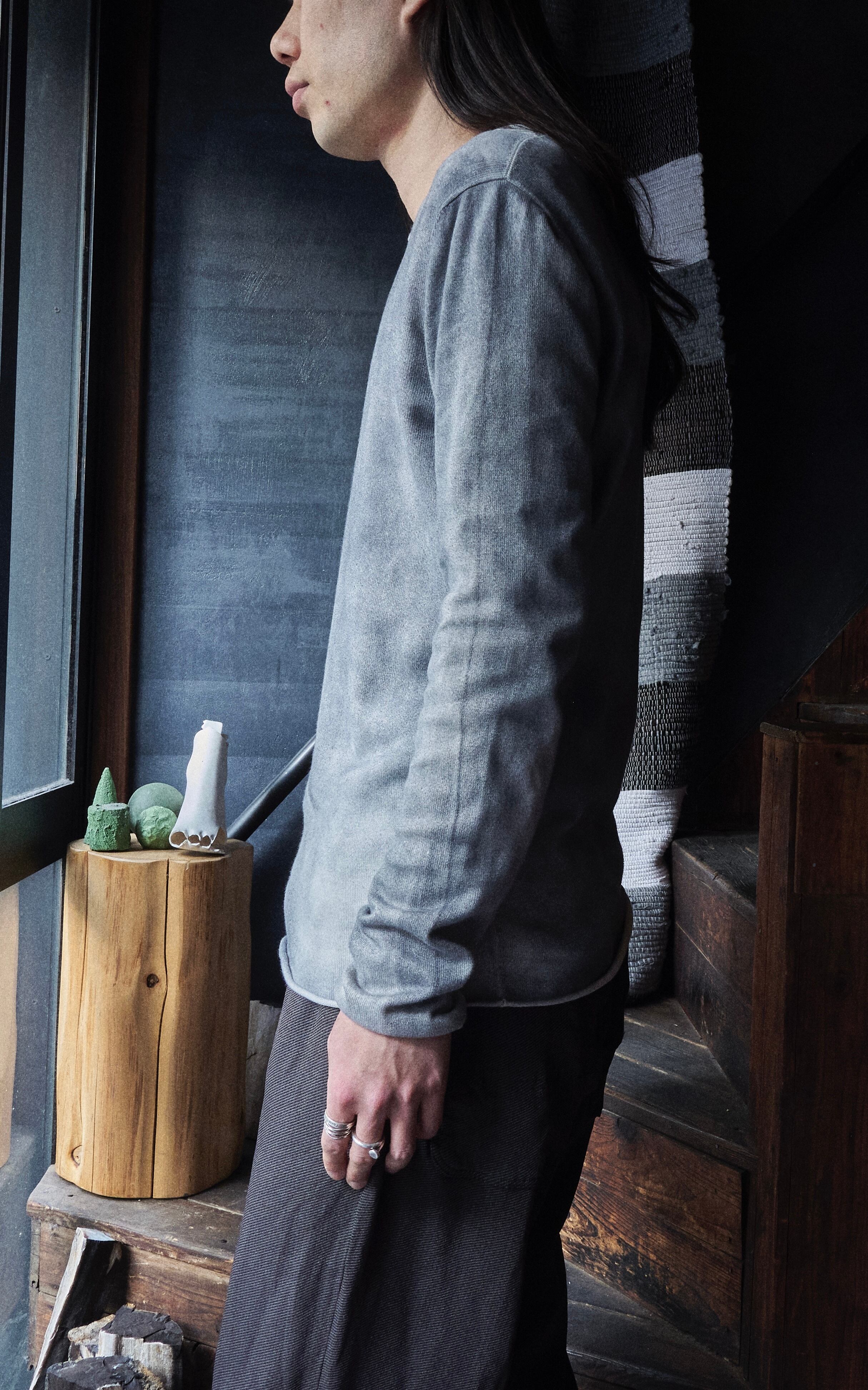 父の運営する会社がニットを生産しており、プラダなどイタリアの高級ブランドを顧客に抱えるほど高品質なニットの技術を持っている点も強みで、レーベルアンダーコンストラクションにもその高品質なニットが供給されております。