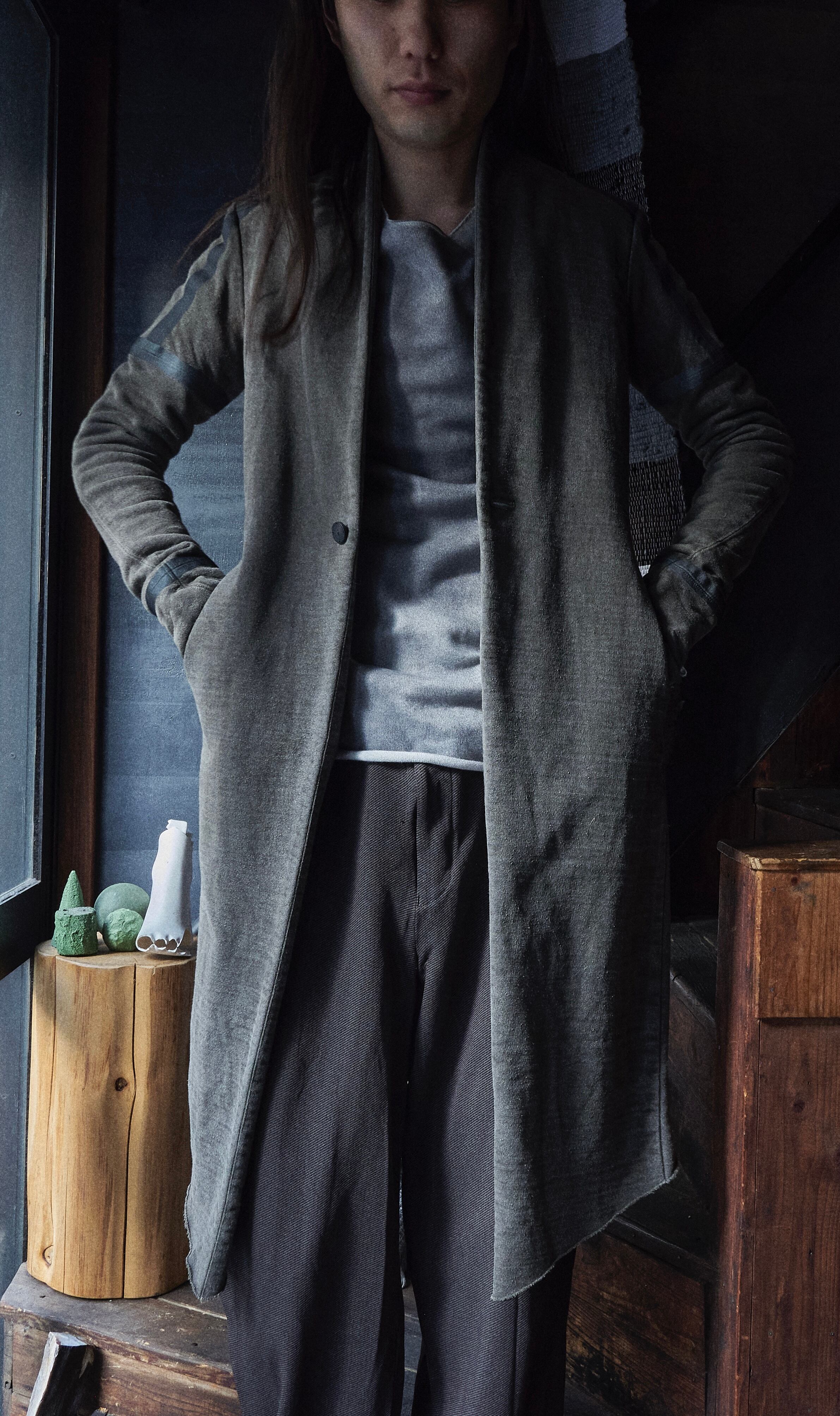 今回はシルク×コットンの混紡生地を使用したその辺の人の下着の10倍位良い素材を使用したコートというか。何というか。