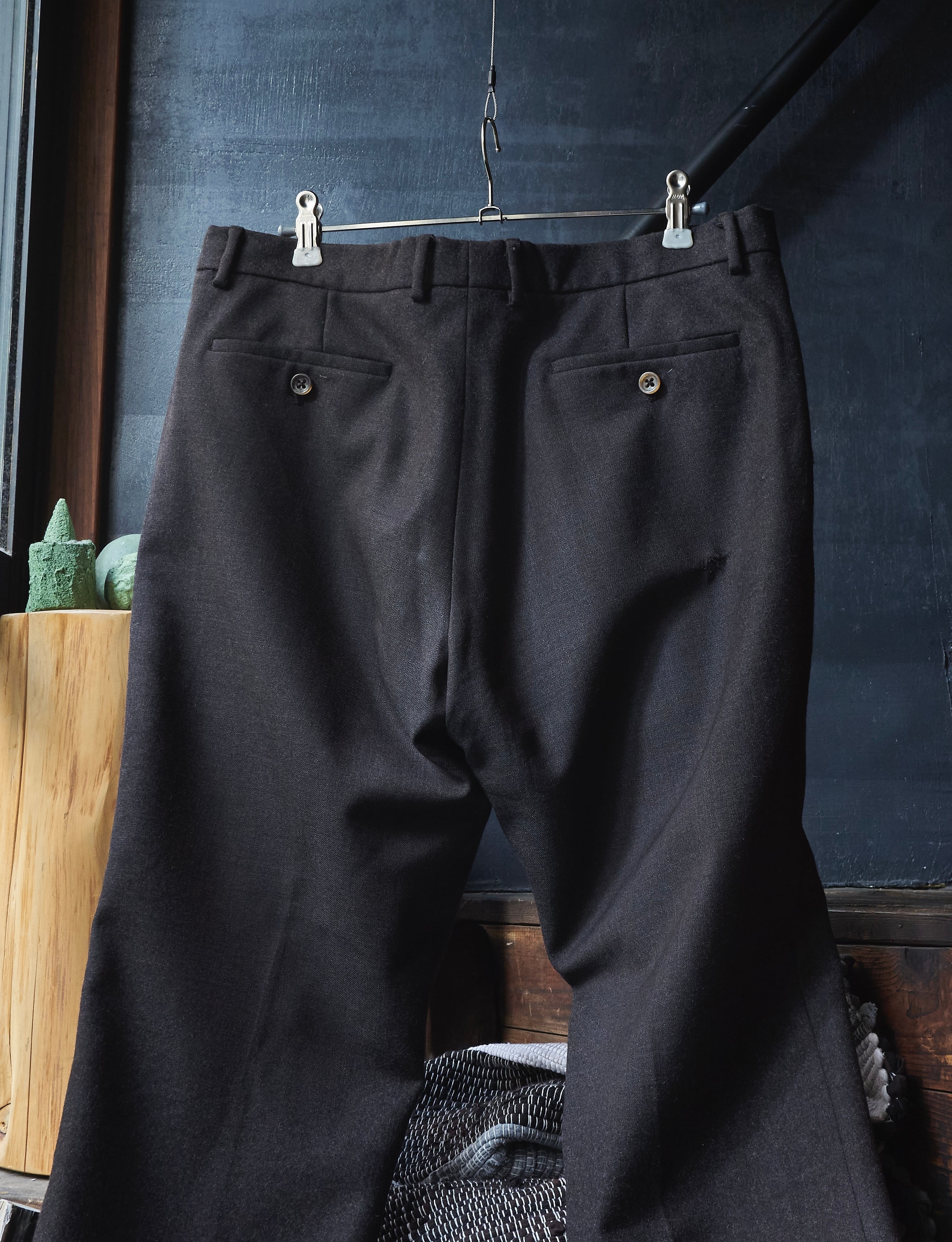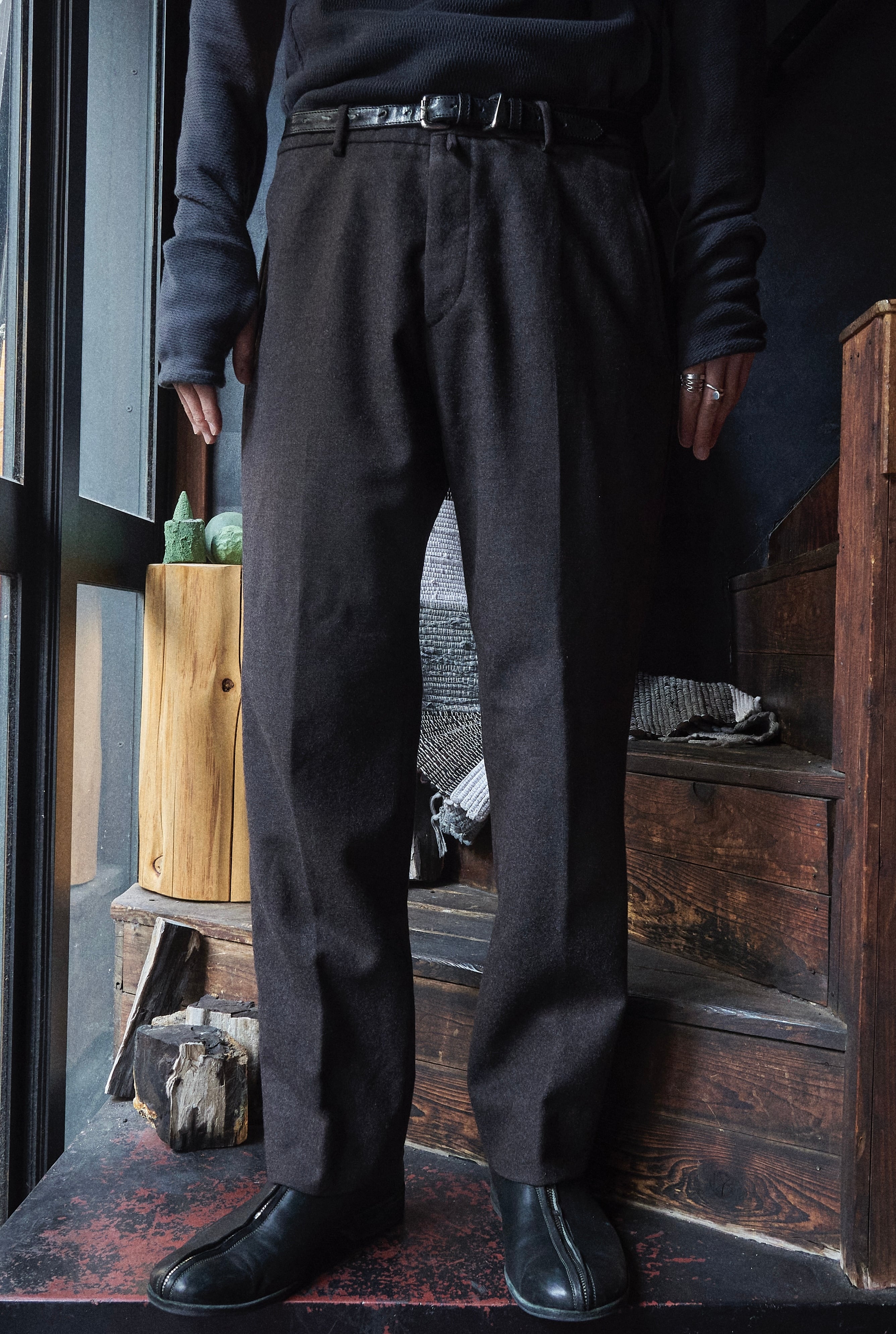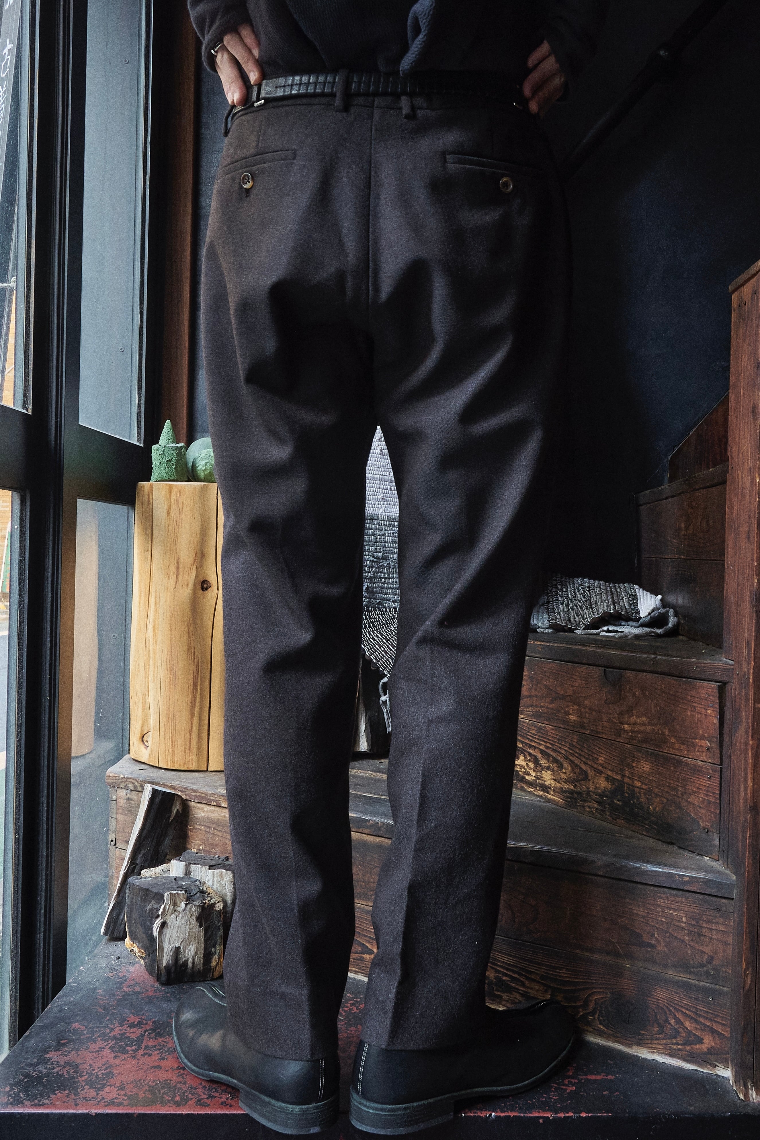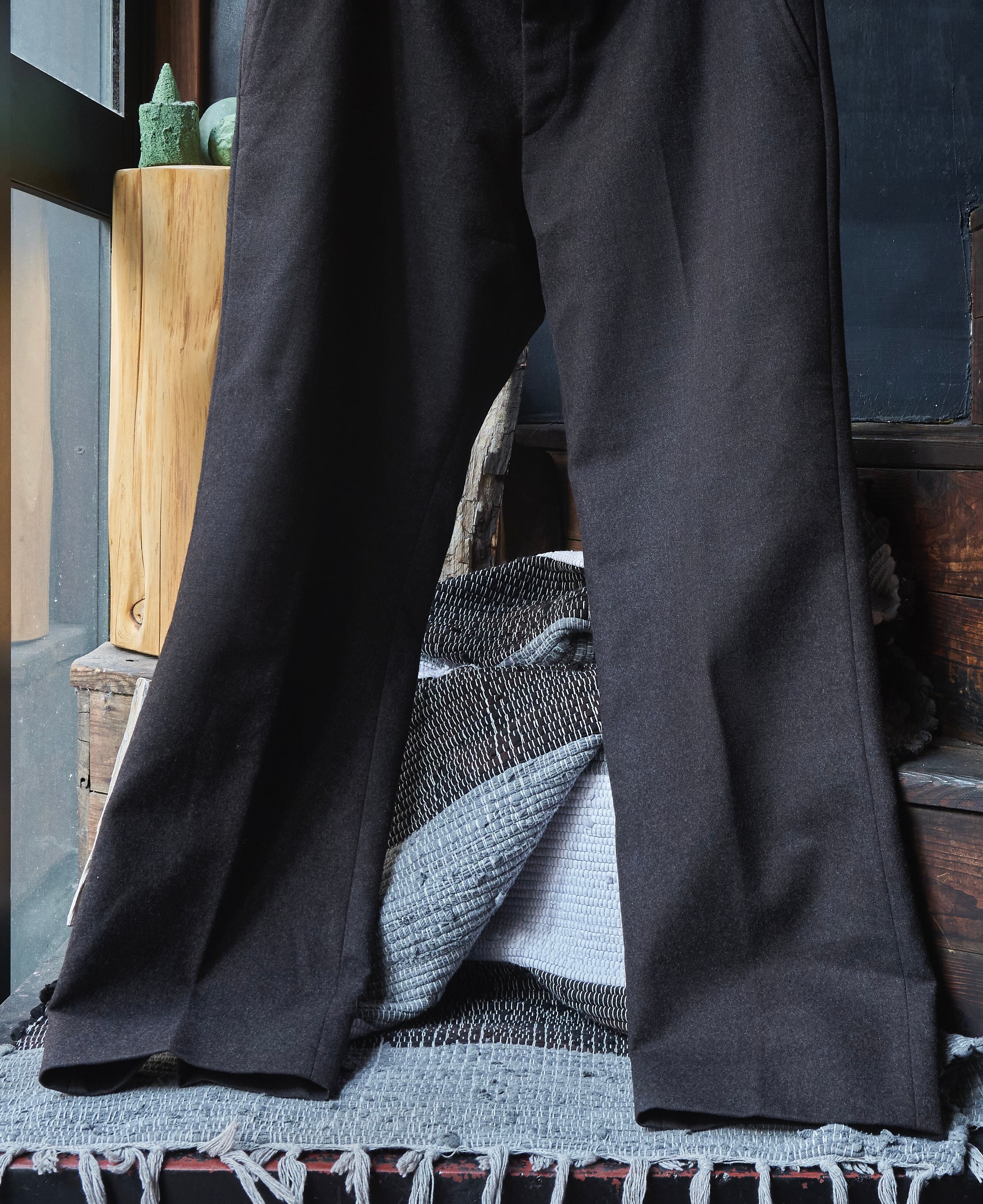何とも言葉で具体化しづらい色味のウールを使用したスラックス。