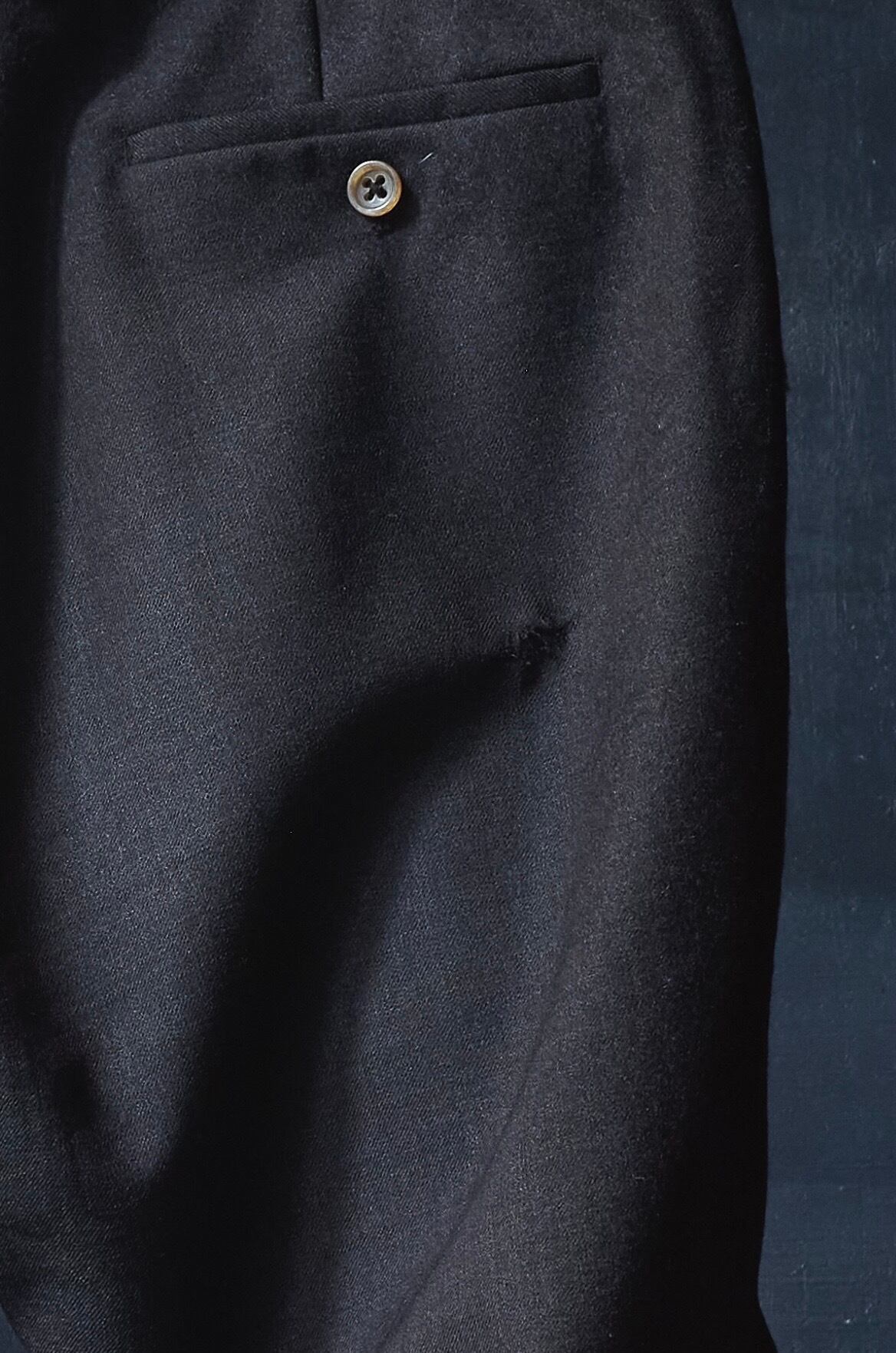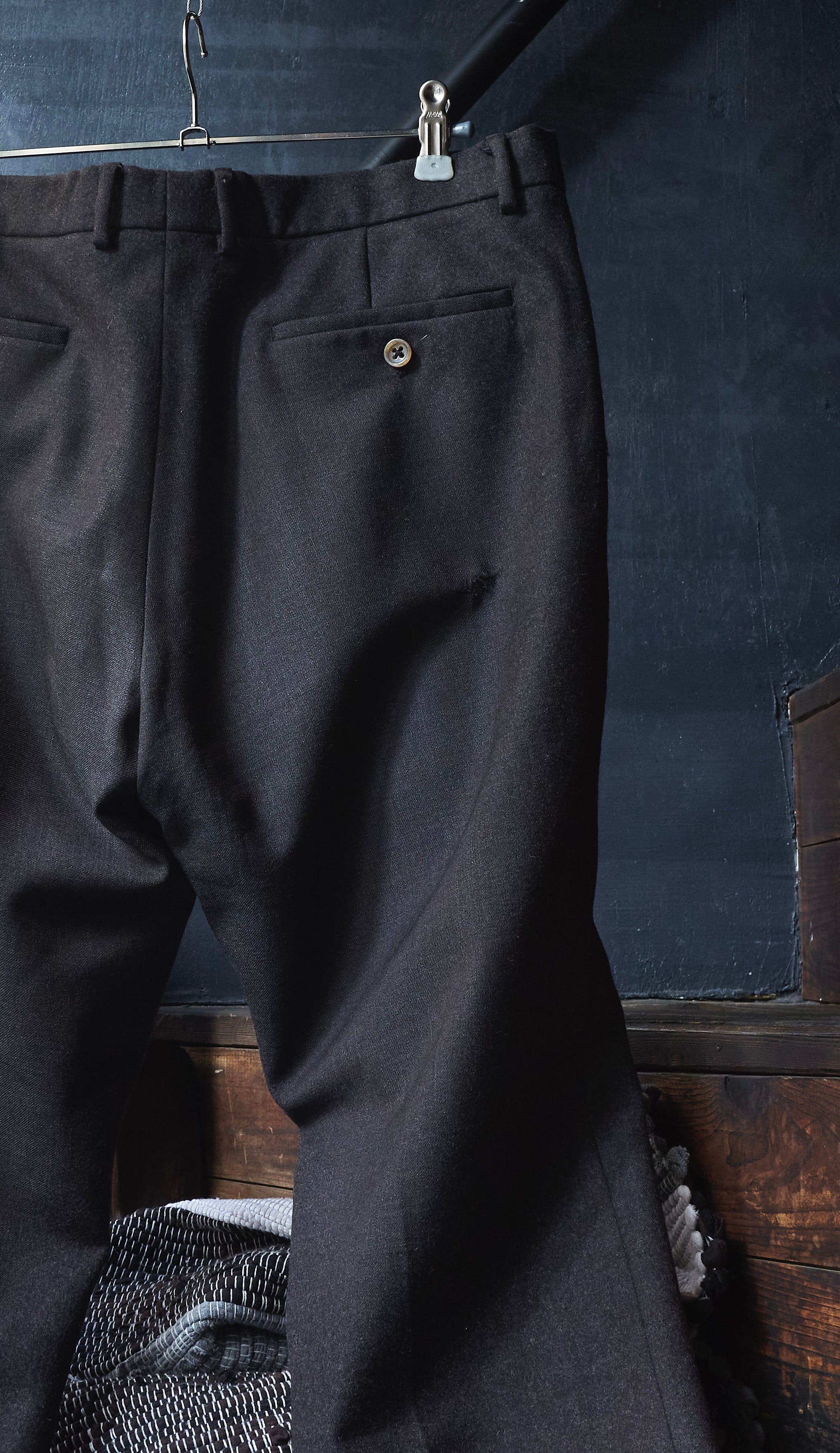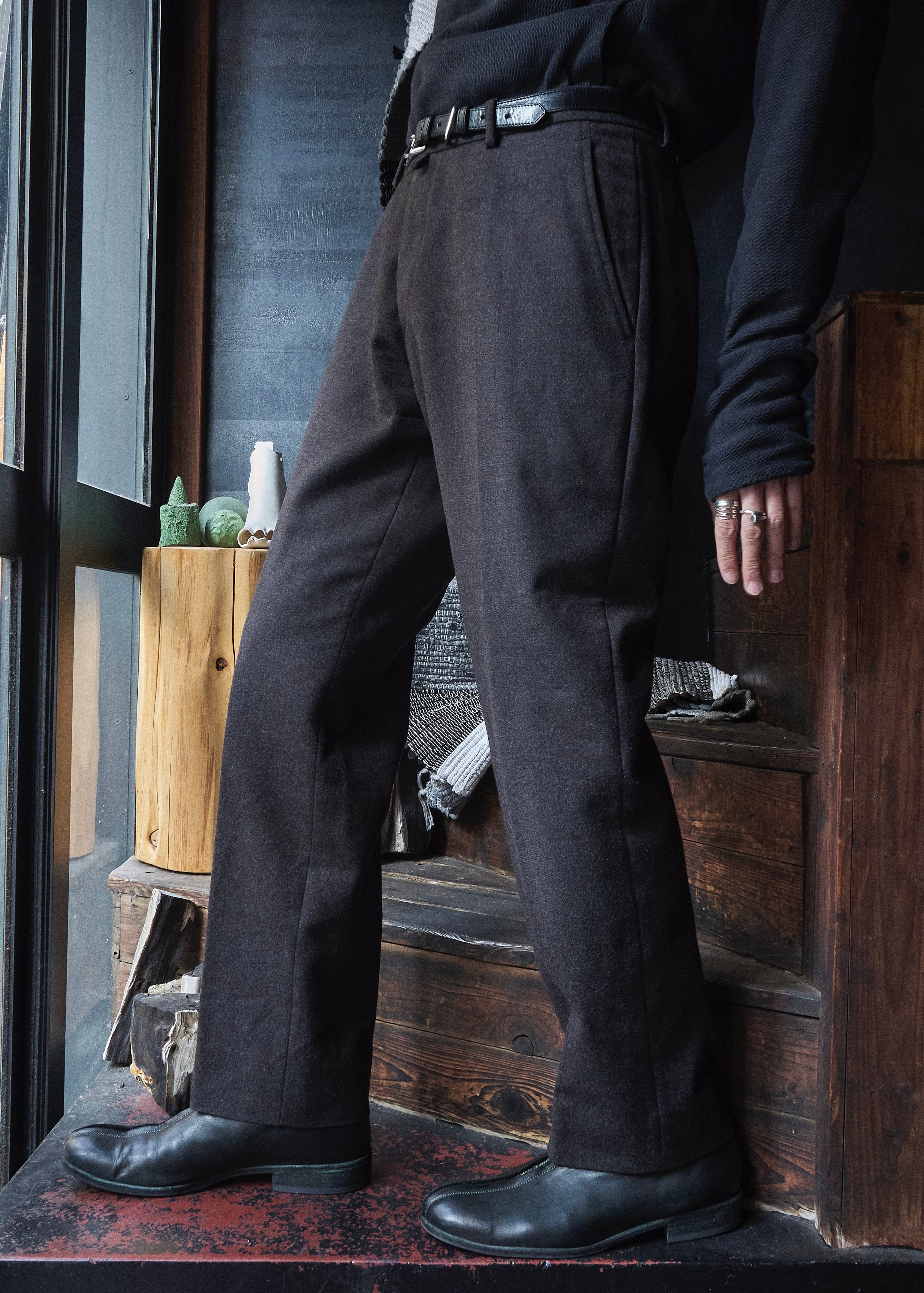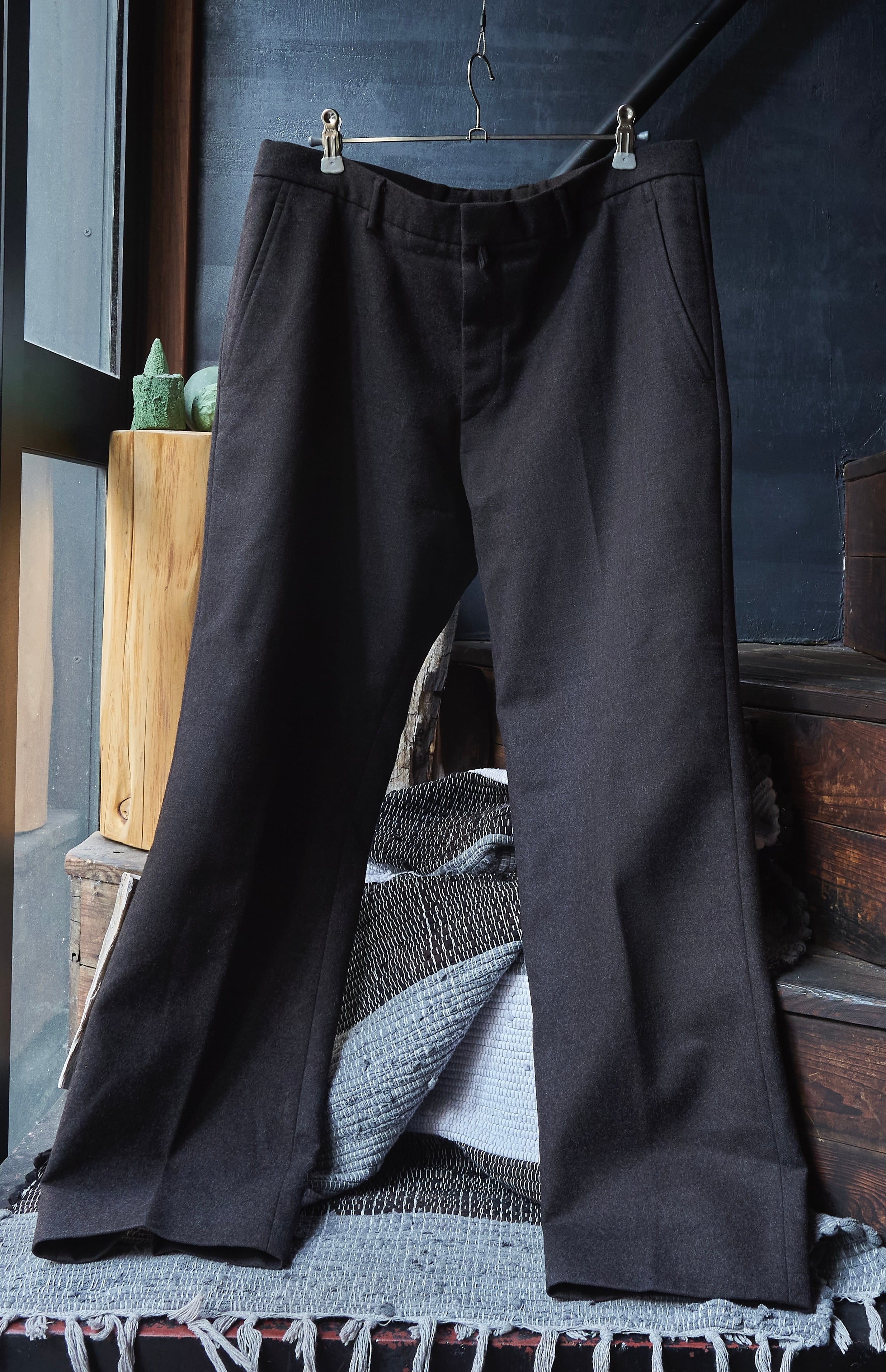 何とも言葉で具体化しづらい色味のウールを使用したスラックス。