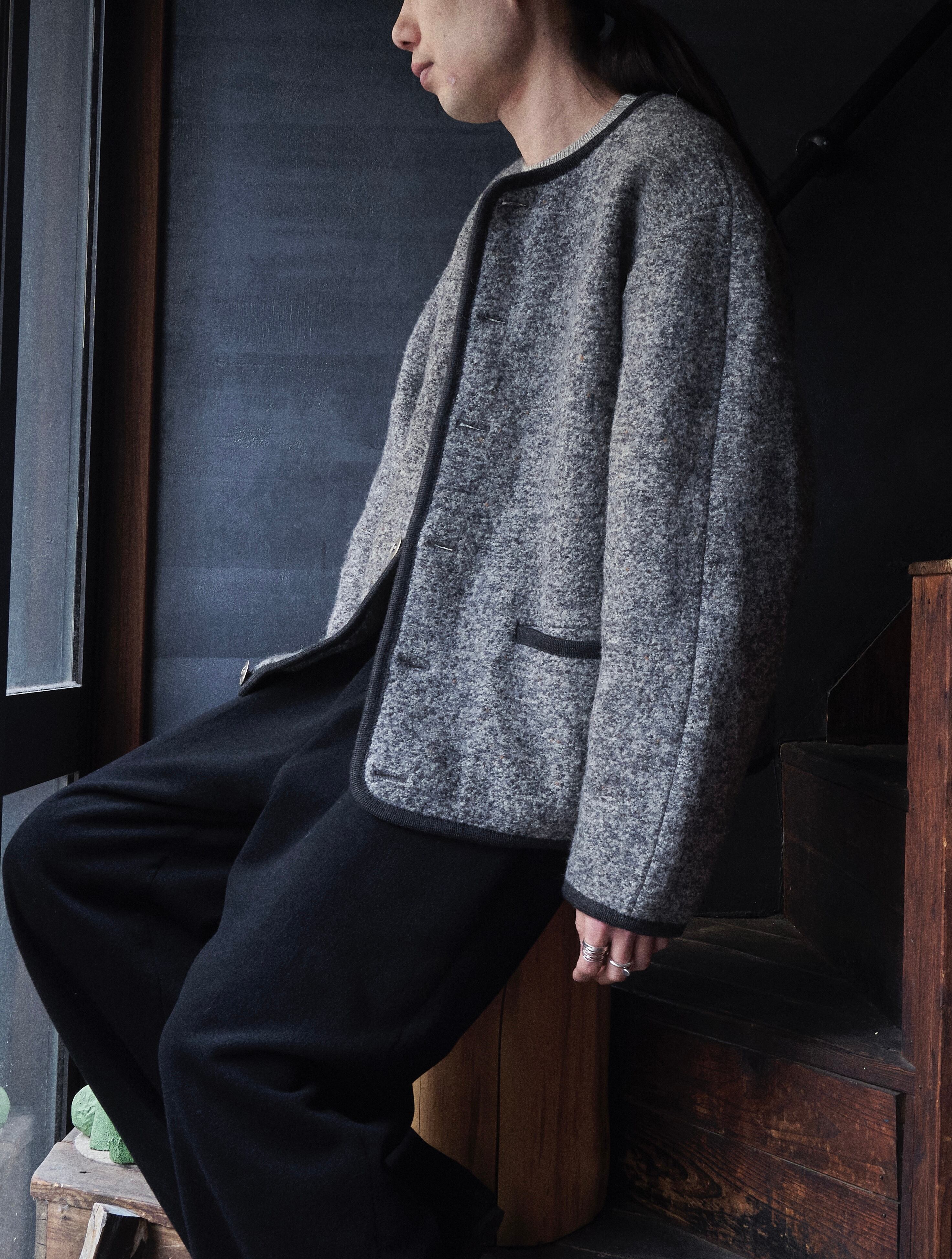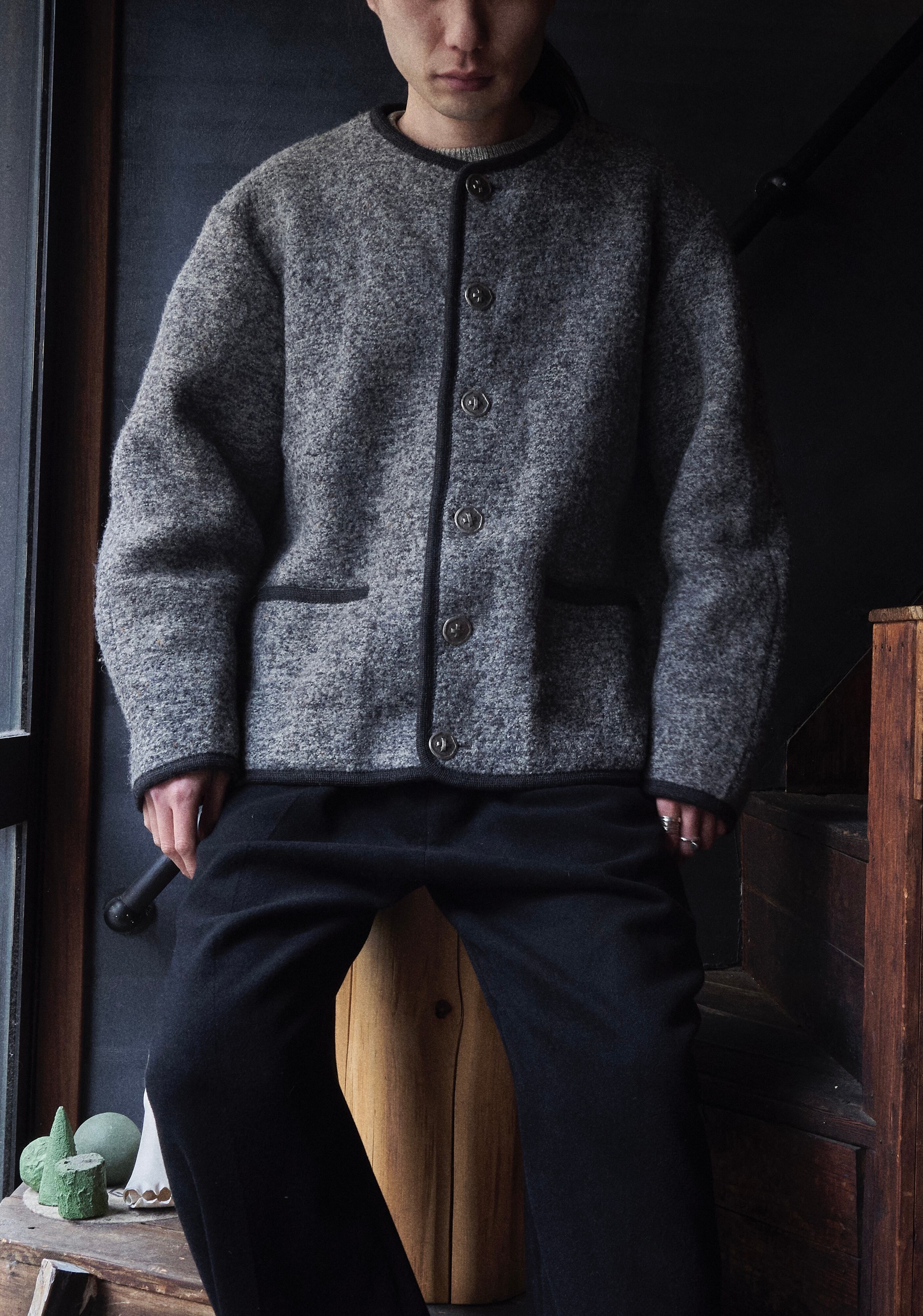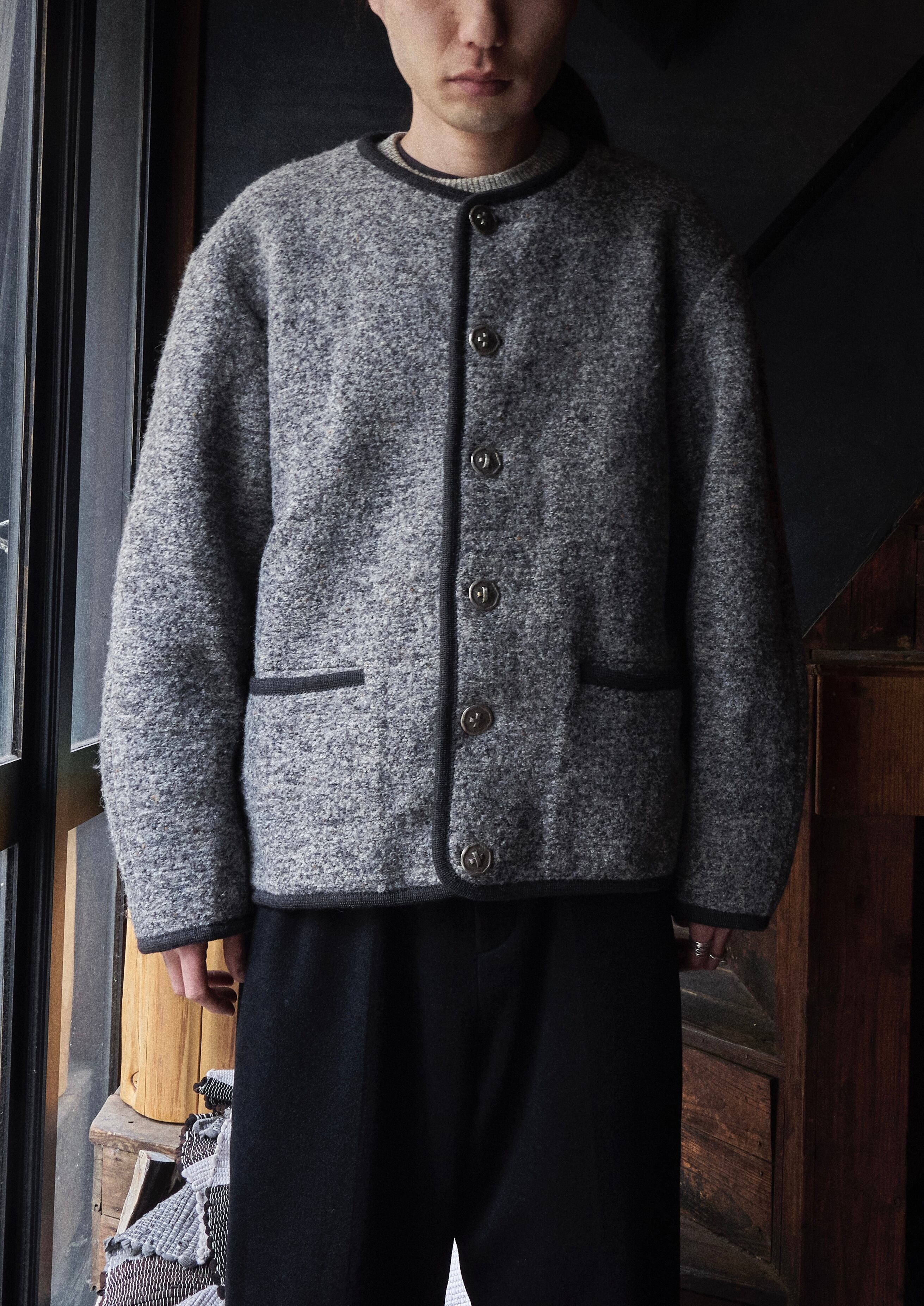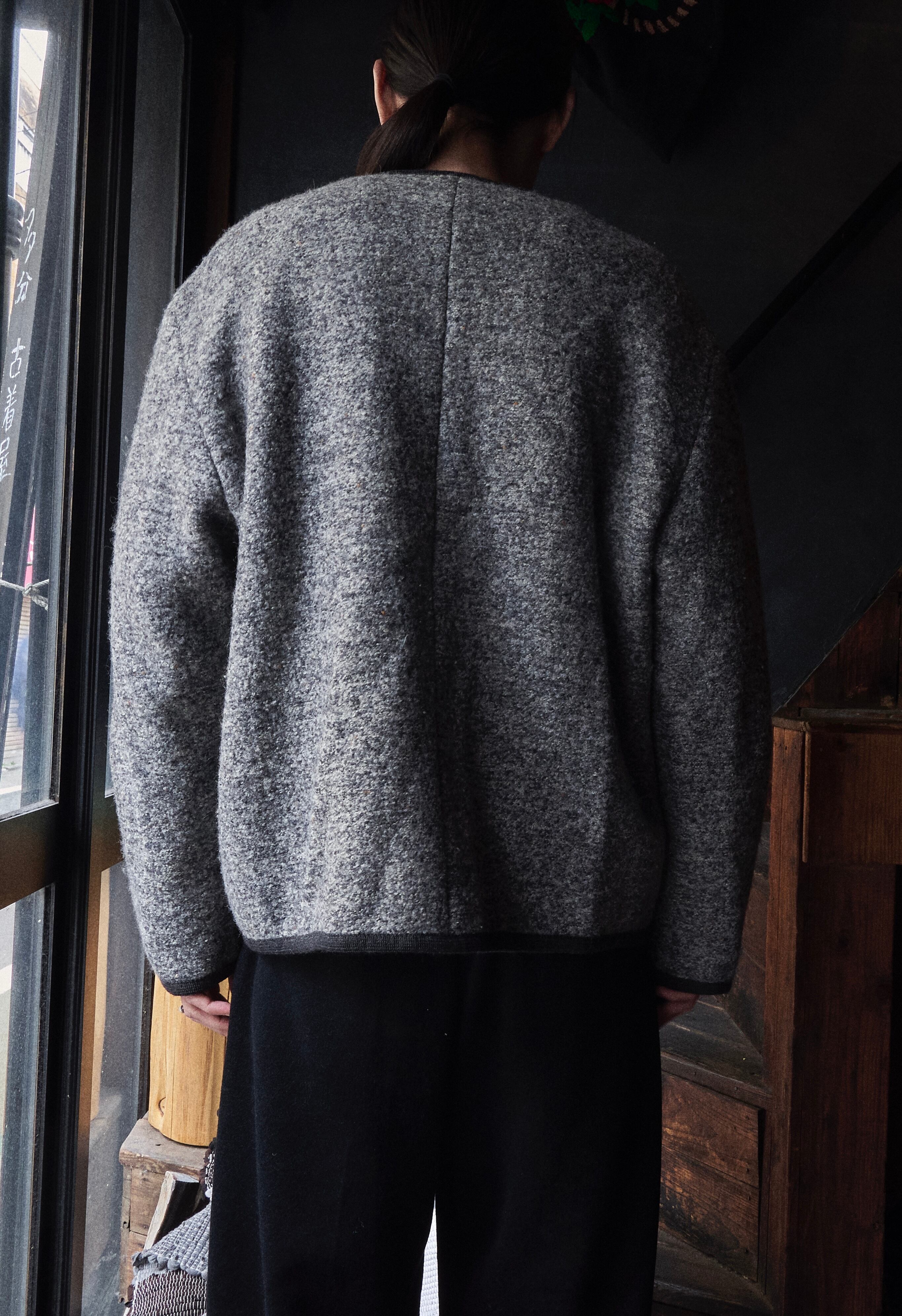 80s Austria Boiled Wool Gray Mix Nep Knit Jacket