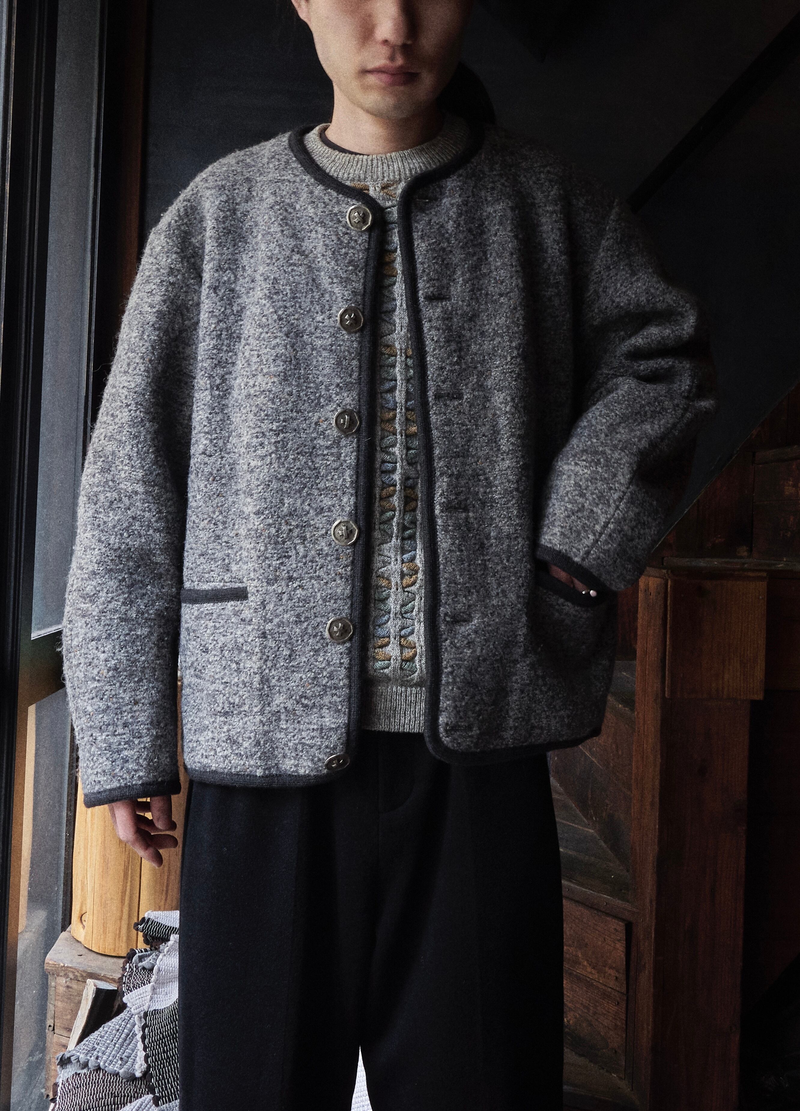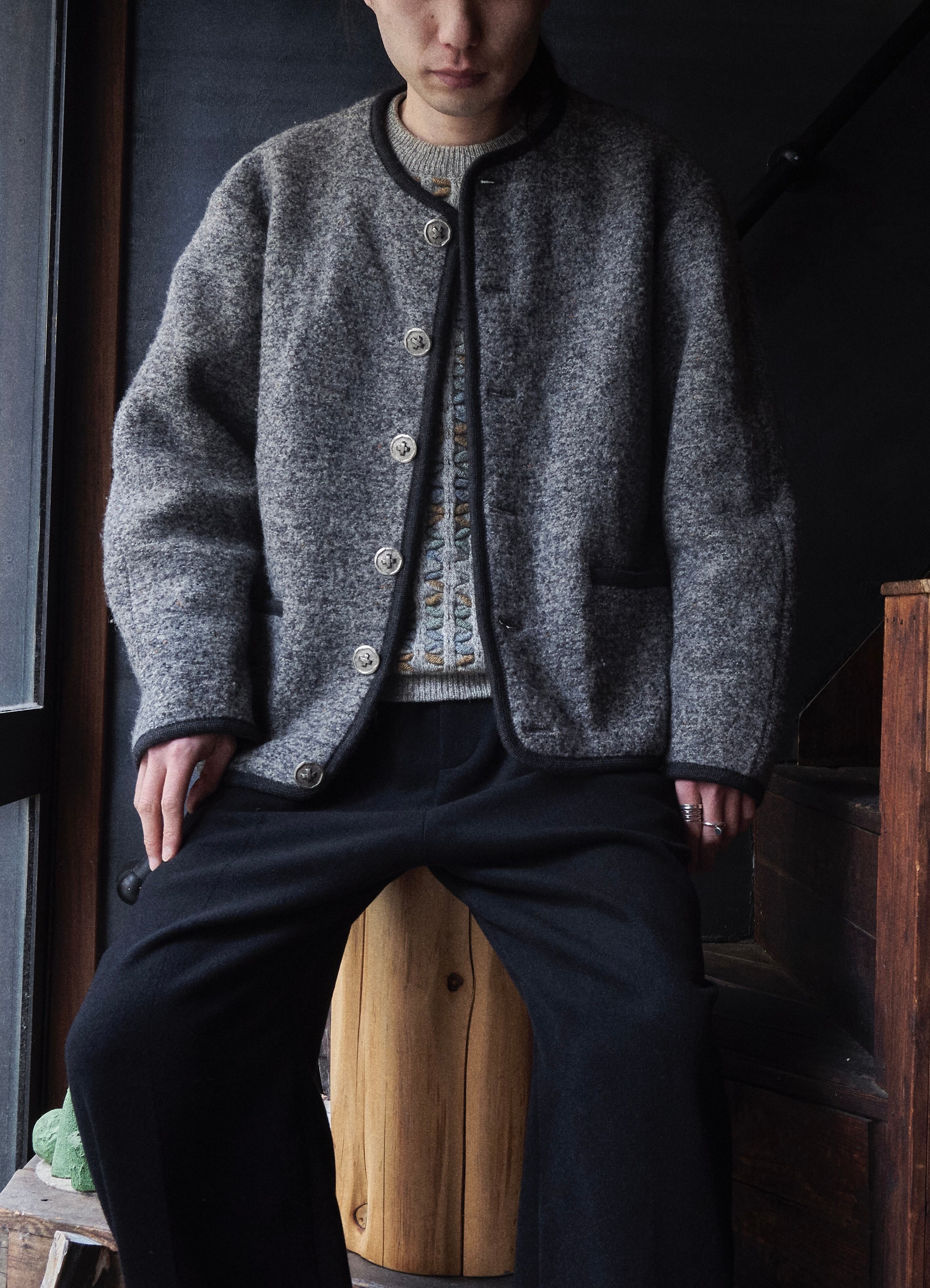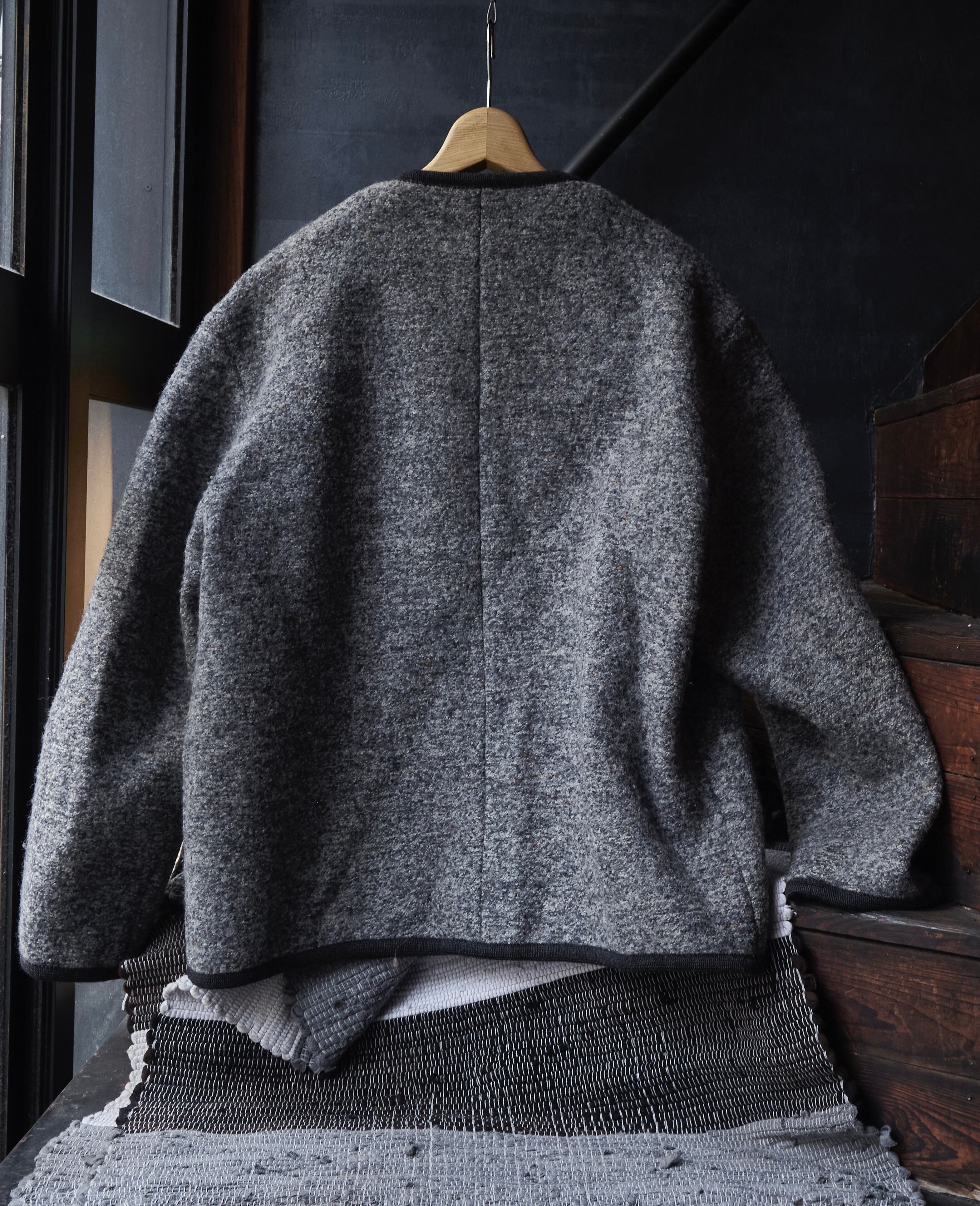 80s Austria Boiled Wool Gray Mix Nep Knit Jacket