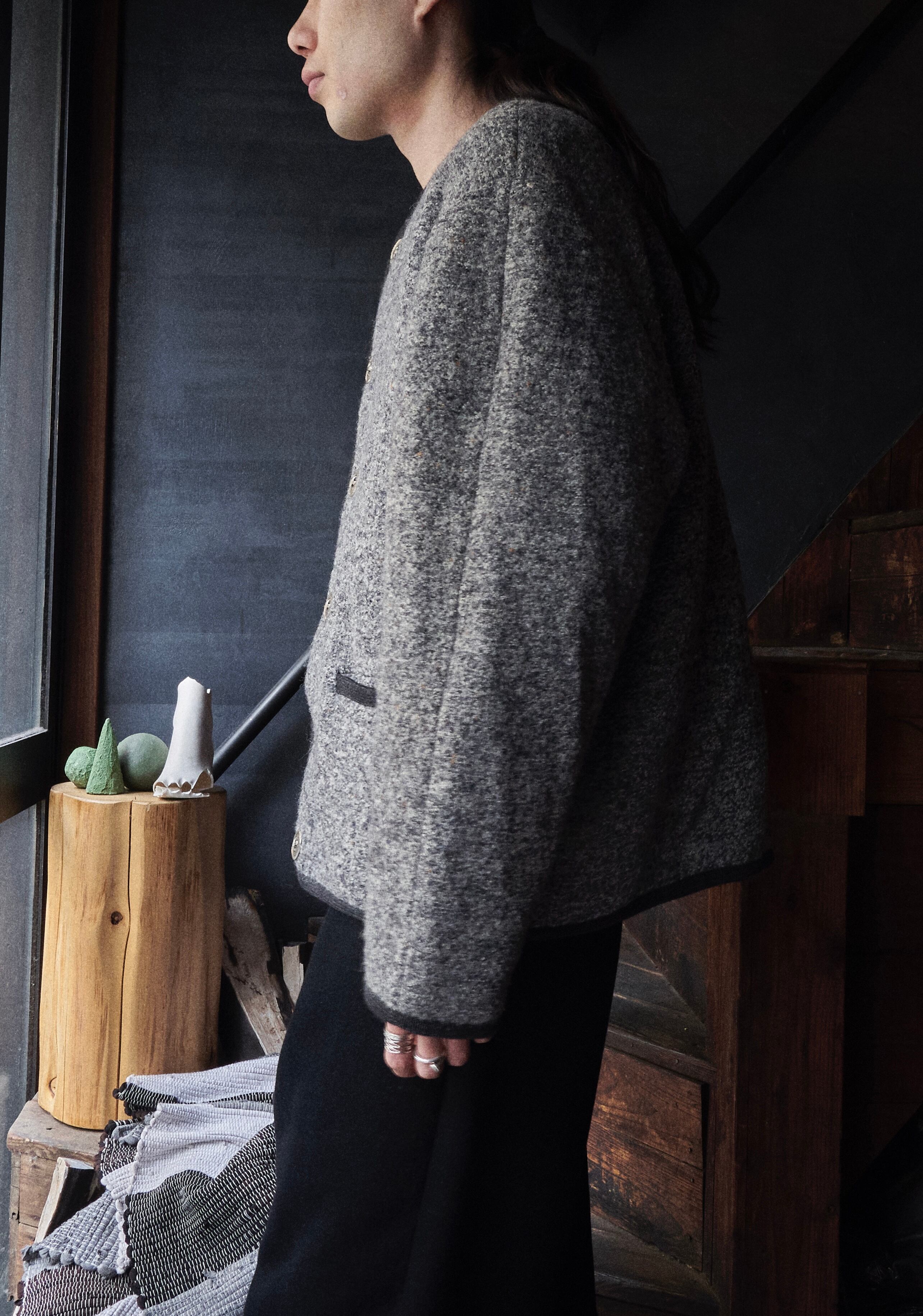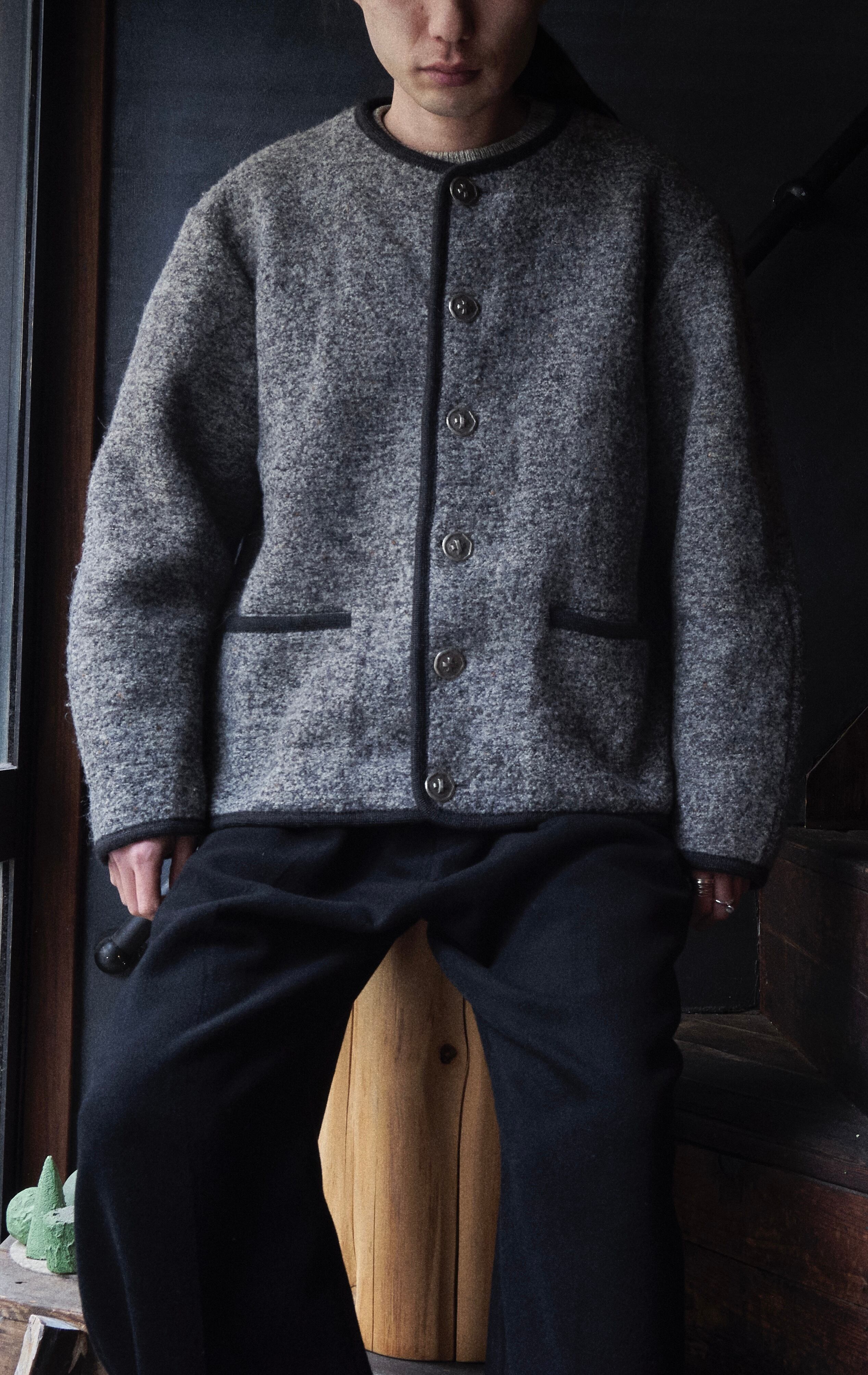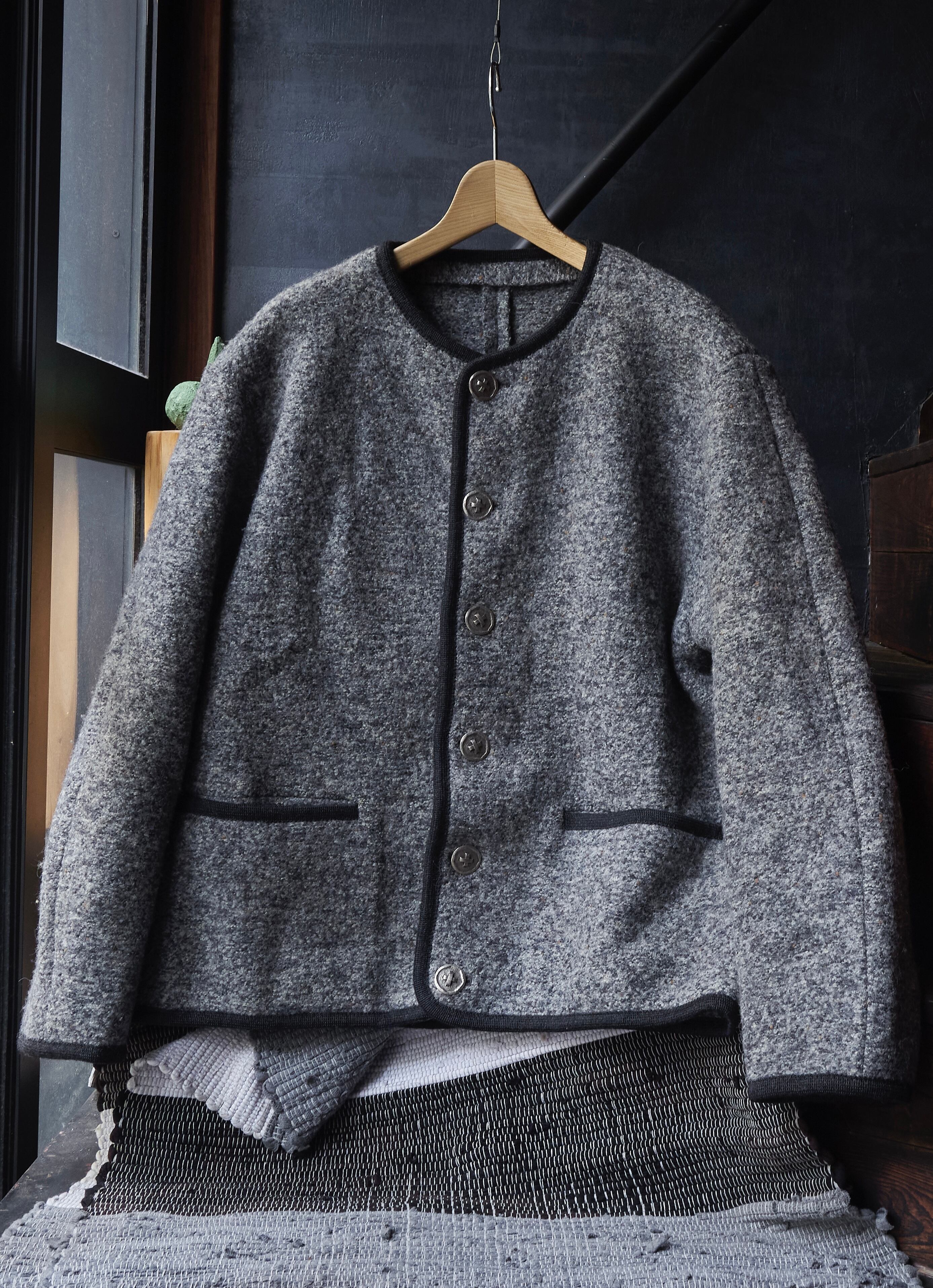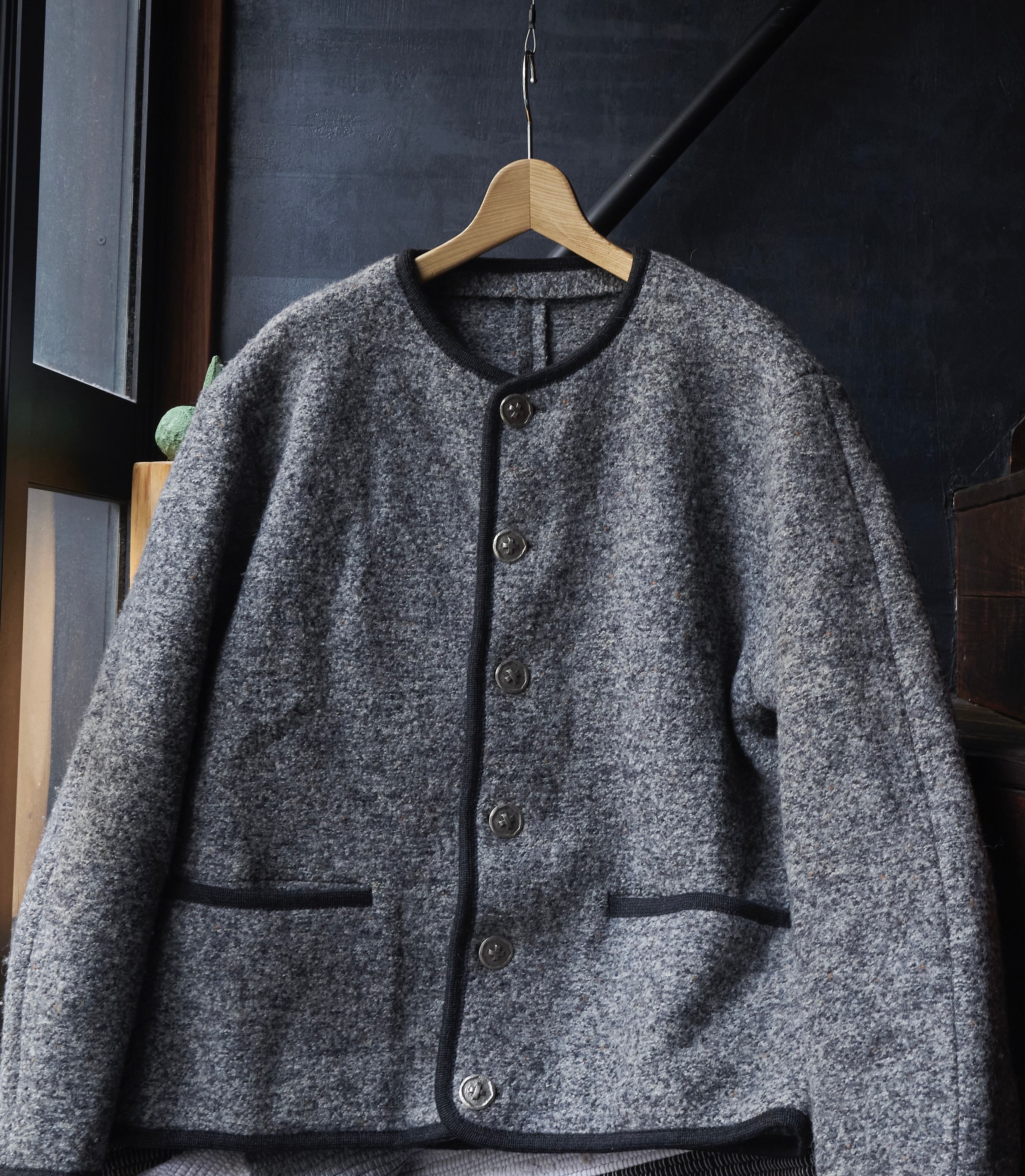 80s Austria Boiled Wool Gray Mix Nep Knit Jacket