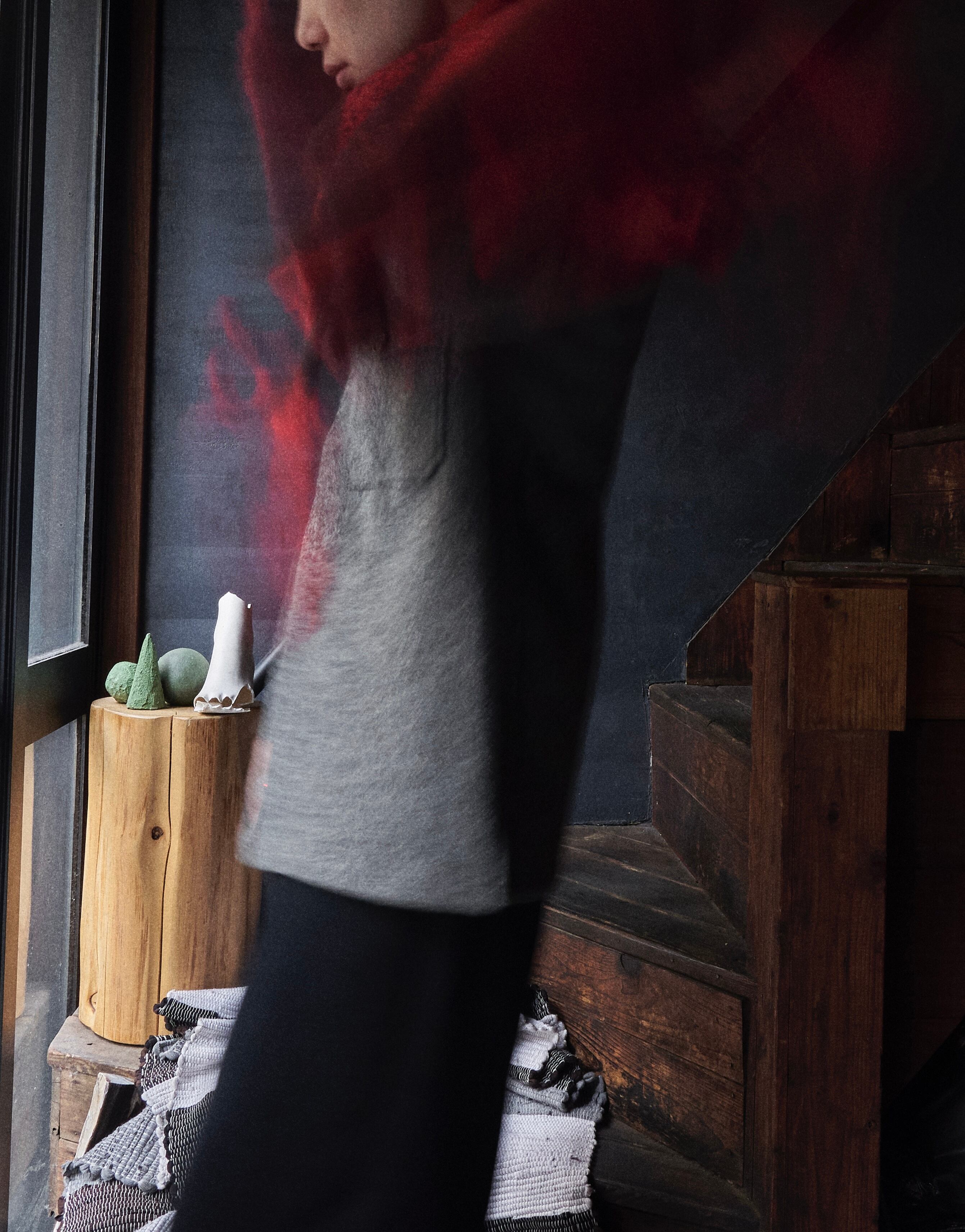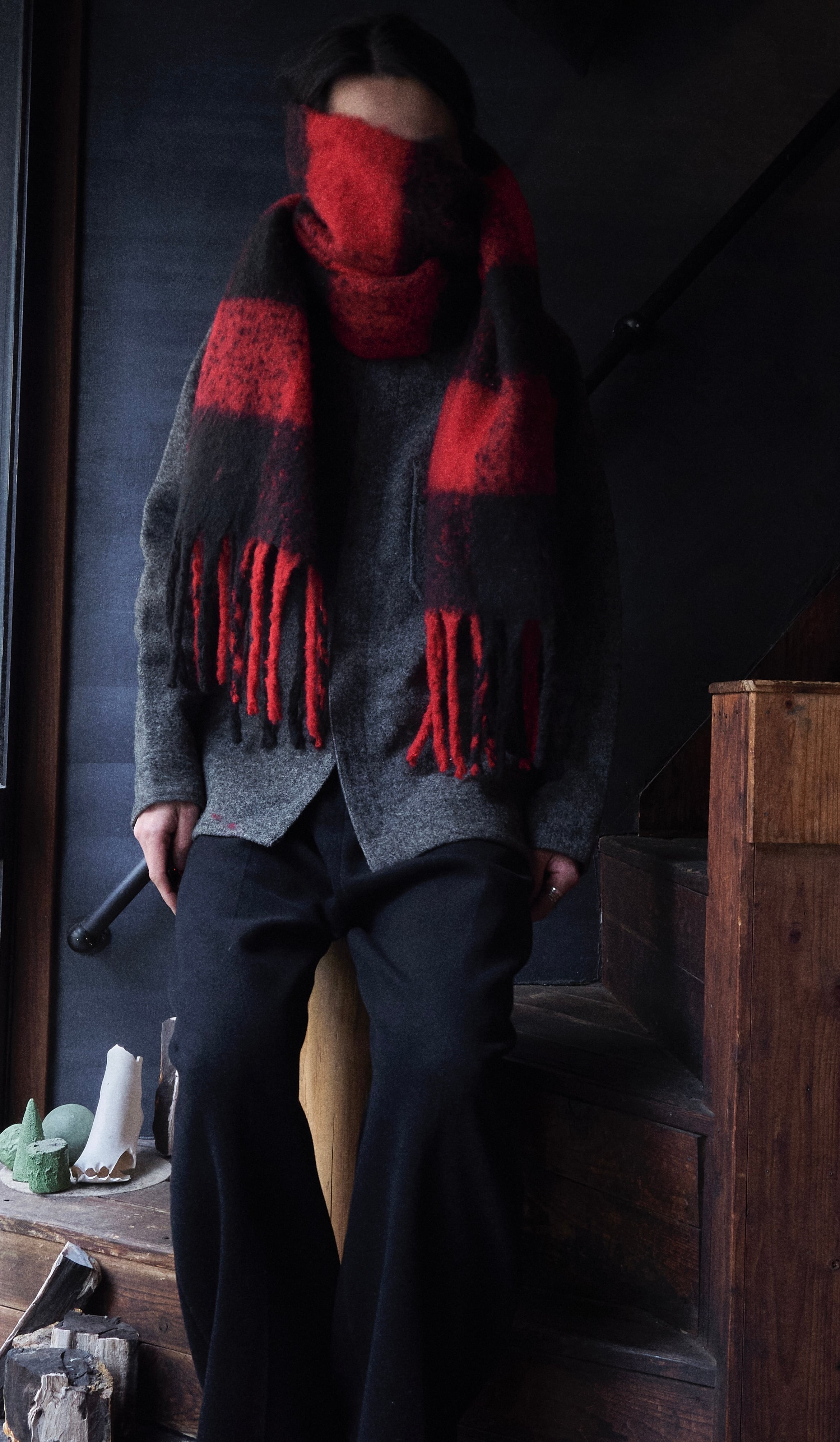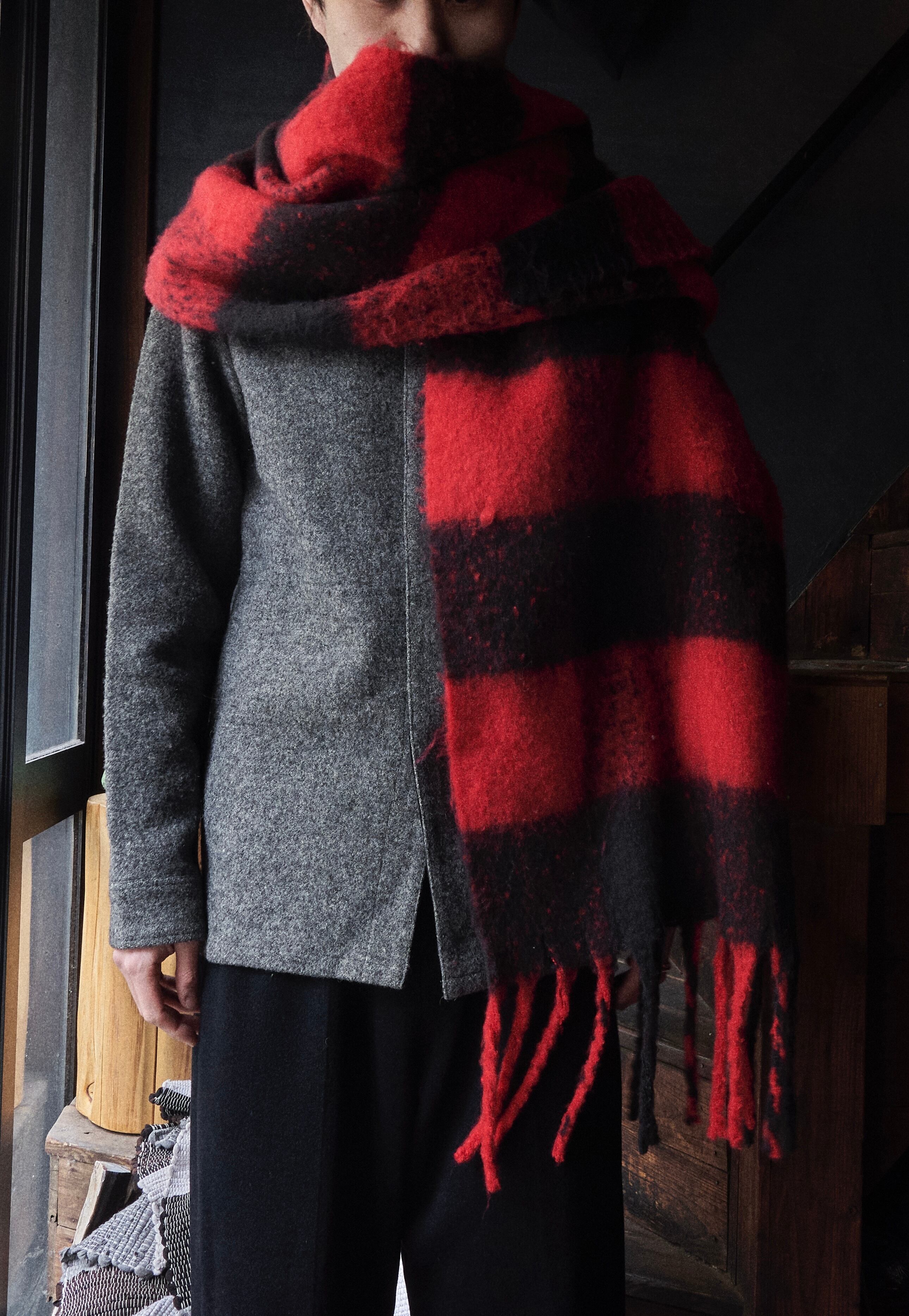 アウターとかの上に被せて着れますし、元々の用途マフラーとしても使えます!