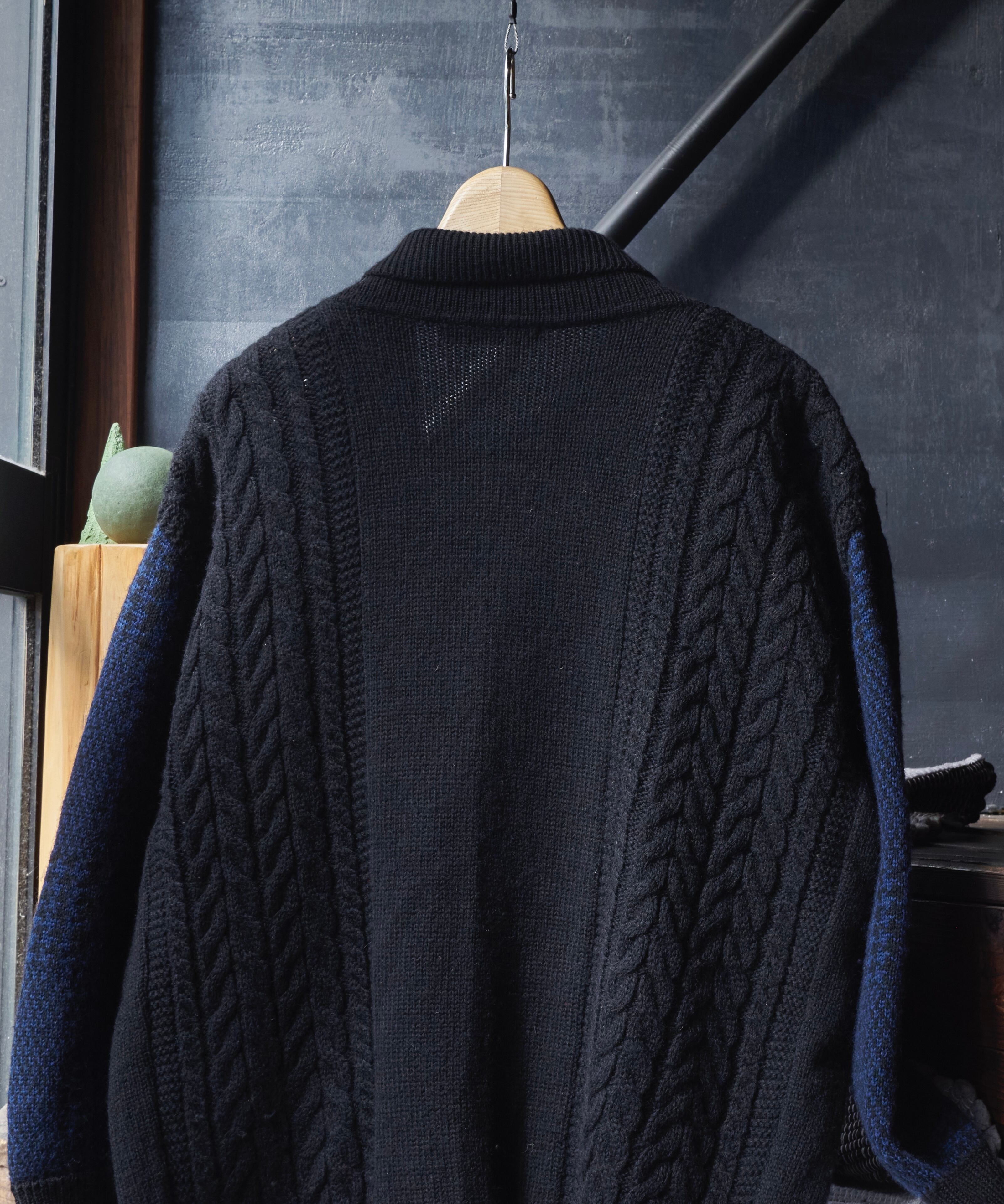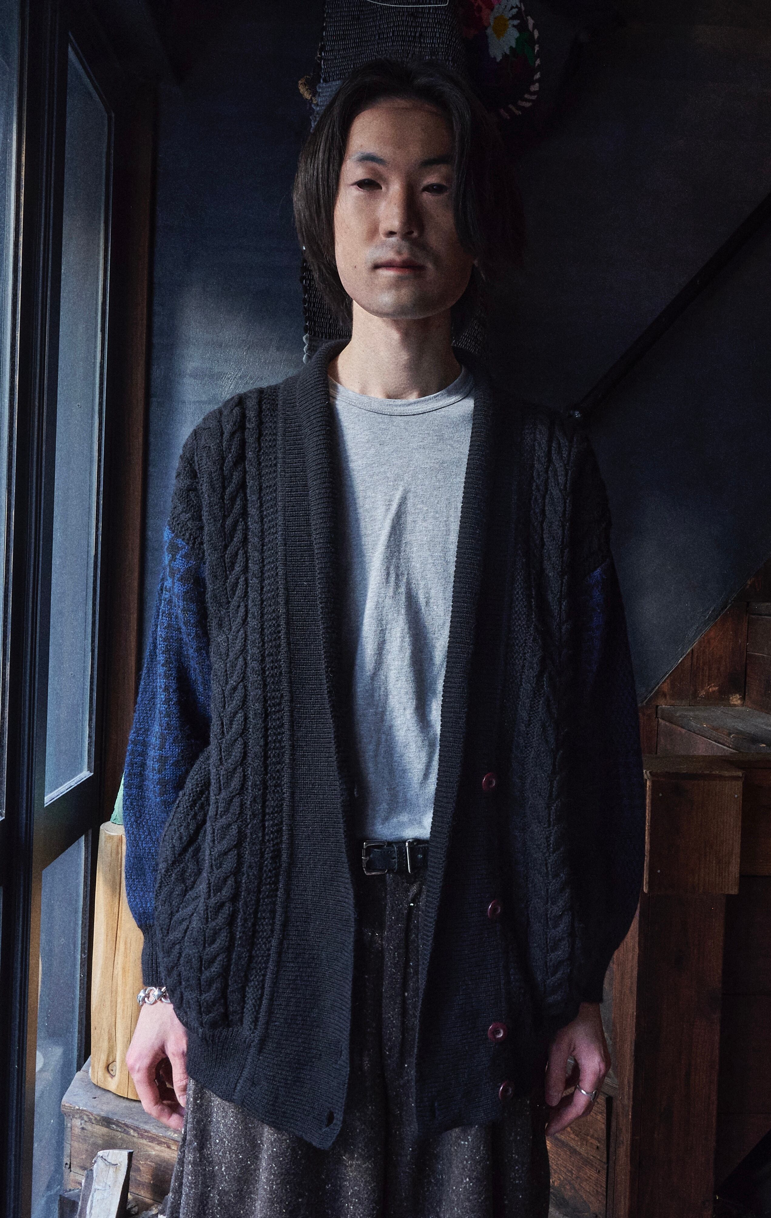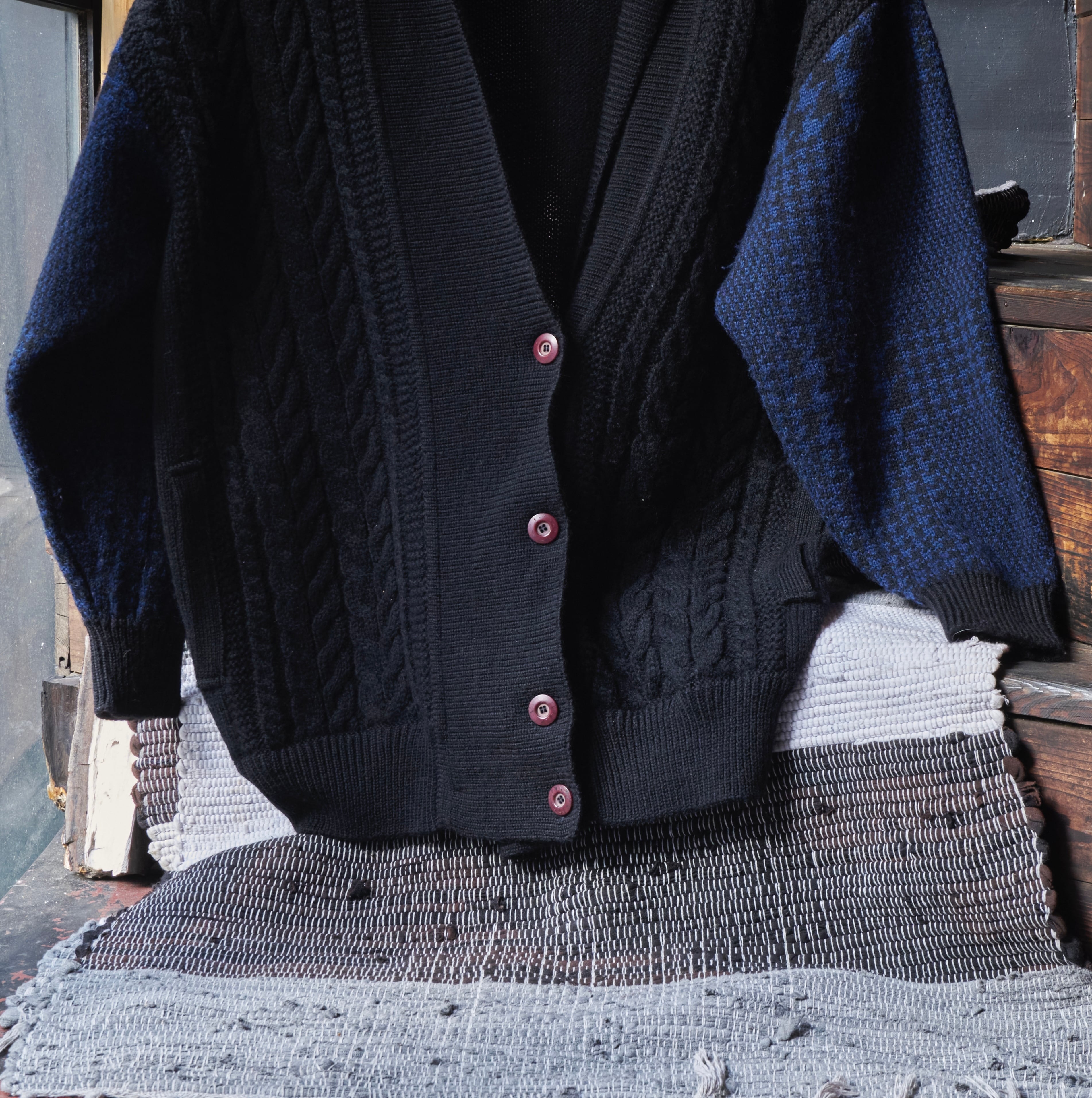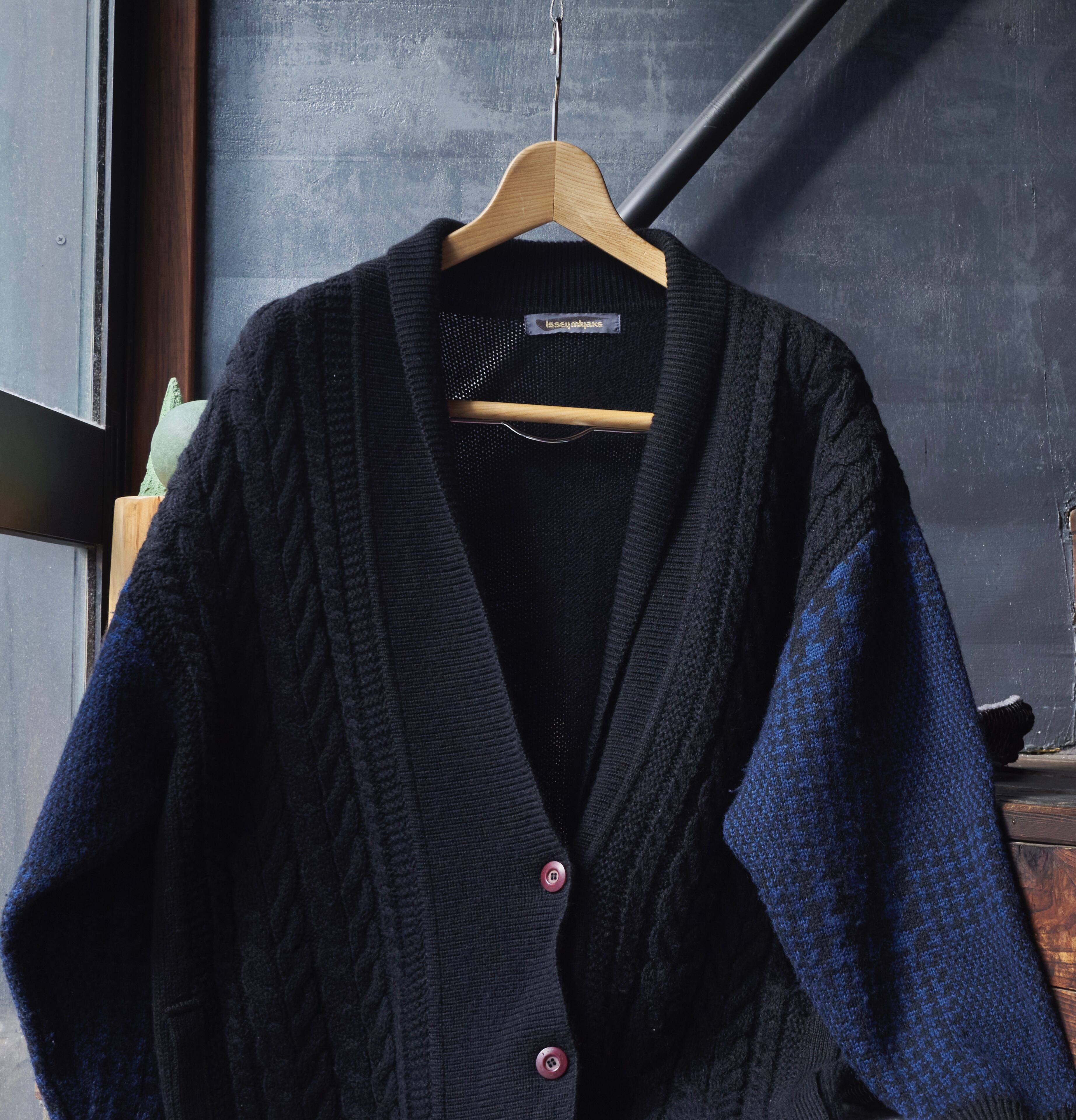 80s ISSEY MIYAKE Brush tag cable wool knit cardigan