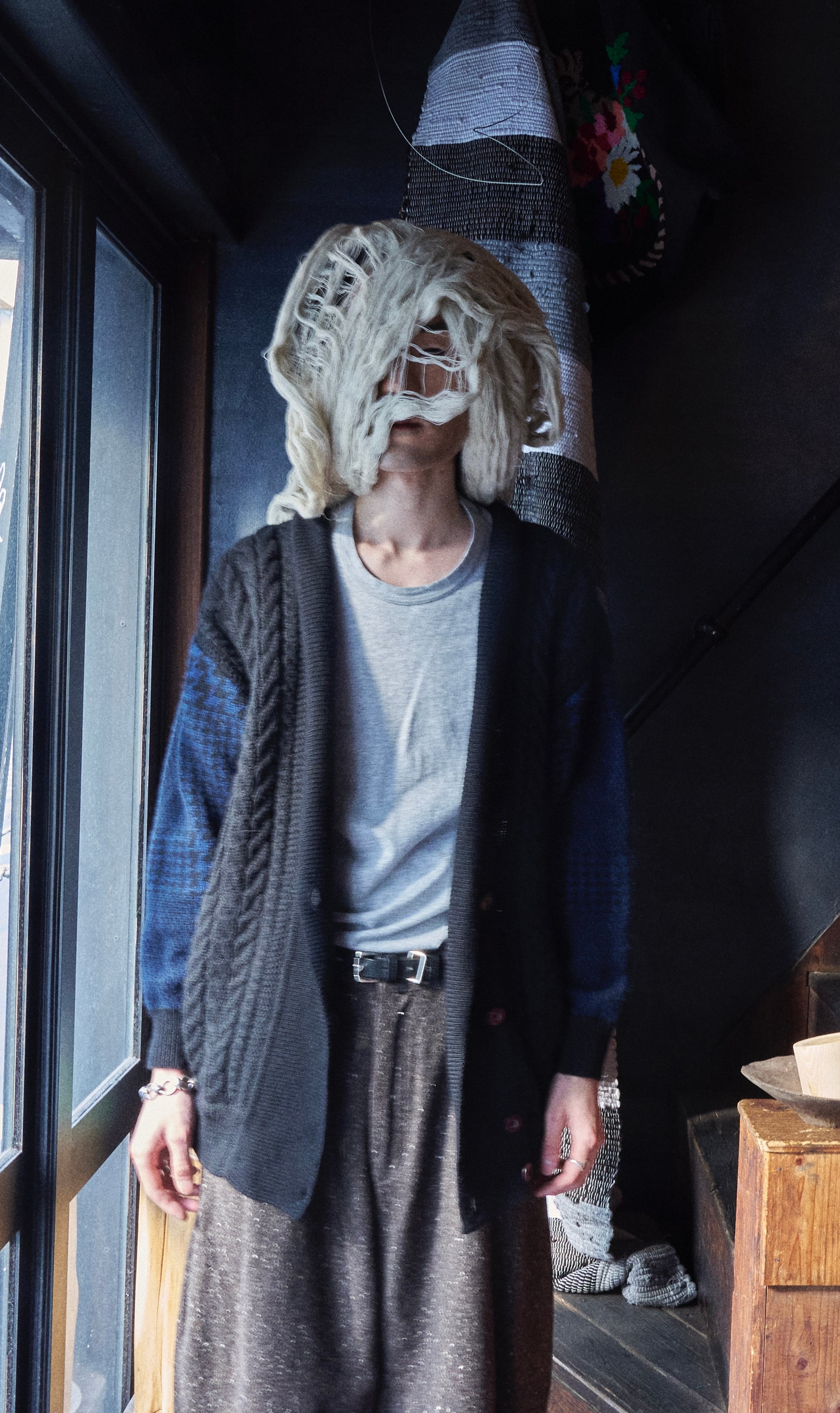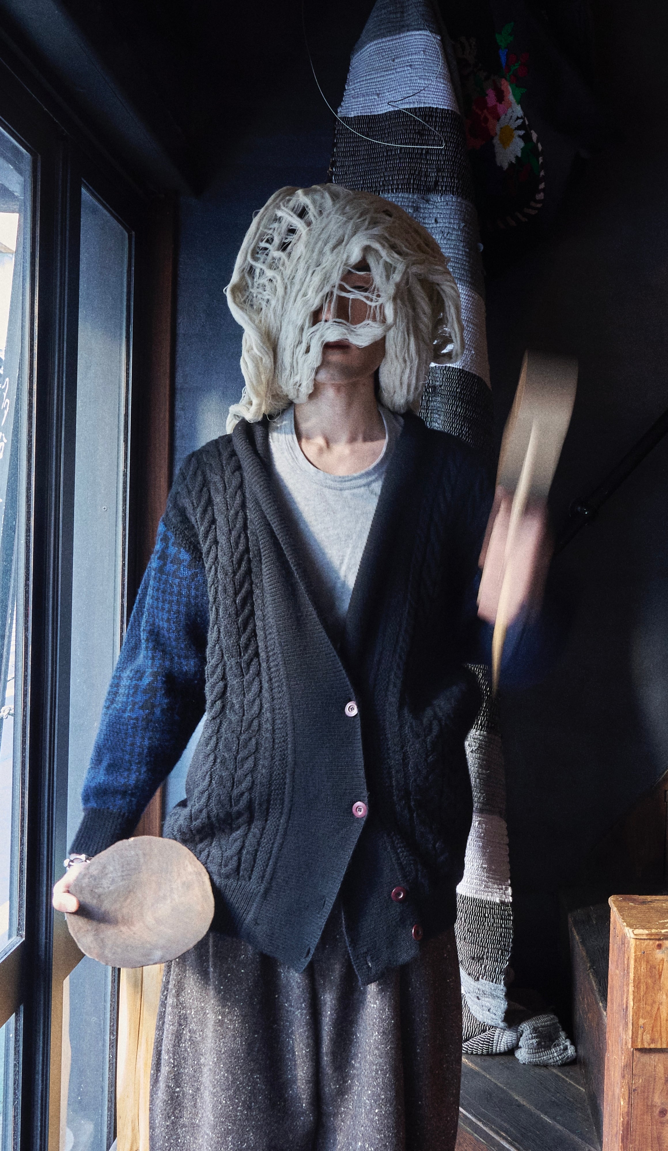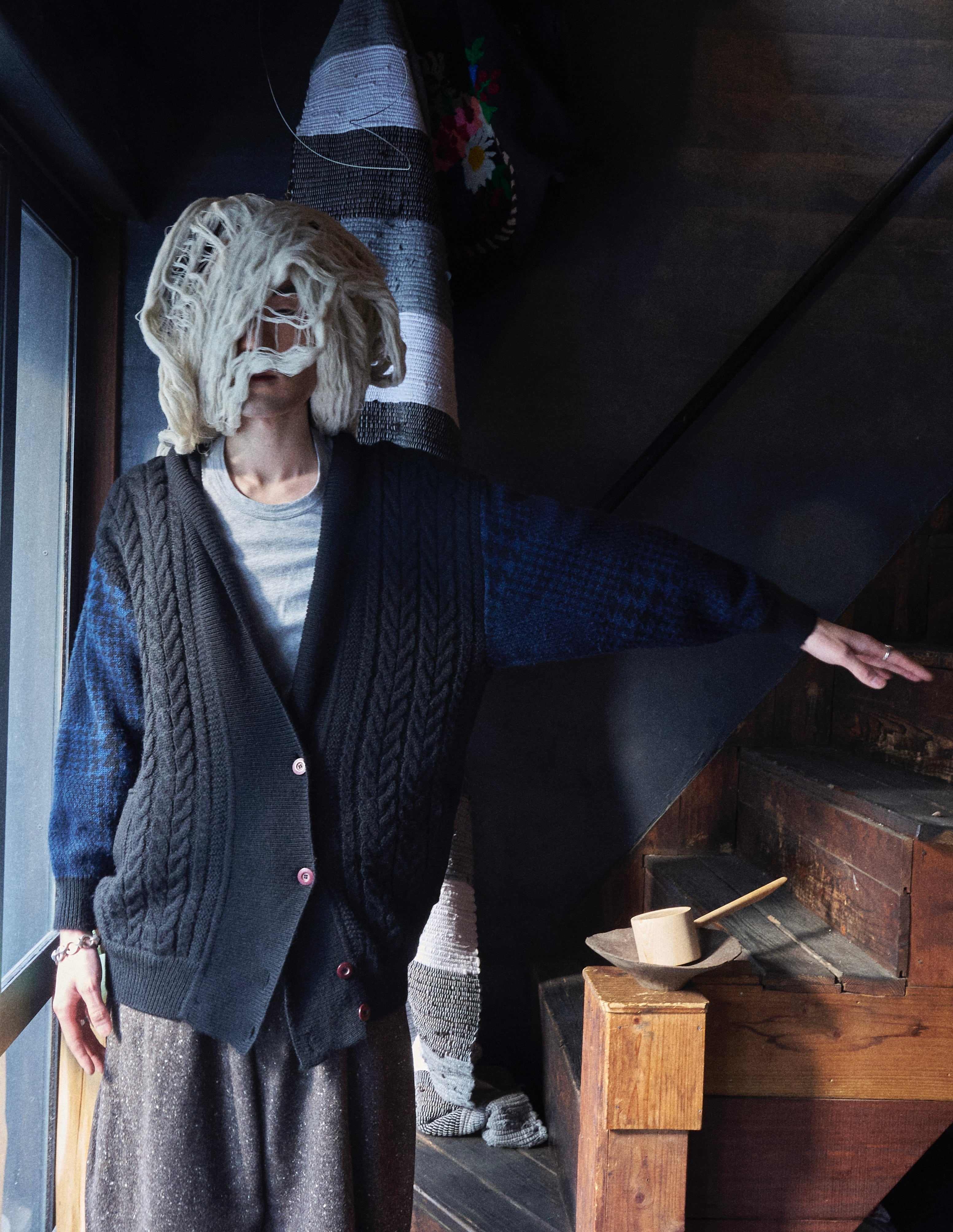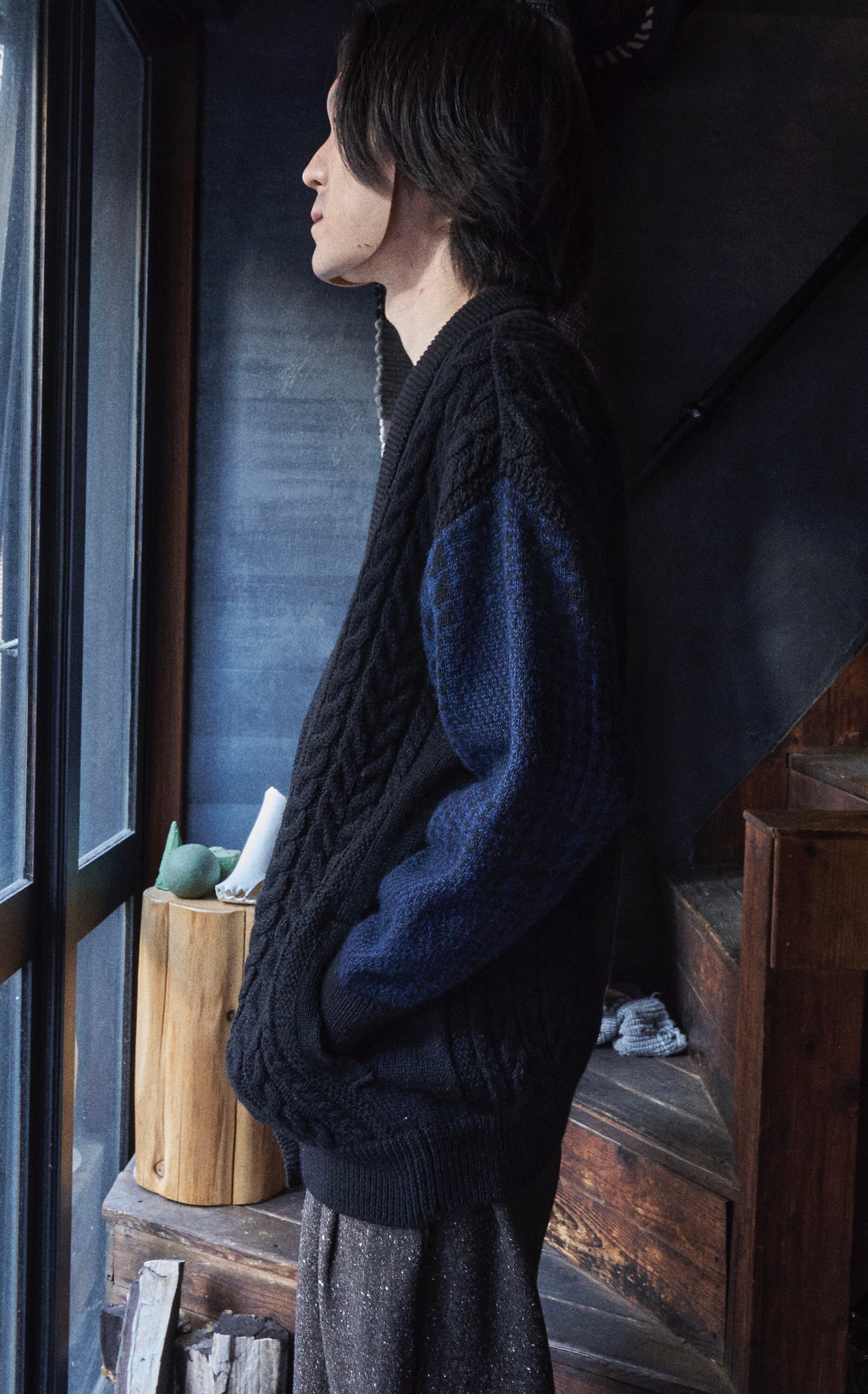 80s ISSEY MIYAKE Brush tag cable wool knit cardigan