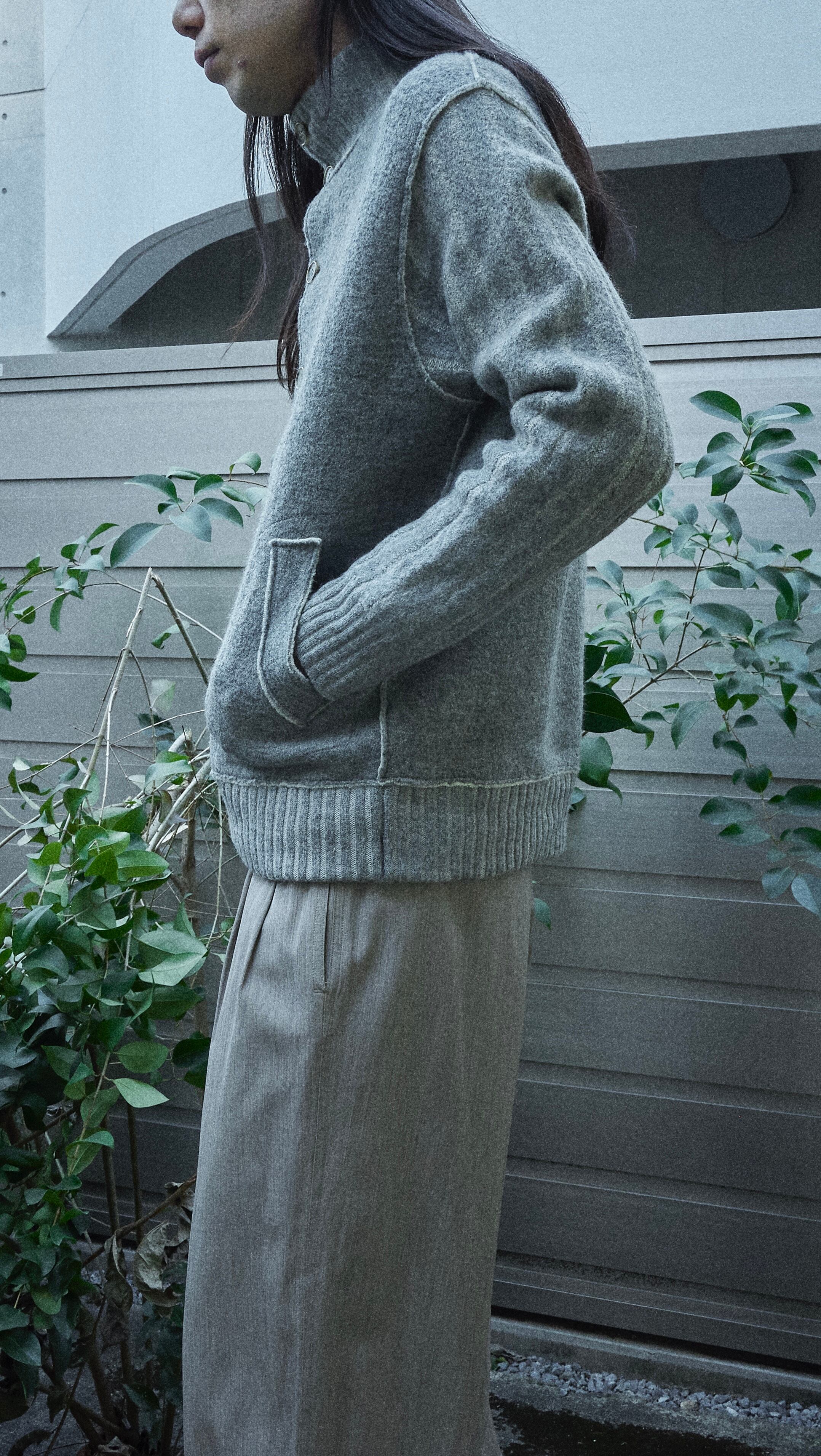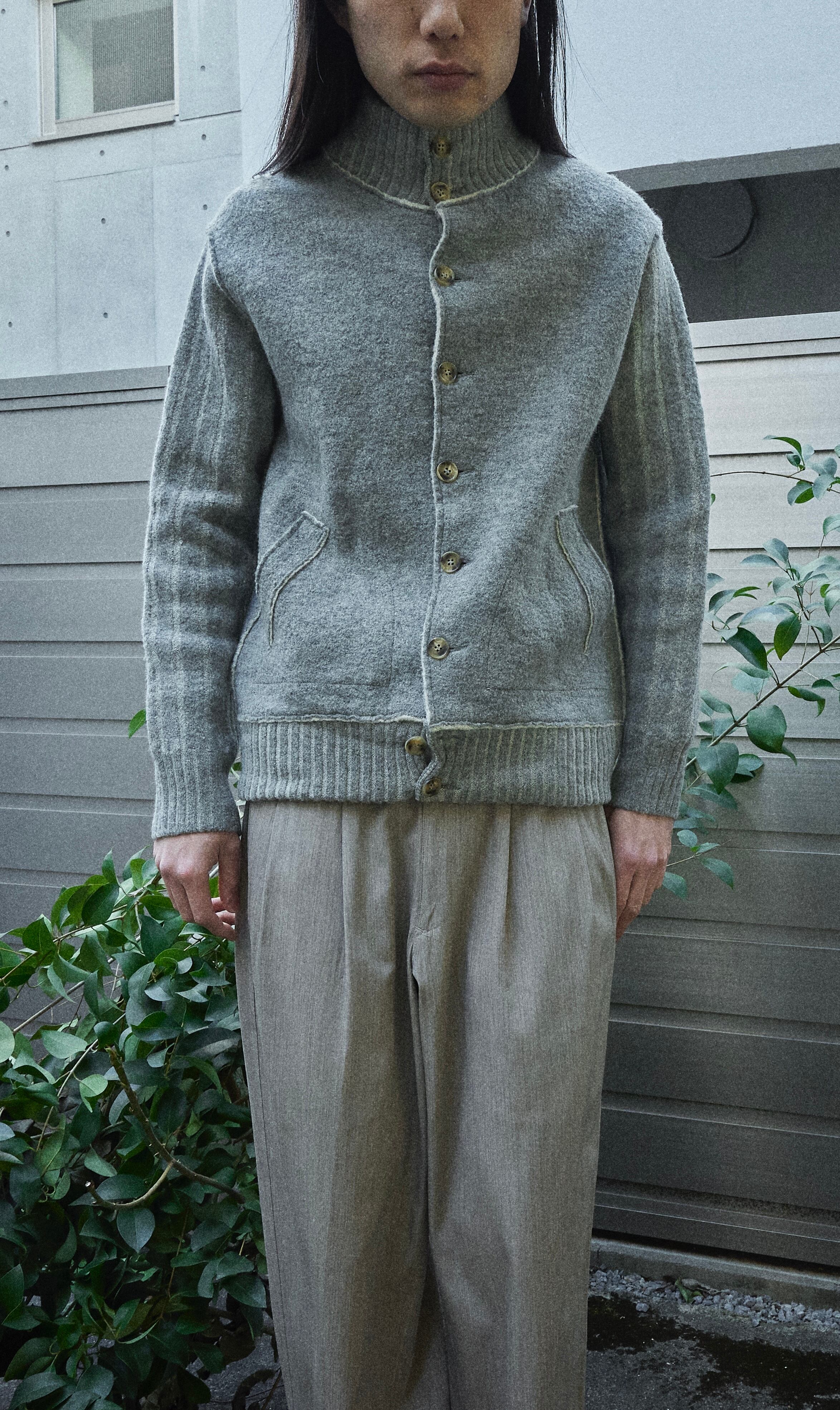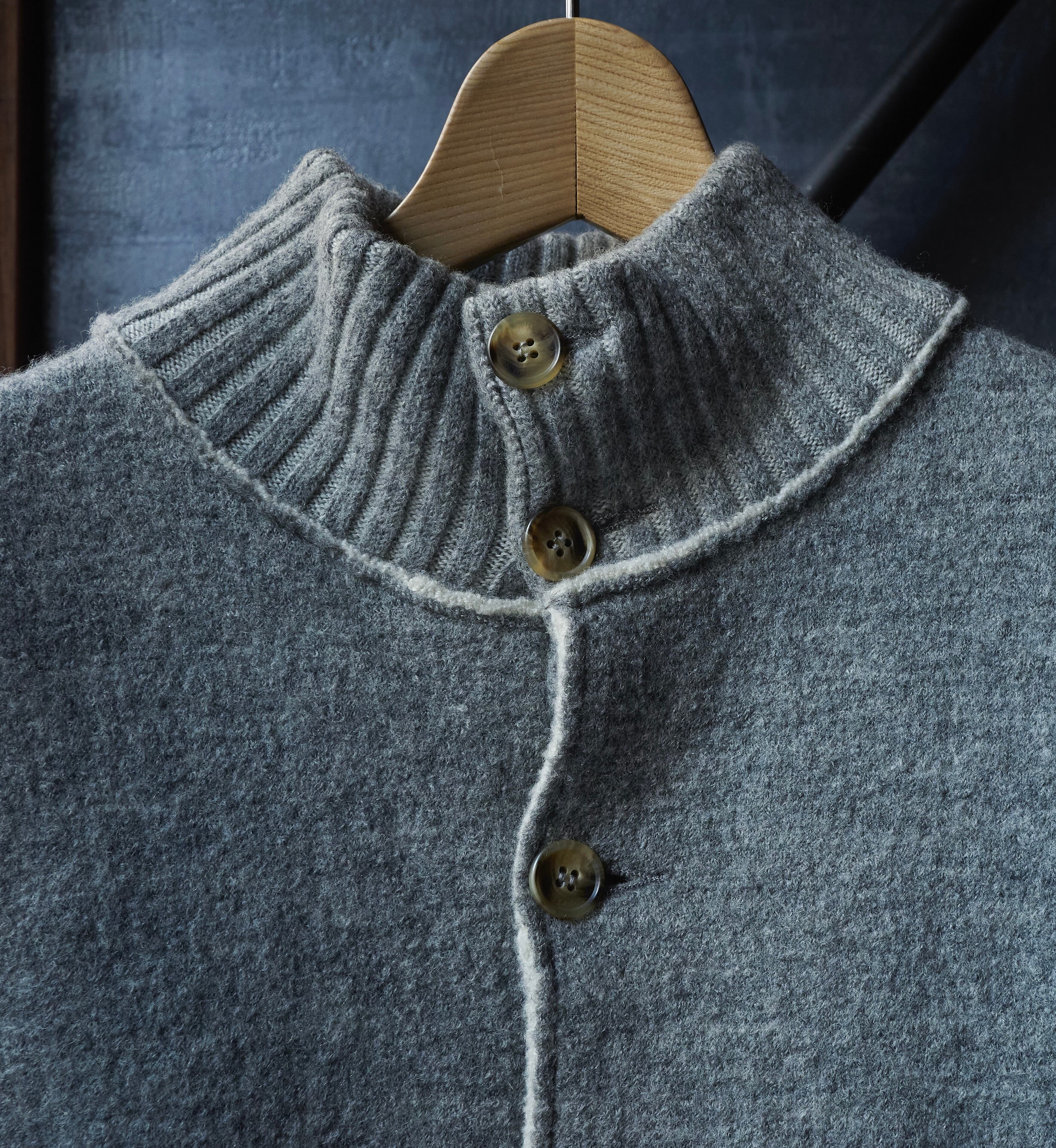素晴らしいコルネリアーニのボイルド加工が施されたニット。硬さのディテールの中にウールの柔らかさある。