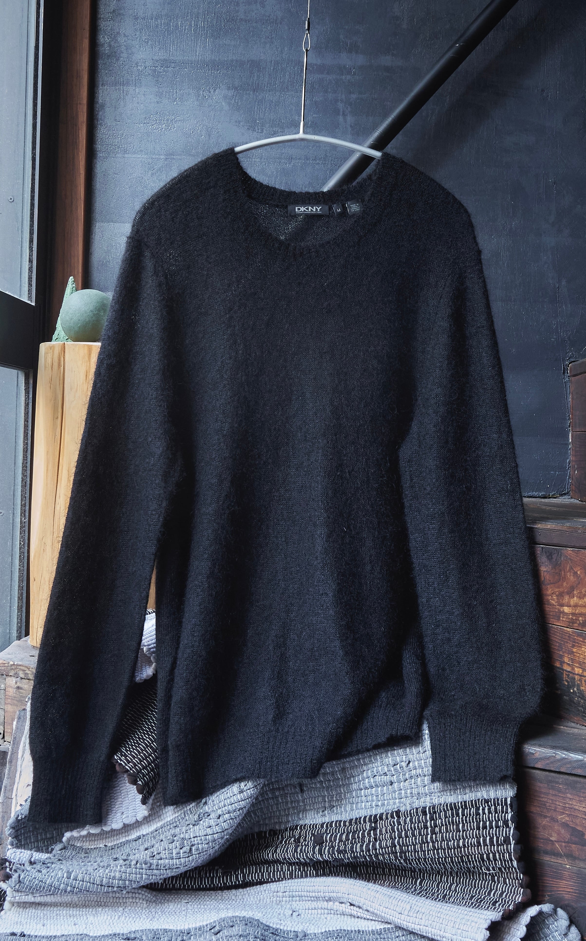 DKNY Black mohair x nylon light-weight crew neck knit