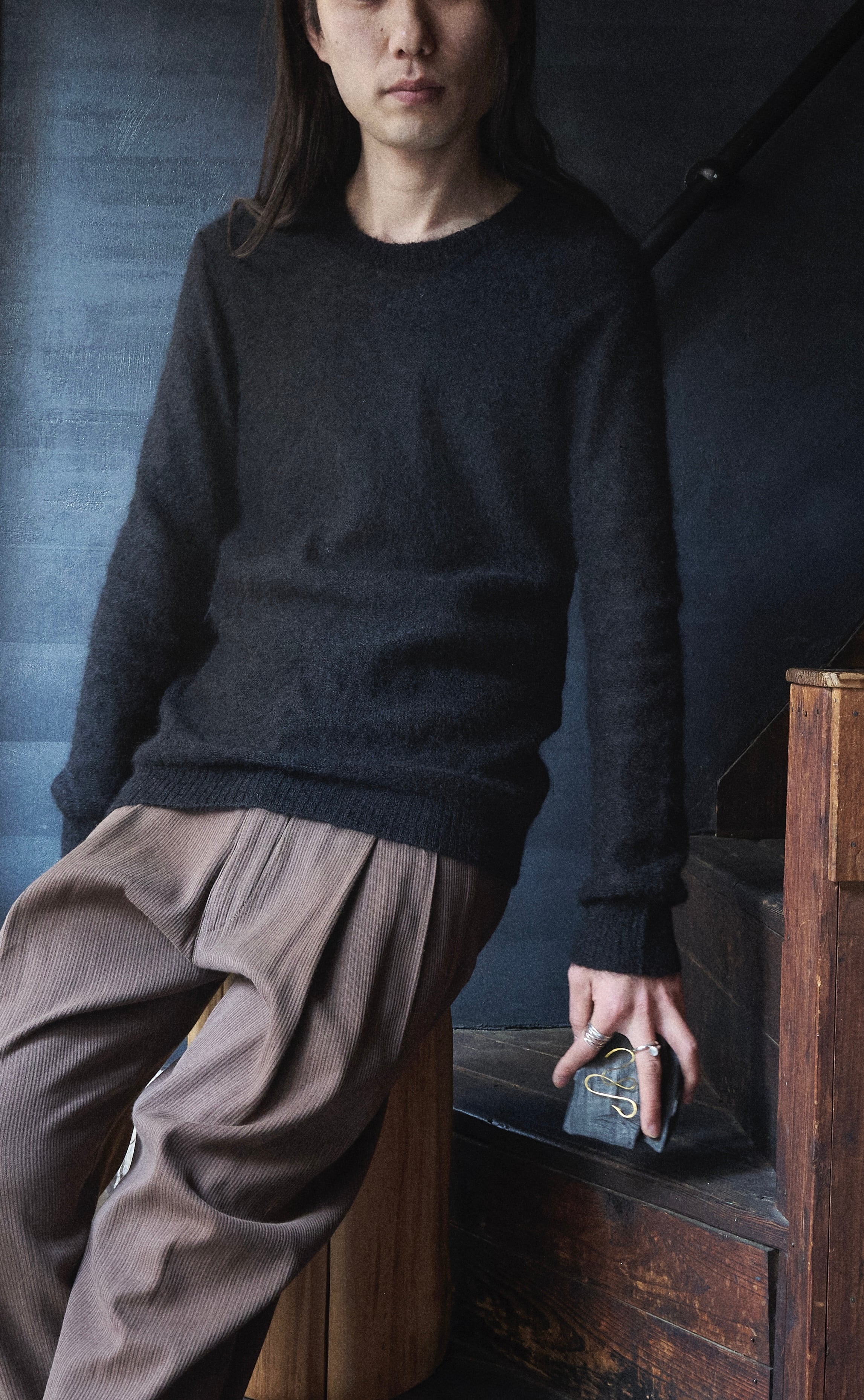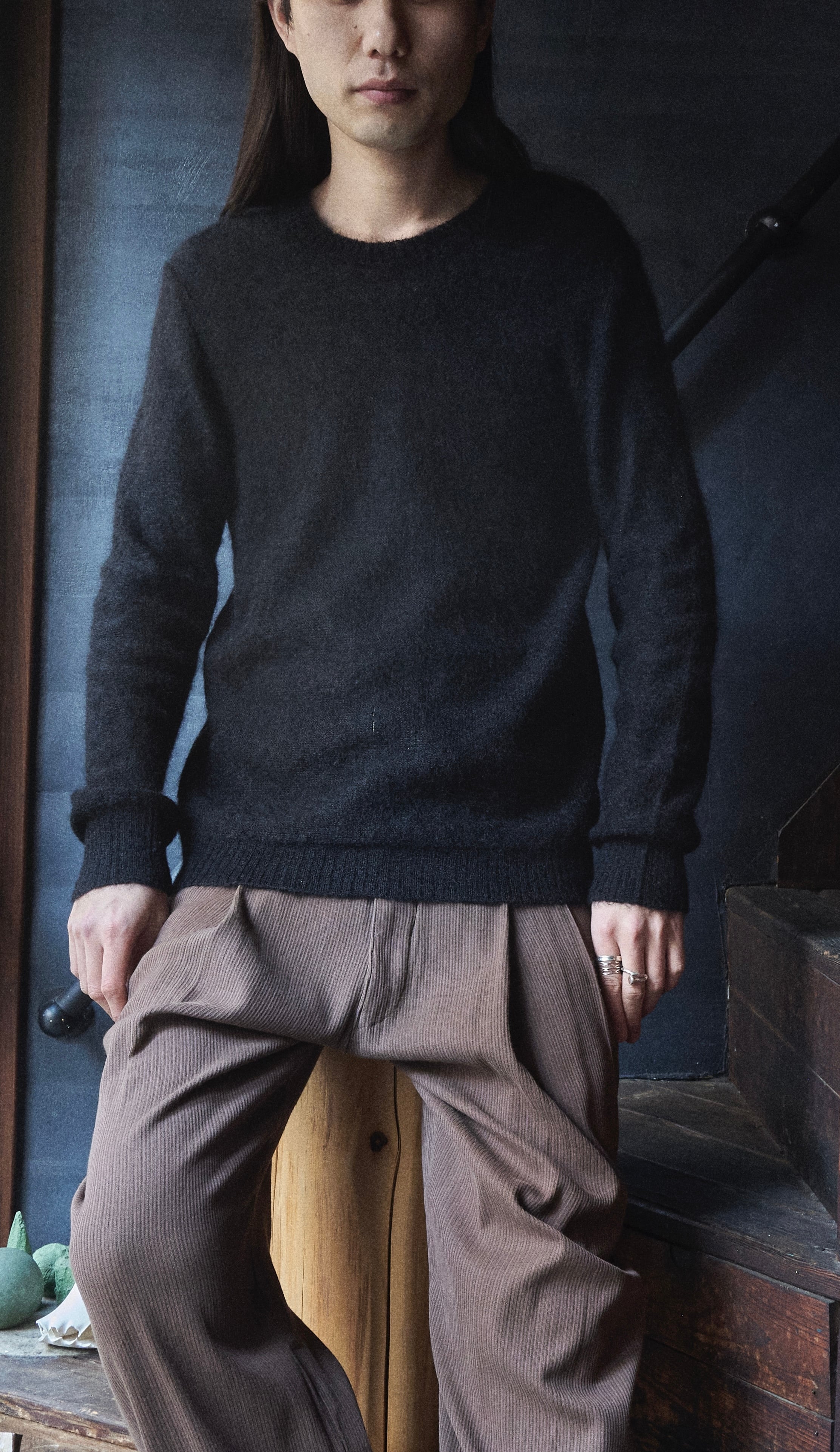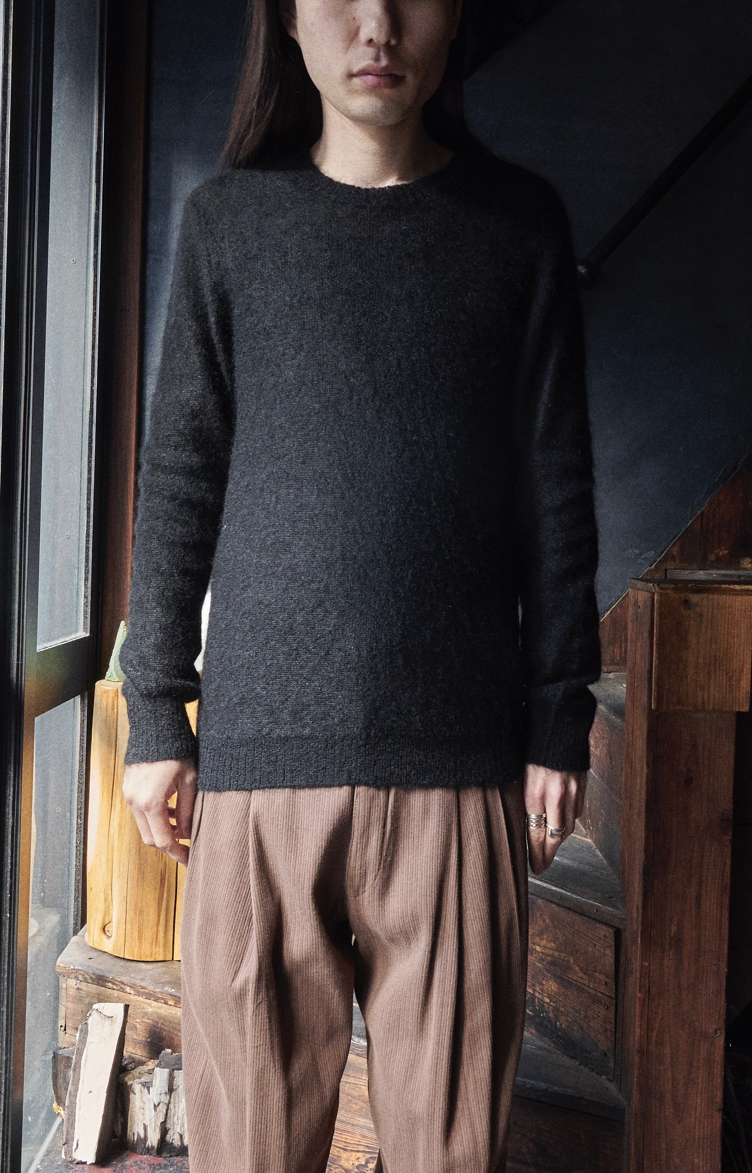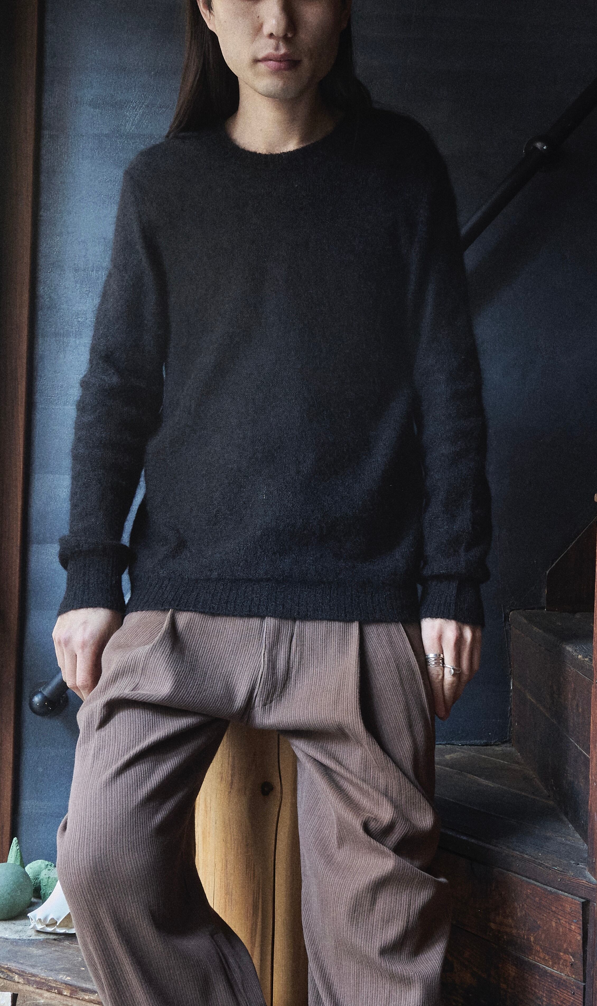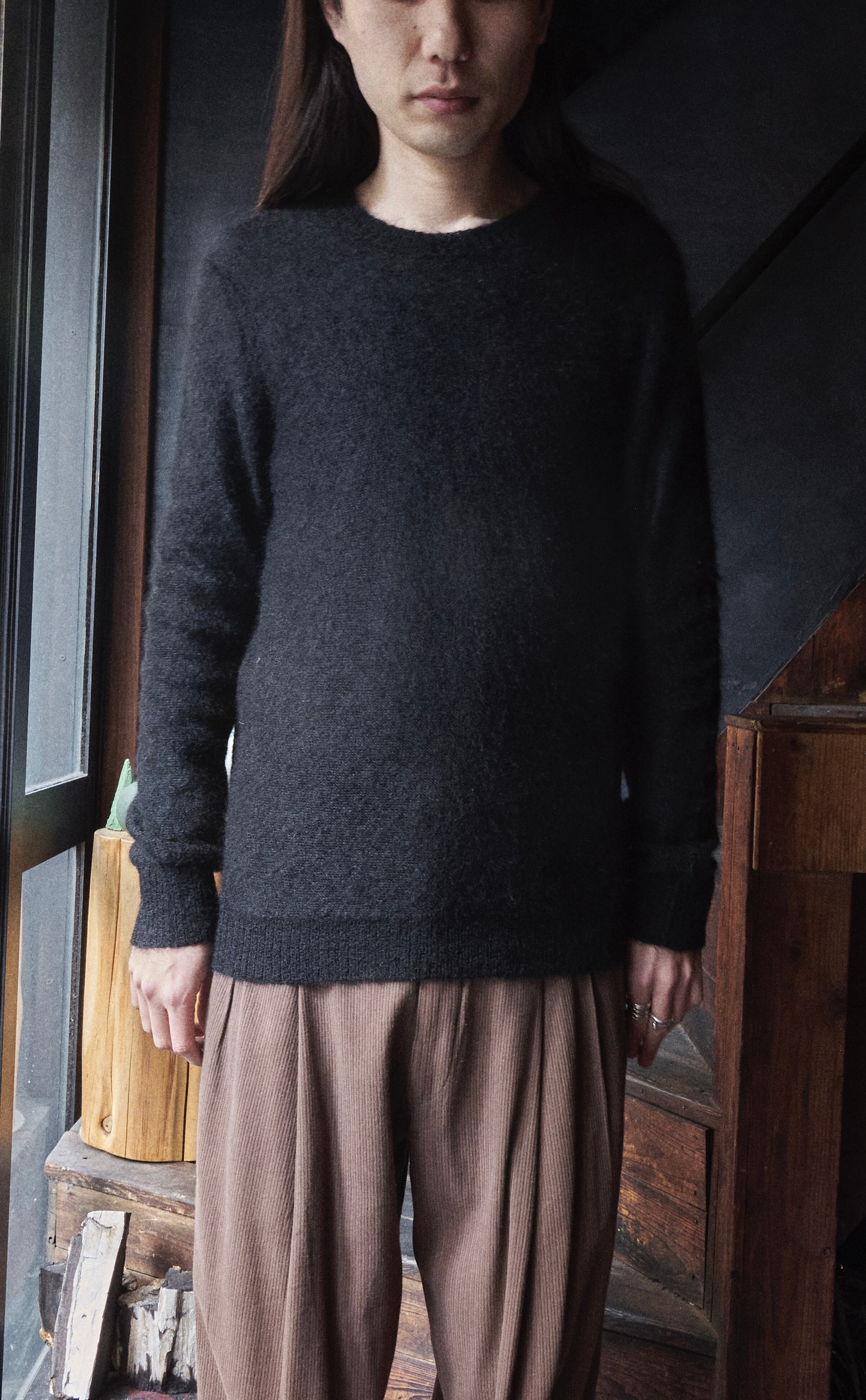 そんな絶妙なオンスの丸首モヘヤニットです。