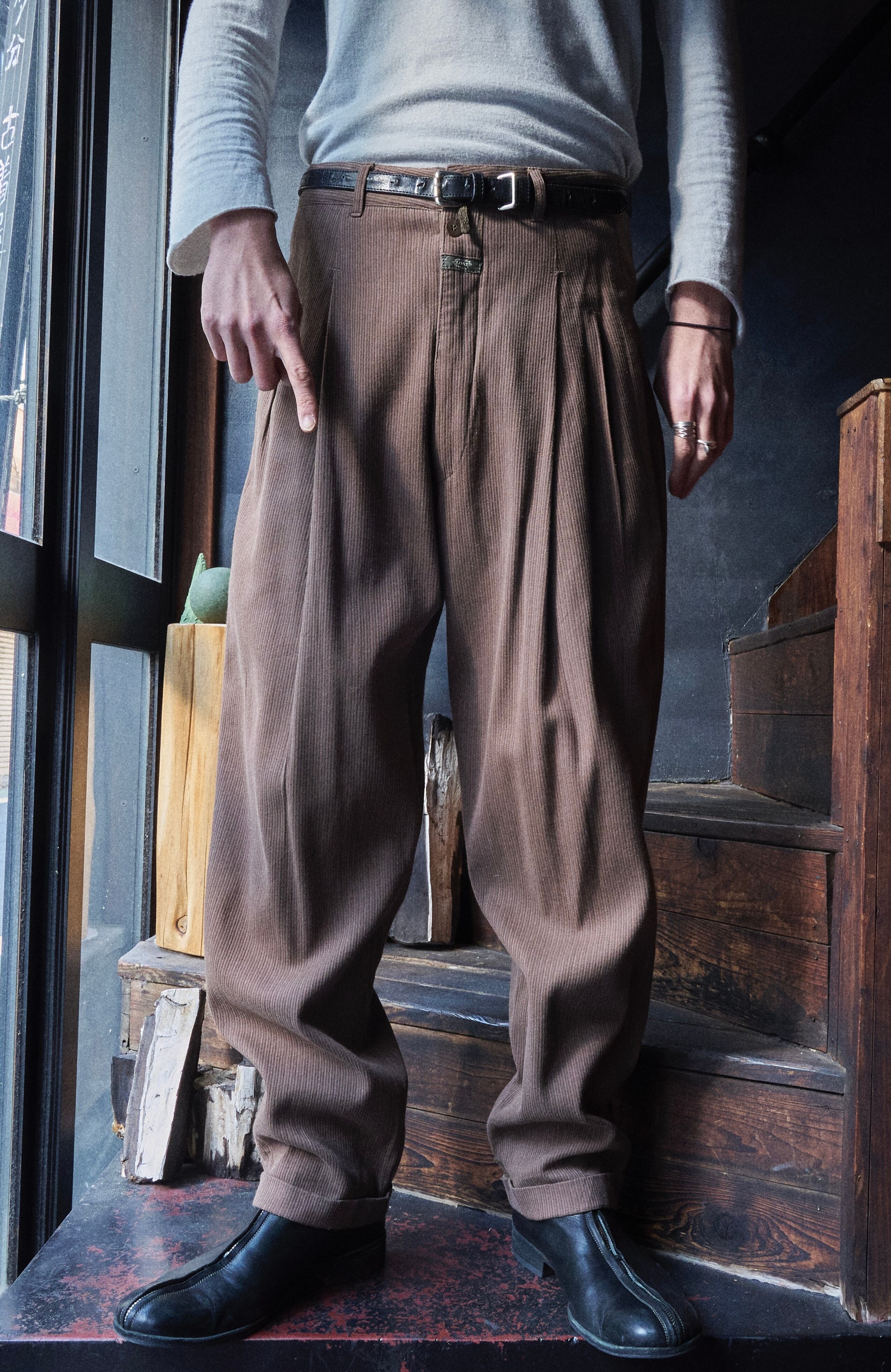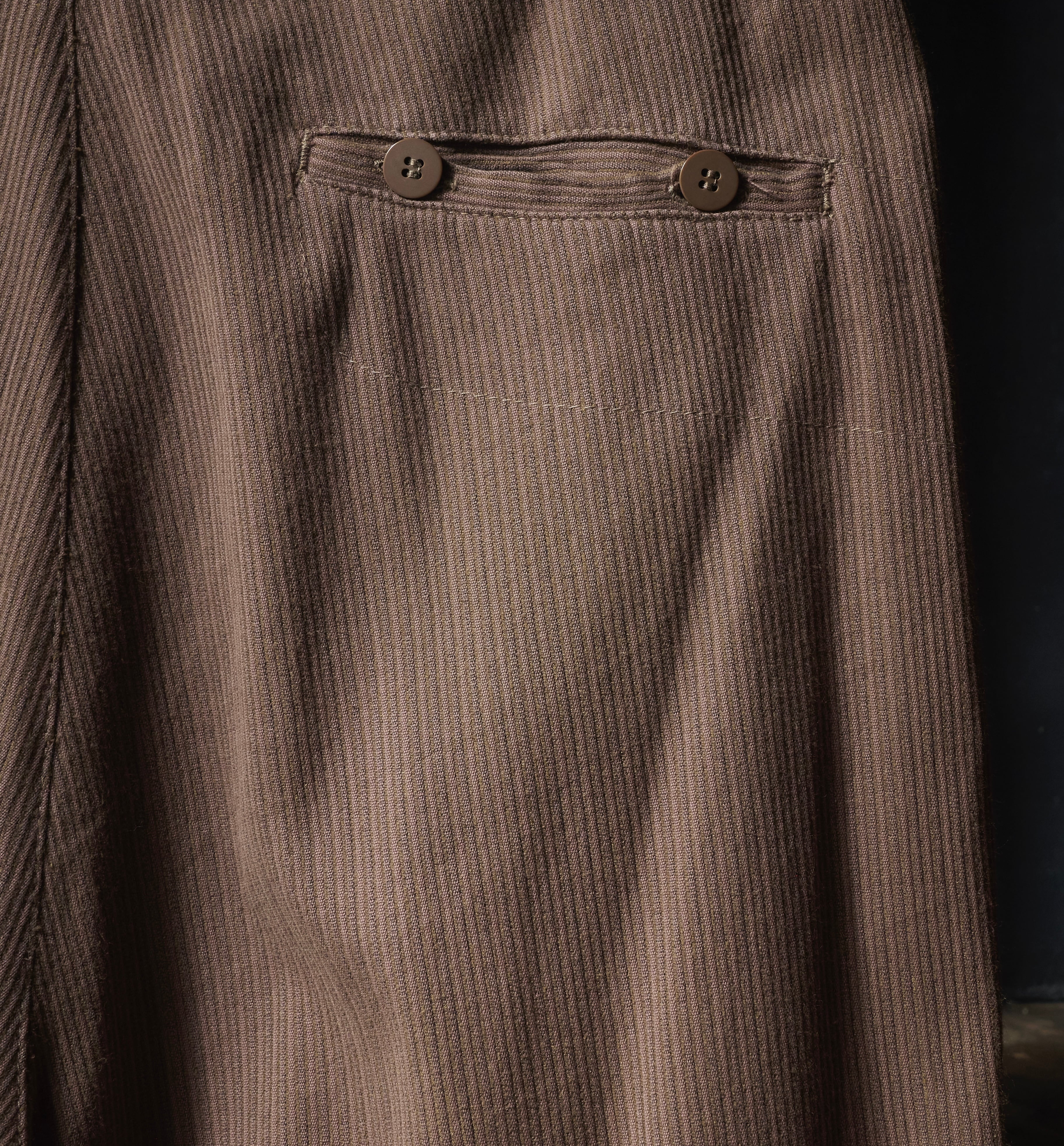 特徴的なテーパードシルエットは1950年代から1960年代初頭にかけて流行したペダルプッシャーのディテールを応用したデザイン。
