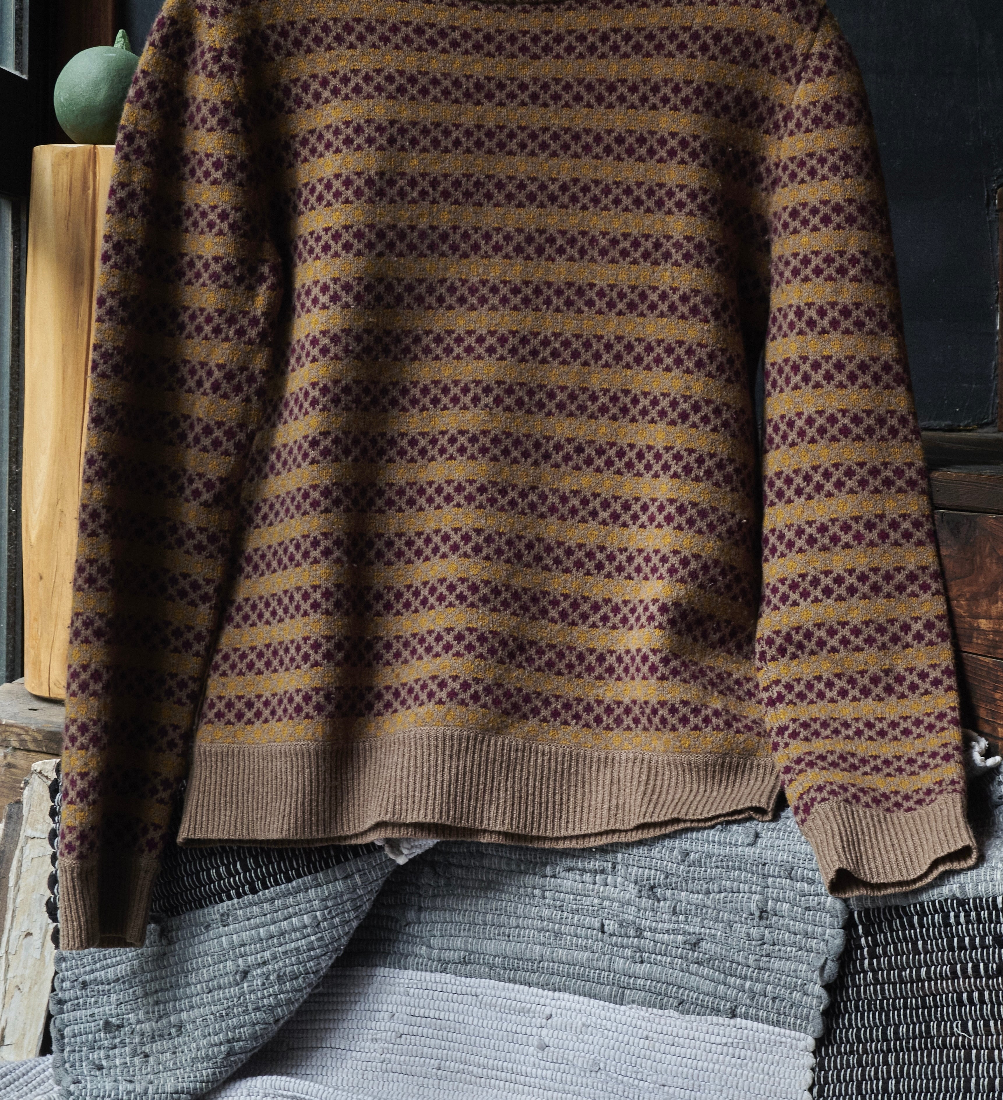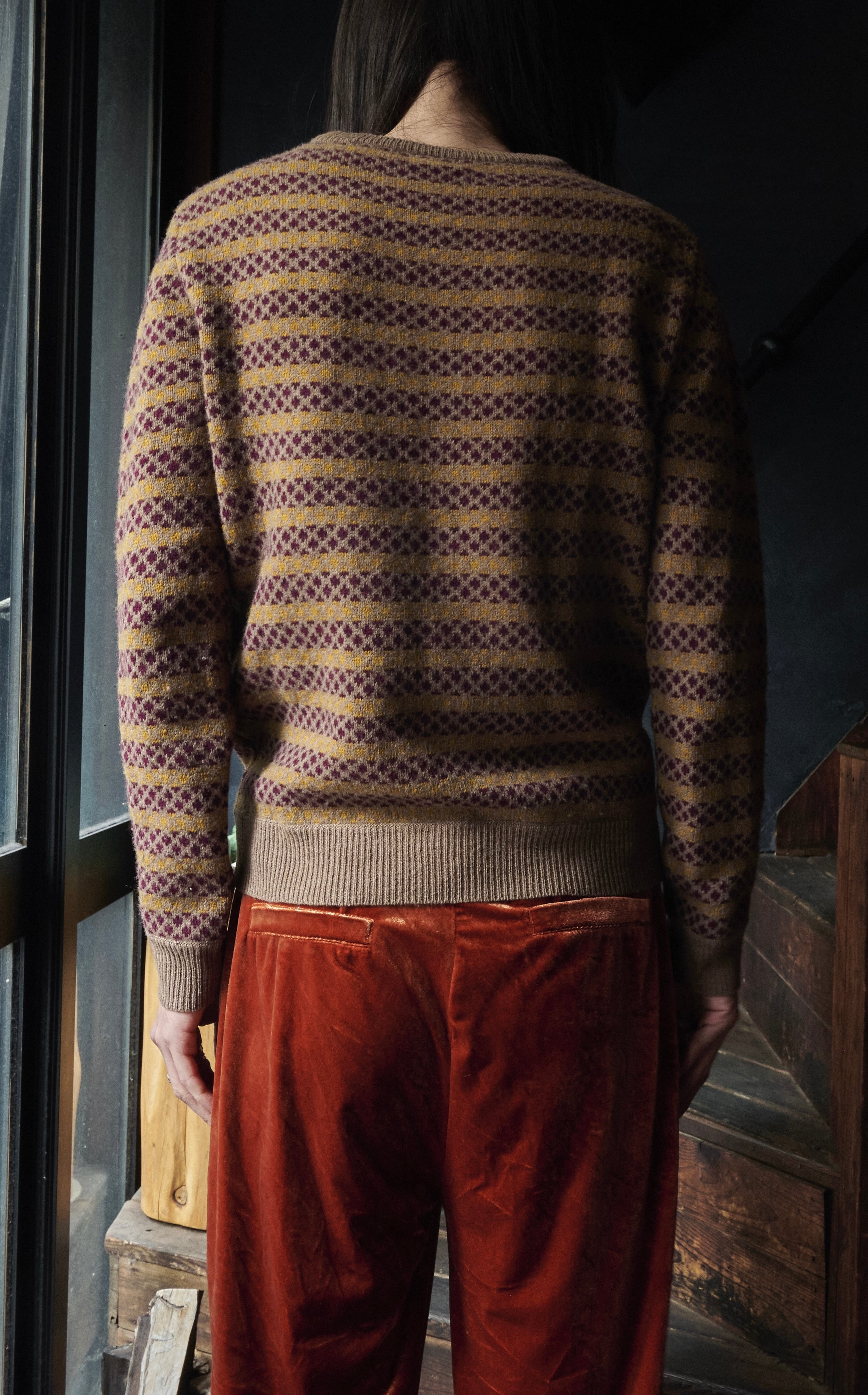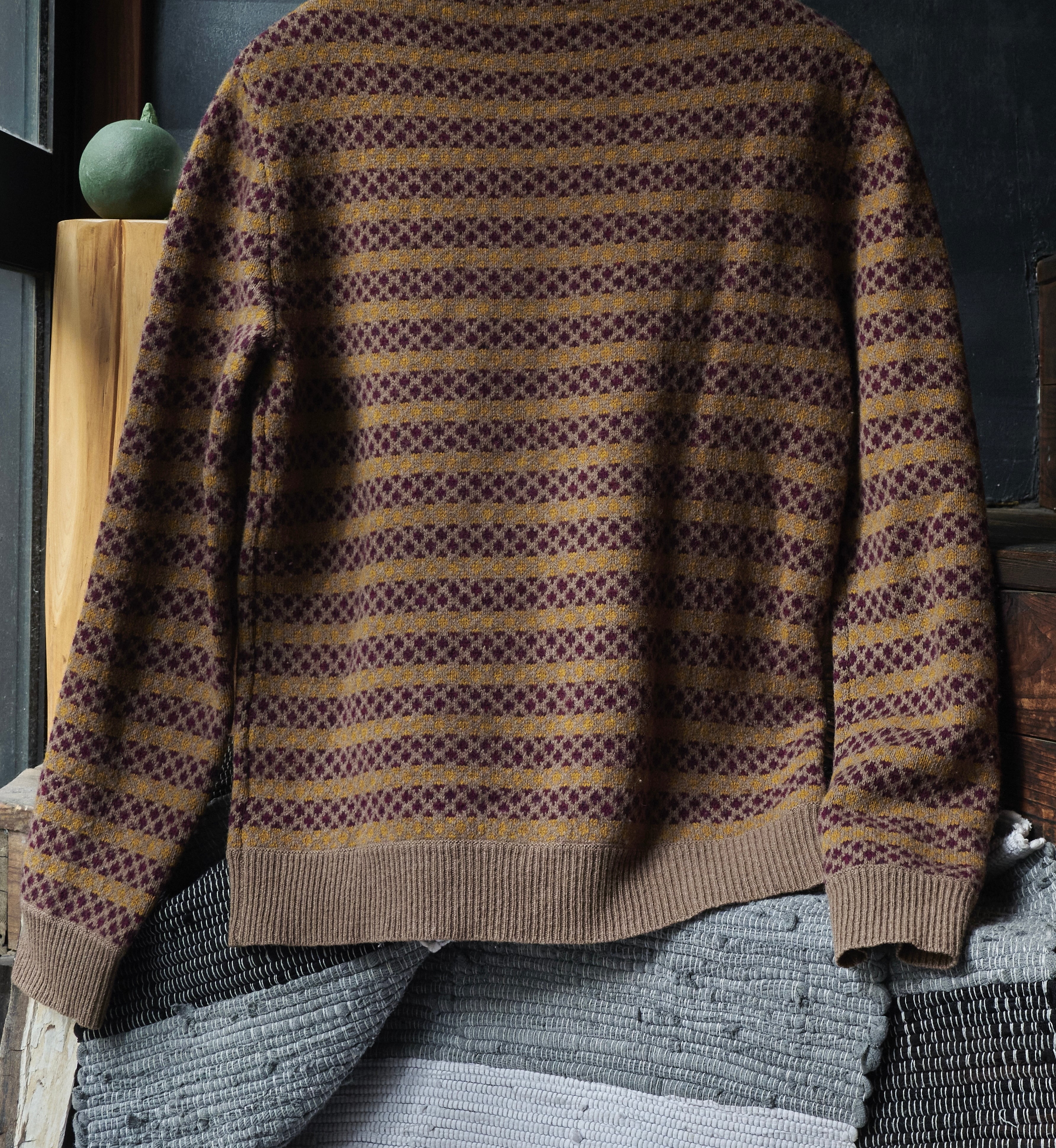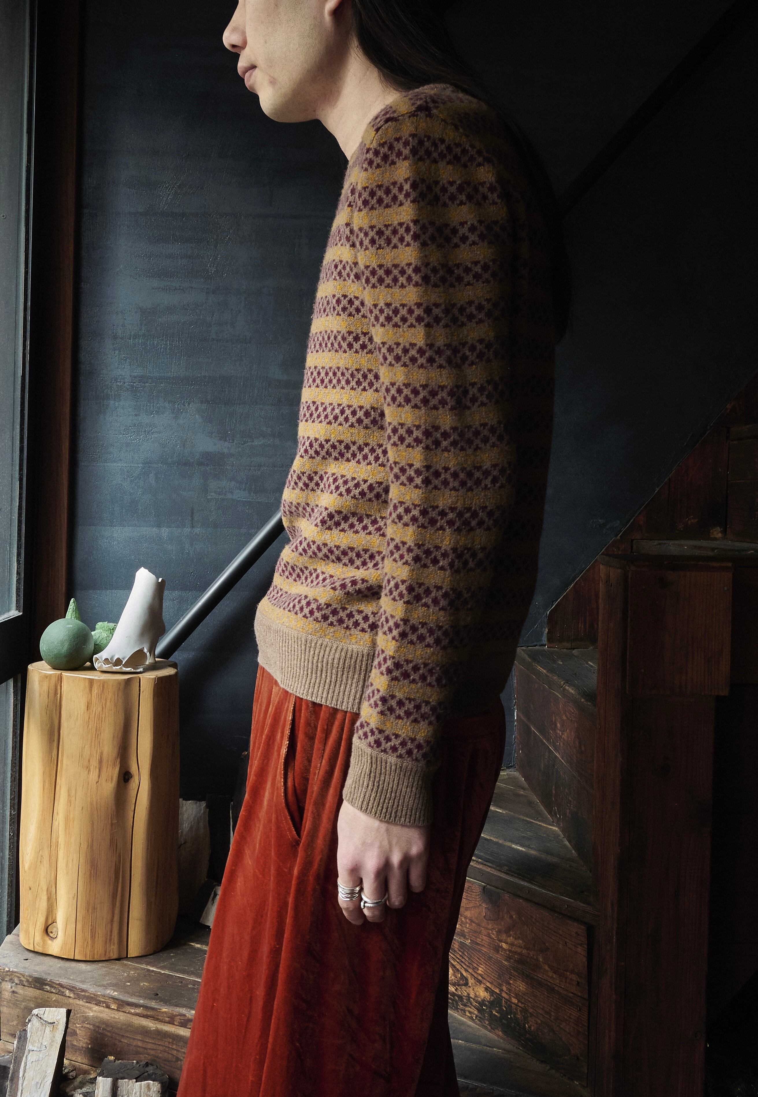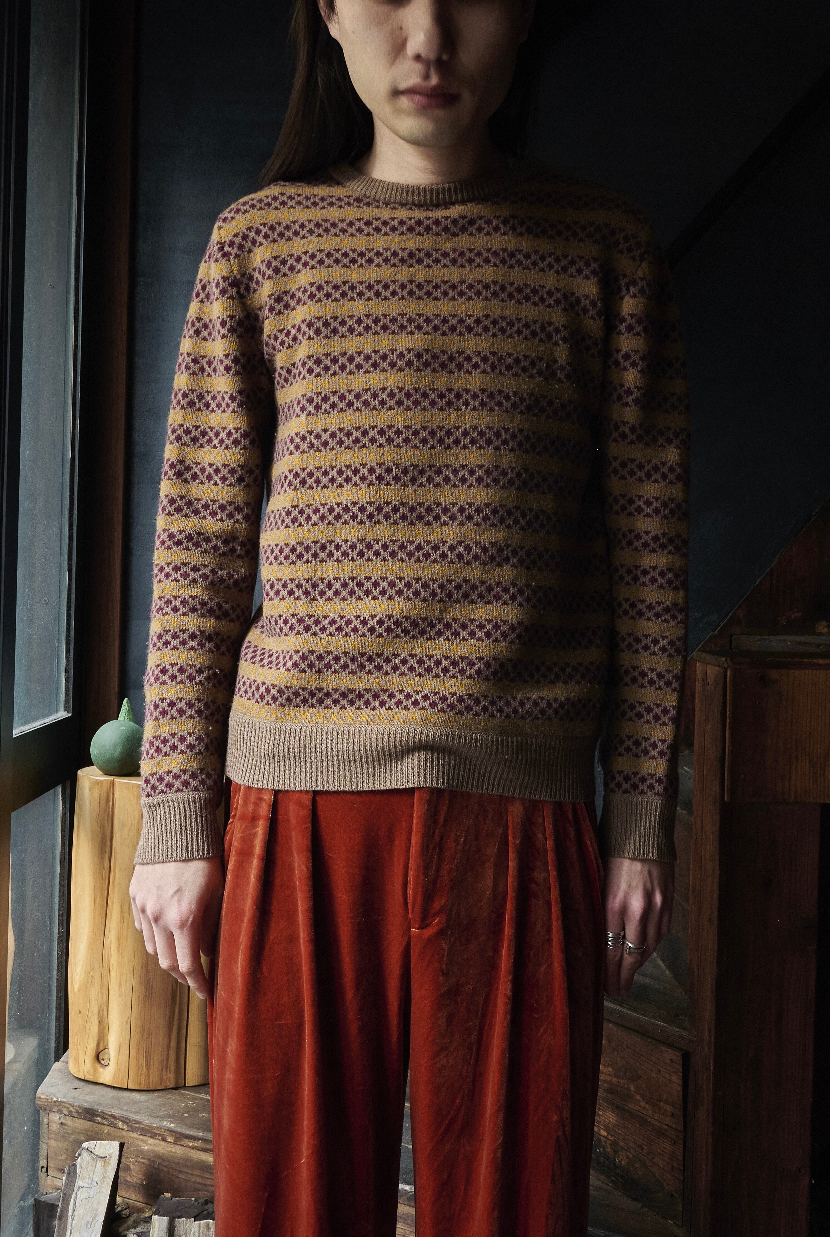 そんな中でもフレンチカジュアルな要素の中に。らしい柄のデザインが盛り込まれたニット。