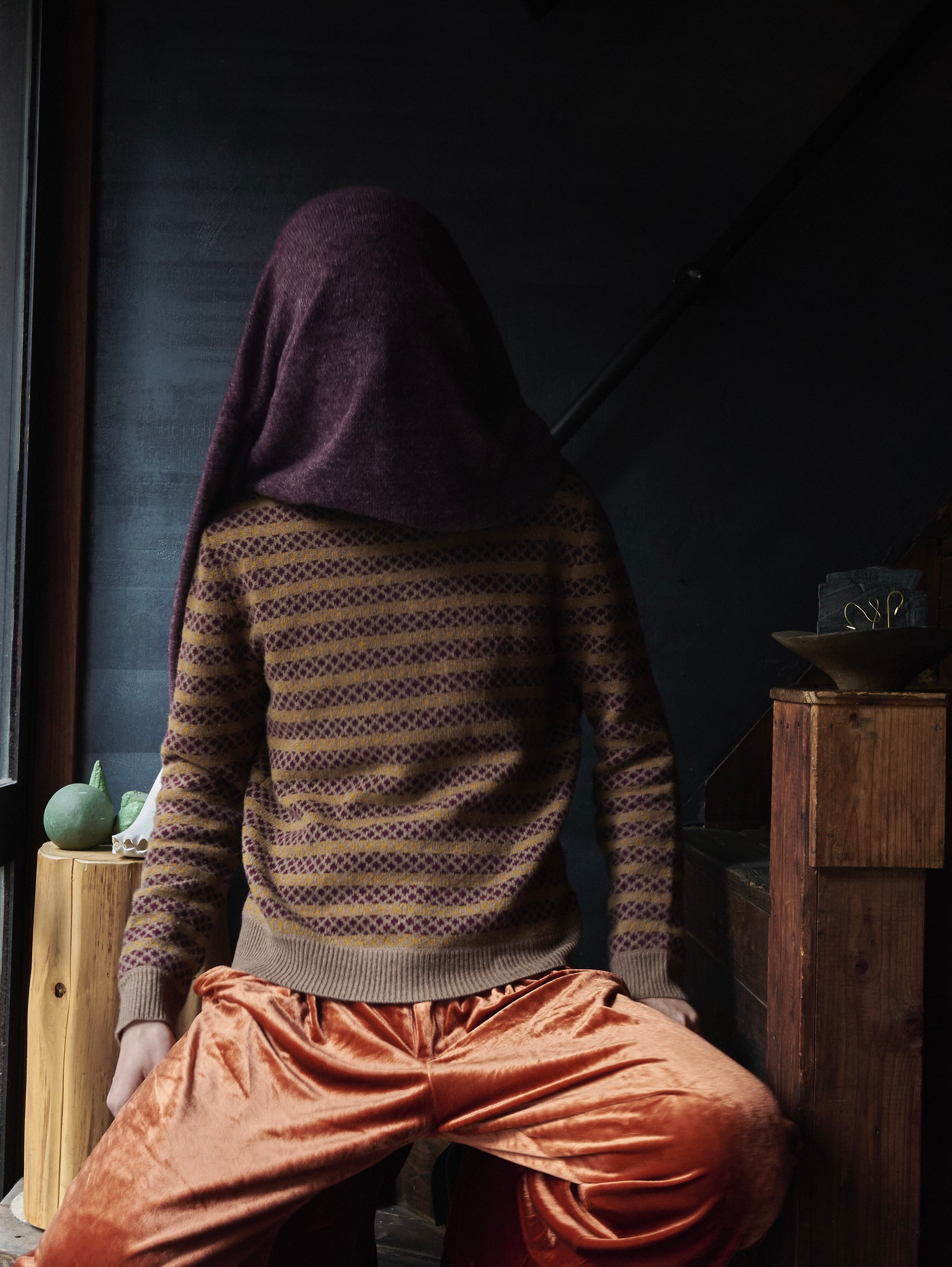 丸首の形が綺麗なニット。
