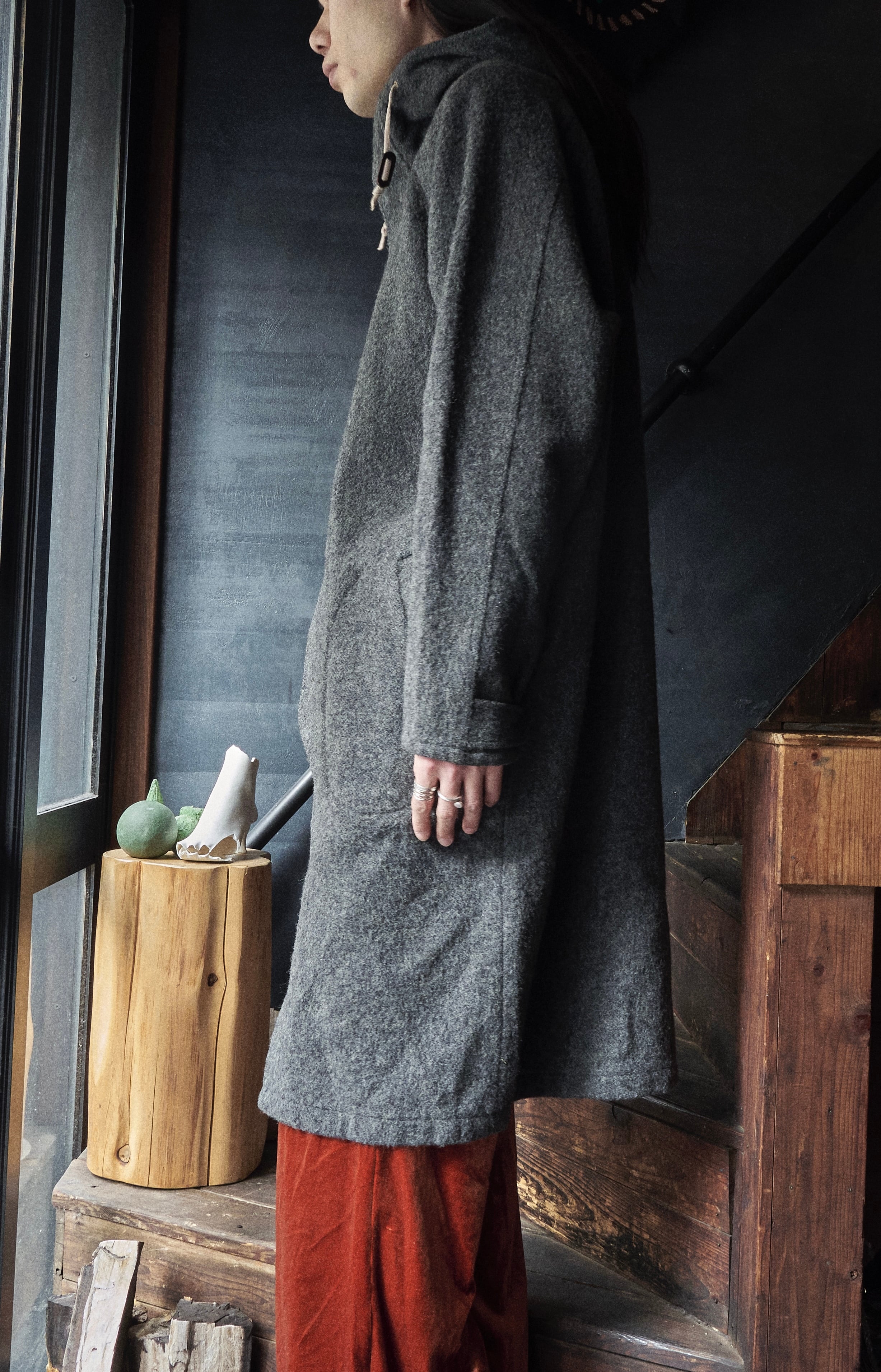 ディテールはvintage のカデットコートに近い要素を感じます。ポケットとかフーディの形とか全体的に。
