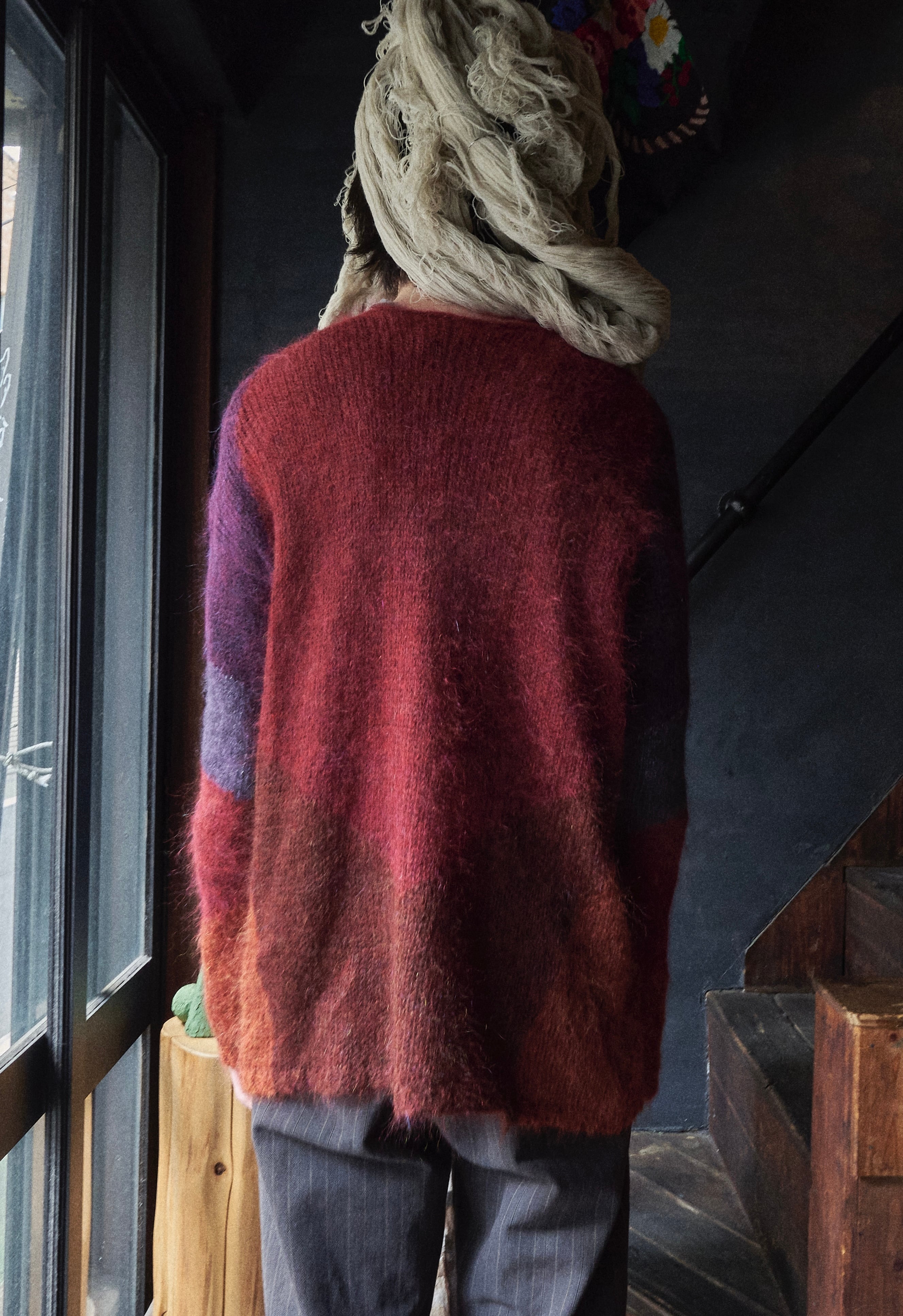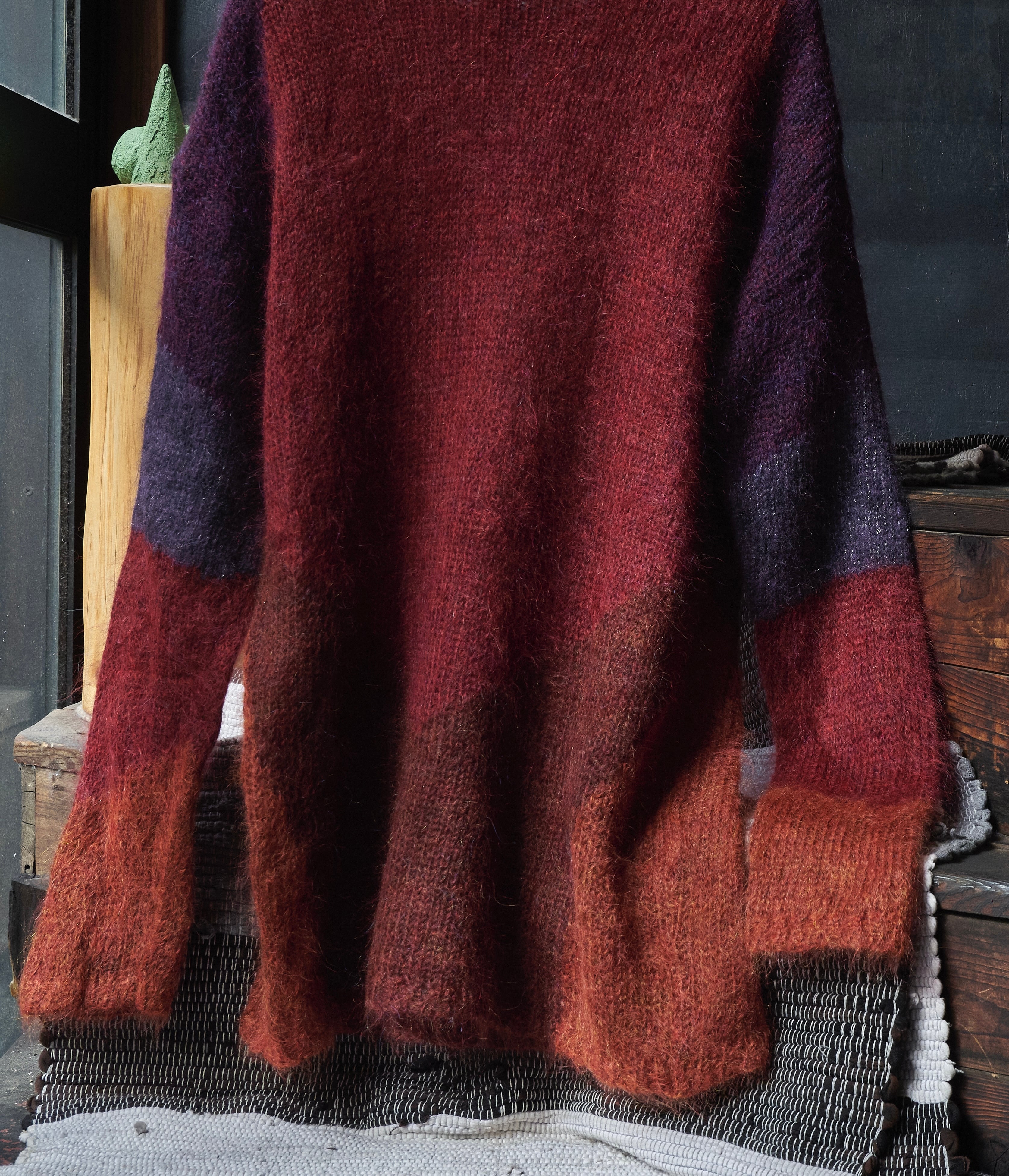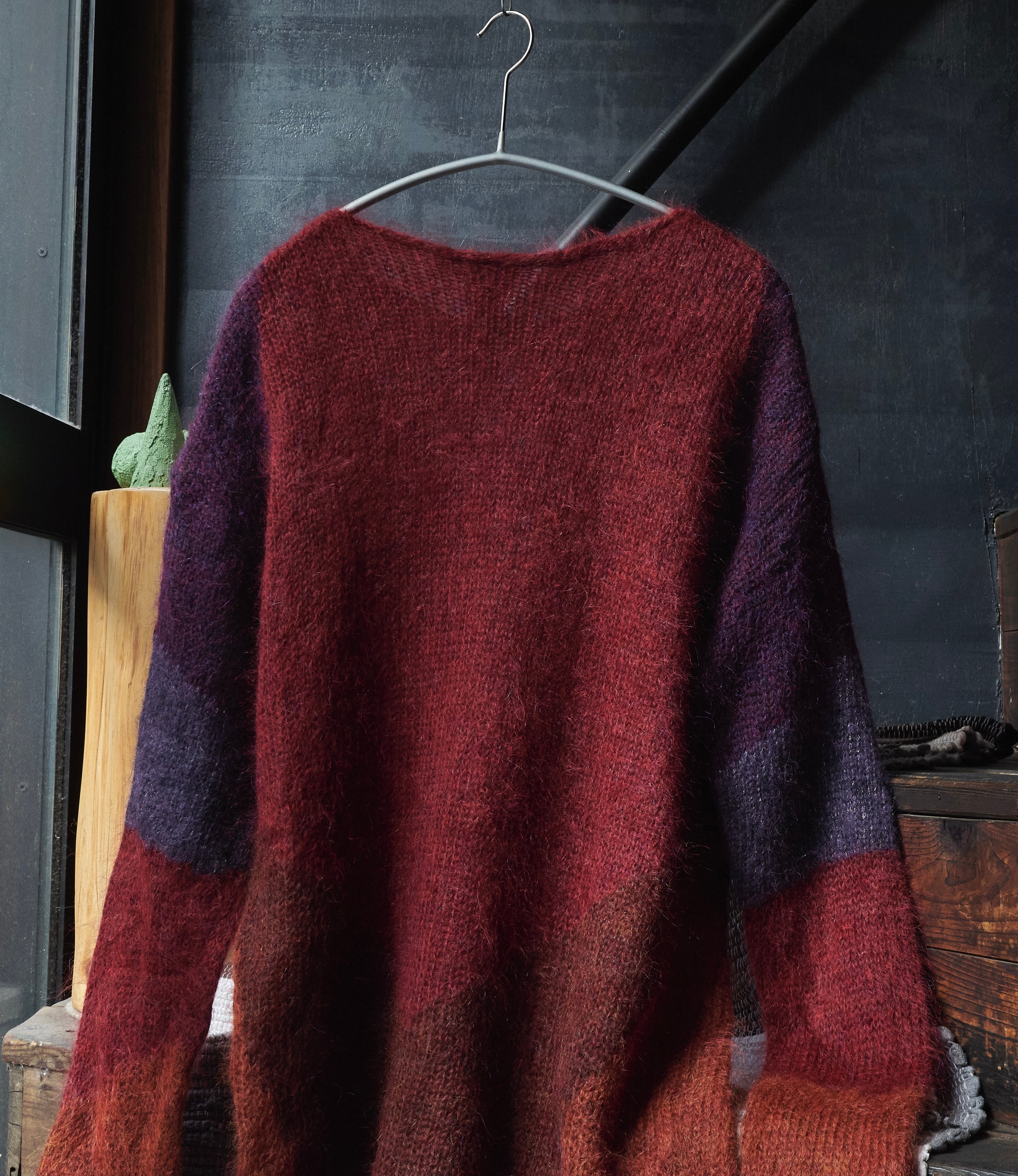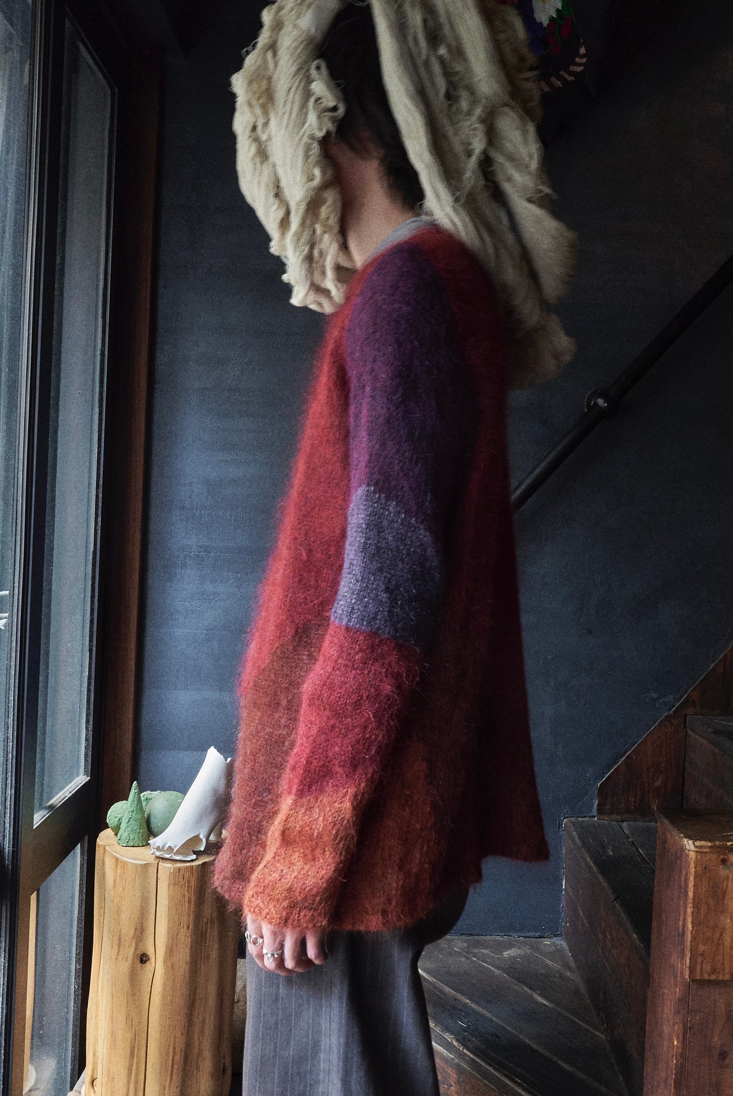 モヘヤ×ナイロン×ポリ×アルパカの複数素材で構成されたモヘヤベースニットは毛足が長い。