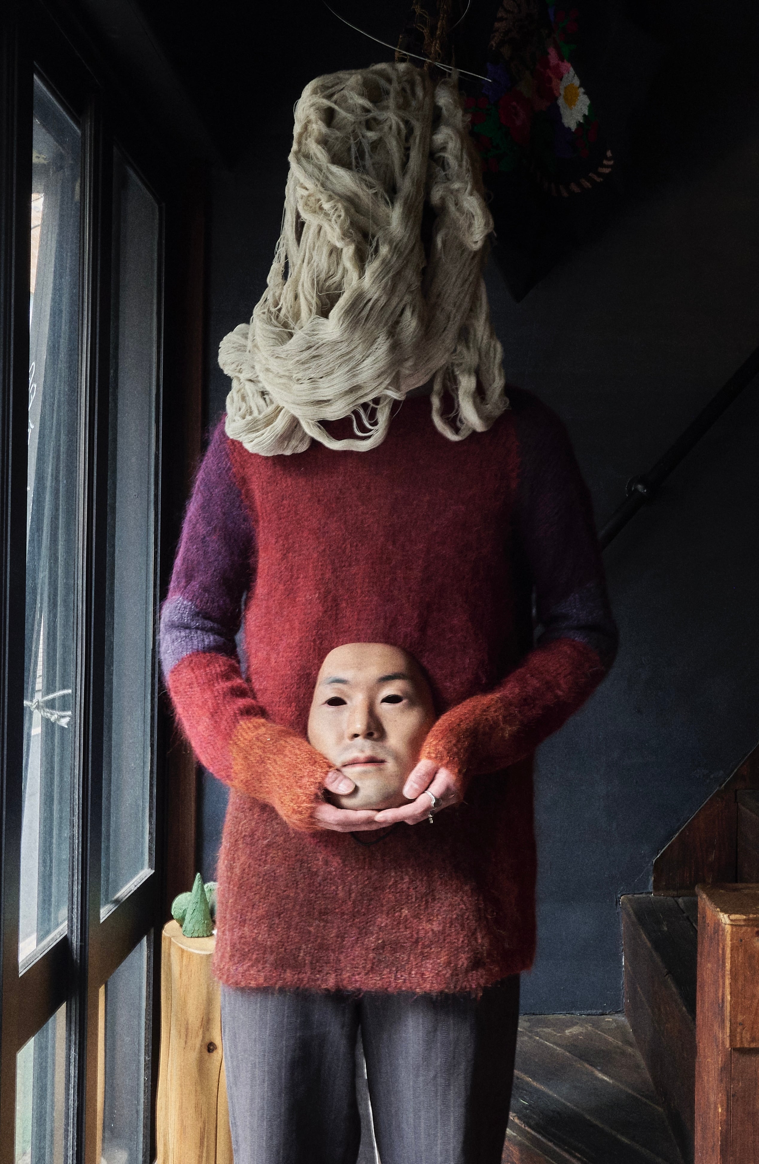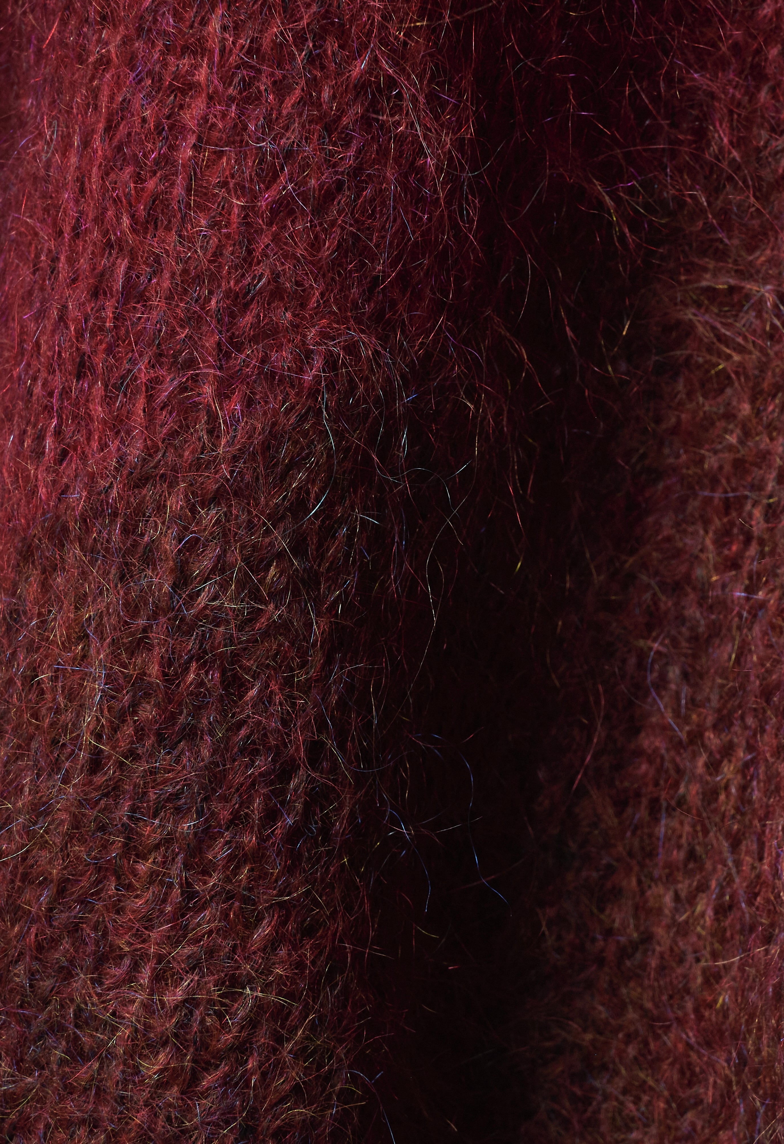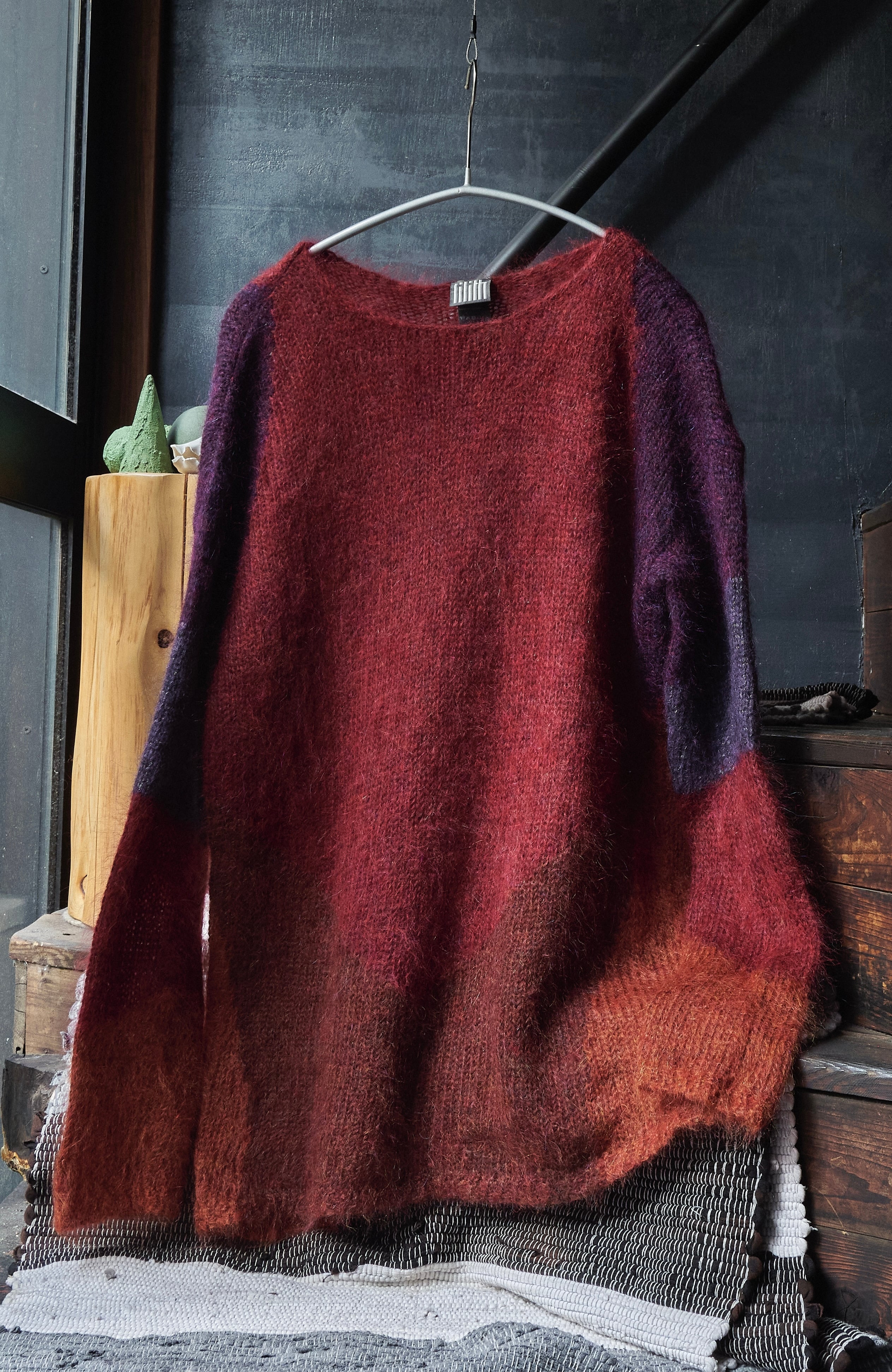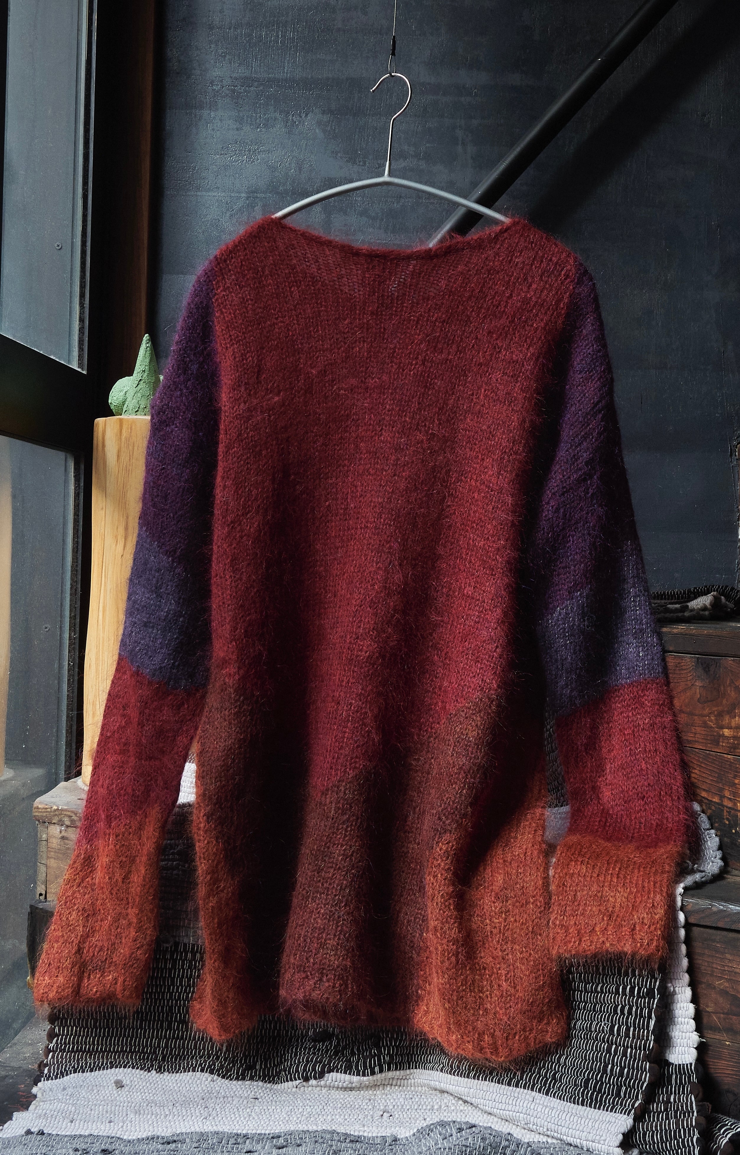 モヘヤ×ナイロン×ポリ×アルパカの複数素材で構成されたモヘヤベースニットは毛足が長い。