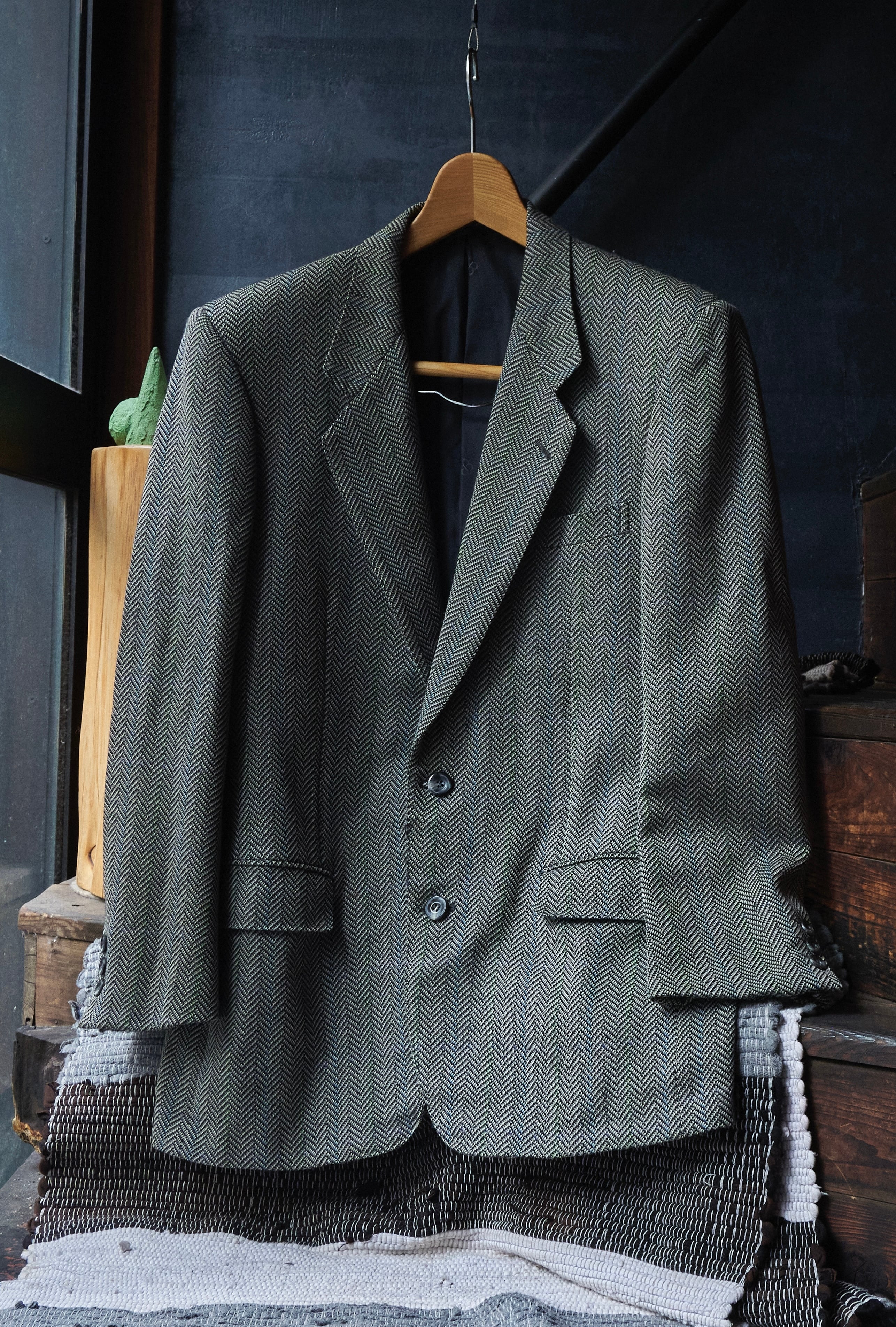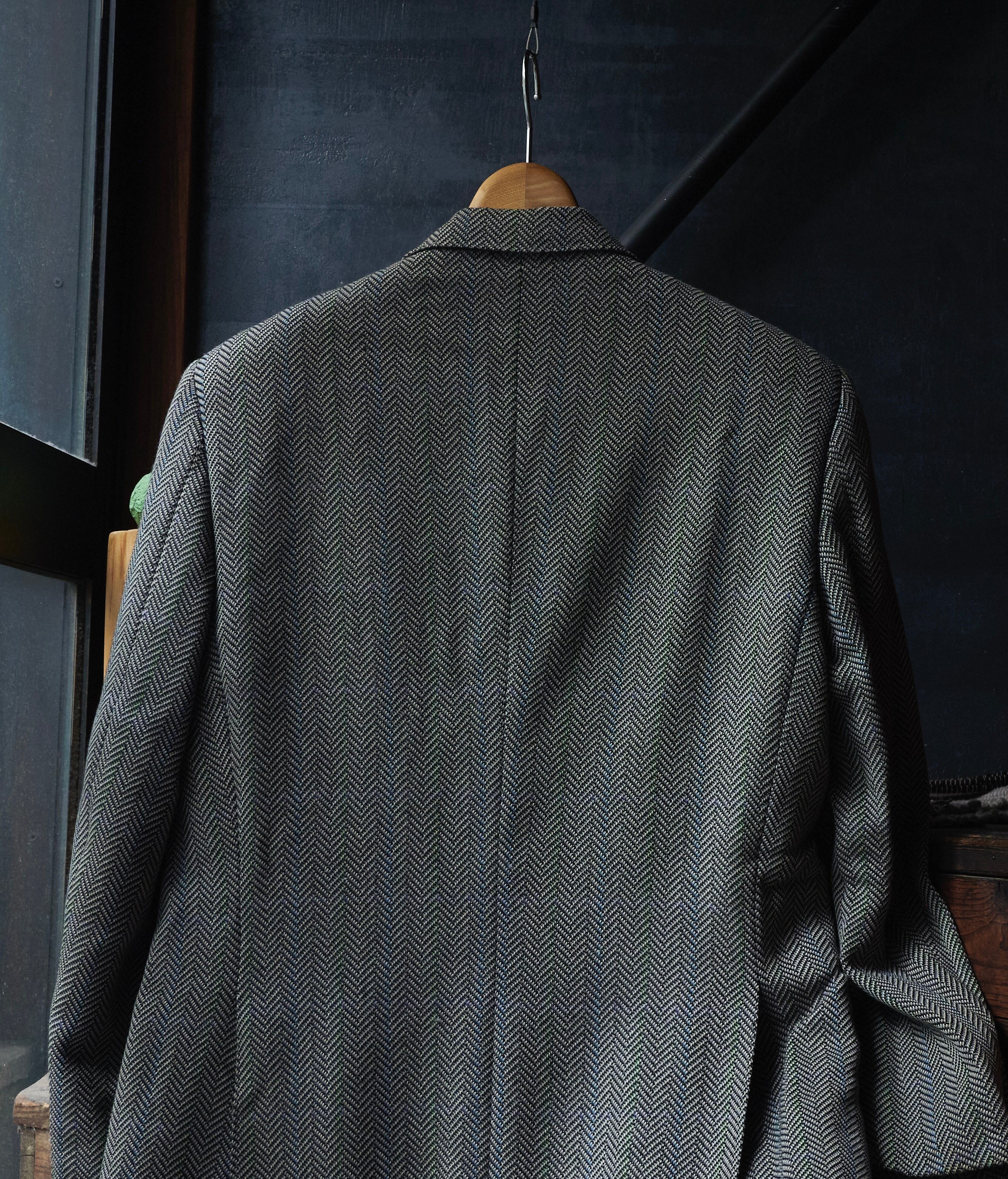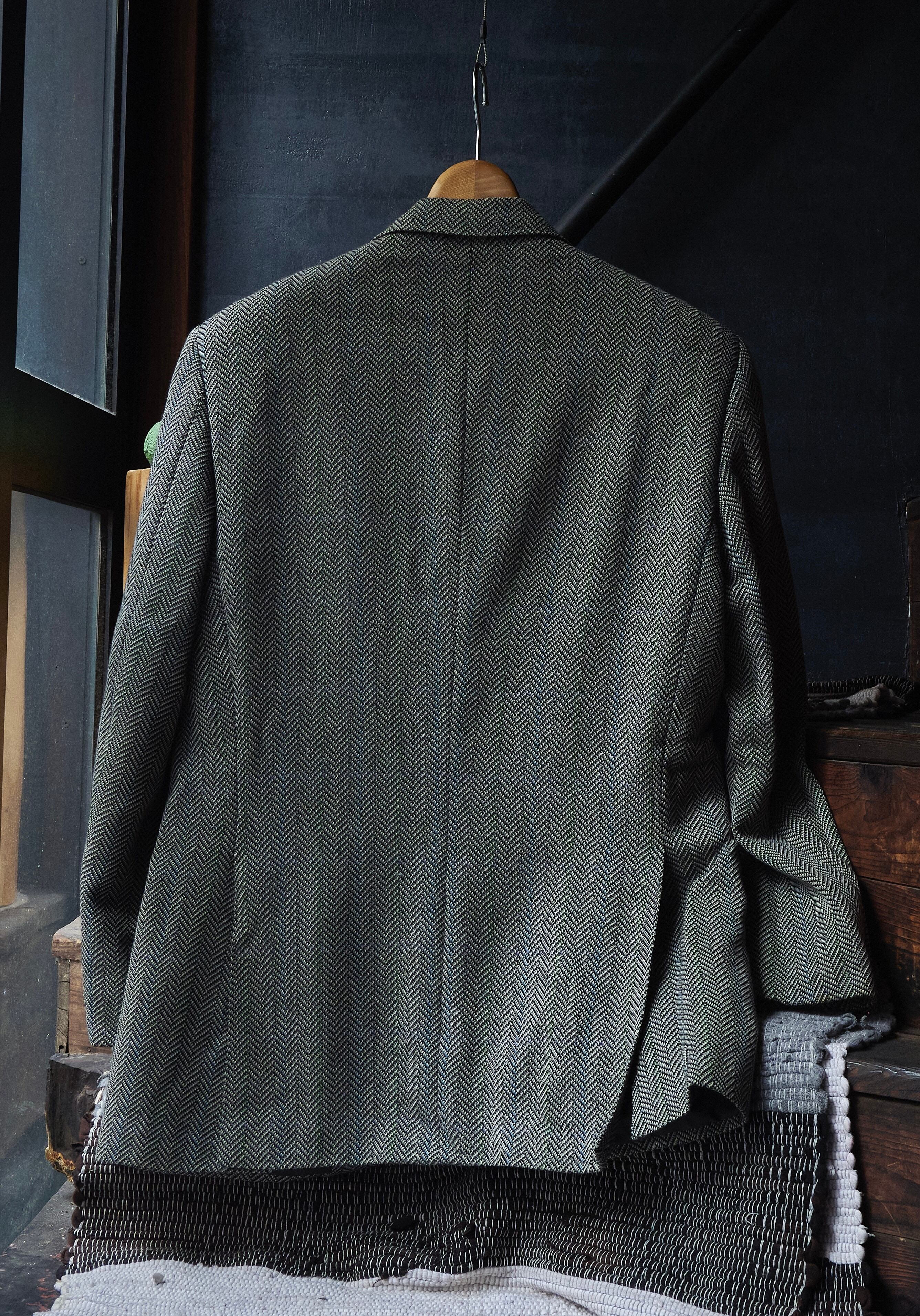 ヘリンボーンのカラーにはブルーとグリーンの綺麗な色が混ざり合い素晴らしい生地です。