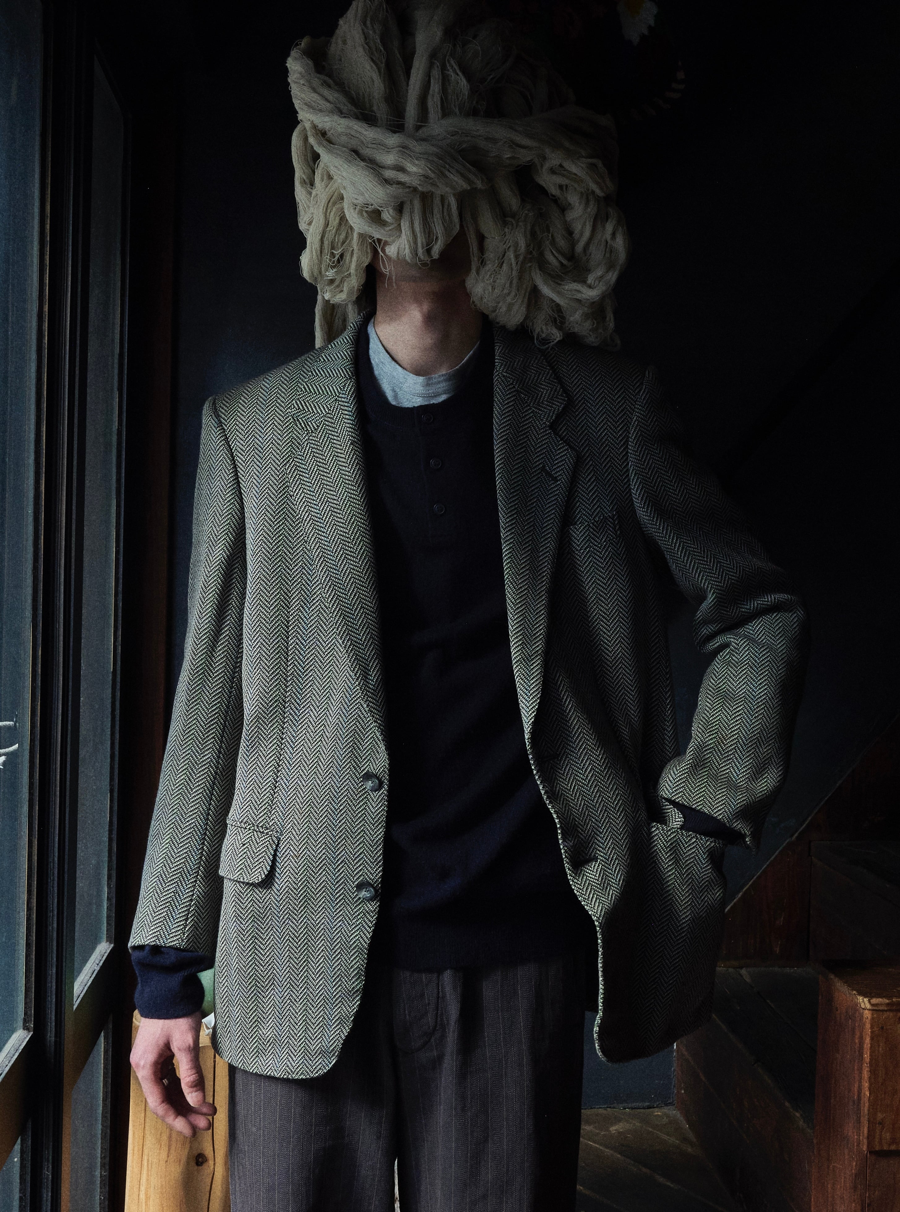バレンシアガのネームを踏襲しながら、日本の素晴らしい凹凸あり立体感あるヘリンボーン生地を使用したジャケット。