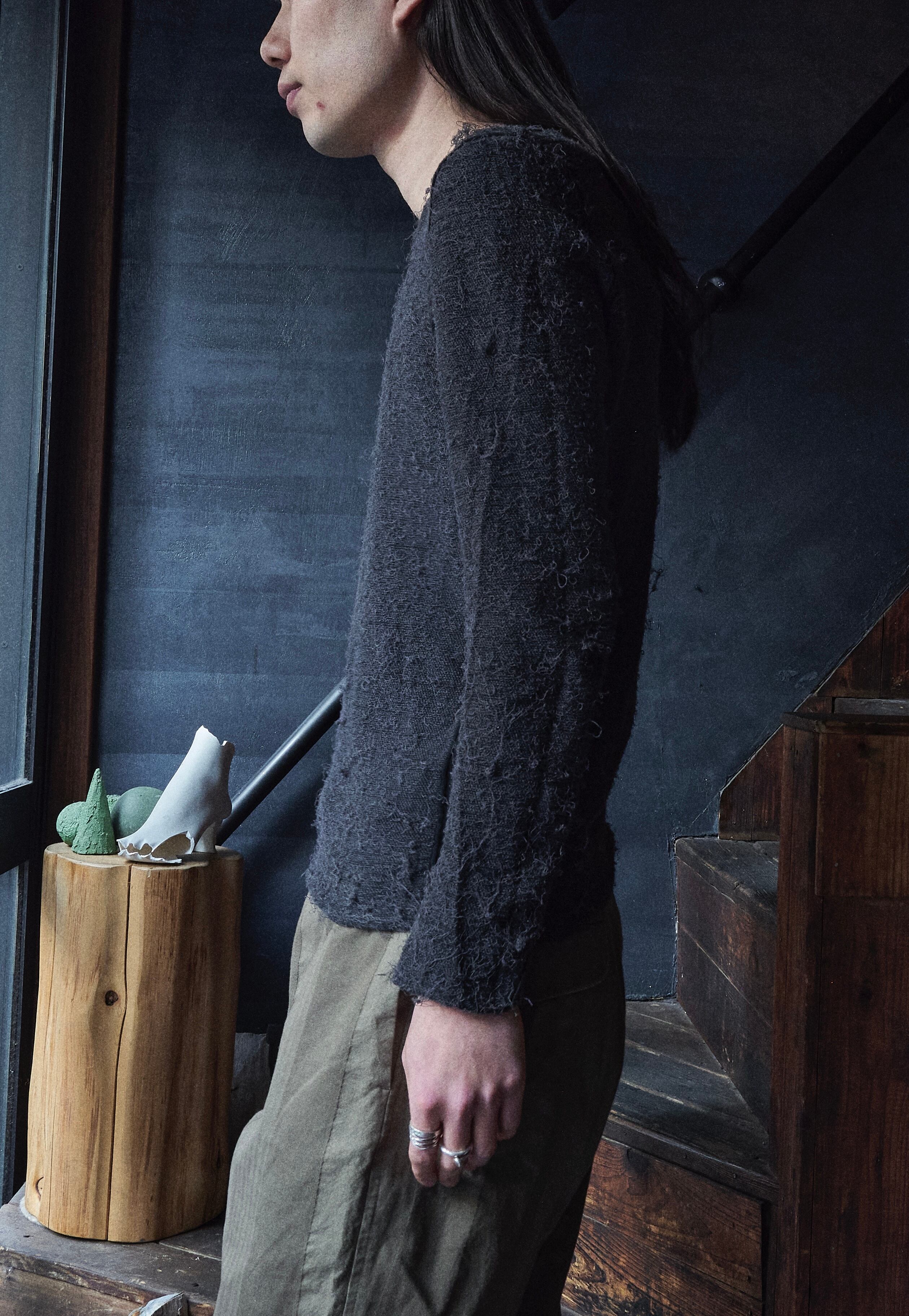 そんなレーベルアンダーコンストラクションの貴重なカシミヤニットです。ブランド特有の細いタグは欠品しておりますが、状態はバチバチによく、毛足の長い素晴らしいカシミヤを使用しております。