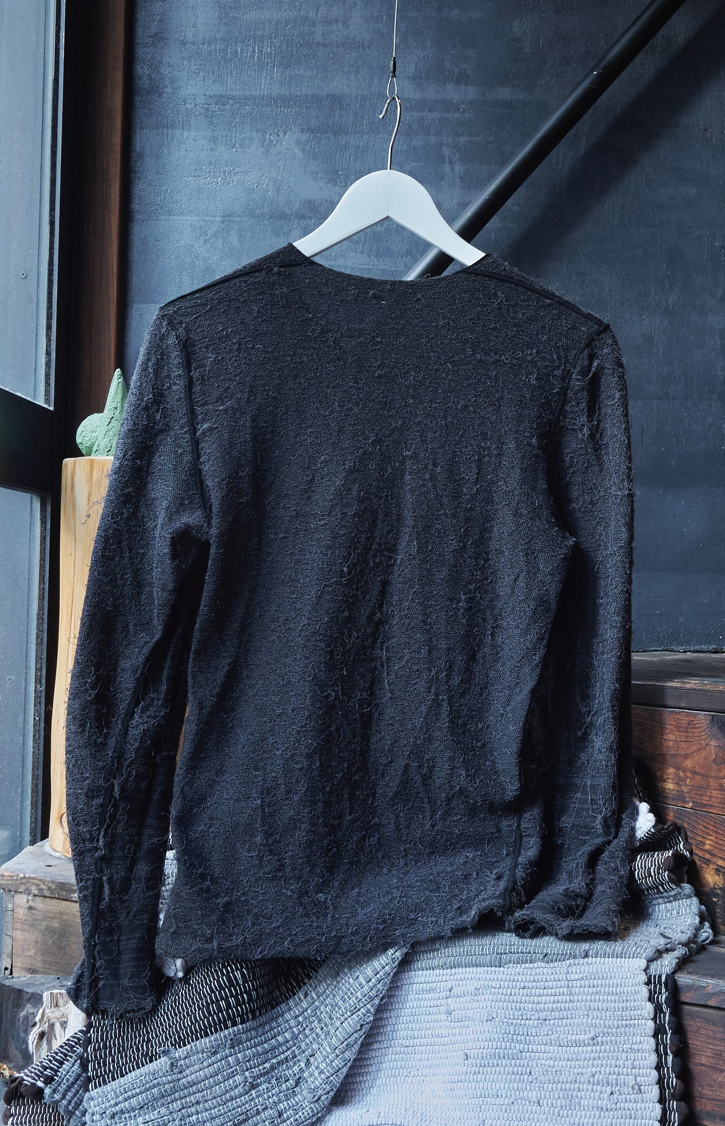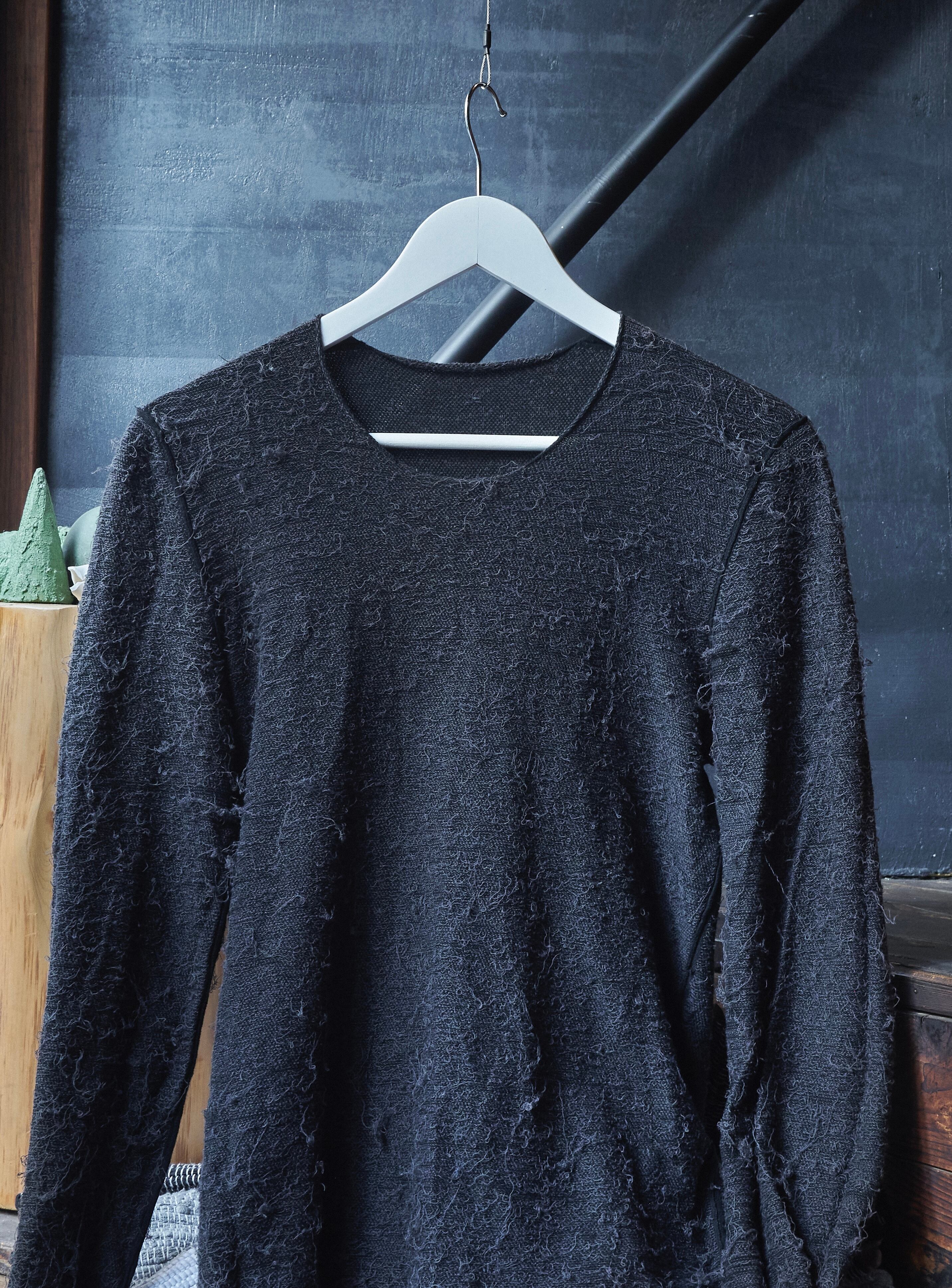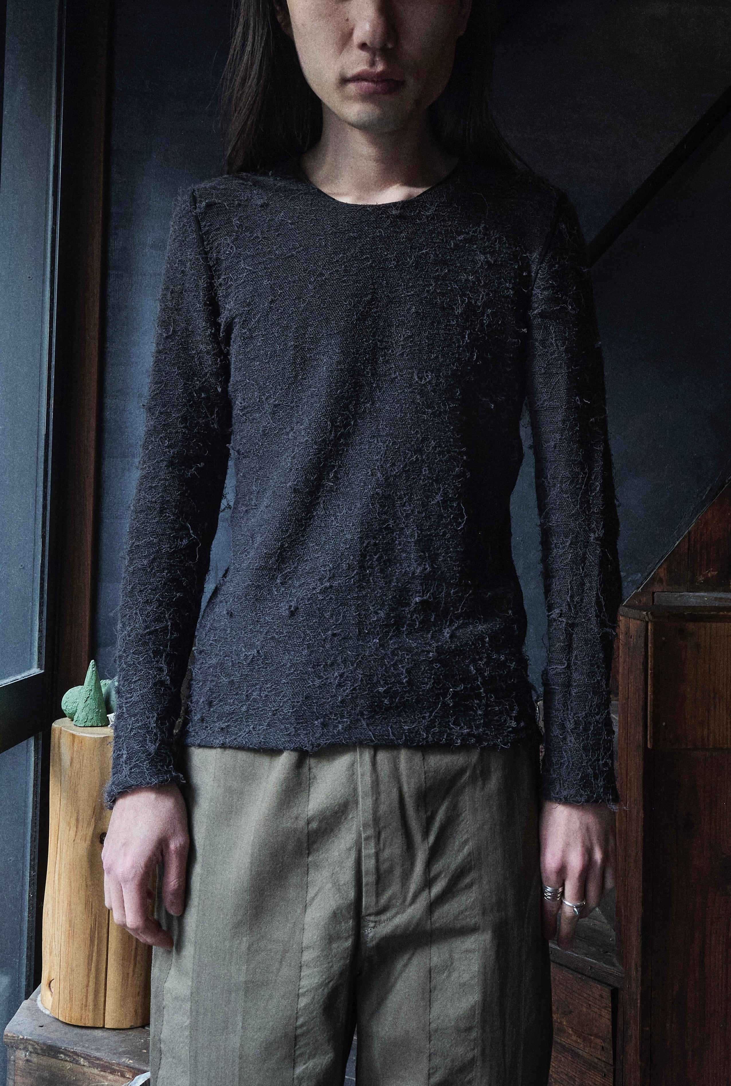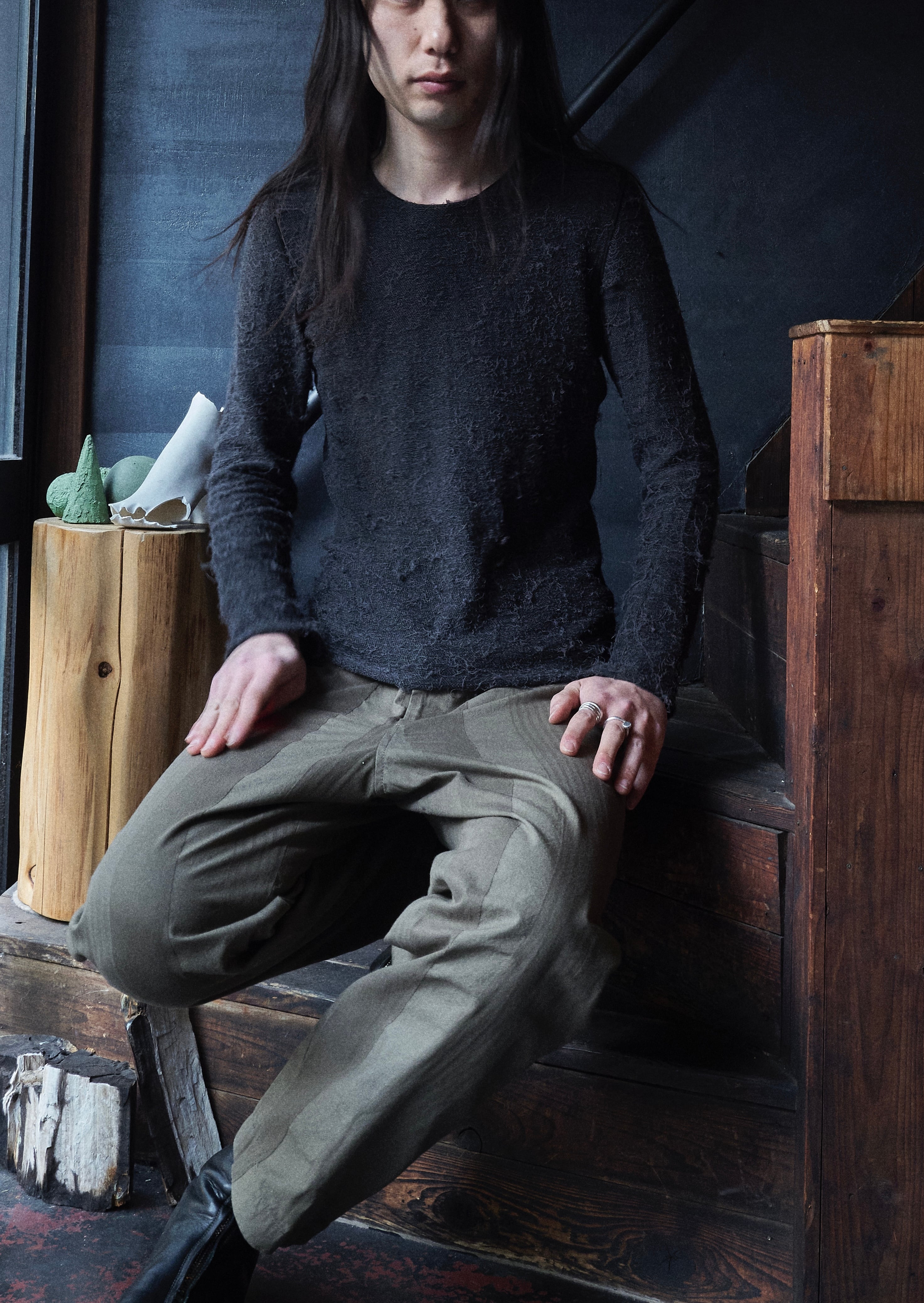 そんなレーベルアンダーコンストラクションの珍しいやばいシルク生地をしようしたニット。リバーシブルなので織りの糸が出るほう、出ない方両方でご着用できます。