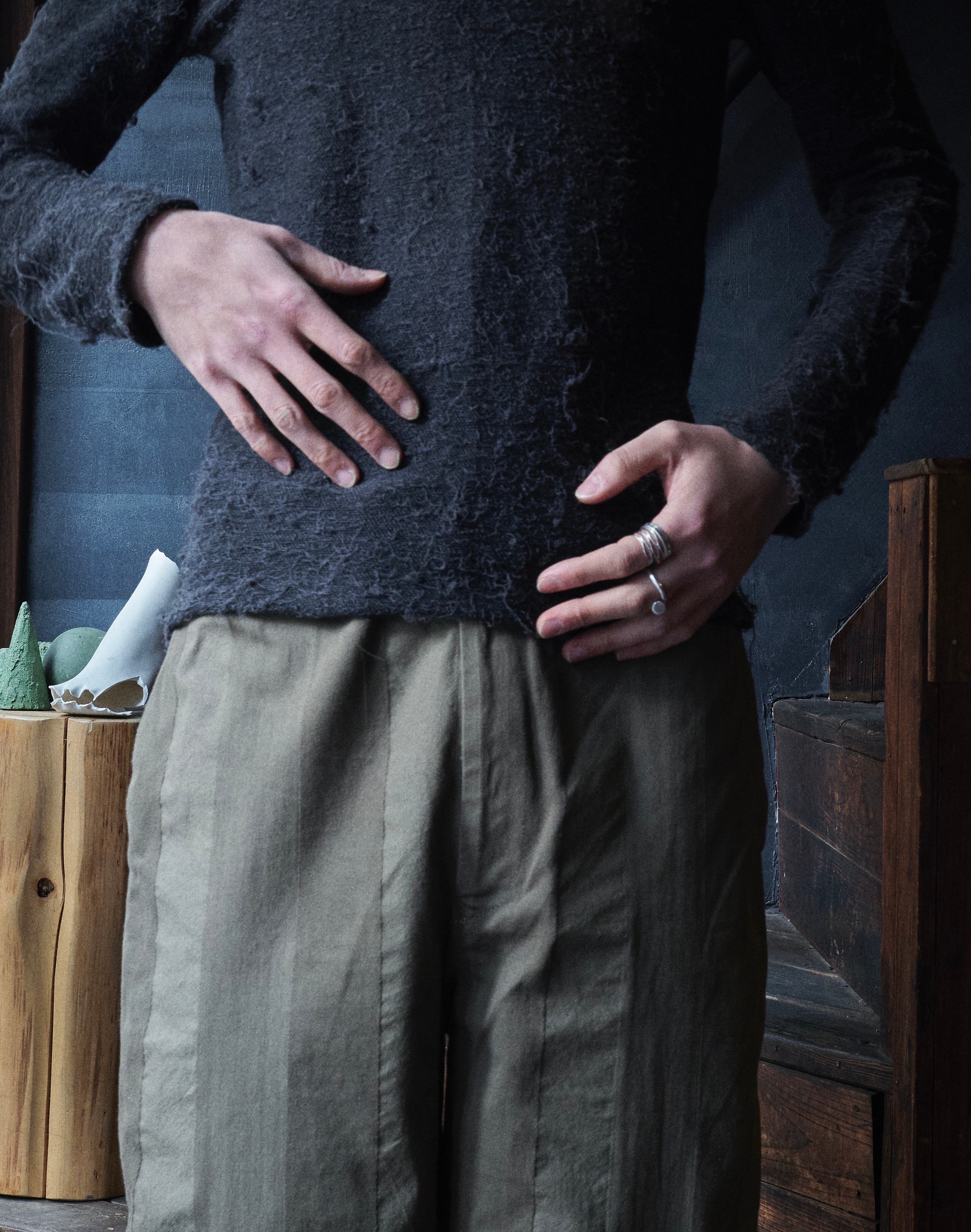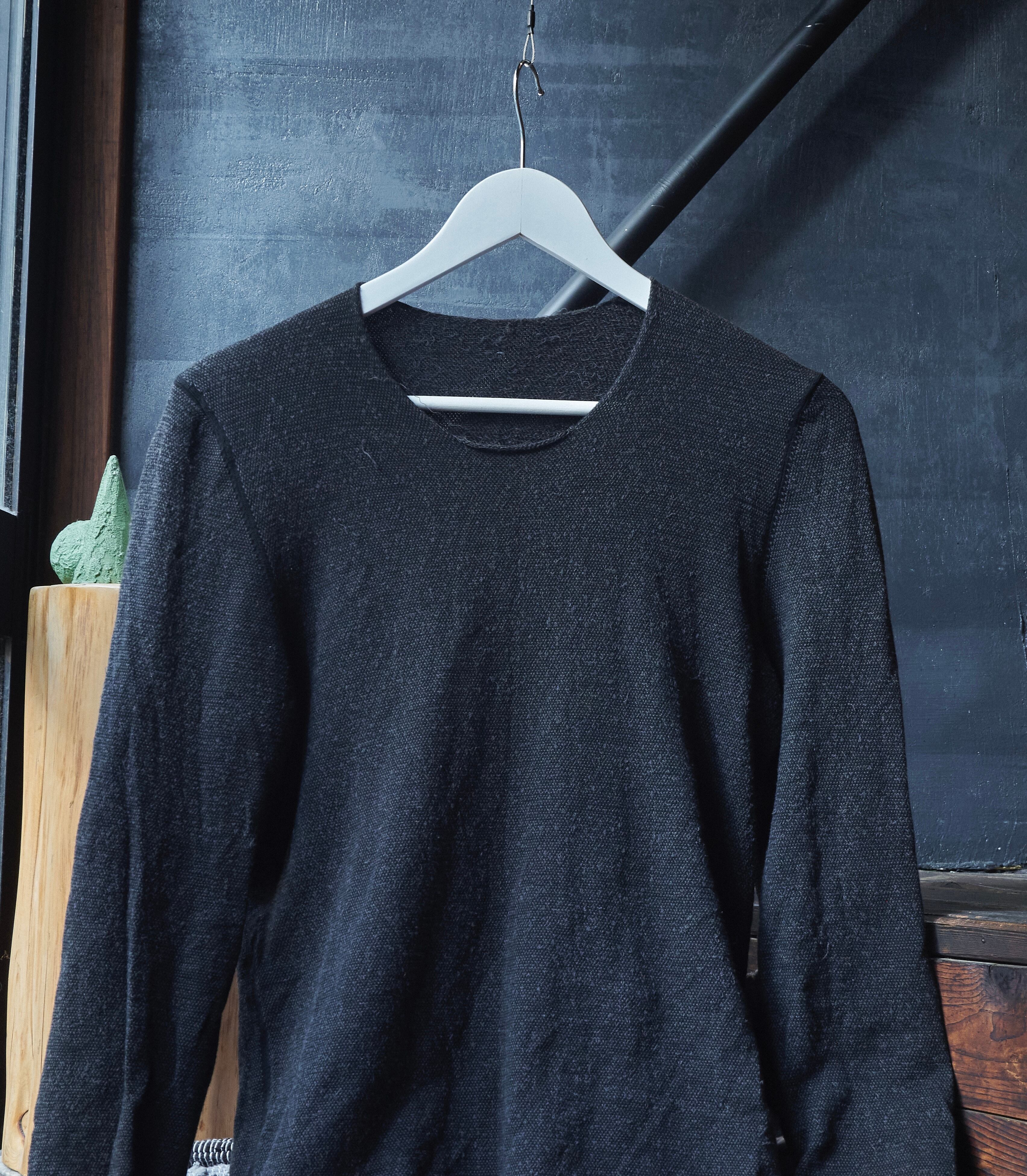 父の運営する会社がニットを生産しており、プラダなどイタリアの高級ブランドを顧客に抱えるほど高品質なニットの技術を持っている点も強みで、レーベルアンダーコンストラクションにもその高品質なニットが供給されております。