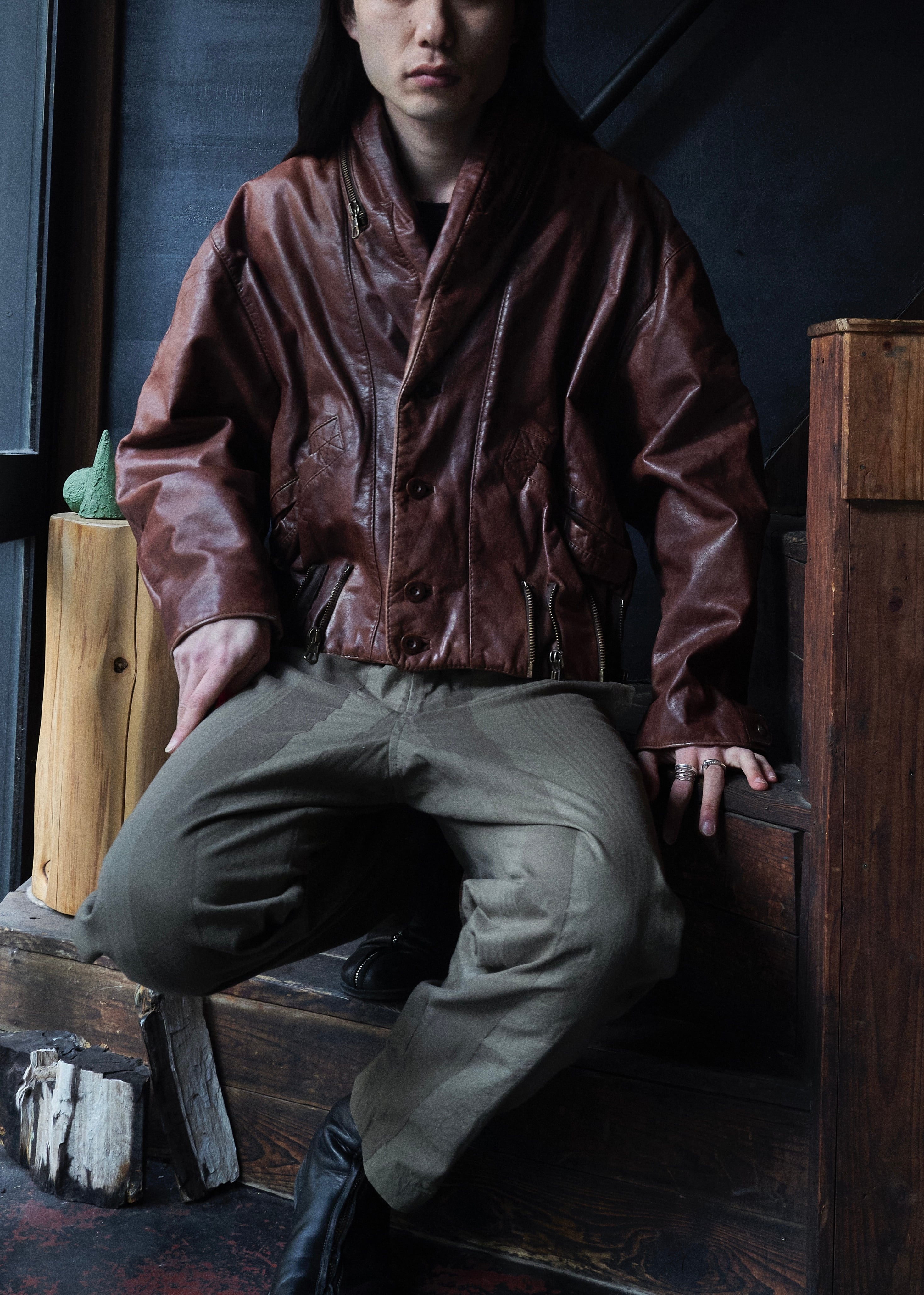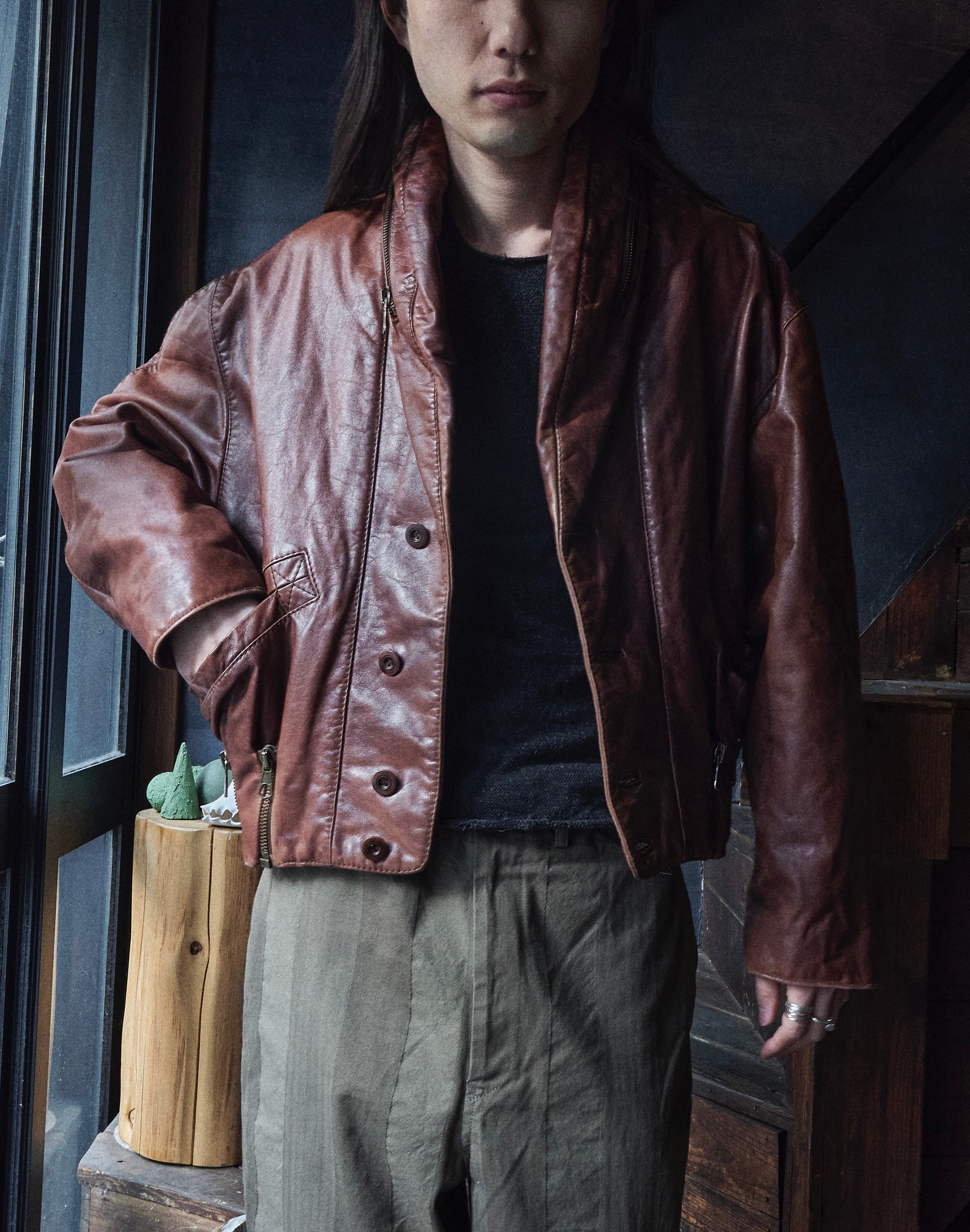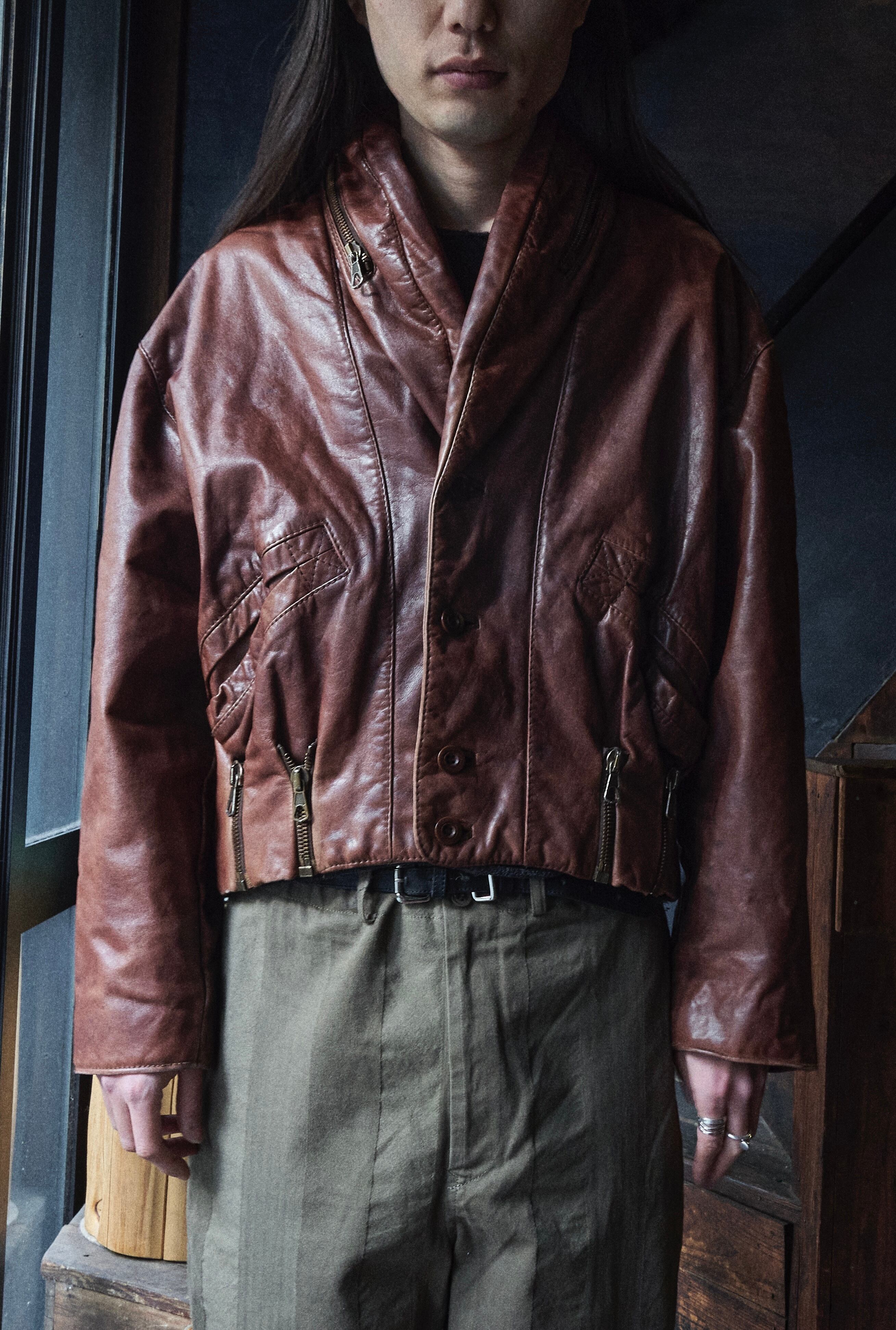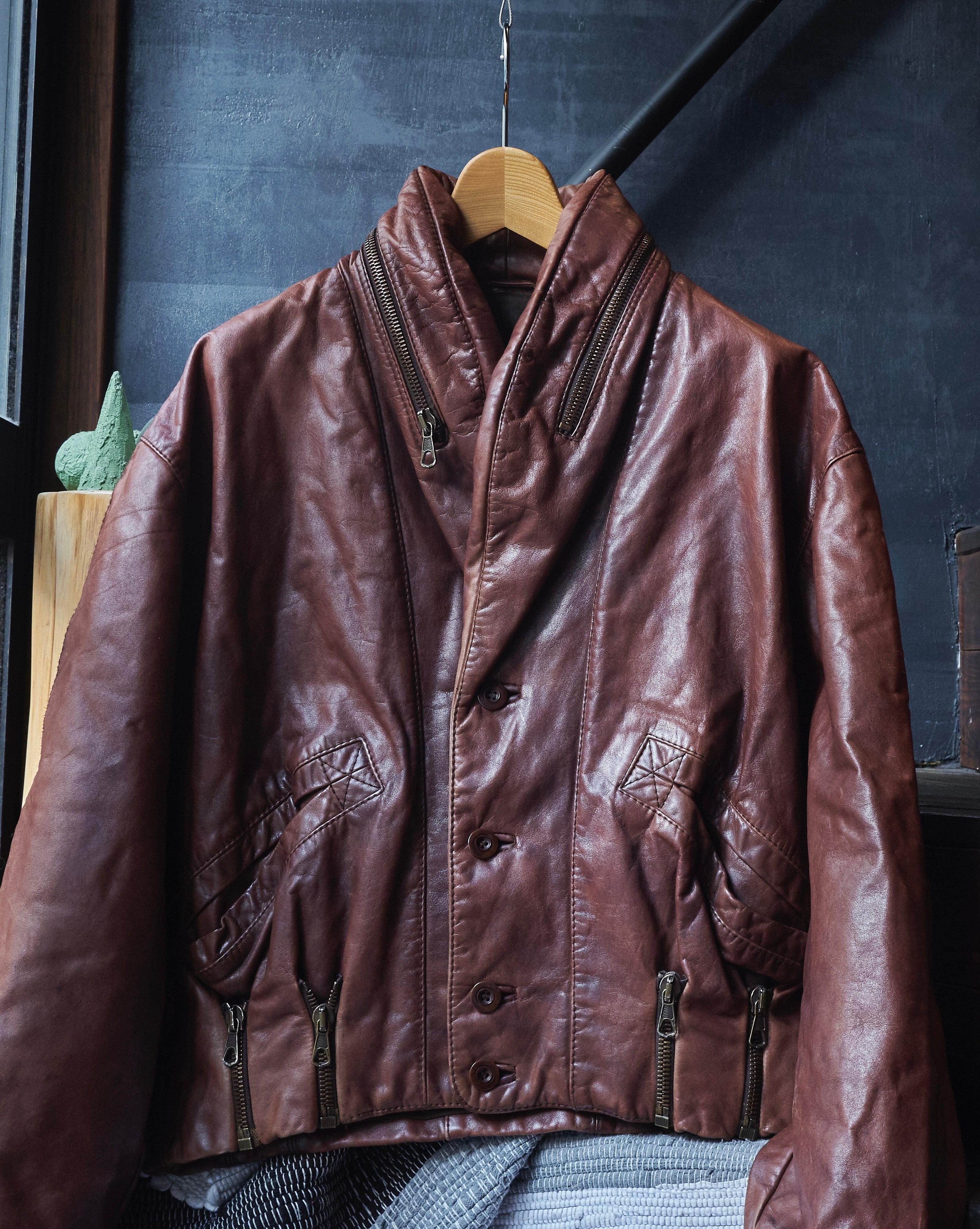 80年代イタリアのもうなくなってしまったであろう。恐らくファクトリーブランドの質感もギミックもやばいレザーブルゾン。