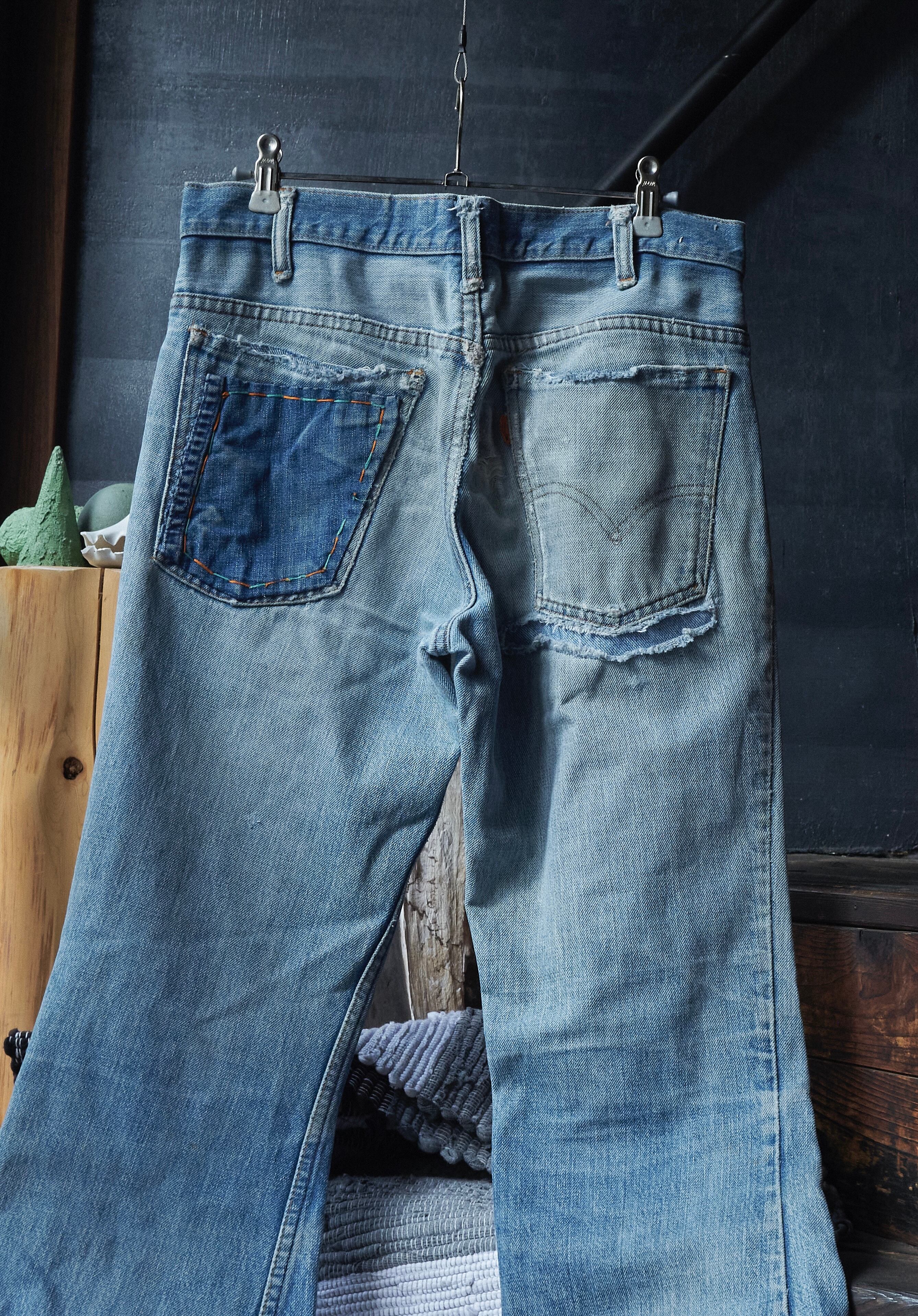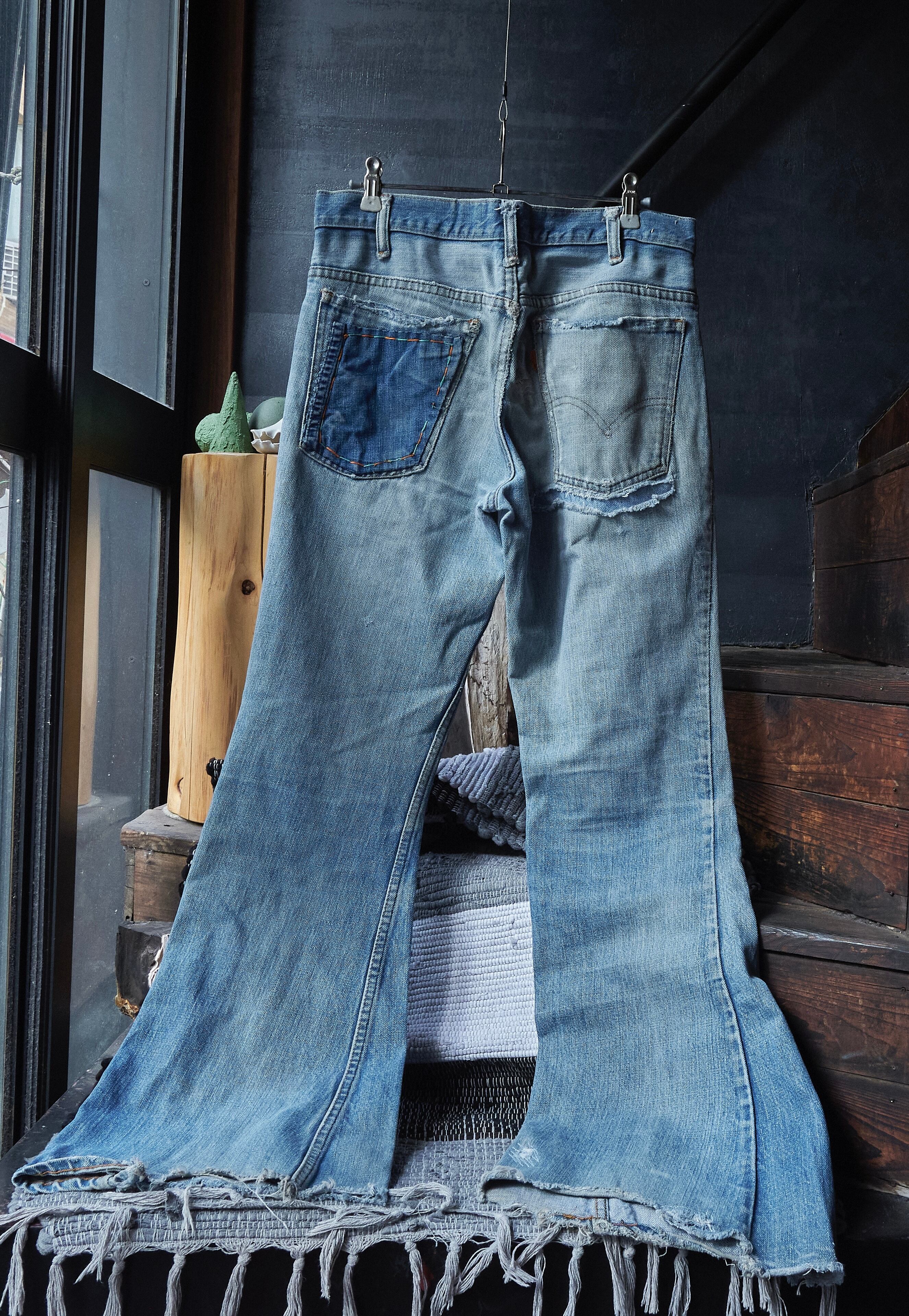 70s Levi's 646 Talon 42 zip Custom Patchwork Flared Denim