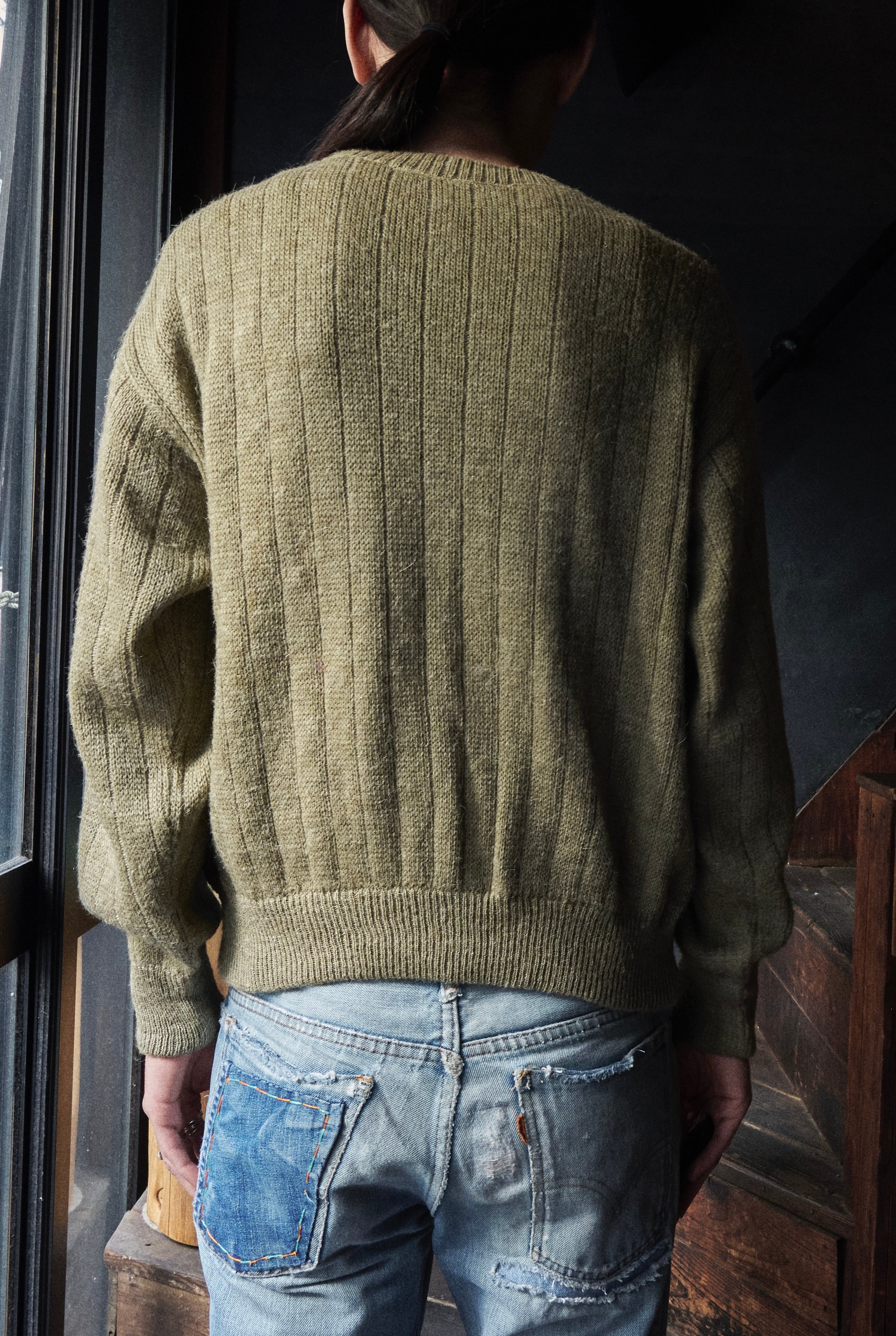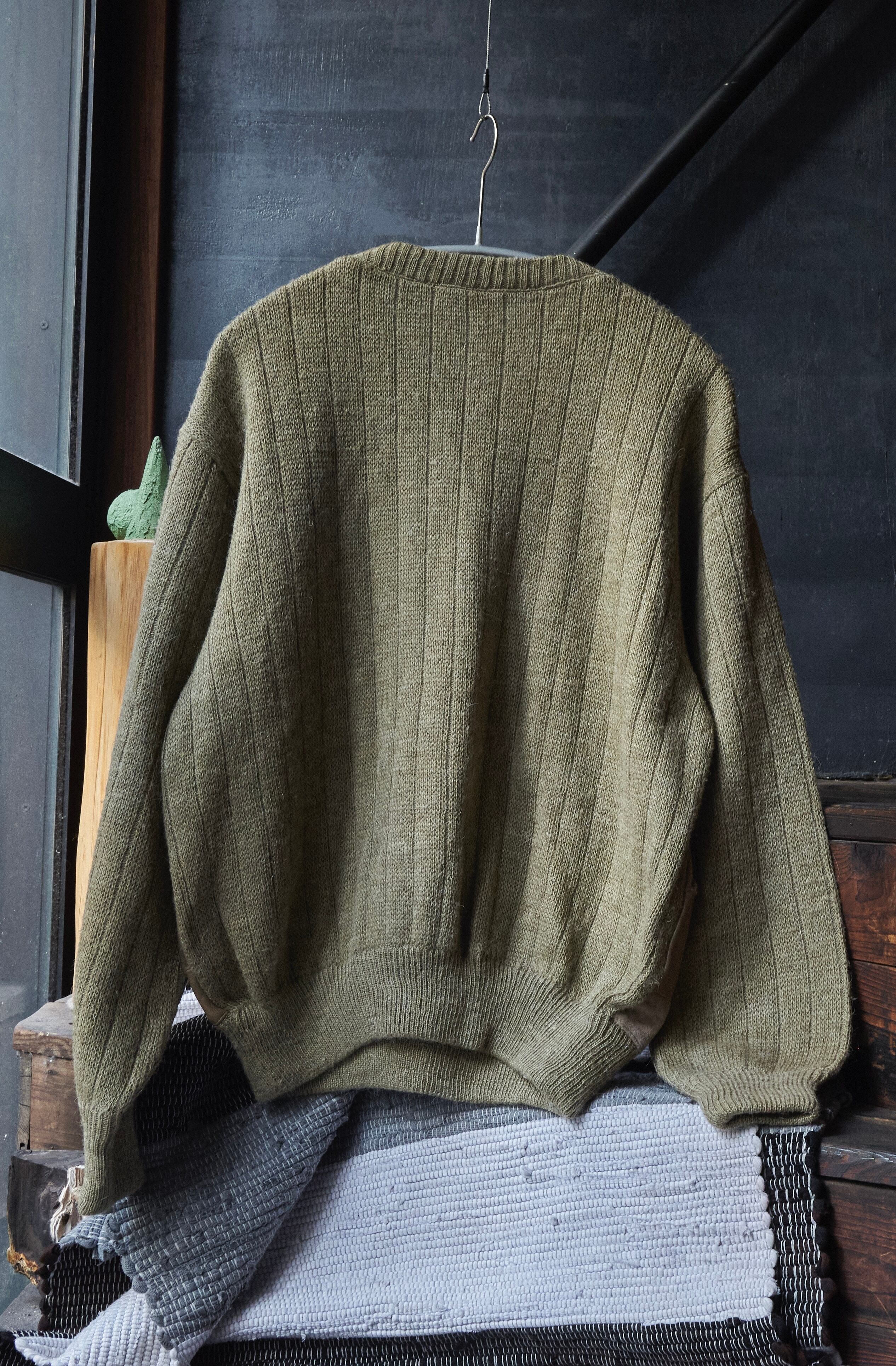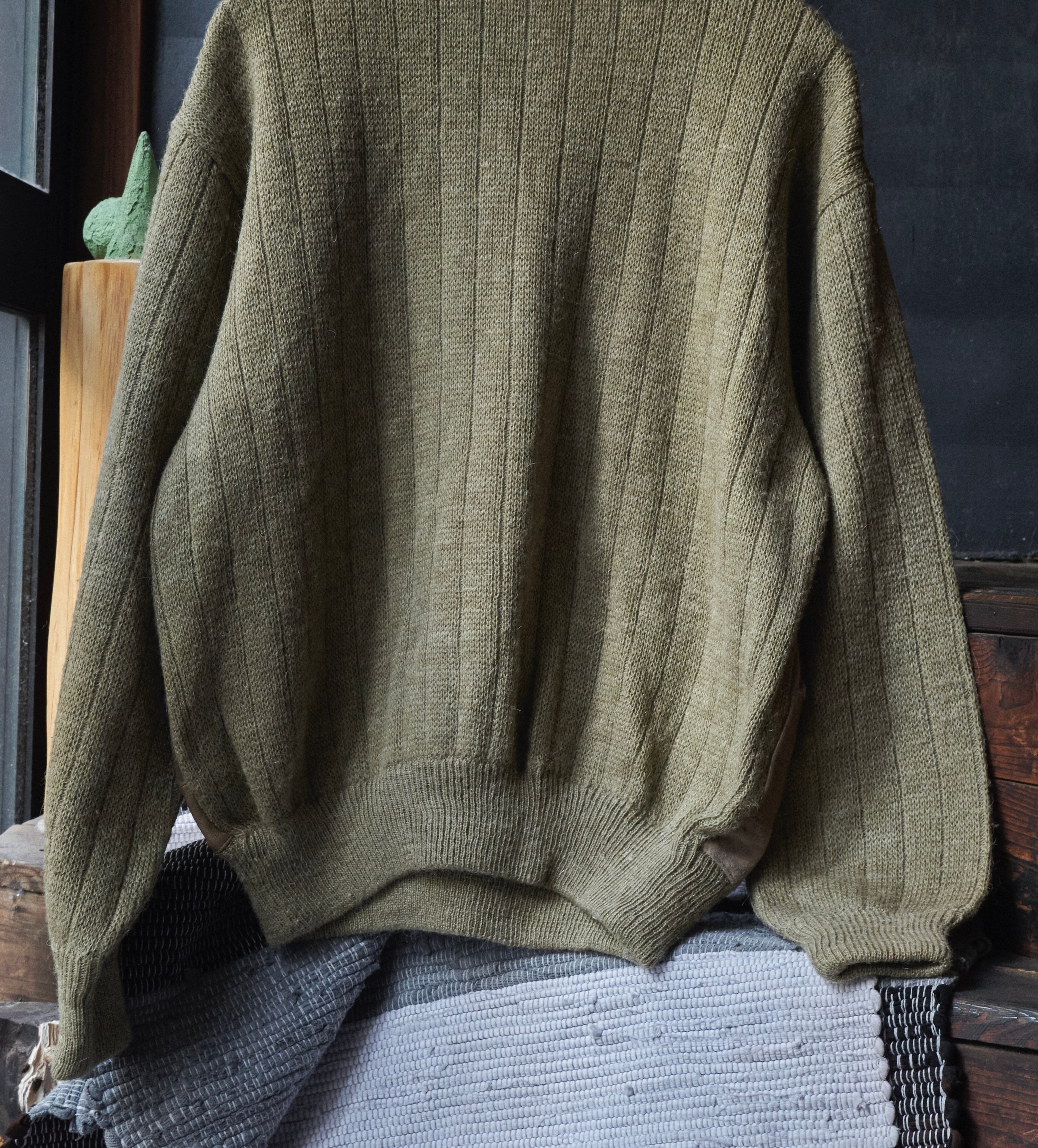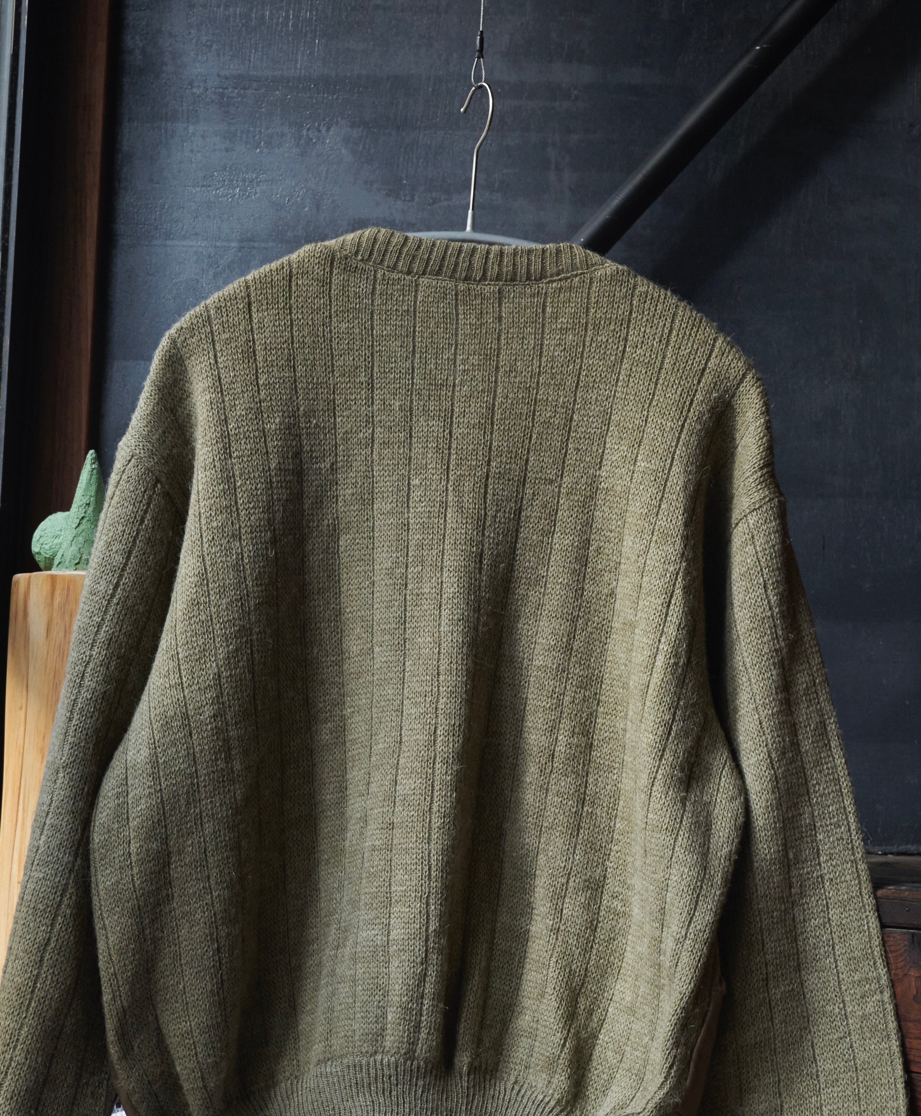 80s euro Leather x suede leather panel docking wool knit