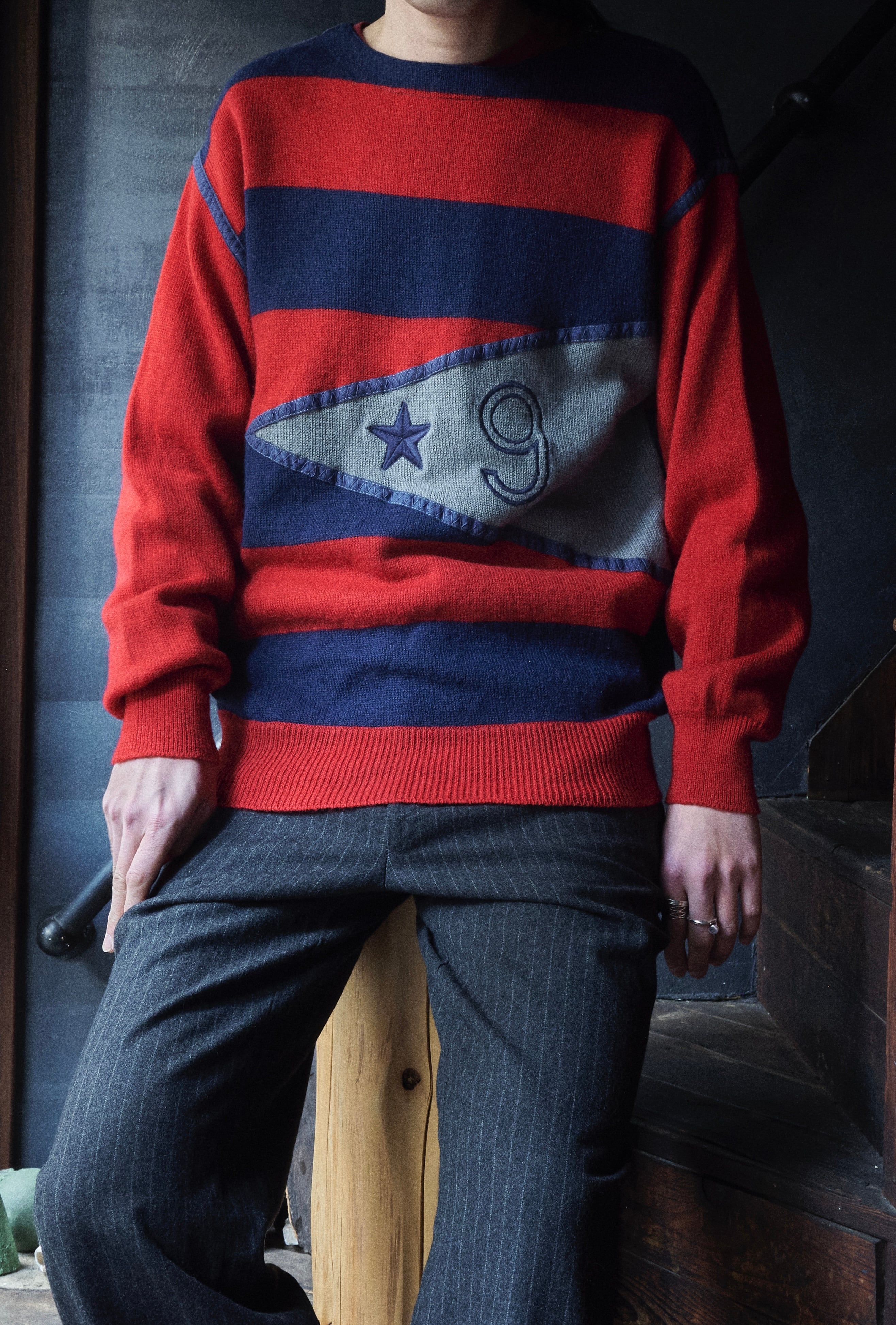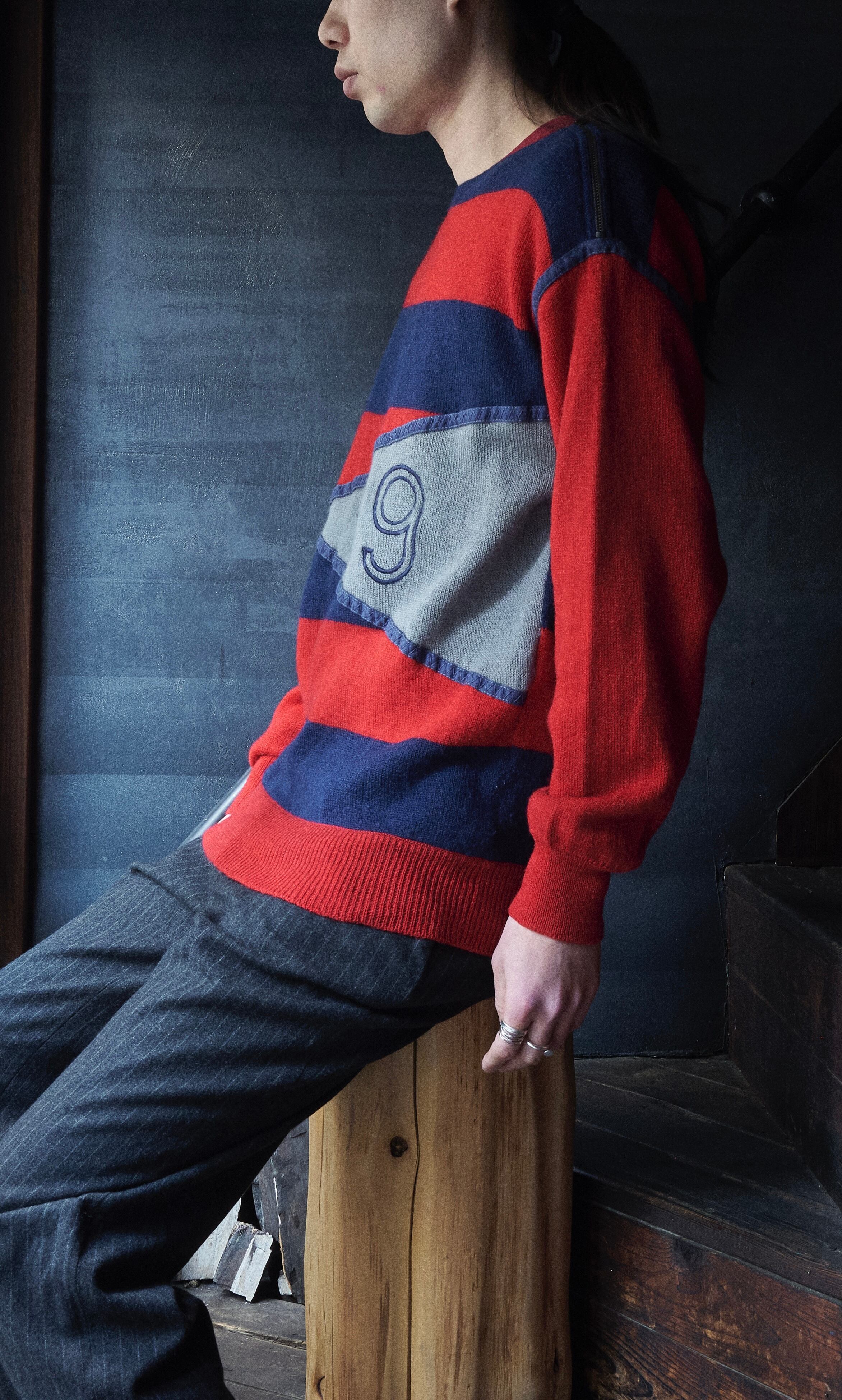 80s ICE BERG Design Castelbajac Diagonal zip striped wool knit